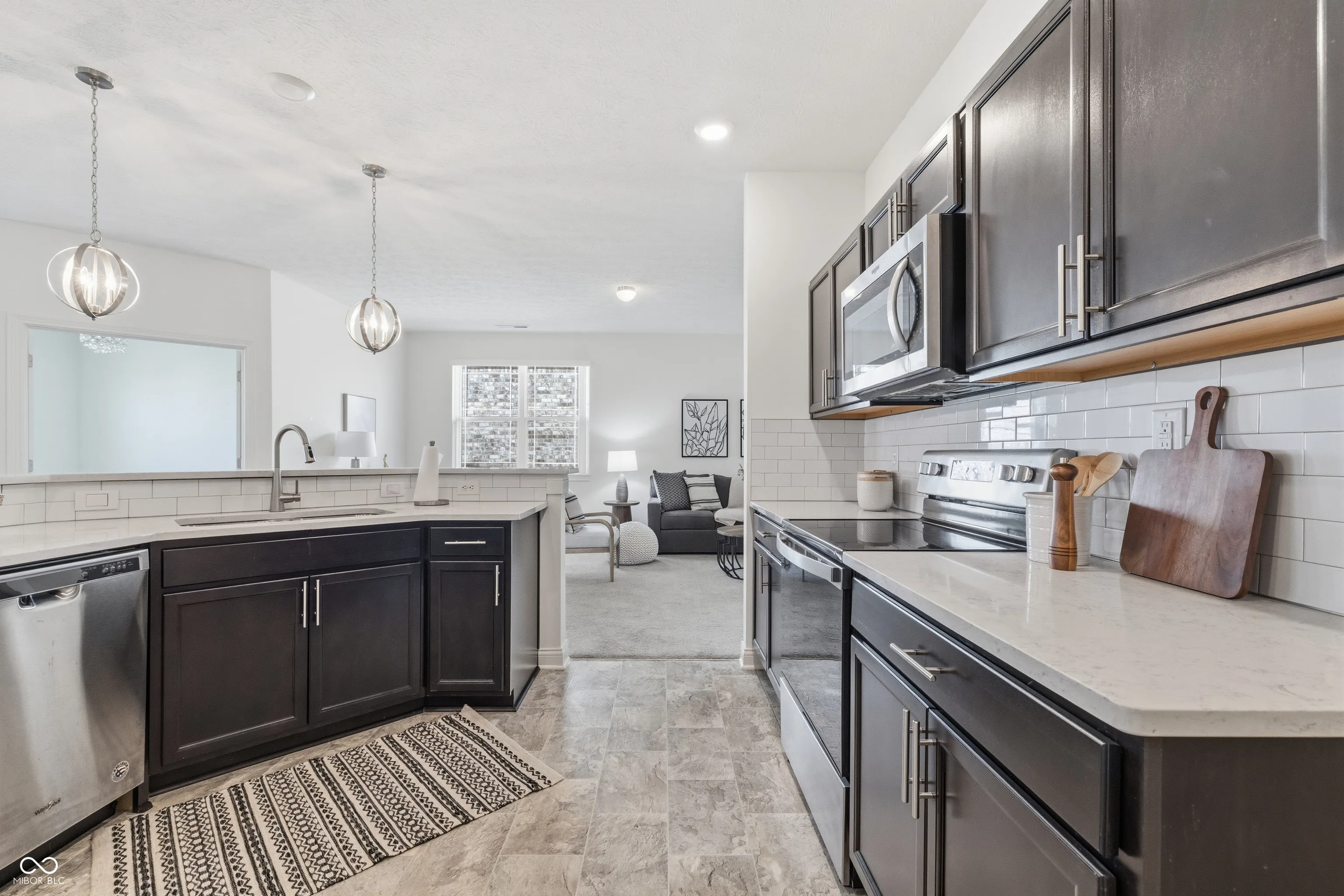 Welcome to this easy-to-show, move-in-ready, beautiful home. A ranch in the heart of Washington Township, built in 2020. This 3-bedroom, 2-bath home is located in a quiet, low-maintenance community. The HOA handles lawn care, snow removal, and exterior upkeep, giving you more time to enjoy life. The open floor plan connects the living room, kitchen, and dining area. This is perfect for both everyday living and entertaining. The kitchen features a large center island with a breakfast bar, stainless steel appliances, and abundant counter space. A dining area opens to the back patio with tranquil views of the walking trail, pond, and a nice landscaped area. An office with French doors (could be a 3rd BR) and large windows makes working from home a delight. The primary suite boasts a double vanity, a tiled shower with a bench, and a large walk-in closet. A second bedroom, full hall bath, laundry/mudroom, and finished 2-car garage with storage complete this move-in ready home. A perfect balance of comfort, style, and low-maintenance living awaits. This property is located just minutes from Broad Ripple and Holliday Park, and has easy access to downtown.