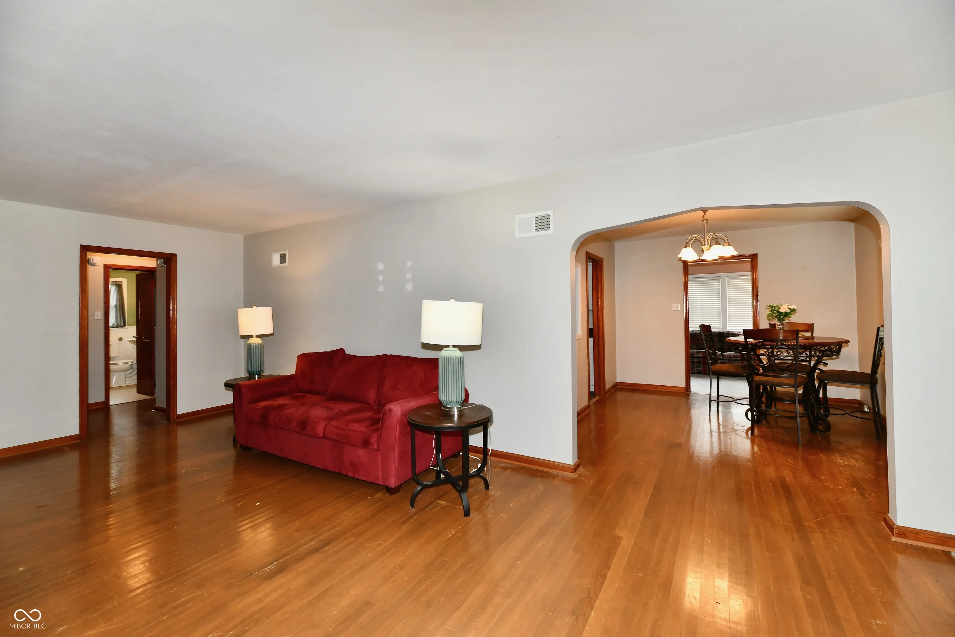 This charming Beech Grove beauty provides compact charm, convenience and a spacious corner-lot. A cozy covered porch greets you and invites you inside to two well-sized bedrooms, a huge living room with woodburning fireplace, and sturdy original hardwoods throughout. Your tidy kitchen comes with all appliances and adjoins a separate laundry room equipped with washer and dryer. Enjoy a lovely sun room as well, which opens off a formal dining space, perfect for early morning light, evening sunsets, or just relaxing anytime. All of these features are nestled along a spacious backyard with full rear fencing, adjoining a large detached two-car garage. Make this special home yours.