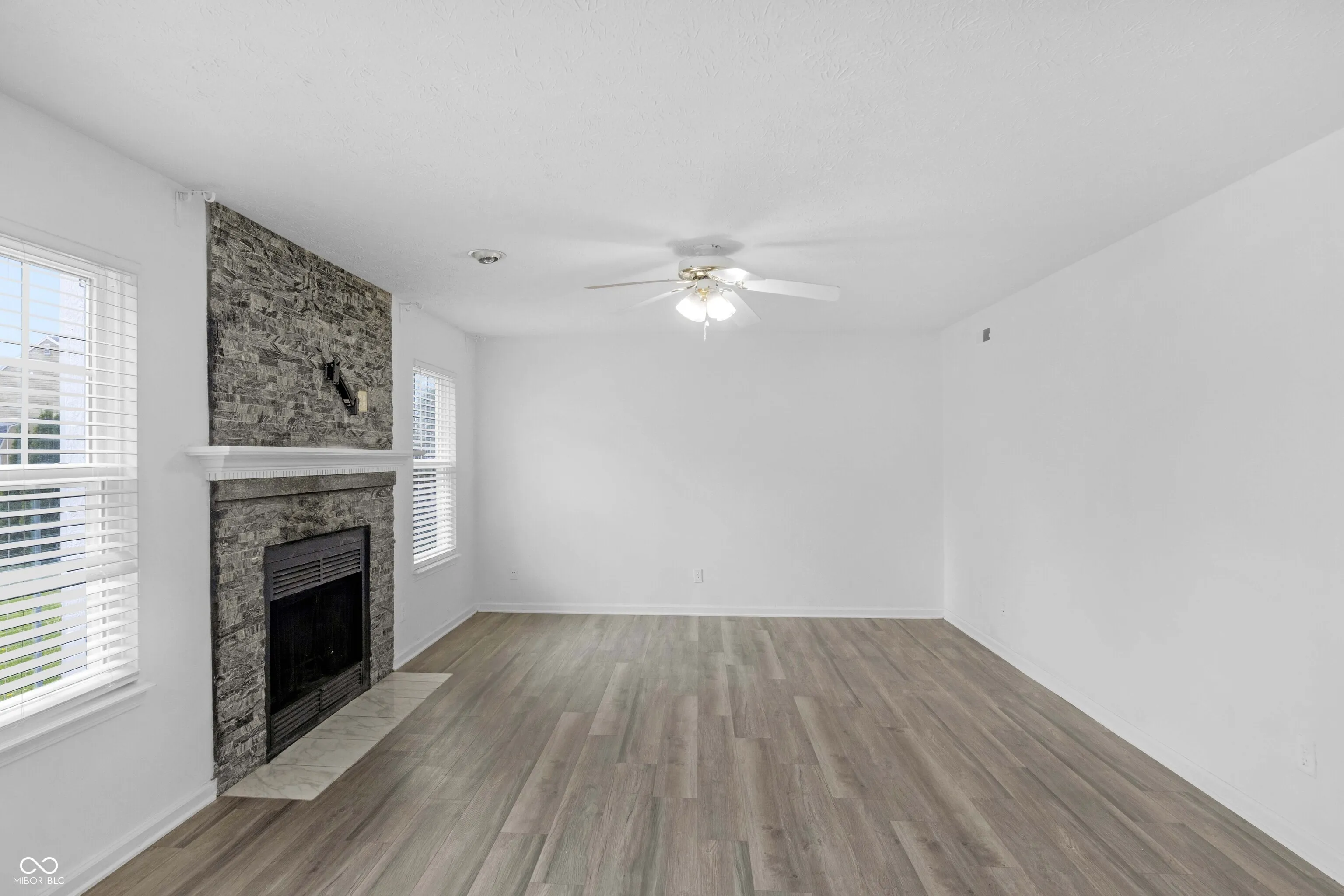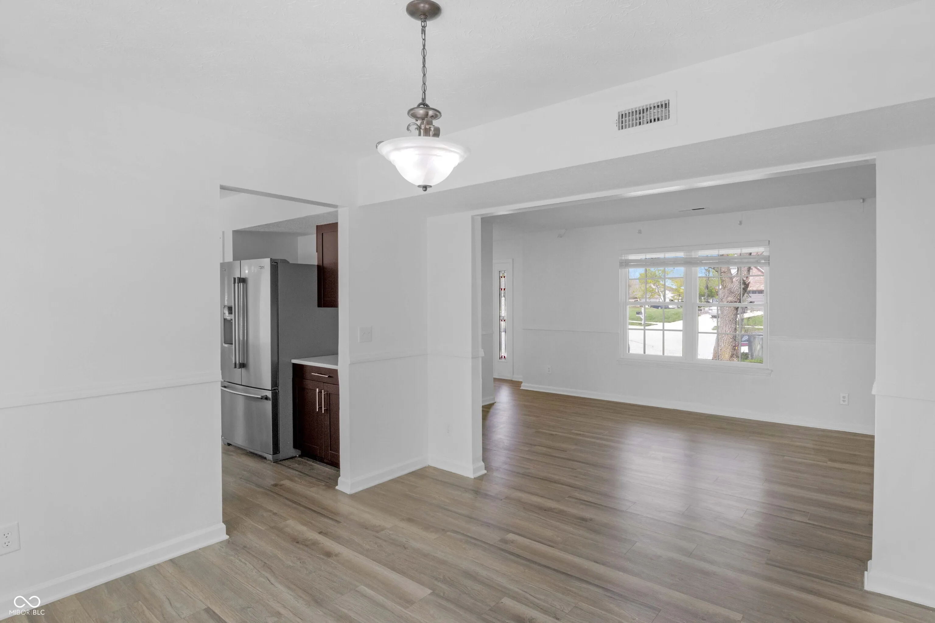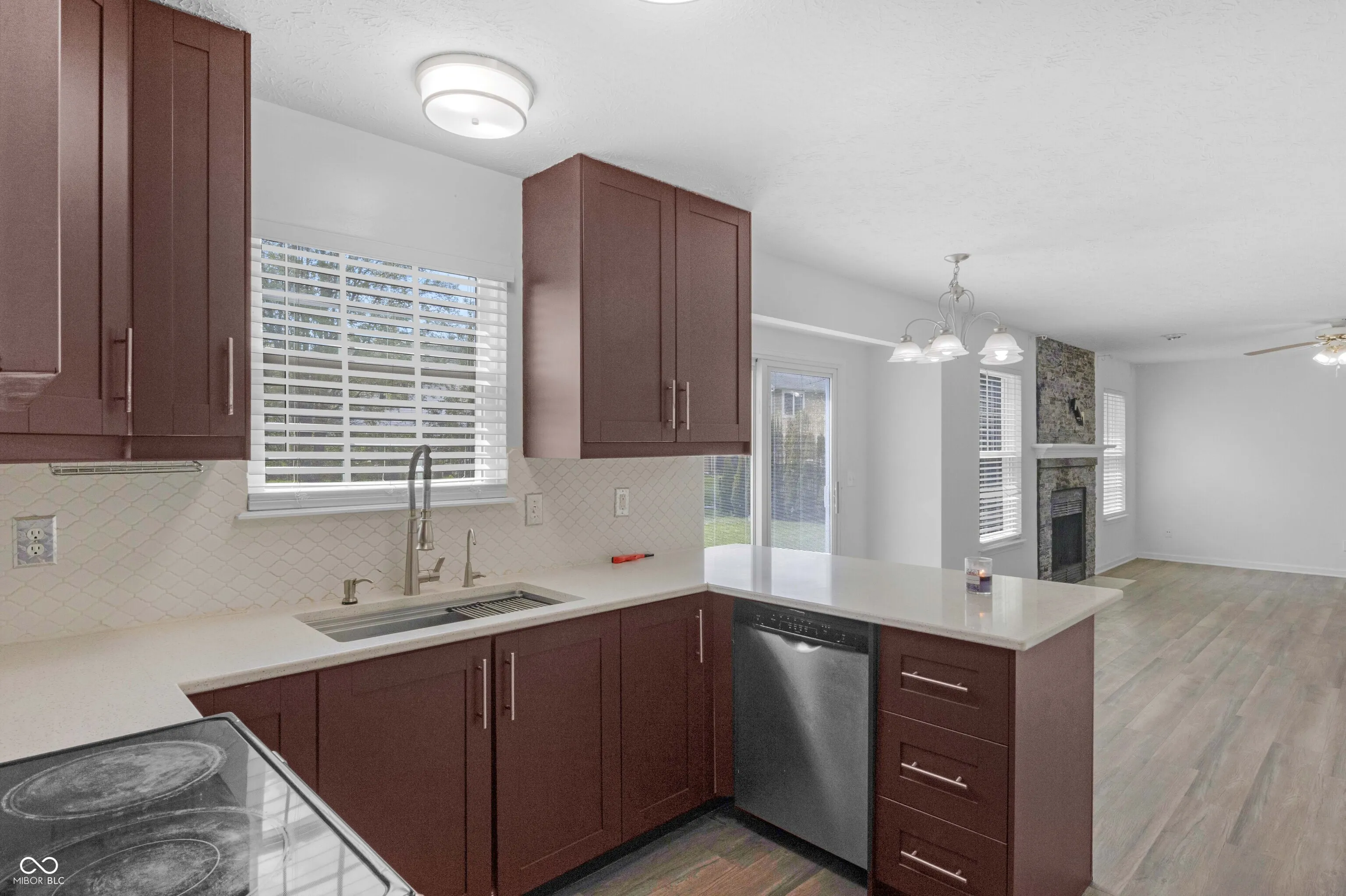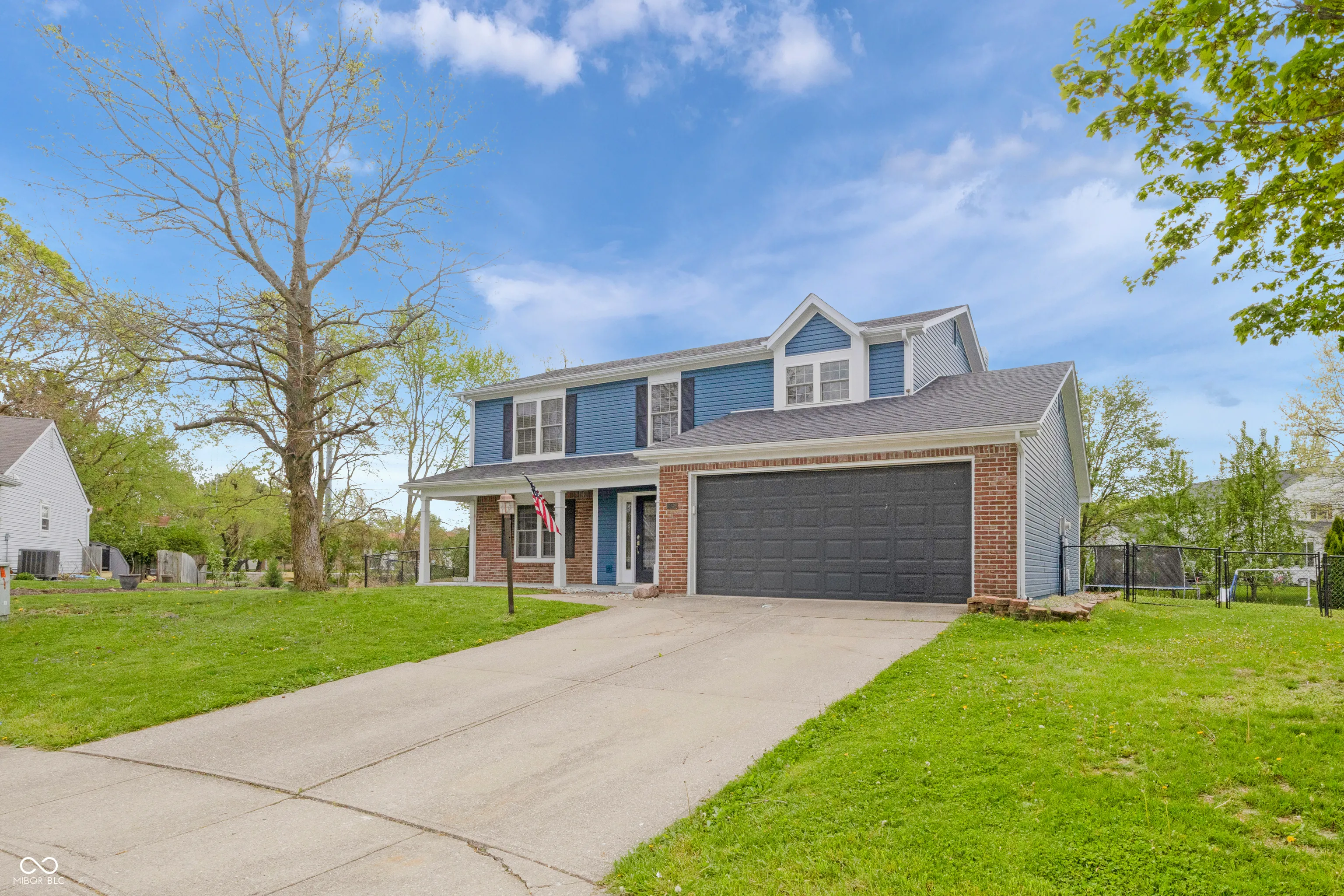Tucked on a quiet Fishers cul-de-sac, this beautifully renovated 4-bedroom, 2.5-bath two-story blends classic curb appeal with top-to-bottom modern upgrades. Fresh blue siding (2023), brick accents, and new double-hung windows (2020) welcome you into a light-filled open floor plan featuring new luxury flooring, designer wainscoting, and a stunning 2022 kitchen remodel with shaker cabinetry, quartz counters, stainless appliances, and pendant-lit peninsula that flows into a family room anchored by a stacked-stone fireplace. Upstairs, four spacious bedrooms boast brand-new luxury carpet (2023), while the primary suite offers a vaulted ceiling, walk-in closet, and updated dual-vanity bath. This year’s upgrades take it over the top: a huge new concrete patio, custom pergola, all-new vanities, new lighting, garage improvements, and a brand-new gate opening directly to Nickel Plate Trail. A whole-home water softener, fully fenced yard, mature trees, and unbeatable location just minutes from shopping, dining, HSE schools, and a 5-minute walk to the Fishers YMCA make this one truly move-in ready – just unpack and enjoy.
