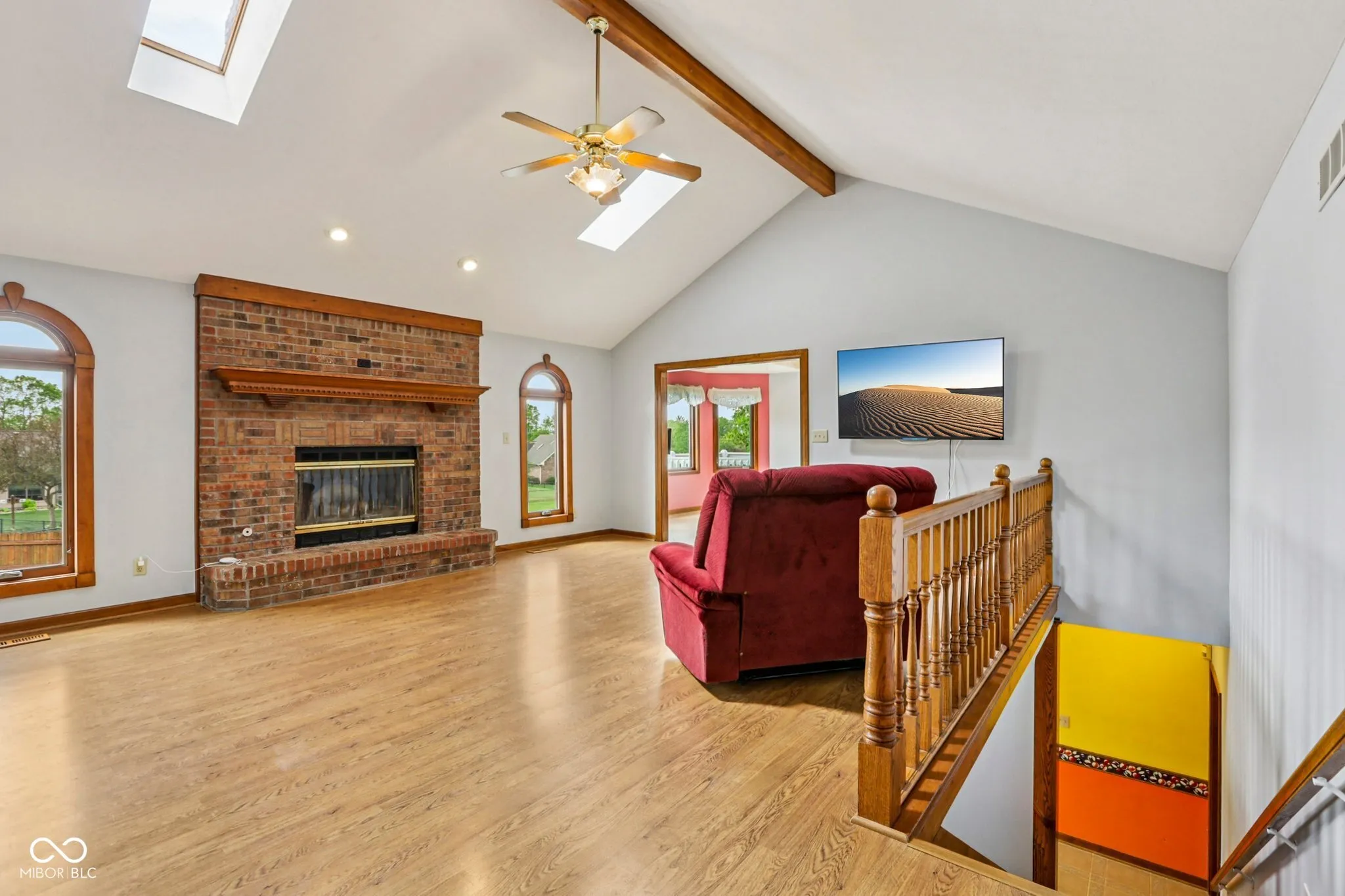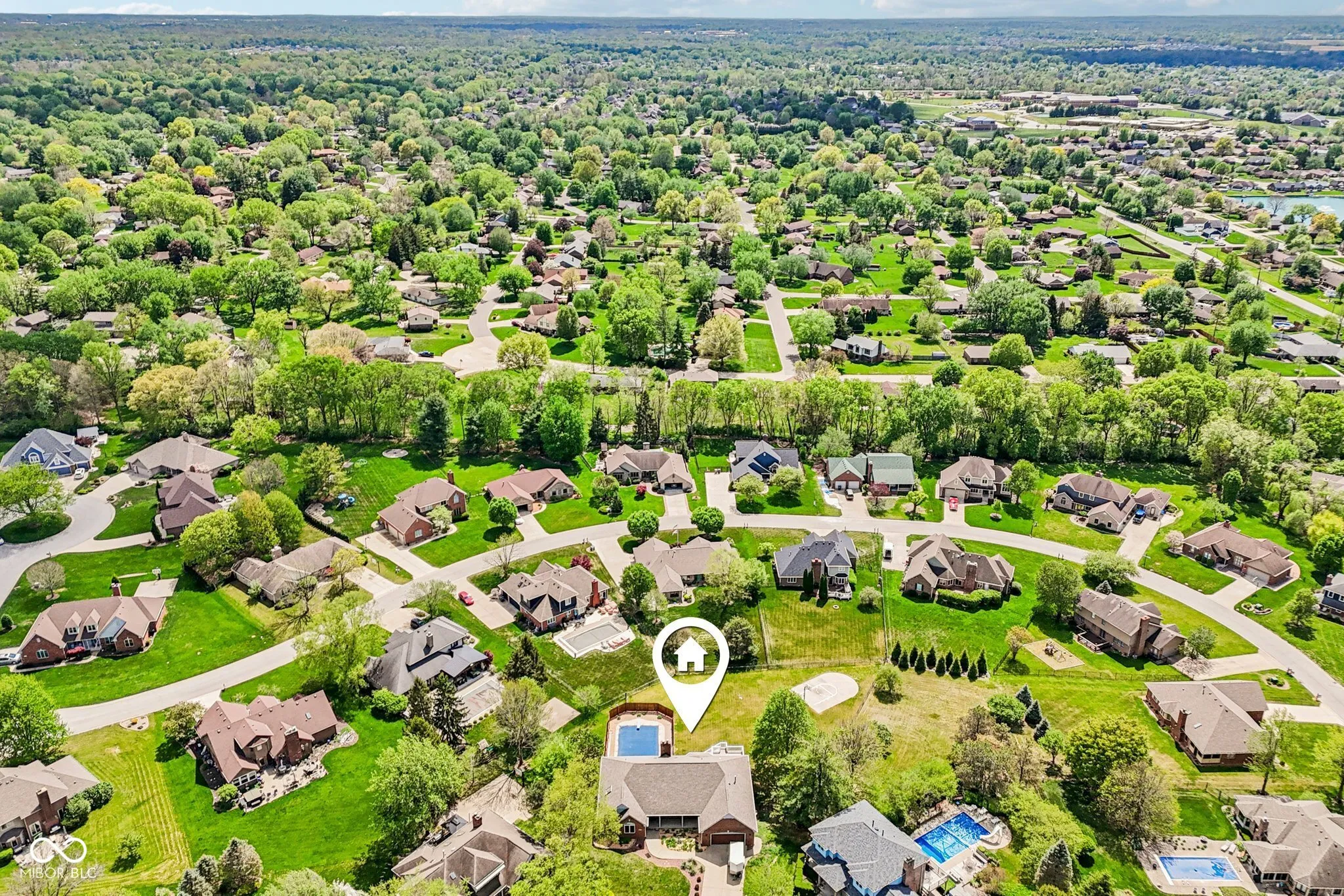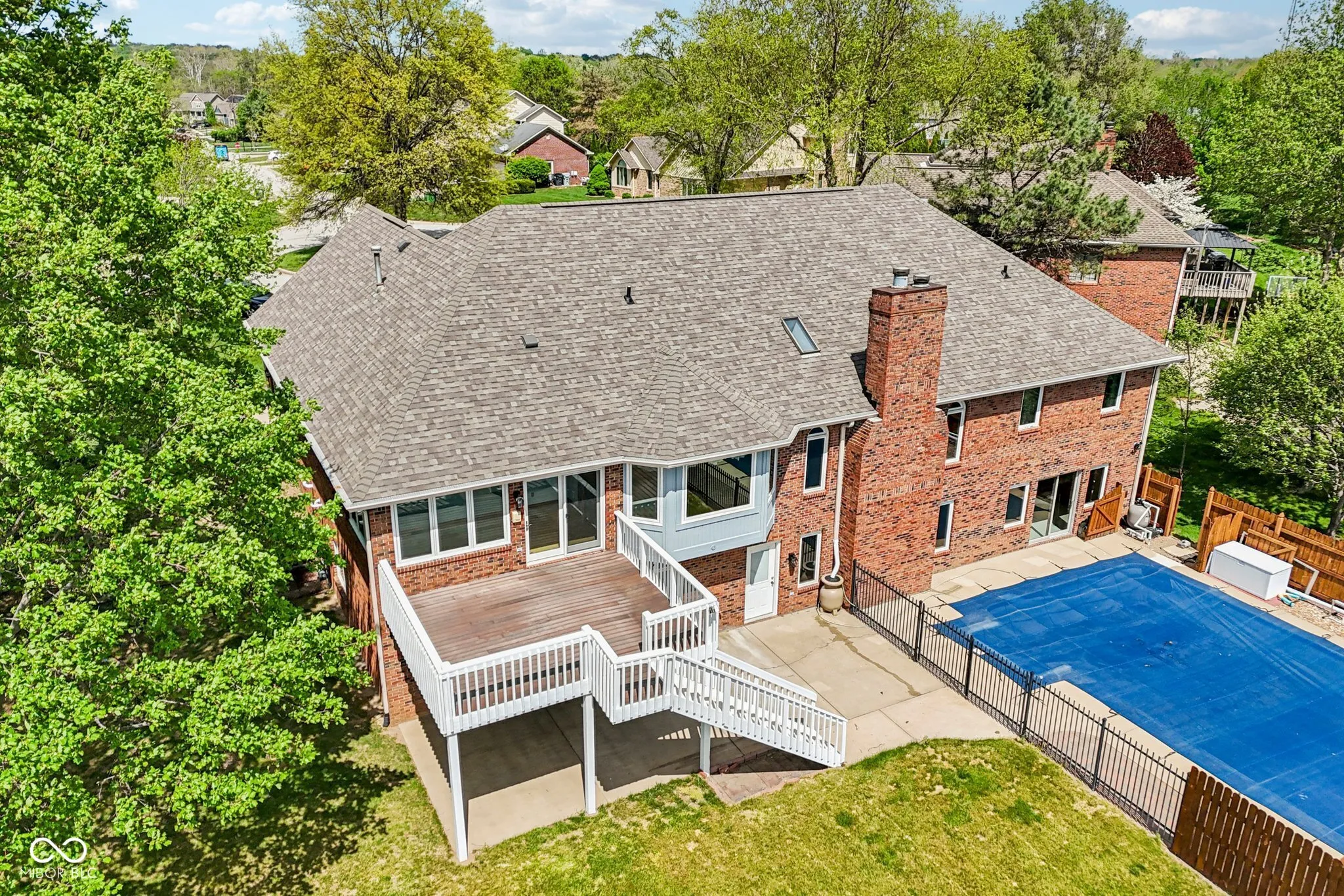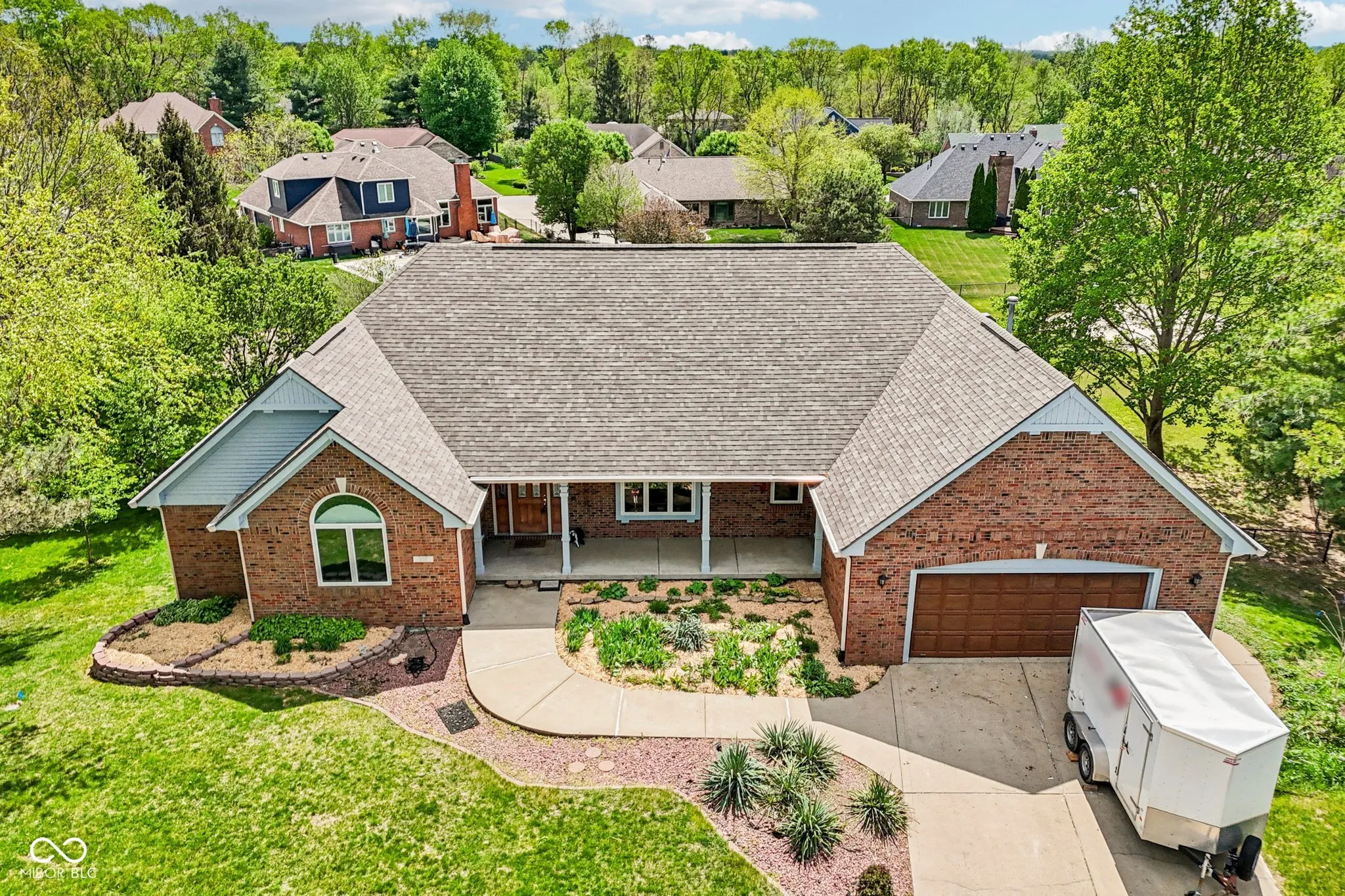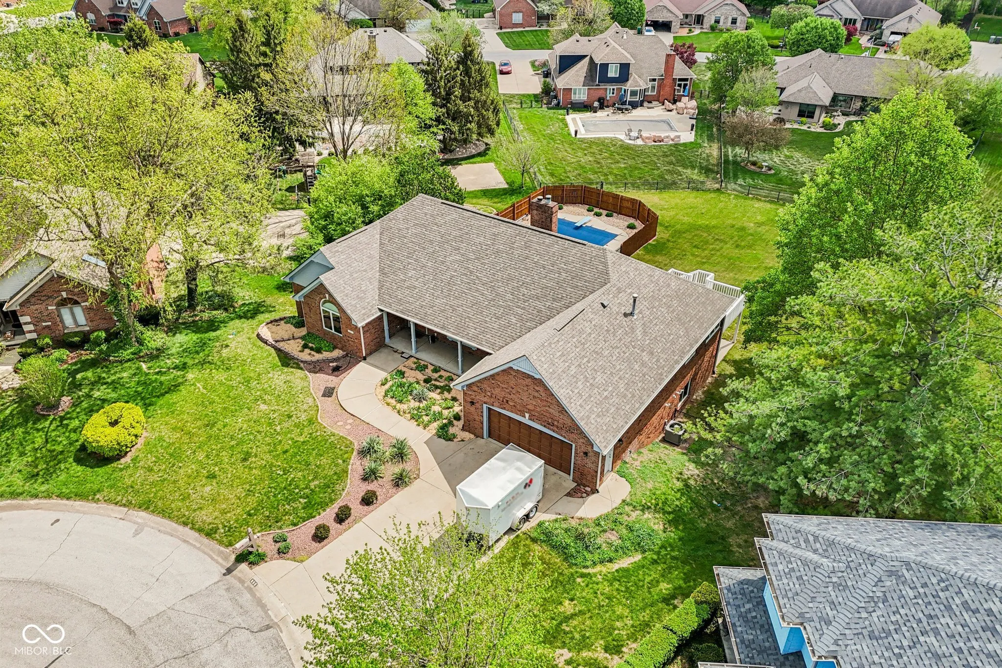 Welcome to this exceptionally spacious and beautiful all brick home in the sought-after Center Grove School District. Perfectly located at the end of a quiet cul-de-sac, this home has a combination of size (5,100+ Sq Ft), outdoor amenities, and versatility. The main level features a soaring great room with a cozy wood fireplace. Three generously sized bedrooms, three full bathrooms, a bright eat-in kitchen with a bay window capturing views of both sunrises and sunsets. The main floor also has a formal dining room, convenient laundry room, and sun room that walks out to a large composite deck — prefect for shaded evening dinners. The finished walkout basement significantly increases the living space and versatility of the home. This area can be used as a private second living space with bedrooms, a full bath, full kitchen, laundry room, entertainment room with a fireplace, and walk out access to the spacious backyard and pool. It also features a library, craft, or display room with built in shelves and an office. This space would be fantastic for multi-generational living or long term house guests. Step outside and enjoy a 20×40 pool, a basketball court, an orchard of five fruit trees, and an expansive flat yard space for recreation, relaxation, or gardening. Recent improvements totaling over $60,000 include a brand new roof, gutters with gutter guards, all new exterior paint, upgraded electrical and lighting, pool liner (being installed in May 2026), and remote-controlled blinds. These new features can give a new owner peace of mind by reducing or eliminating unexpected expenses. The convenient location gives homeowners quick access to I-69 and to many local restaurants and shopping centers while maintaining a peaceful residential setting to enjoy. All room sizes are approximate and should be checked by potential buyers.