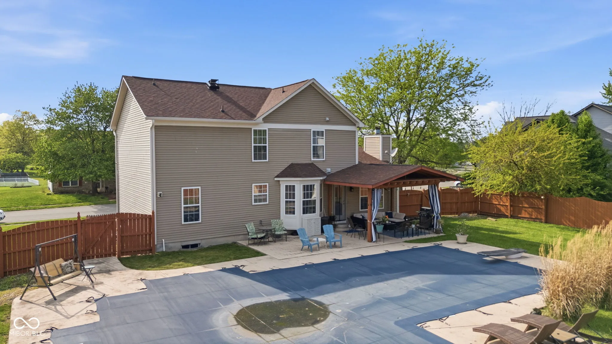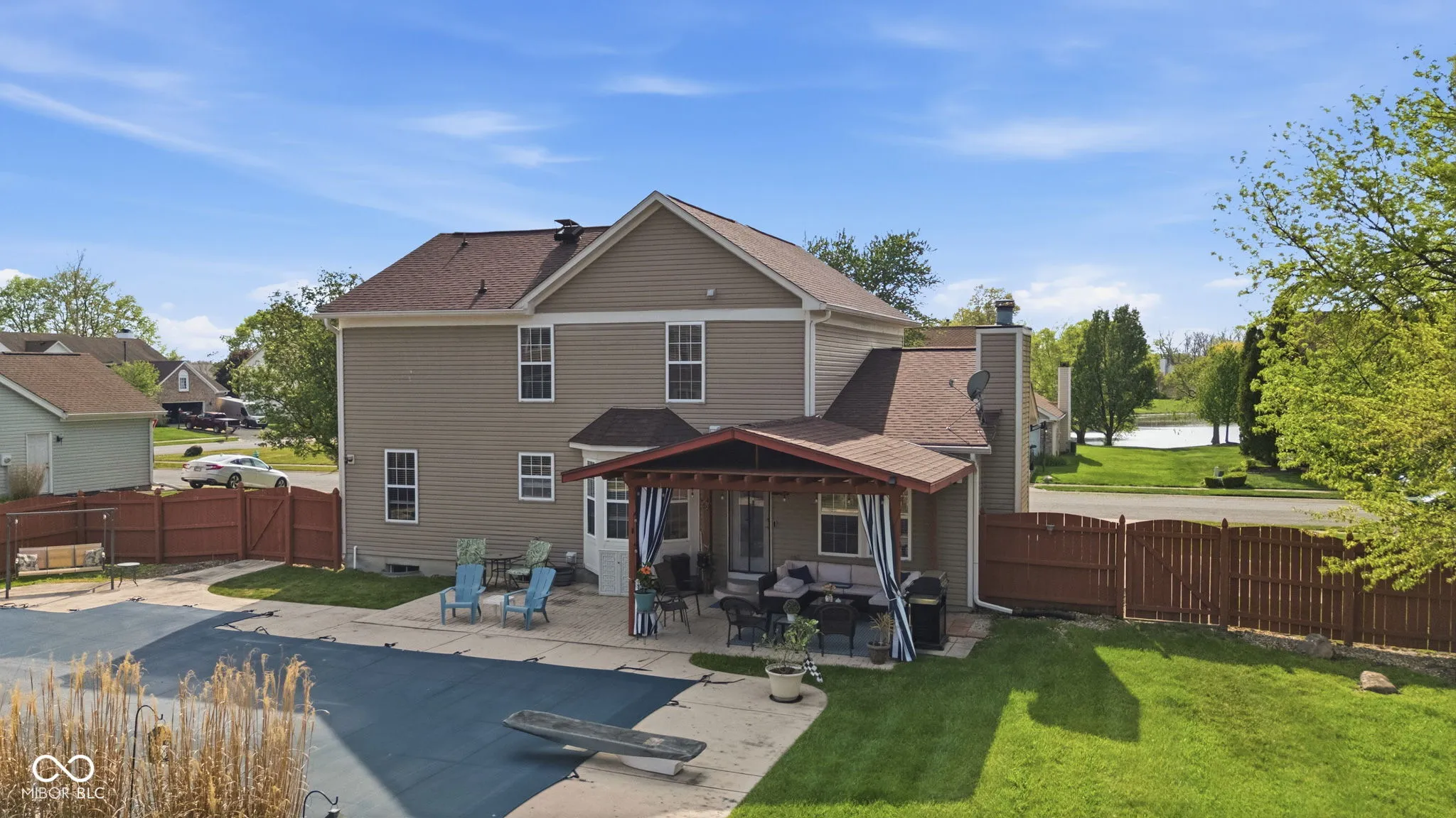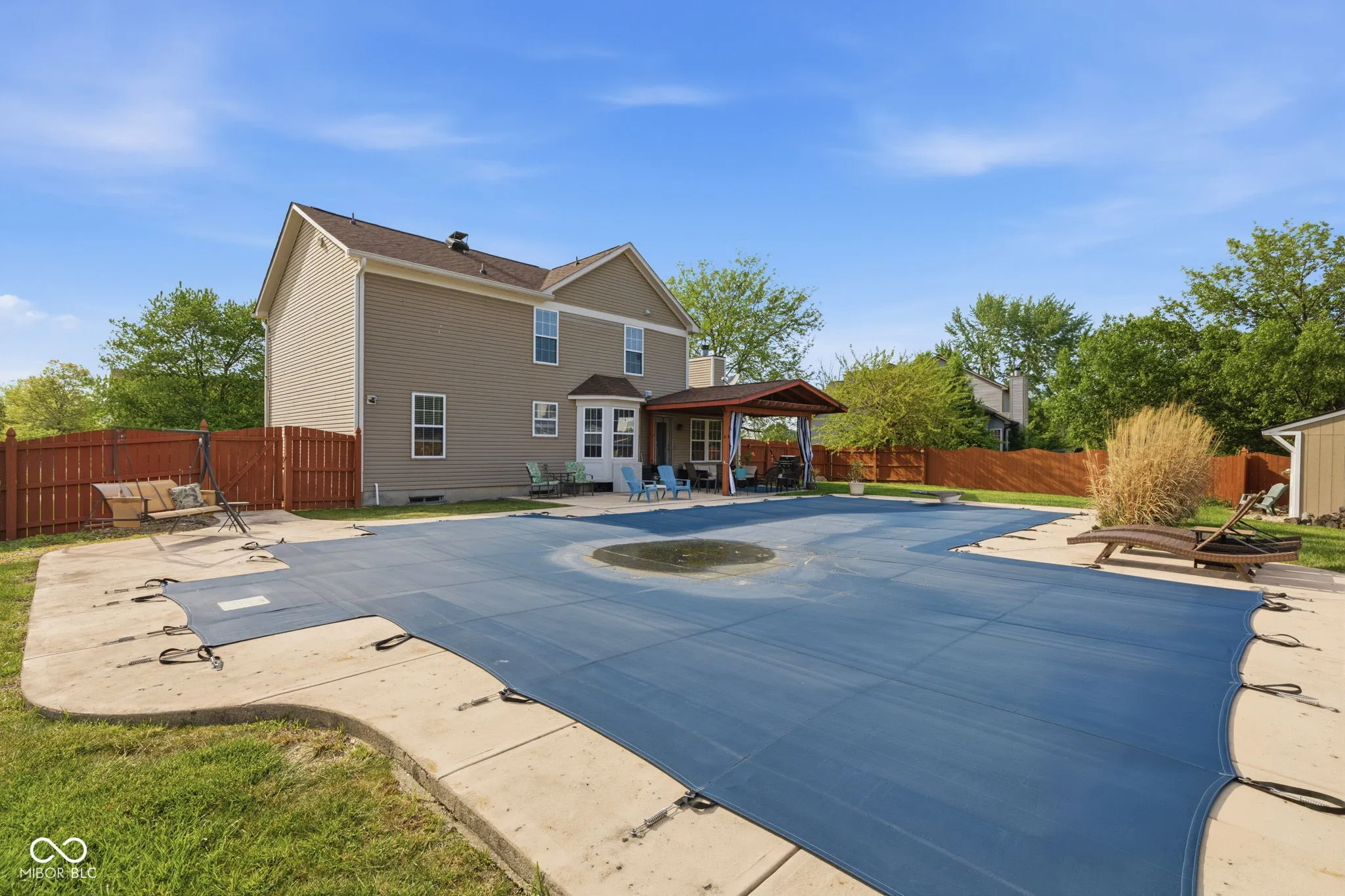 At 721 Creston Point CIR, INDIANAPOLIS, IN, USA, an attractive single family residence awaits, presenting itself in great condition for its fortunate new occupants. The heart of culinary creation resides within a kitchen designed for both elegance and practicality, featuring stone countertops that provide expansive preparation surfaces. Shaker cabinets offer refined storage solutions, complemented by a stylish backsplash and a wall chimney range hood, ensuring a fresh atmosphere. A large kitchen island serves as a central gathering point, while a convenient kitchen bar provides additional dining or serving space. Enthusiasts of gourmet cooking will appreciate the double oven and stovetop, reverse osmosis water system and paid water softner, and a dedicated wine cooler adds a touch of sophisticated leisure. Comfortable evenings are assured in the living room, where a warming fireplace creates an inviting ambiance. This space is ideal for quiet contemplation or engaging conversations, providing a comforting focal point within the home. One of the full bathrooms offers a truly rejuvenating experience with its finely tiled walk in shower, providing a refreshing start or a tranquil end to any day. Beyond the interior, the expansive outdoor living space promises endless moments of enjoyment and relaxation. A welcoming porch offers a delightful spot for morning routines or evening unwinding, leading to a private patio perfect for al fresco dining. The fenced backyard provides a serene and secure environment for outdoor activities, culminating in a private pool complete with a diving board offering recreational delight. Patio furniture and pool equipment remain with the property!
