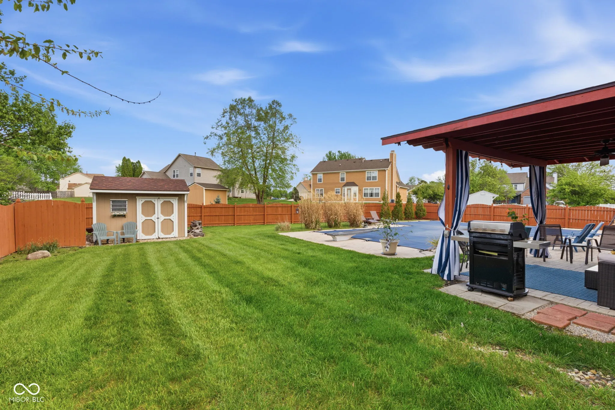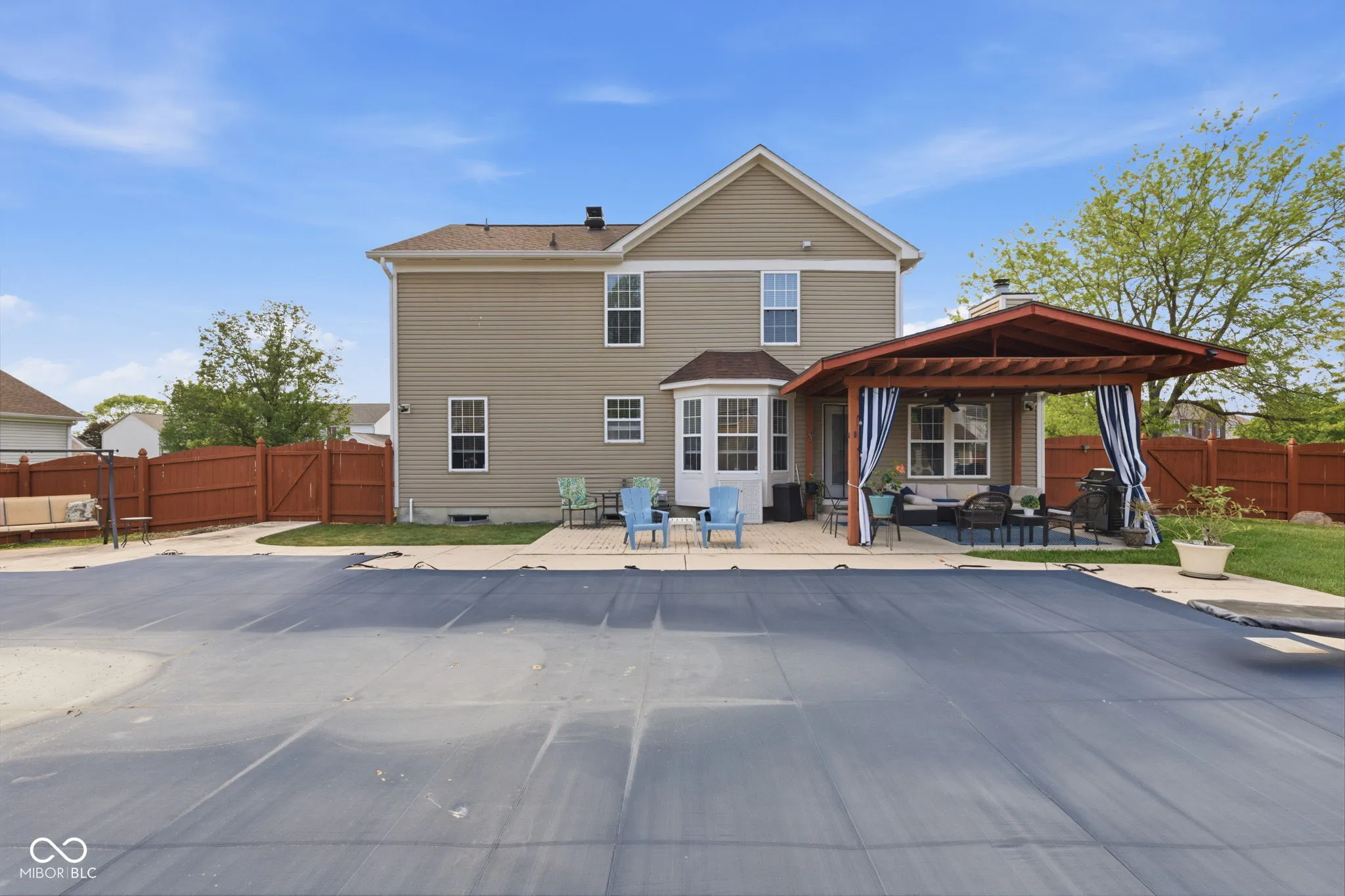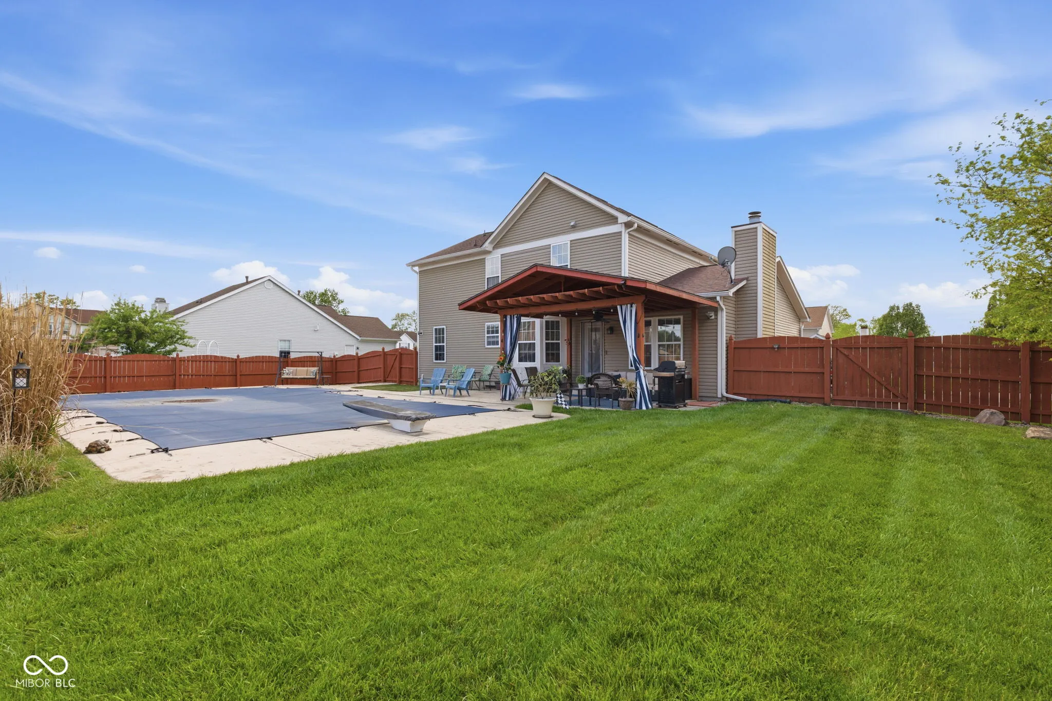 At 721 Creston Point CIR, INDIANAPOLIS, IN, USA, an attractive single family residence awaits, presenting itself in great condition for its fortunate new occupants. The heart of culinary creation resides within a kitchen designed for both elegance and practicality, featuring stone countertops that provide expansive preparation surfaces. Shaker cabinets offer refined storage solutions, complemented by a stylish backsplash and a wall chimney range hood, ensuring a fresh atmosphere. A large kitchen island serves as a central gathering point, while a convenient kitchen bar provides additional dining or serving space. Enthusiasts of gourmet cooking will appreciate the double oven and stovetop, reverse osmosis water system and paid water softner, and a dedicated wine cooler adds a touch of sophisticated leisure. Comfortable evenings are assured in the living room, where a warming fireplace creates an inviting ambiance. This space is ideal for quiet contemplation or engaging conversations, providing a comforting focal point within the home. One of the full bathrooms offers a truly rejuvenating experience with its finely tiled walk in shower, providing a refreshing start or a tranquil end to any day. Beyond the interior, the expansive outdoor living space promises endless moments of enjoyment and relaxation. A welcoming porch offers a delightful spot for morning routines or evening unwinding, leading to a private patio perfect for al fresco dining. The fenced backyard provides a serene and secure environment for outdoor activities, culminating in a private pool complete with a diving board offering recreational delight. Patio furniture and pool equipment remain with the property!