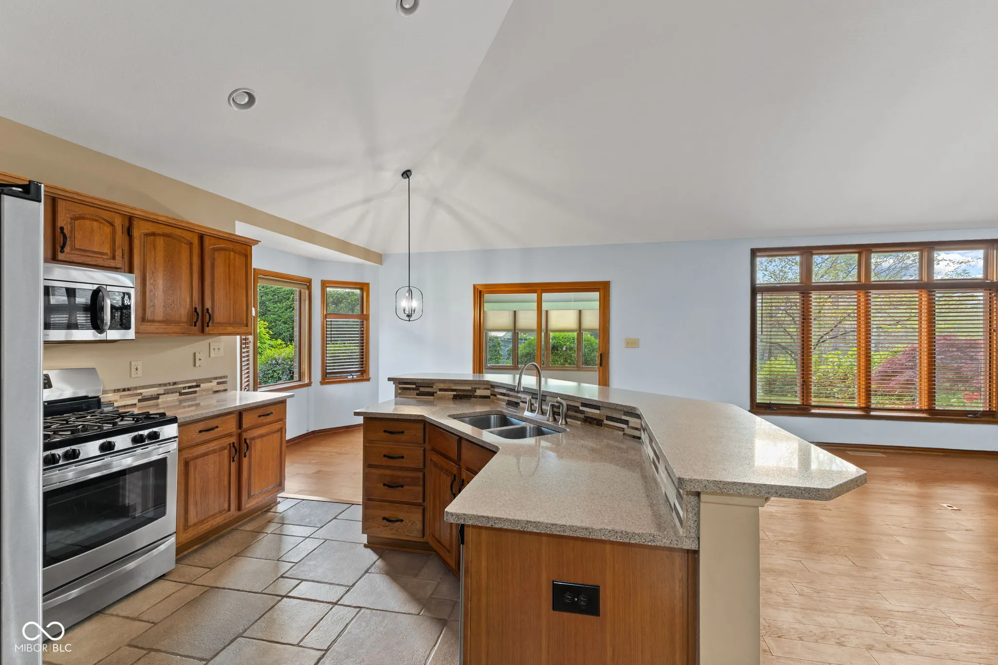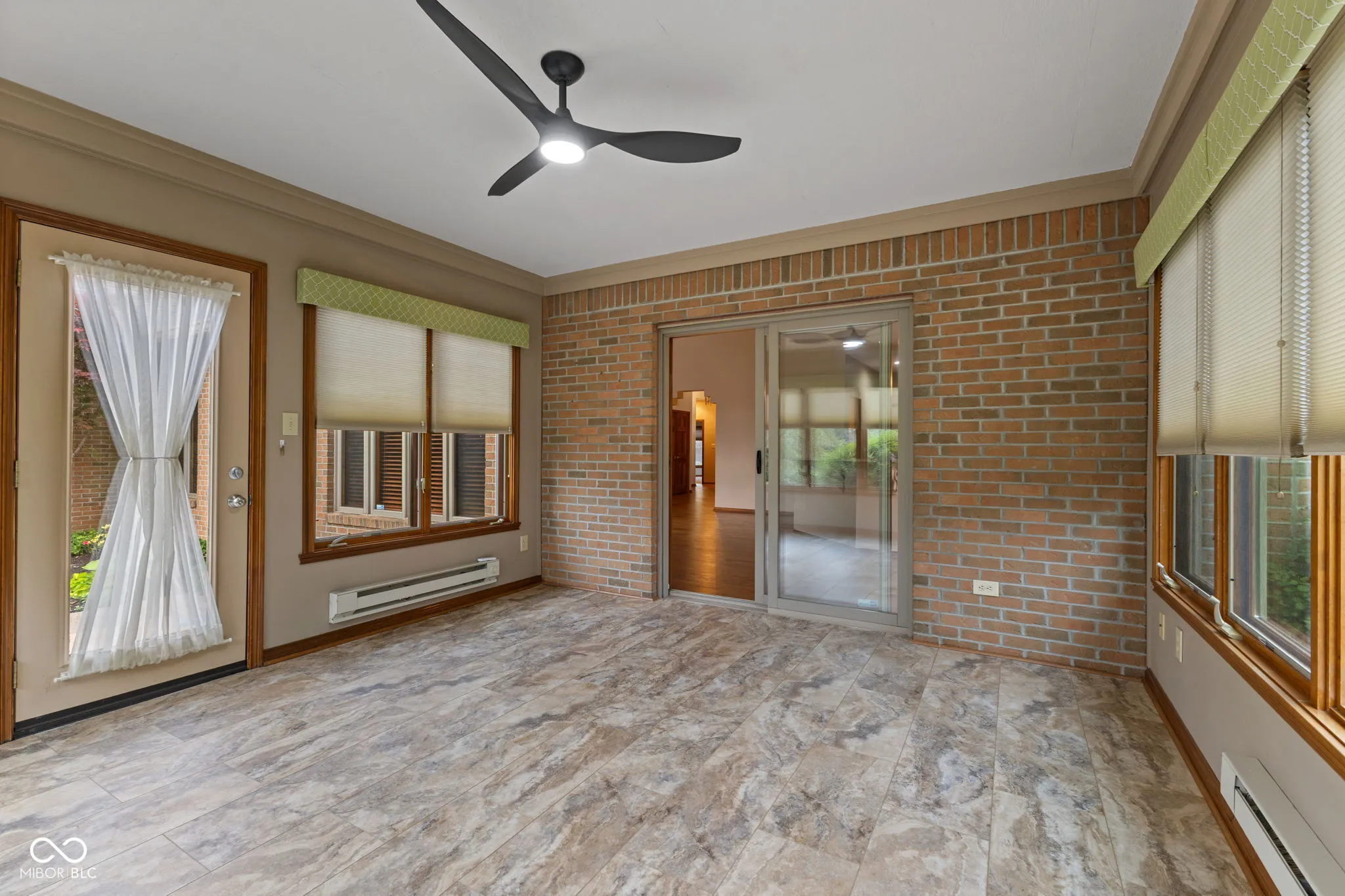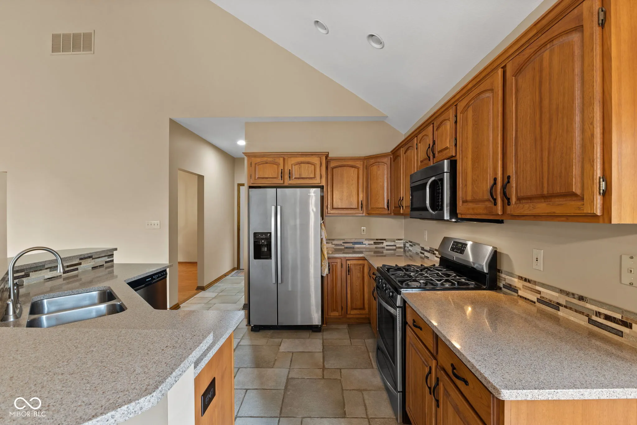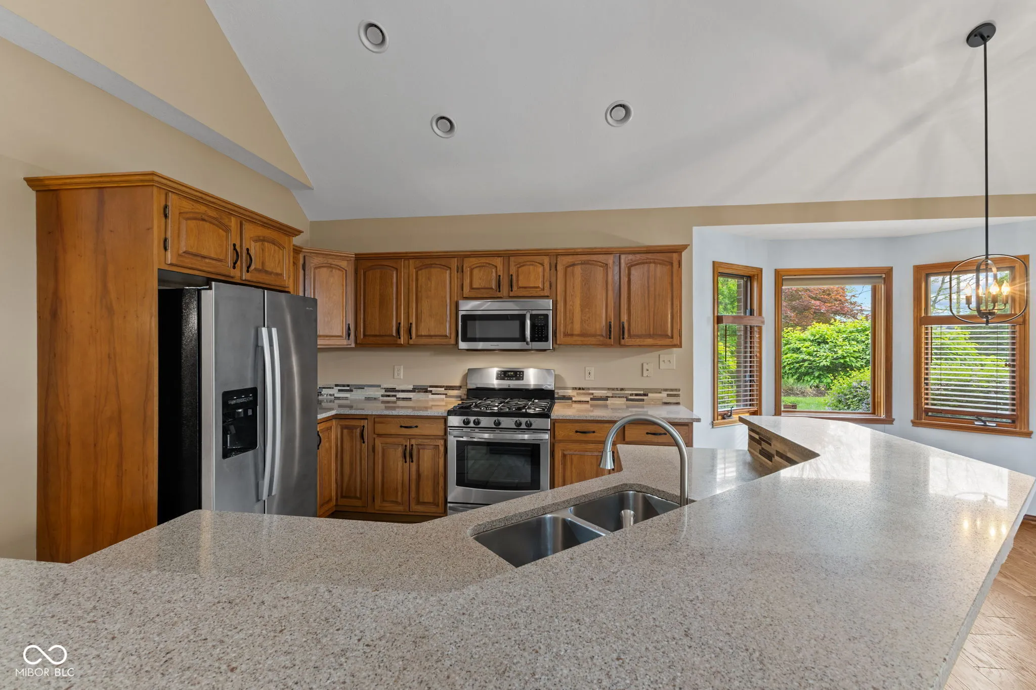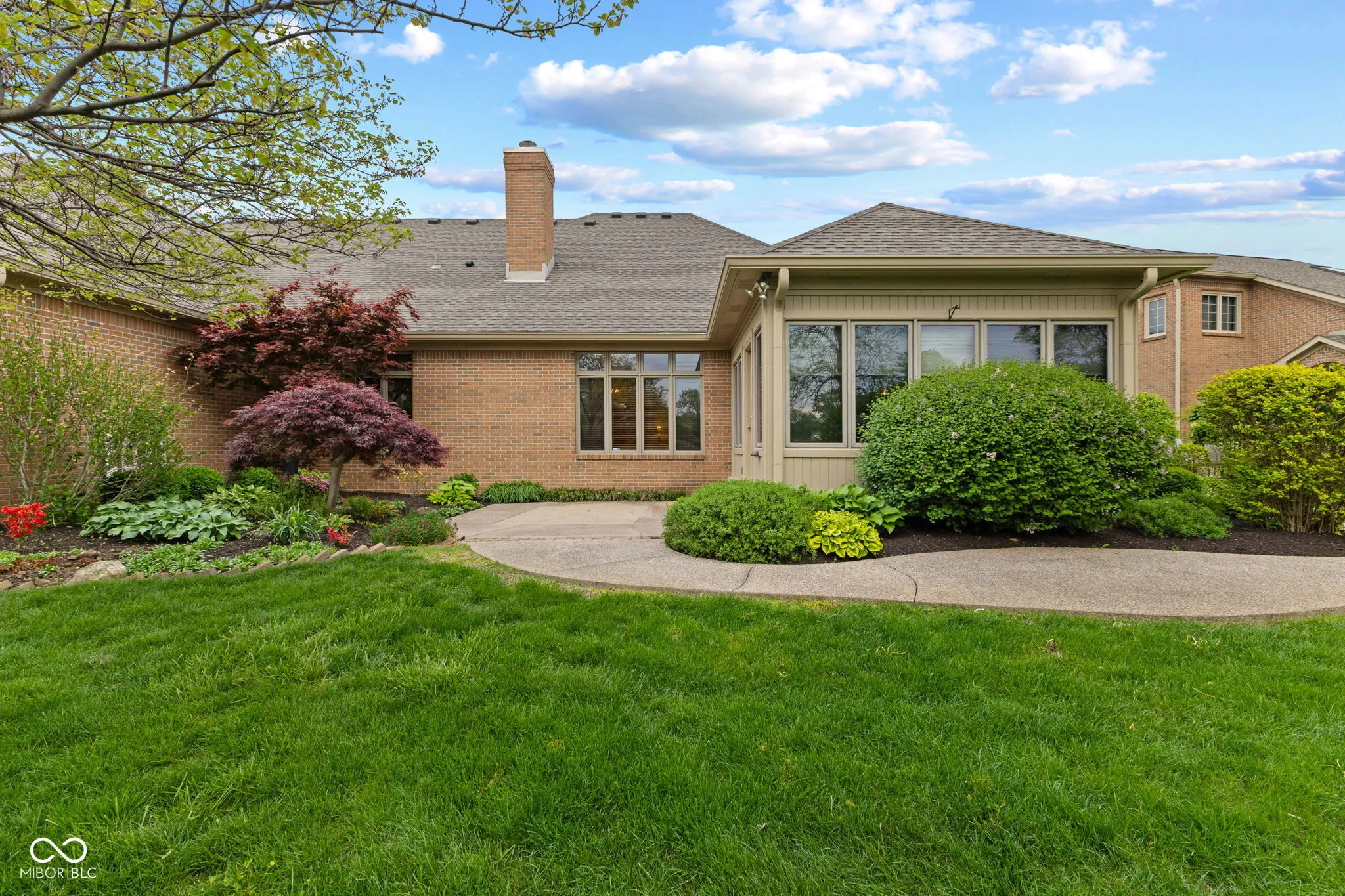 Welcome to Ashwood in the heart of Center Grove, where quality construction, a prime location, and thoughtful updates come together in this beautifully maintained 3 bedroom, 2 full bath home with 1,847 square feet and a 2 car finished garage. Built by Greg Allen and located directly across the street from private Dye’s Walk Golf Course, this home offers outstanding curb appeal with professional landscaping and a warm, inviting presence from the moment you arrive. Inside, the open concept floorplan is designed for both everyday living and entertaining. The Great Room features soaring 16-foot ceilings, a gas fireplace, and new hardwood floors that carry through most of the main level, creating a spacious yet comfortable setting. The kitchen is exquisite with tile flooring, tile backsplash, stainless steel appliances, and a large center island that overlooks the dining area and Great Room, making it the perfect gathering space. The sunroom adds even more living space and is filled with natural light, while electric heaters allow you to enjoy it comfortably in multiple seasons. The primary suite offers a private retreat with a walk-in closet, second closet, 5-foot vanity, 5-foot shower, and custom tile surround in the bath. The second full bath features tile flooring, a tile surround, tub/shower combination, and vanity. Additional highlights include solid wood Poplar doors, fluted jambs, and a 25×22 finished garage with a polyaspartic floor and pull-down attic stairs for added storage. This Ashwood home combines location, craftsmanship, and style in one exceptional package.