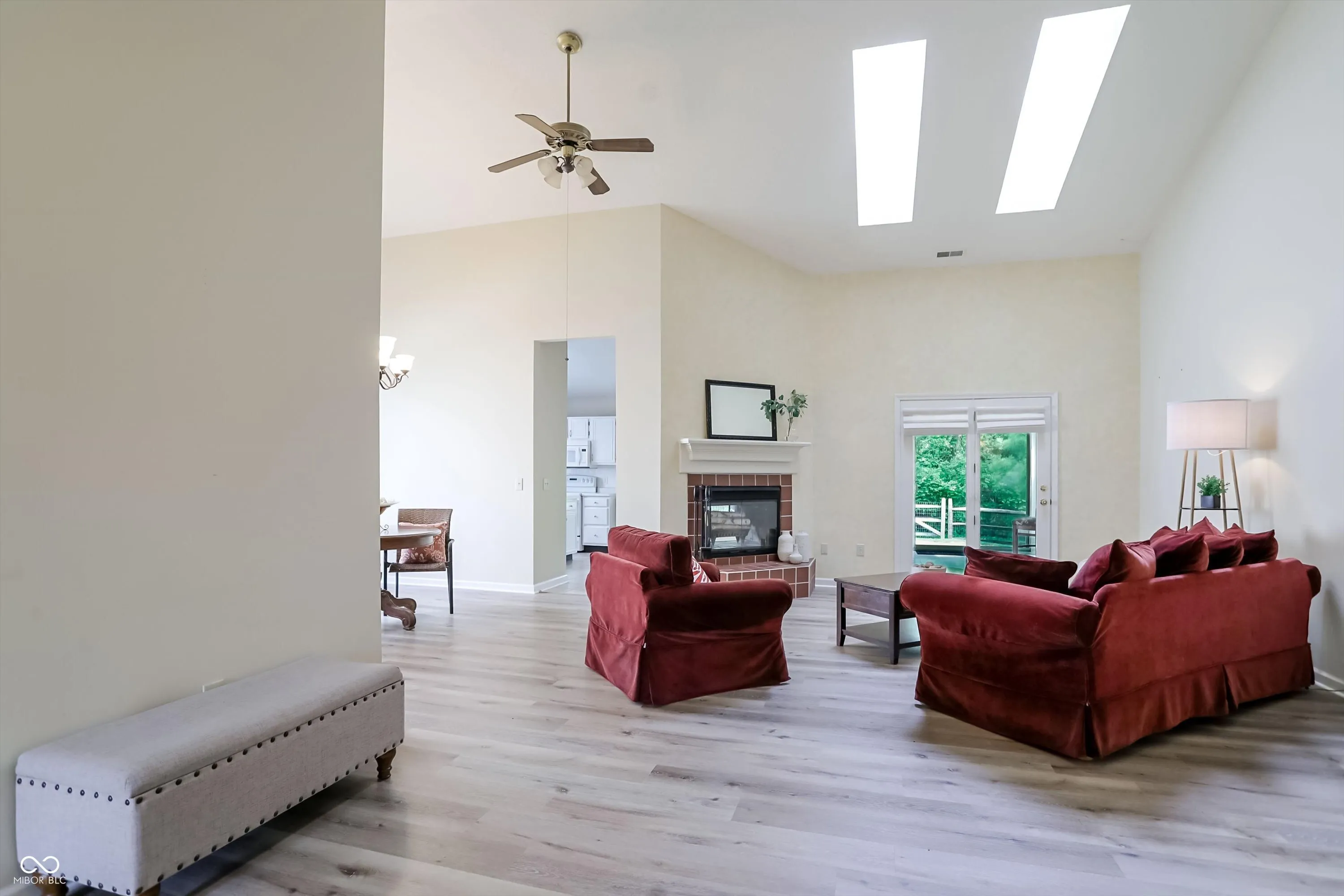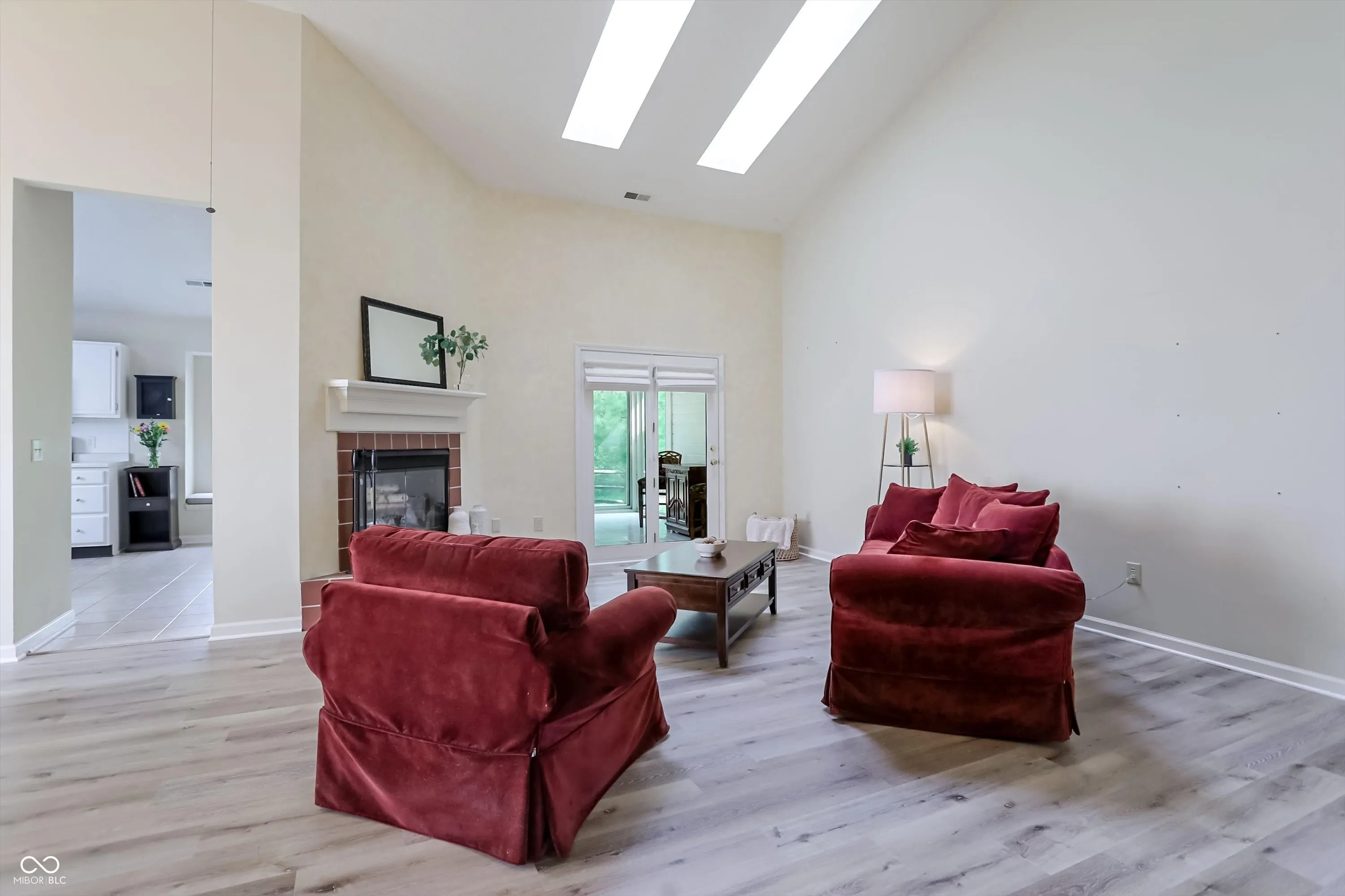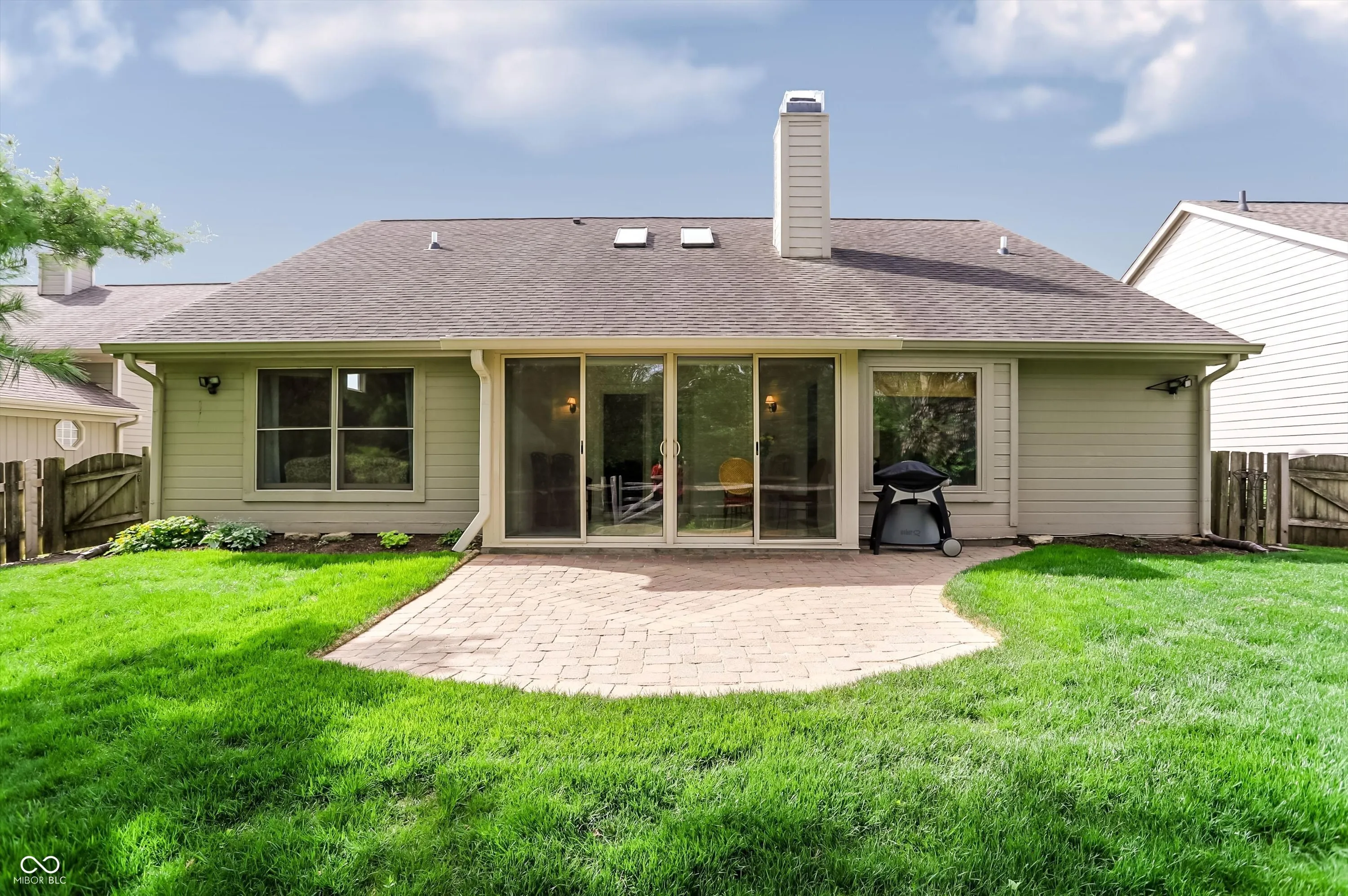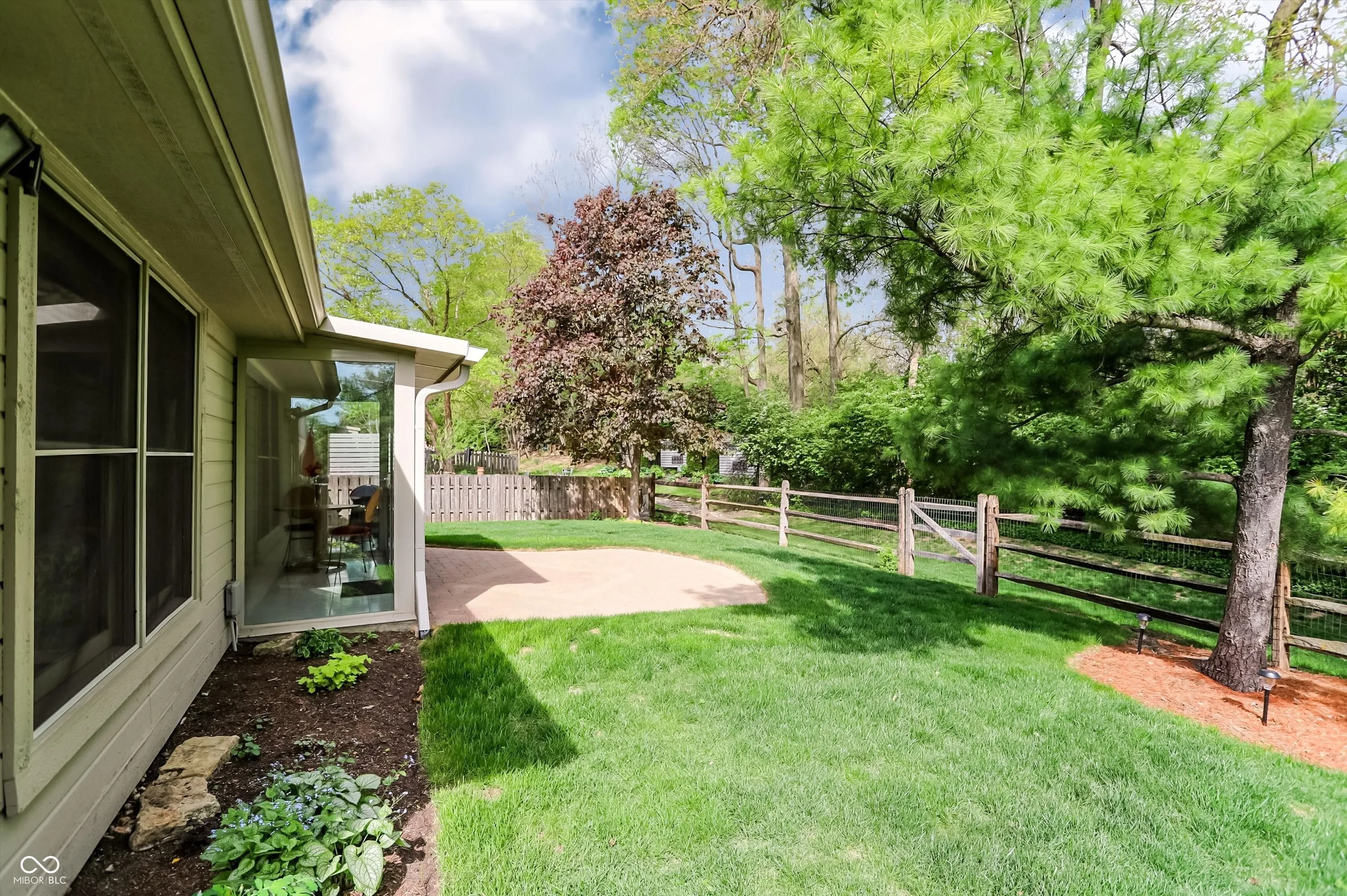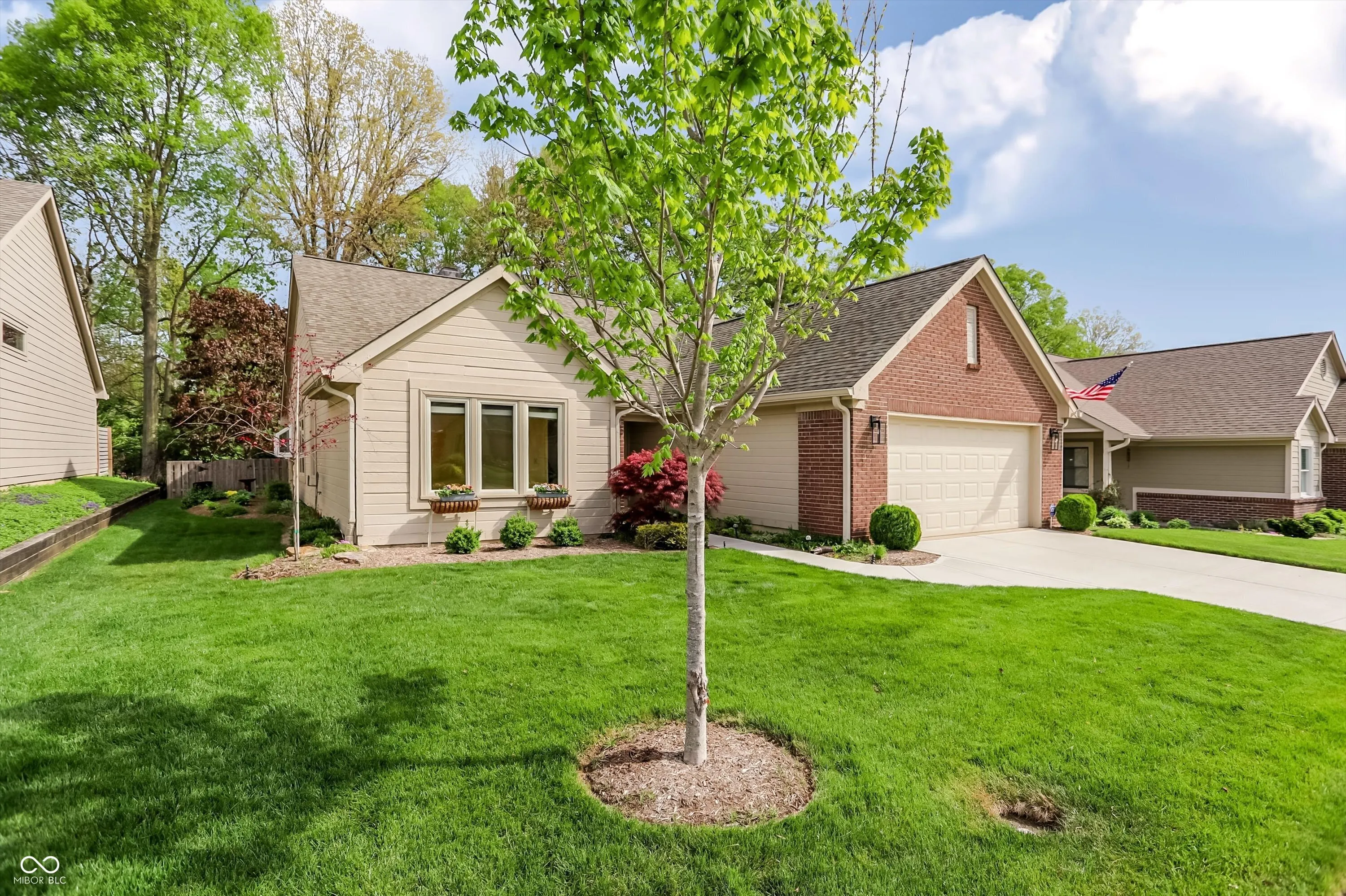 Tucked into the peaceful and highly sought-after Walden Pond community, this home offers the perfect blend of location, comfort, and charm. Ideally situated in the heart of Carmel, residents enjoy quick access to I-465, the Monon Trail, Monon Community Center, shopping, dining, parks, and top-rated schools, all while coming home to a quiet neighborhood with scenic ponds, sidewalks, and a true sense of community. From the moment you arrive, the home’s exceptional curb appeal sets the tone. Step inside to find a light-filled, open layout, featuring over 2000 sq. ft. of living space, enhanced by vaulted ceilings and skylights. The inviting living room and eat-in kitchen are connected by a striking double-sided fireplace, creating warmth and ambiance throughout. The kitchen is bright and functional, featuring white cabinetry, a center island, pantry, and charming window seat & garden window. Just beyond, the sunroom offers a cozy retreat with heated tile floors and direct access to the private backyard. Outdoors, the fully fenced yard backs to a wooded area, providing both privacy and a beautiful natural view. A custom brick patio and mature landscaping make this space ideal for relaxing or entertaining. The spacious primary suite includes double sinks, a jetted tub, and a walk-in closet. A second bedroom overlooks the well-manicured front lawn and is served by a full hall bath. Off the foyer, you’ll find a versatile space that can function as an office, craft room, playroom, or third bedroom. Brand new vinyl plank flooring flows throughout the main living areas, while plush new carpet adds comfort to the bedrooms. With its thoughtful design, inviting spaces, and unbeatable location, this home truly offers the best of Carmel living.