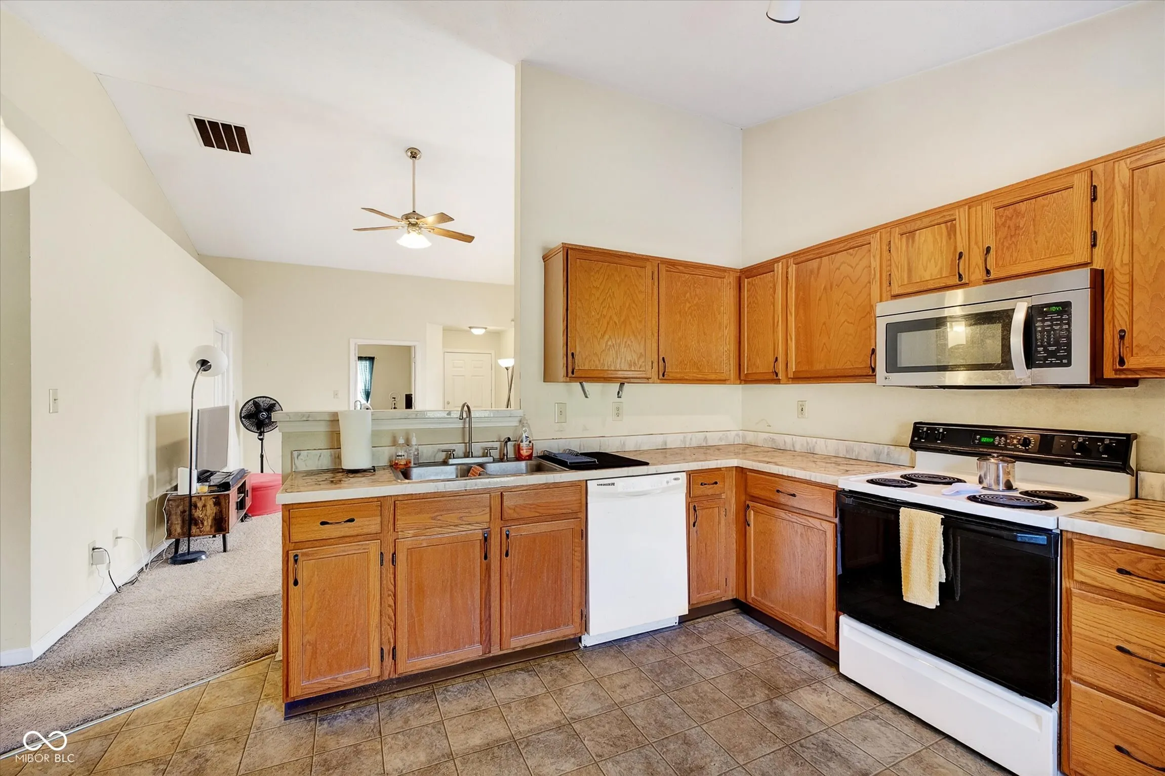 Great opportunity in this well-located home offering a functional layout and strong future potential. 3 bedrooms, 2 full baths, separate laundry room, and 2 car attached garage. Major mechanicals include a newer heat pump and furnace (approx. 4 years old). From the entry, you’re welcomed into the great room featuring vaulted ceilings and a spacious feel, flowing directly into the kitchen for easy everyday living and entertaining. The kitchen offers a small pantry and convenient access to the back deck area. Hall Full Bath has been redone with new vanity, flooring, toilet, and tiled tub/shower combo. The primary suite features vaulted ceilings, a walk-in closet, and attached full bath with a tub/shower combo and single vanity. The second bedroom also includes vaulted ceilings. The third bedroom is positioned at the front of the home with French doors, making it a great option for a home office or flex space. Window blinds are included. The neighborhood includes a community pool. Dishwasher, stove, and dryer are not operational. Priced to reflect cosmetic updates, repairs, and need for a new roof. This home is a solid option for buyers looking to build equity or invest. Seller will not make repairs. Roof replacement estimate attached.
