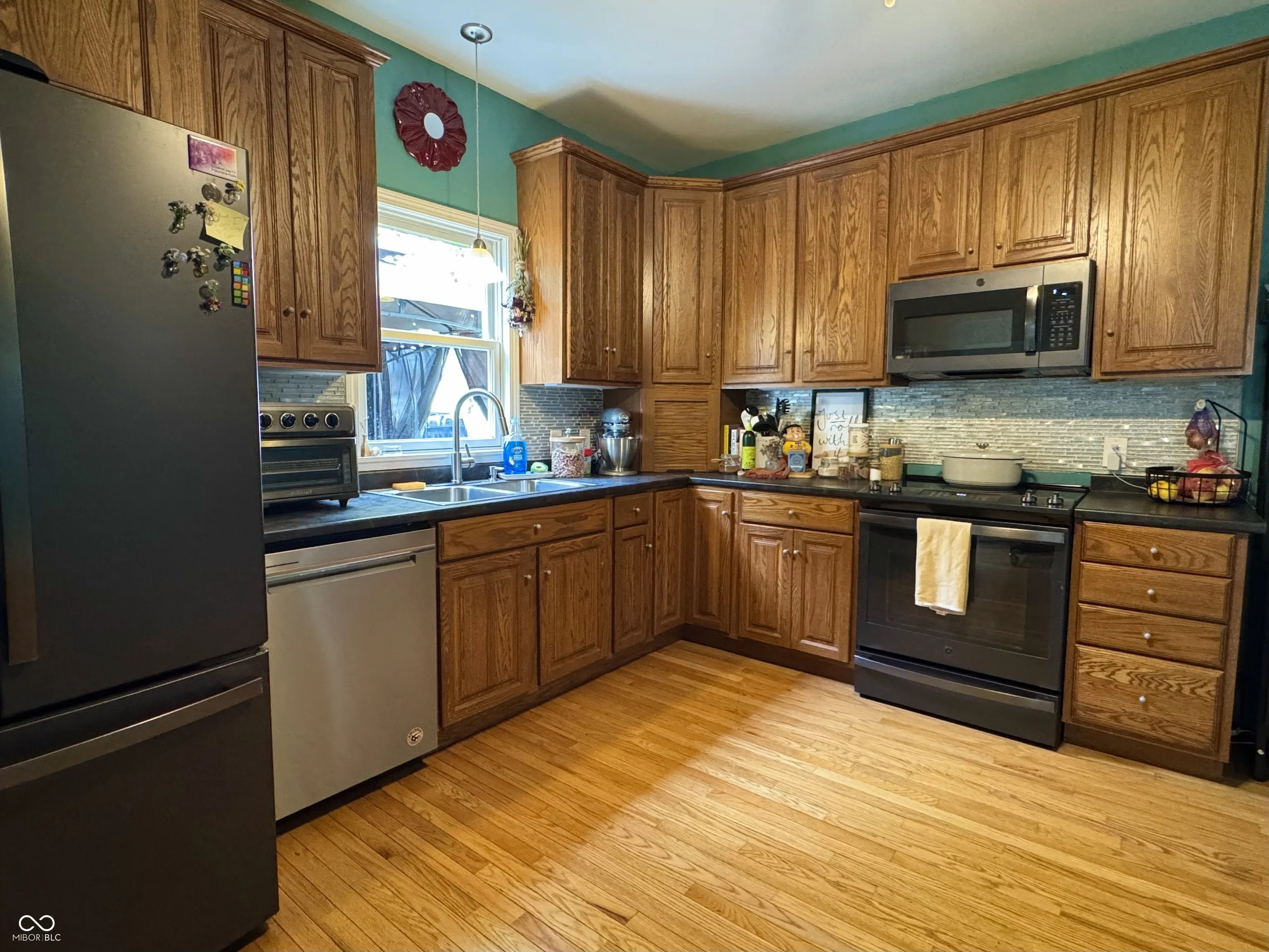 Now offering this charming home on historic West Main Street. Step in from the inviting covered front porch to be met with an open layout and plenty of natural lighting. Featuring two large bedrooms and two full bathrooms, a large open kitchen with a separate dining space and hardwood flooring throughout. The fully fenced back yard hosts a wooden deck and fire pit with seating area, plenty of room for entertaining. The two-car detached garage offers generous storage space and sought after off-street parking. Several updates throughout including slate gray kitchen appliances and garage roof in 2023, water softener in 2026, and brand new toilets in each bathroom.