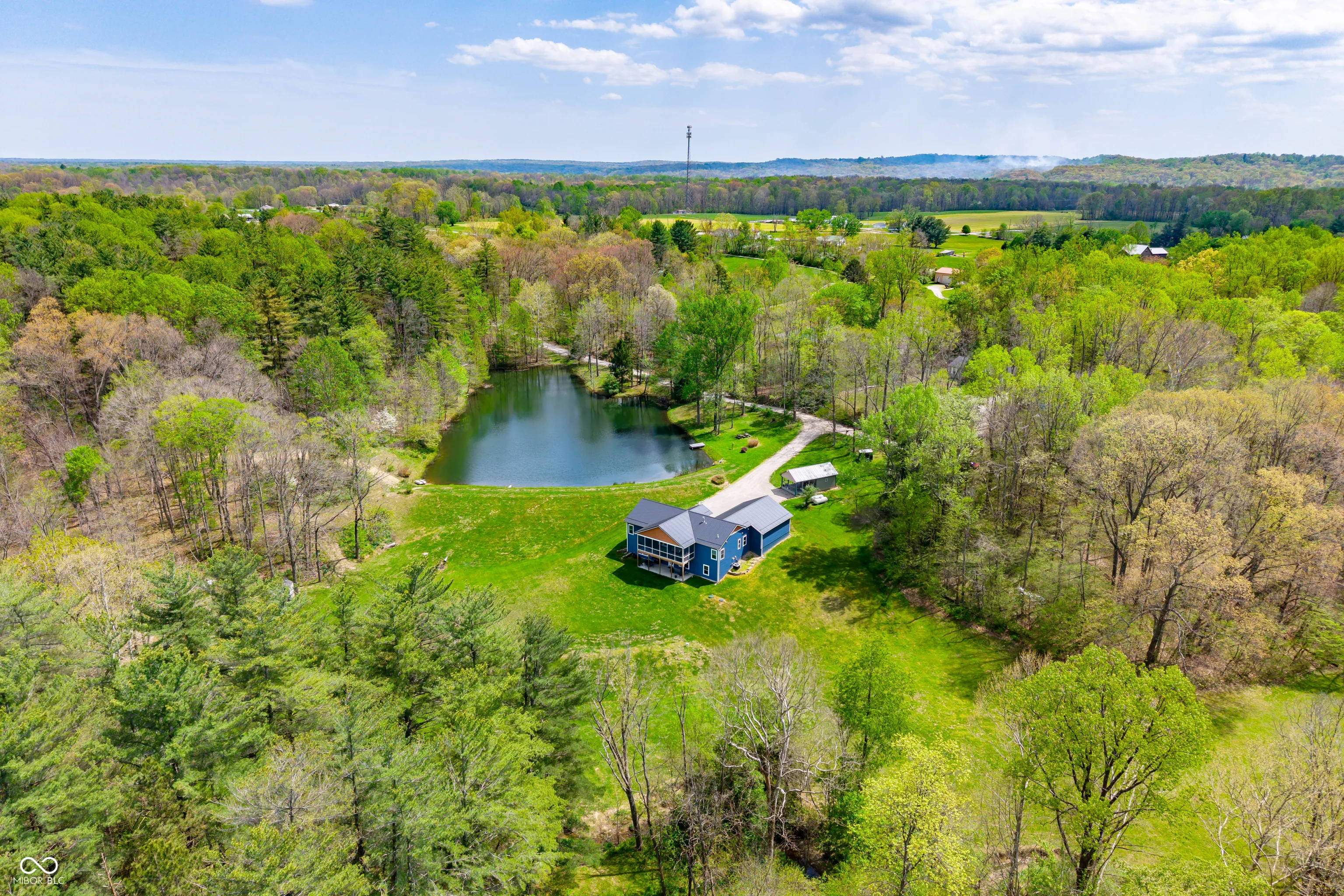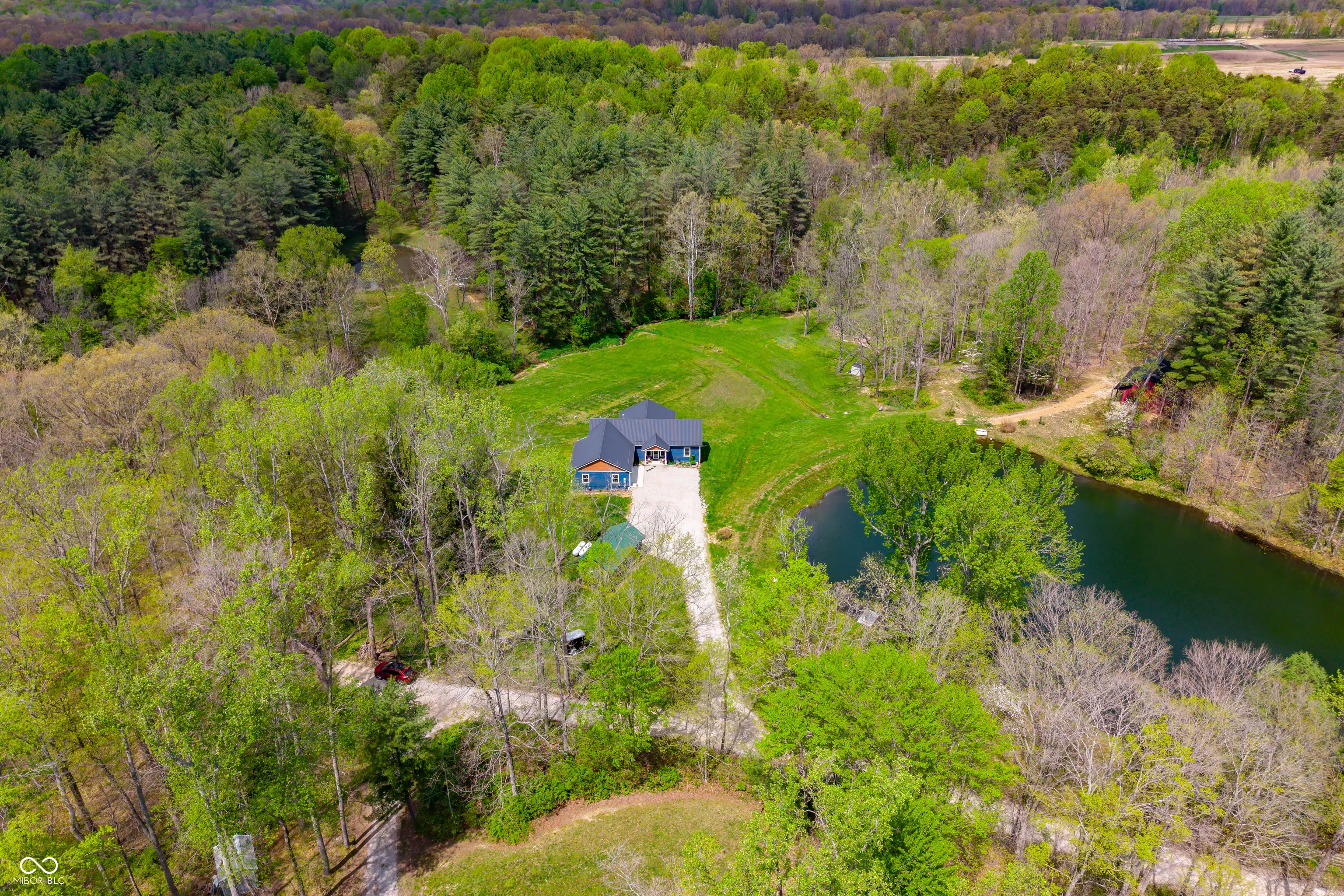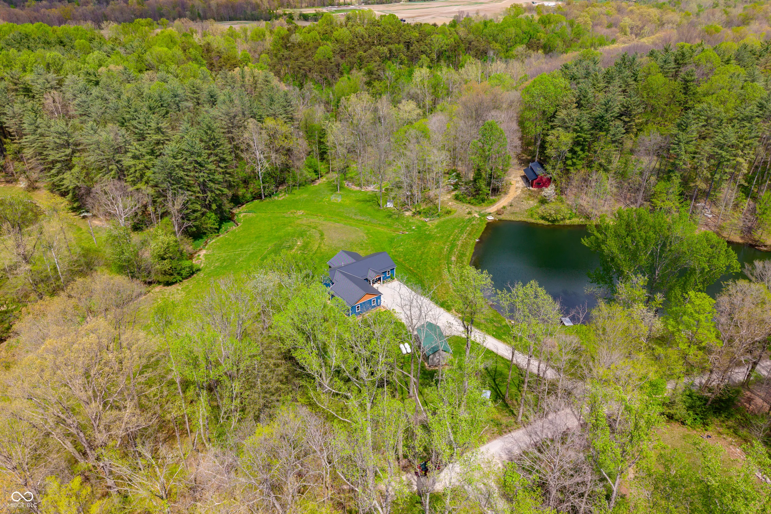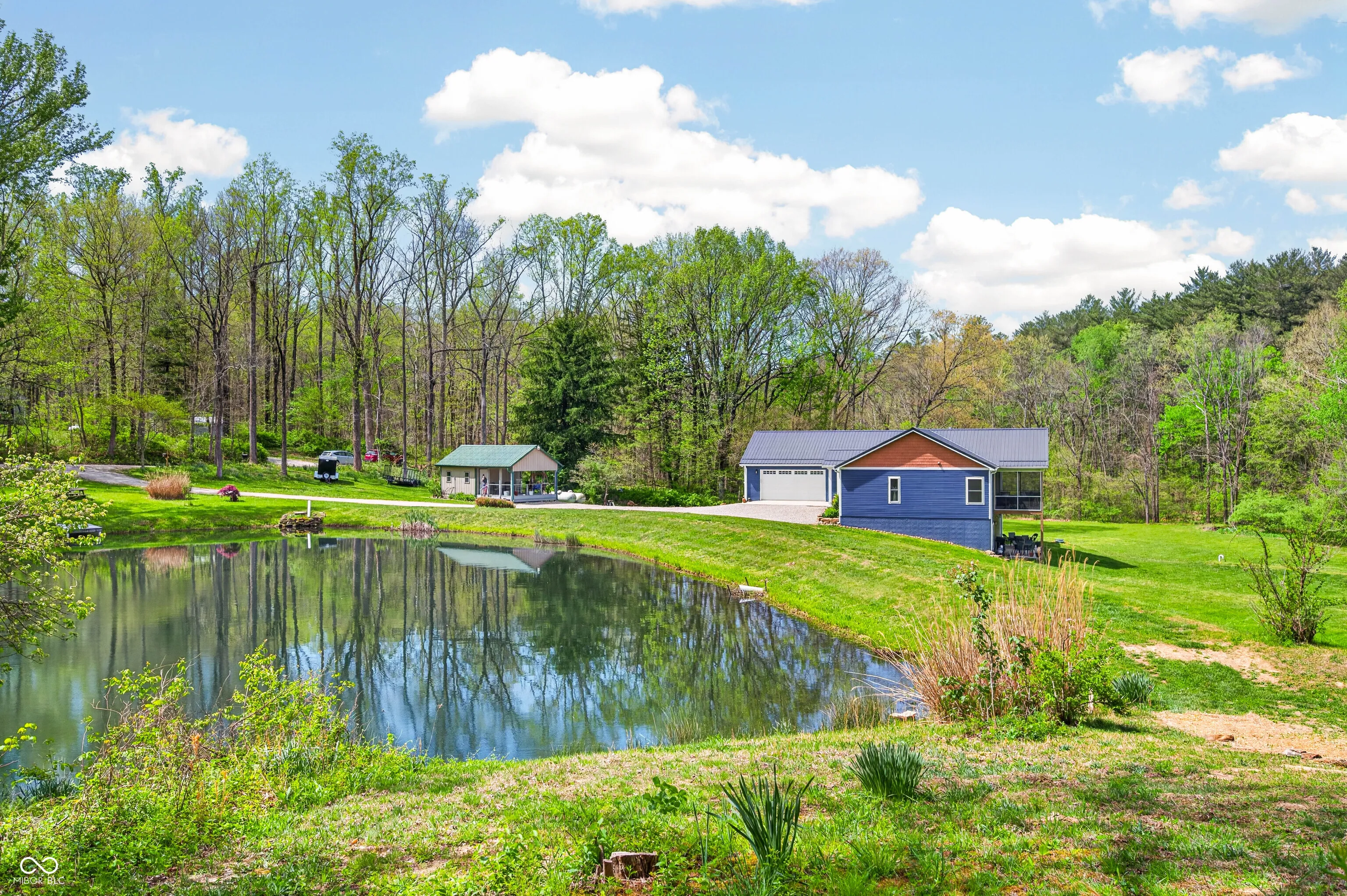 ESCAPE to Your PRIVATE WOODED 50-Acre Sanctuary in Northern Brown County! Rarely do you find a property that offers both total SECLUSION and seamless CONVIENCE. Nestled at the end of a quiet dead-end road, this sprawling 50-acre estate welcomes you with a pristine pond and the serene sounds of a winding creek. Step inside this custom-built, 3,600 sq. ft. RANCH to find an interior that truly defies expectations. The heart of the home is a magnificent open-concept family room and beautiful kitchen, anchored by a stunning stone FIREPLACE, handcrafted cabinetry, and elegant granite countertops. The thoughtful floor plan features 2 PRIMARY SUITES on the MAIN LEVEL, plus a dedicated home office. Each bathroom styles a uniquely made vanity and sink. A favorite of the current owners, the SCREENED-IN BACK PORCH offers a front-row seat to local wildlife at all hours. The fully finished WALKOUT BASEMENT features a massive open living area, a kitchenette, and a private 3rd bedroom with a full bath-perfect for guests or a multi-generational setup. The oversized 2 car garage is 30’x22′ w/9′ ceiling and a 14’x8′ bump out. The rustic 30×40 pole barn (with new siding/roof and an insulated workshop) sits on the hill overlooking the pond. The charming 15×15 “She-Shed” or guest house is insulated and already plumbed for a full bath. 40 acres of the woods is CLASSIFIED FOREST, allowing for much lower property taxes. PRIME LOCATION: 2 MINUTES TO SR135; 12 minutes to NASHILLE RESTAURANTS, SHOPS, DISTILLERIES, Brown County MUSIC CENTER, Brown County State Park; and JUST 20 minutes NORTH to TRAFALGAR; 25 minutes to LAKE LEMON; and commute to downtown Indy or the airport right at an hour.