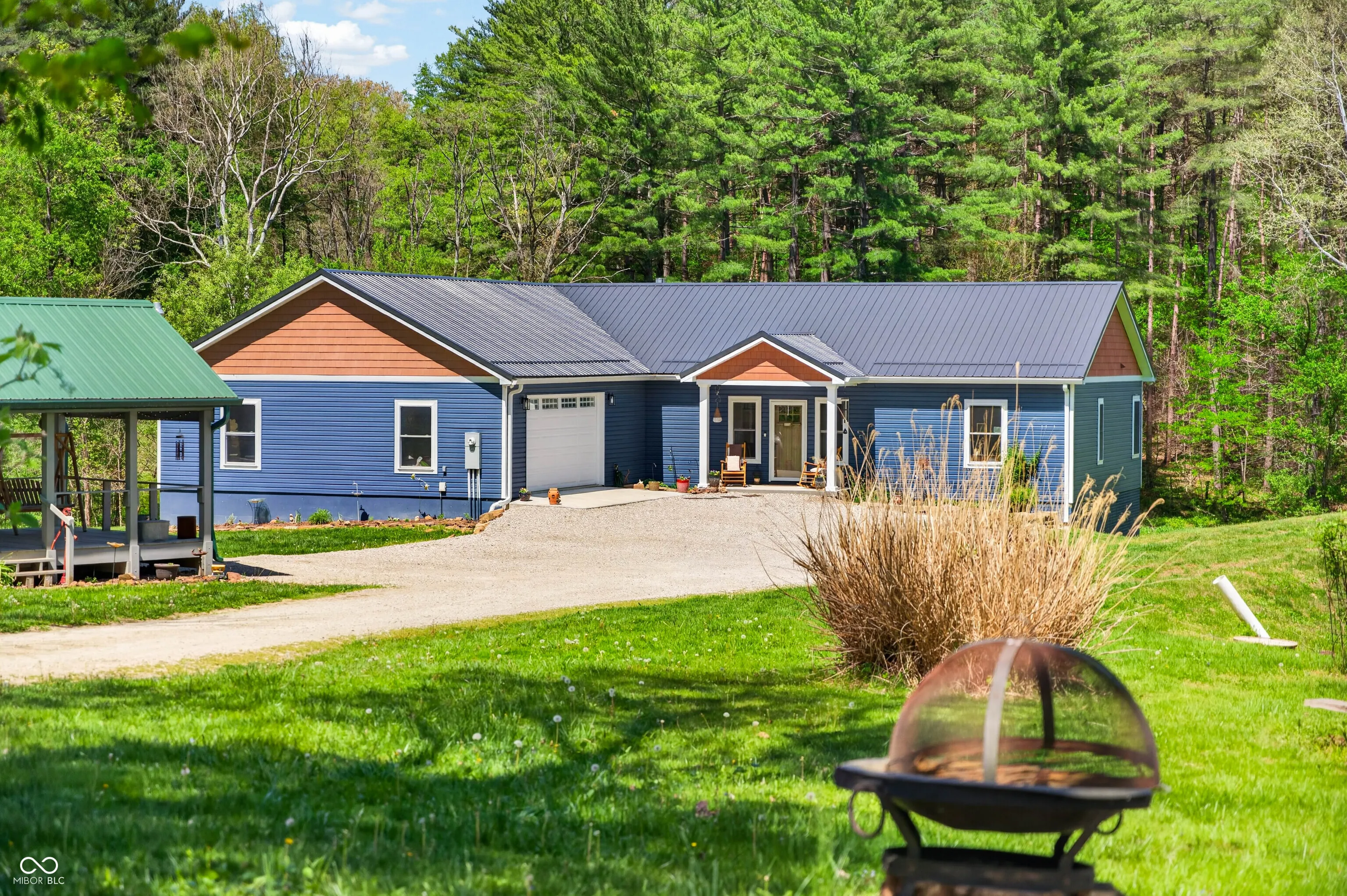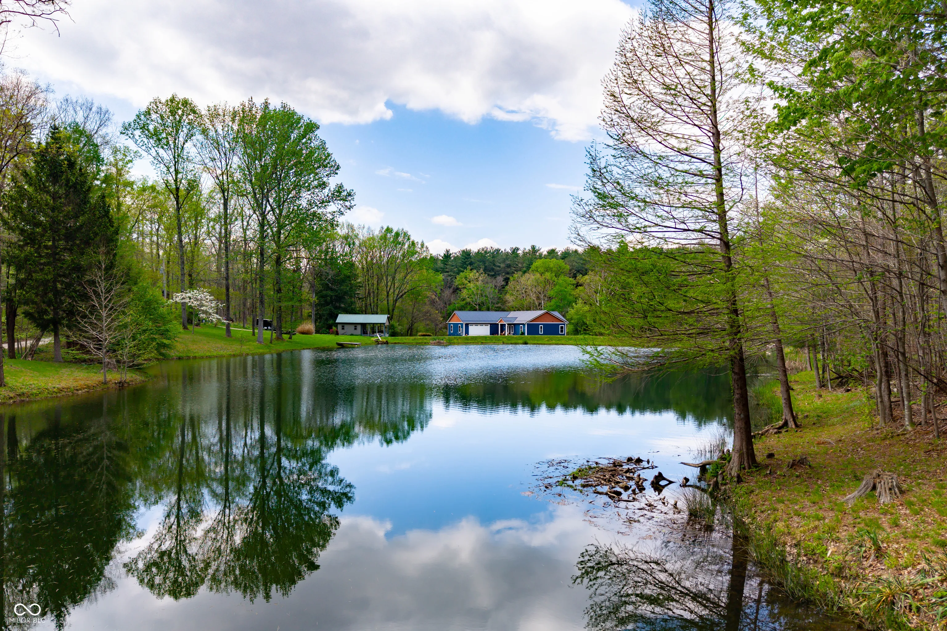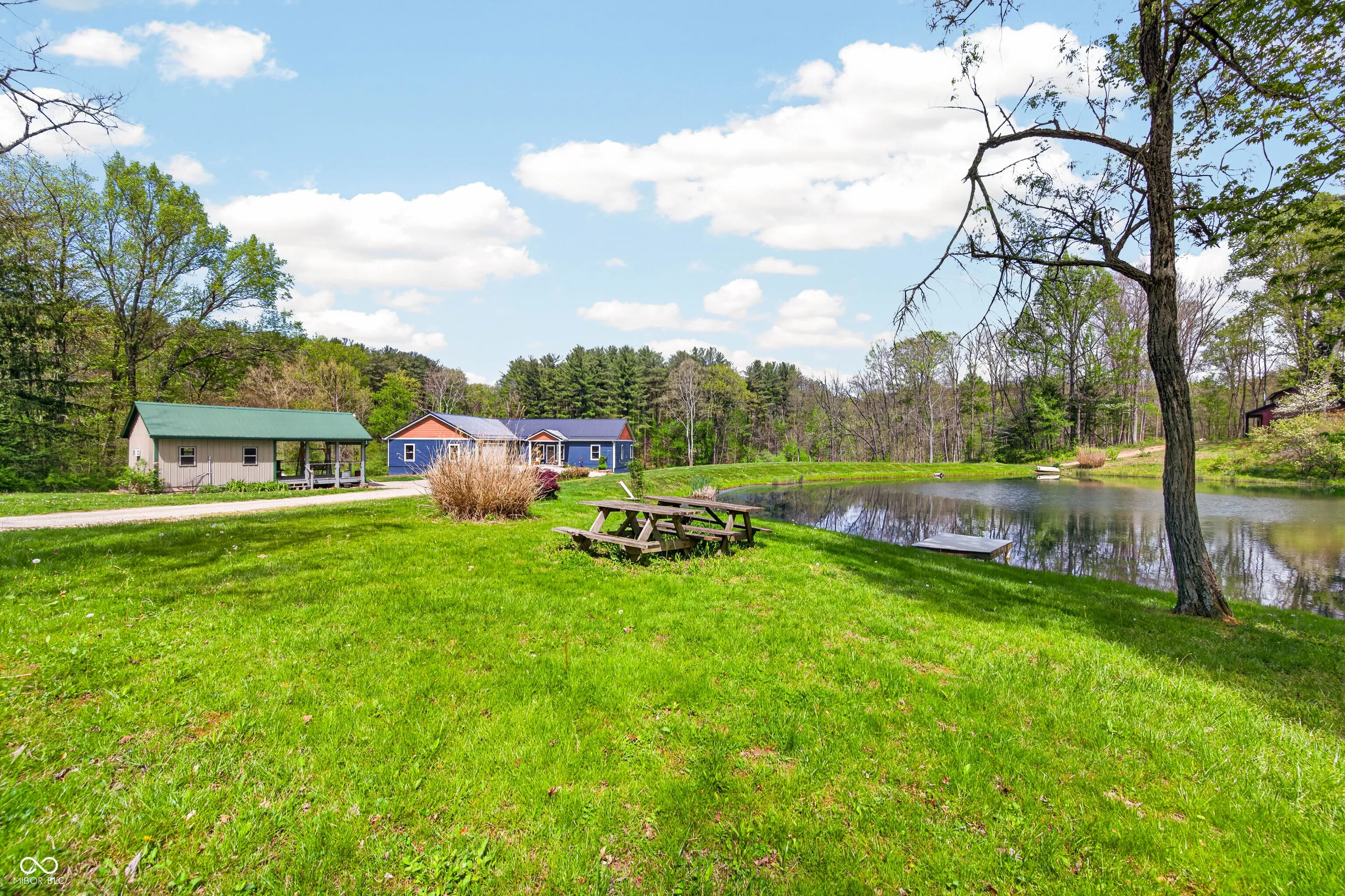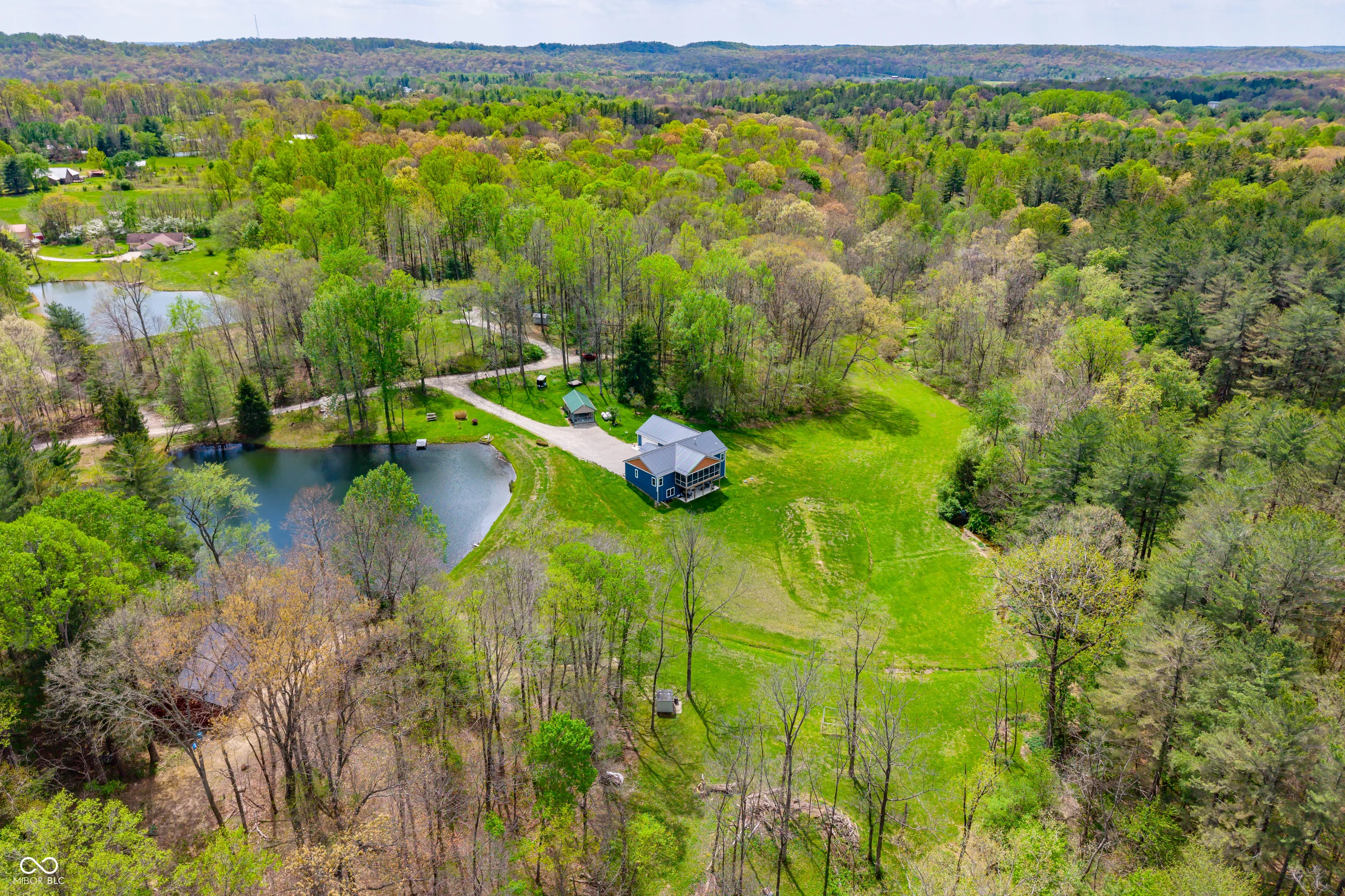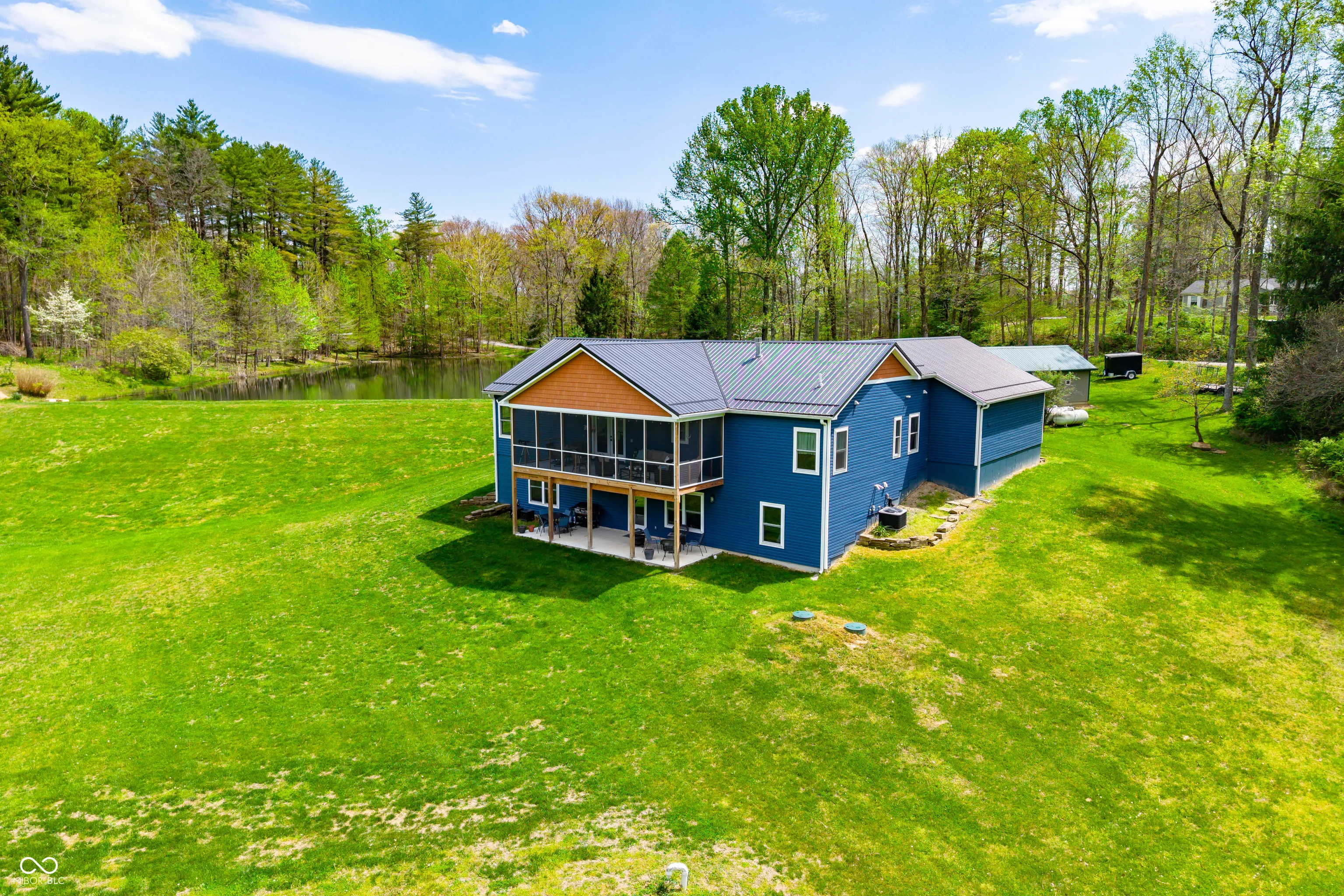 ESCAPE to Your PRIVATE WOODED 50-Acre Sanctuary in Northern Brown County! Rarely do you find a property that offers both total SECLUSION and seamless CONVIENCE. Nestled at the end of a quiet dead-end road, this sprawling 50-acre estate welcomes you with a pristine pond and the serene sounds of a winding creek. Step inside this custom-built, 3,600 sq. ft. RANCH to find an interior that truly defies expectations. The heart of the home is a magnificent open-concept family room and beautiful kitchen, anchored by a stunning stone FIREPLACE, handcrafted cabinetry, and elegant granite countertops. The thoughtful floor plan features 2 PRIMARY SUITES on the MAIN LEVEL, plus a dedicated home office. Each bathroom styles a uniquely made vanity and sink. A favorite of the current owners, the SCREENED-IN BACK PORCH offers a front-row seat to local wildlife at all hours. The fully finished WALKOUT BASEMENT features a massive open living area, a kitchenette, and a private 3rd bedroom with a full bath-perfect for guests or a multi-generational setup. The oversized 2 car garage is 30’x22′ w/9′ ceiling and a 14’x8′ bump out. The rustic 30×40 pole barn (with new siding/roof and an insulated workshop) sits on the hill overlooking the pond. The charming 15×15 “She-Shed” or guest house is insulated and already plumbed for a full bath. 40 acres of the woods is CLASSIFIED FOREST, allowing for much lower property taxes. PRIME LOCATION: 2 MINUTES TO SR135; 12 minutes to NASHILLE RESTAURANTS, SHOPS, DISTILLERIES, Brown County MUSIC CENTER, Brown County State Park; and JUST 20 minutes NORTH to TRAFALGAR; 25 minutes to LAKE LEMON; and commute to downtown Indy or the airport right at an hour.