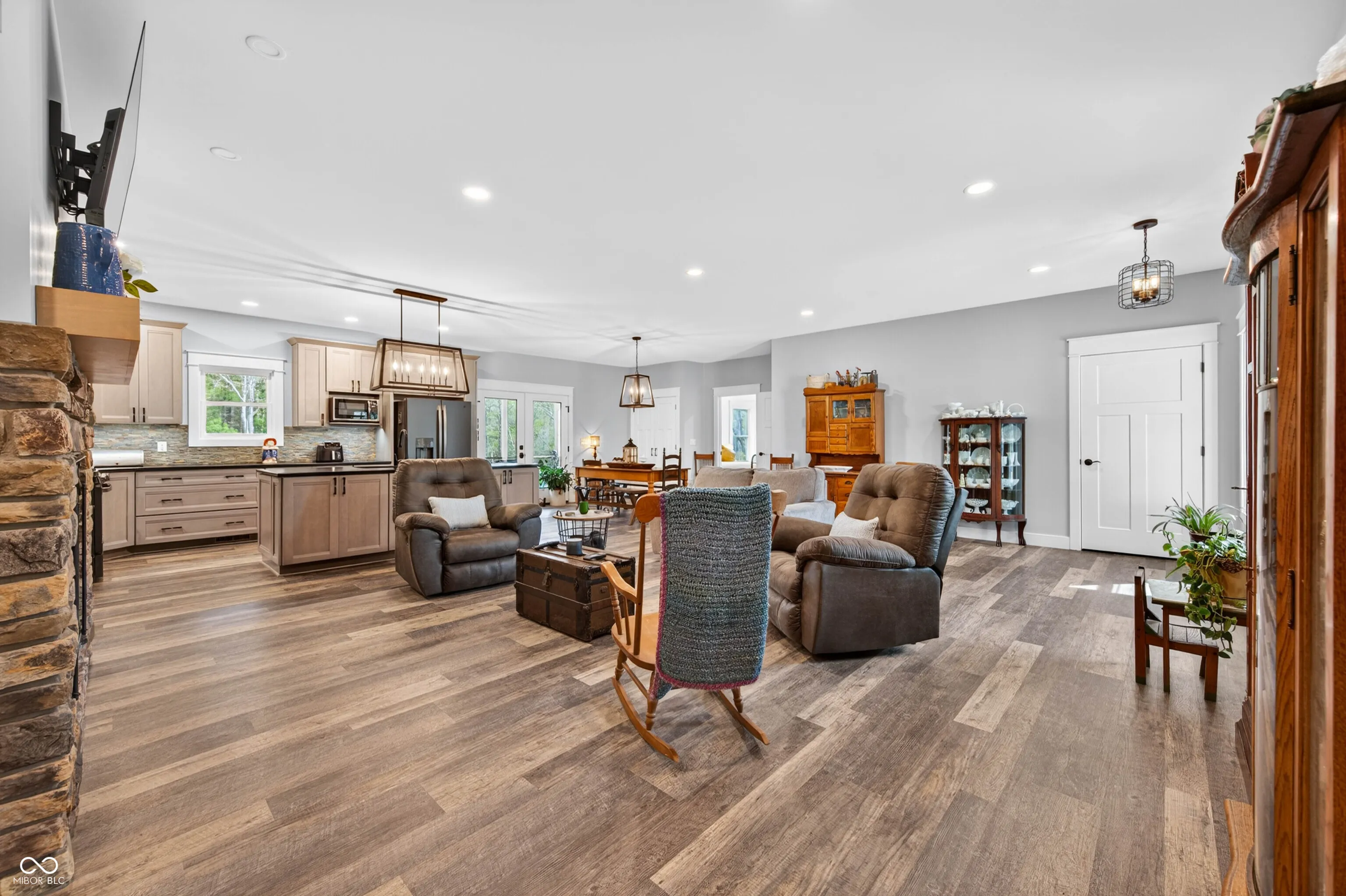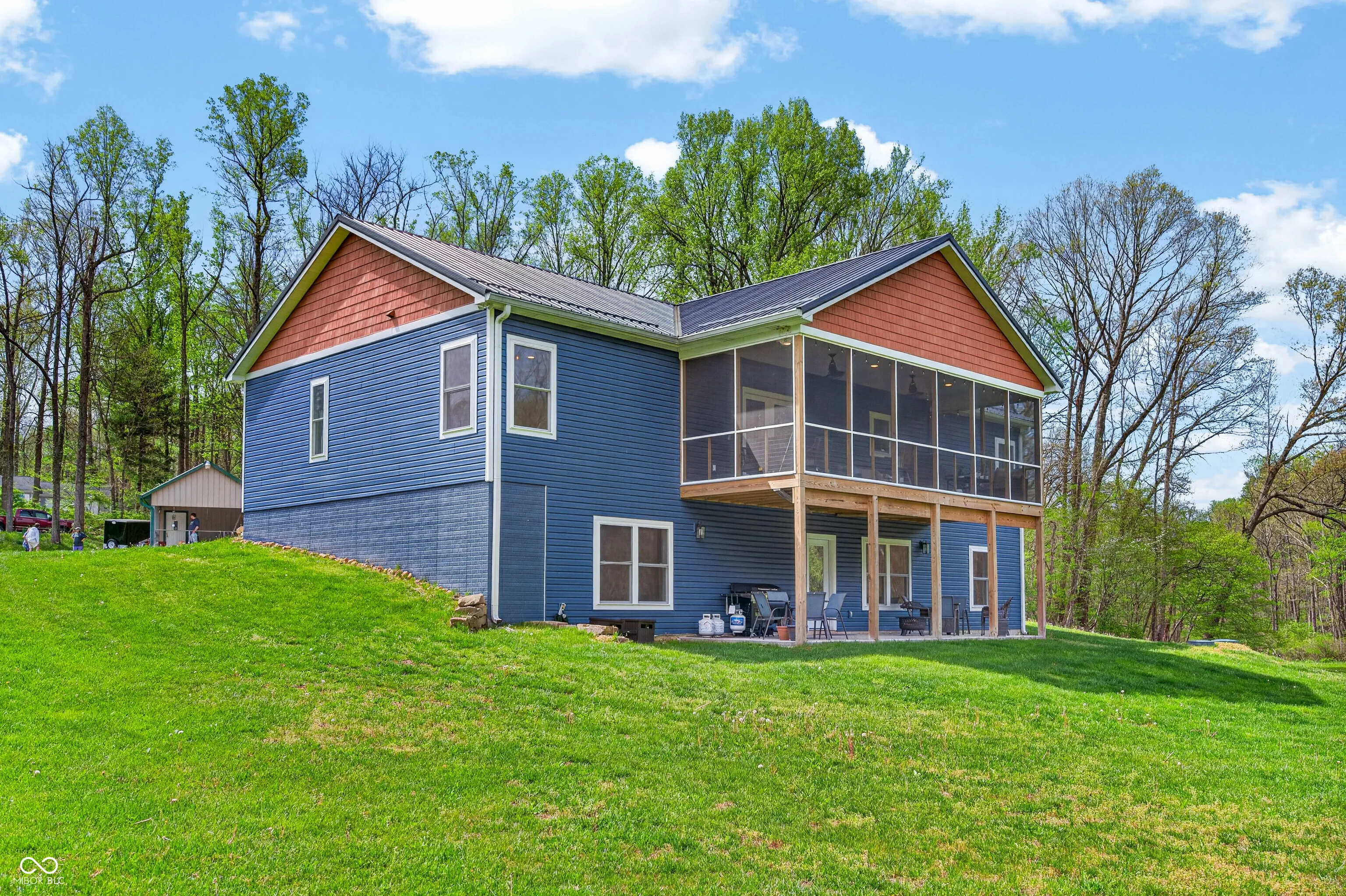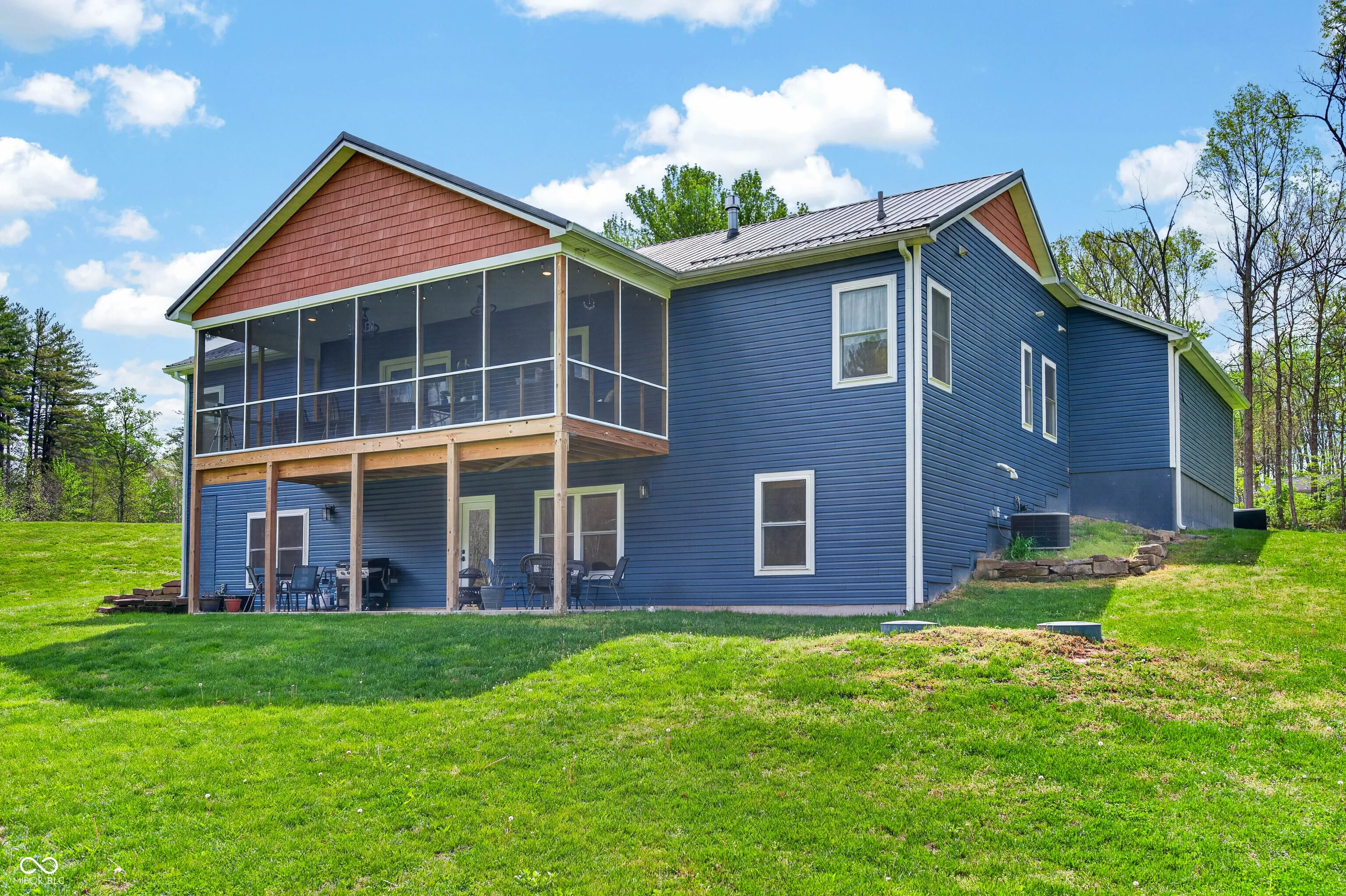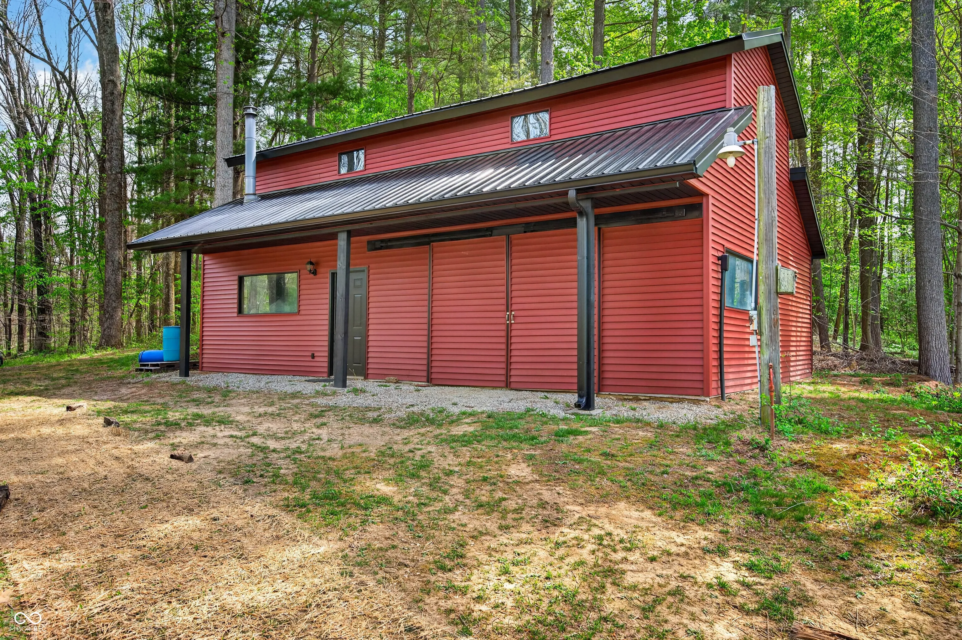 ESCAPE to Your PRIVATE WOODED 50-Acre Sanctuary in Northern Brown County! Rarely do you find a property that offers both total SECLUSION and seamless CONVIENCE. Nestled at the end of a quiet dead-end road, this sprawling 50-acre estate welcomes you with a pristine pond and the serene sounds of a winding creek. Step inside this custom-built, 3,600 sq. ft. RANCH to find an interior that truly defies expectations. The heart of the home is a magnificent open-concept family room and beautiful kitchen, anchored by a stunning stone FIREPLACE, handcrafted cabinetry, and elegant granite countertops. The thoughtful floor plan features 2 PRIMARY SUITES on the MAIN LEVEL, plus a dedicated home office. Each bathroom styles a uniquely made vanity and sink. A favorite of the current owners, the SCREENED-IN BACK PORCH offers a front-row seat to local wildlife at all hours. The fully finished WALKOUT BASEMENT features a massive open living area, a kitchenette, and a private 3rd bedroom with a full bath-perfect for guests or a multi-generational setup. The oversized 2 car garage is 30’x22′ w/9′ ceiling and a 14’x8′ bump out. The rustic 30×40 pole barn (with new siding/roof and an insulated workshop) sits on the hill overlooking the pond. The charming 15×15 “She-Shed” or guest house is insulated and already plumbed for a full bath. 40 acres of the woods is CLASSIFIED FOREST, allowing for much lower property taxes. PRIME LOCATION: 2 MINUTES TO SR135; 12 minutes to NASHILLE RESTAURANTS, SHOPS, DISTILLERIES, Brown County MUSIC CENTER, Brown County State Park; and JUST 20 minutes NORTH to TRAFALGAR; 25 minutes to LAKE LEMON; and commute to downtown Indy or the airport right at an hour.