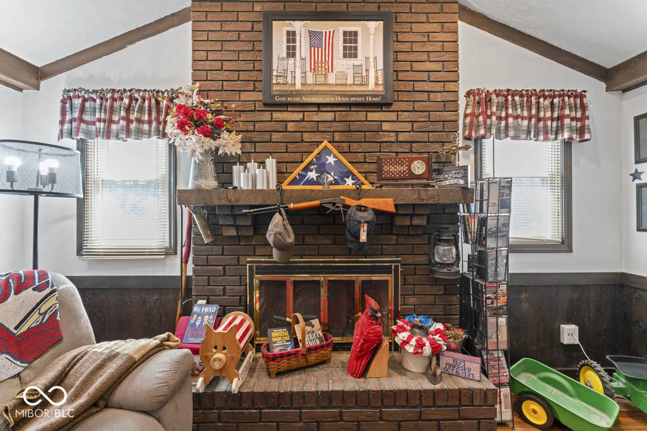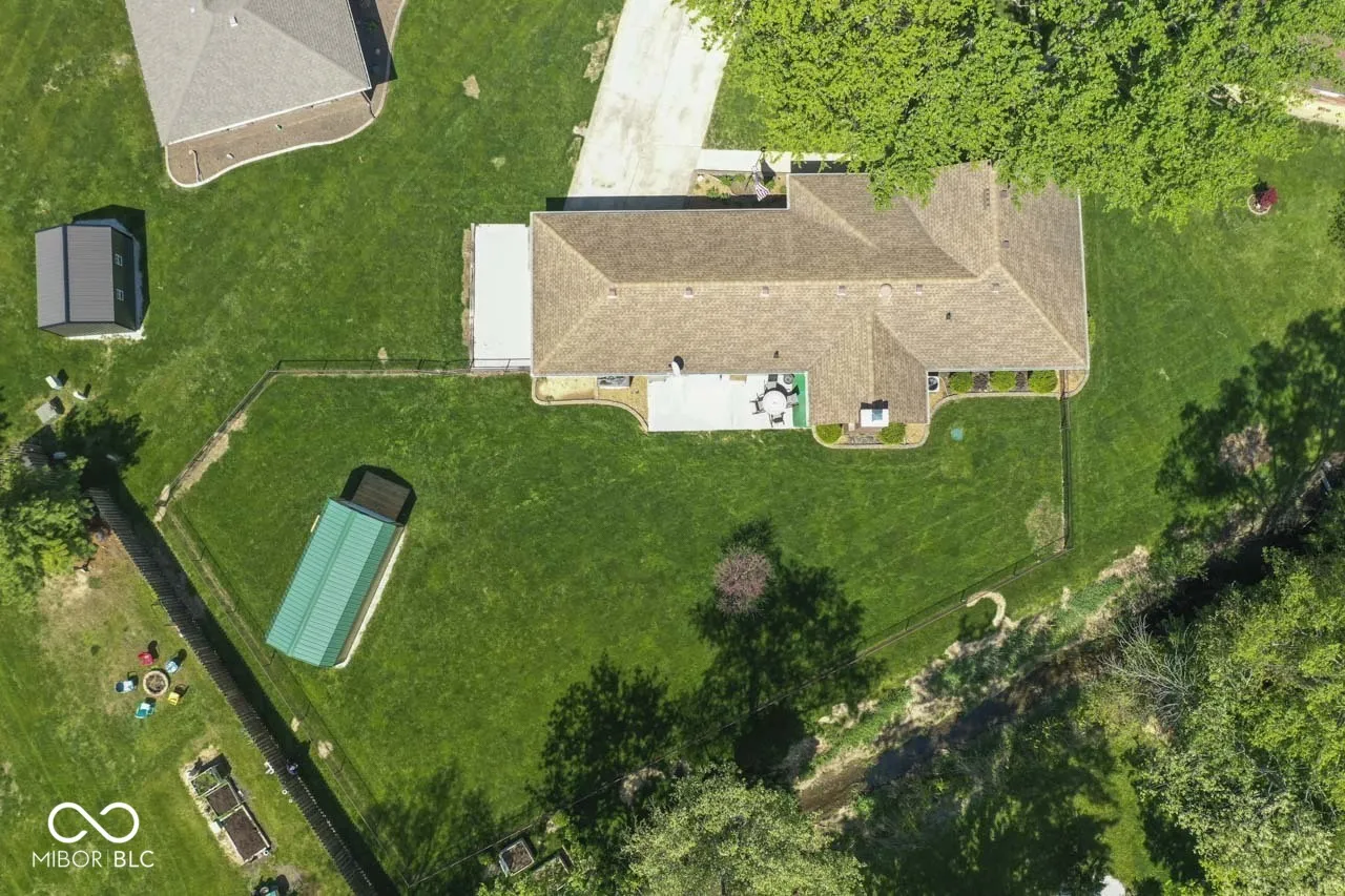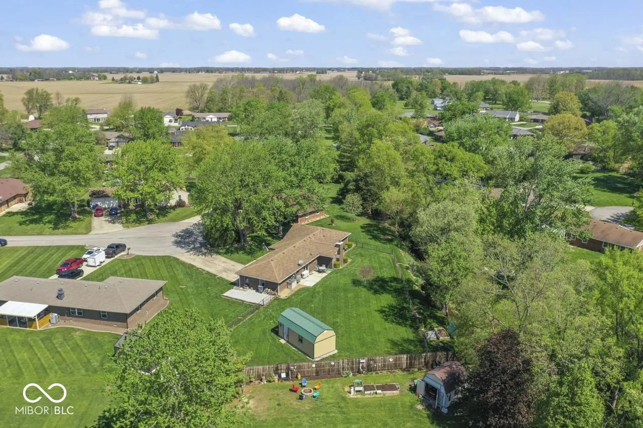 Beautiful all brick ranch on a quiet cul-de-sac in popular Park Estates! This 3 bedroom, 2 bath ranch features a large lot with a full fenced back yard that backs up to a creek. Plenty of room between you and your neighbors! The backyard also features a 16×24 shed with a garage door opening with ramp, a side service door, and two storage lofts. The generous driveway allows for plenty of parking and a gravel pad next to the garage is perfect for your trailer or camper. Inside, the home features a welcoming foyer that leads to a large living room, dining room, and a vaulted family room with a woodburning brick fireplace. The kitchen has beautiful wood cabinets with pull out shelves and trash drawer. Easy access to the back patio and the laundry closet. Primary bedroom has a walk-in closet and en-suite bathroom. The hallway bathroom is handicap accessible with a walk in shower that includes a bench, hand shower head and grab bars. All bedrooms have ceiling fans with overhead lights. Garage has ramp into the house. A full house generator is in the cabinet on the back patio. This home is located with quick access to Anderson, Alexandria and Muncie, close to highways and I-69.