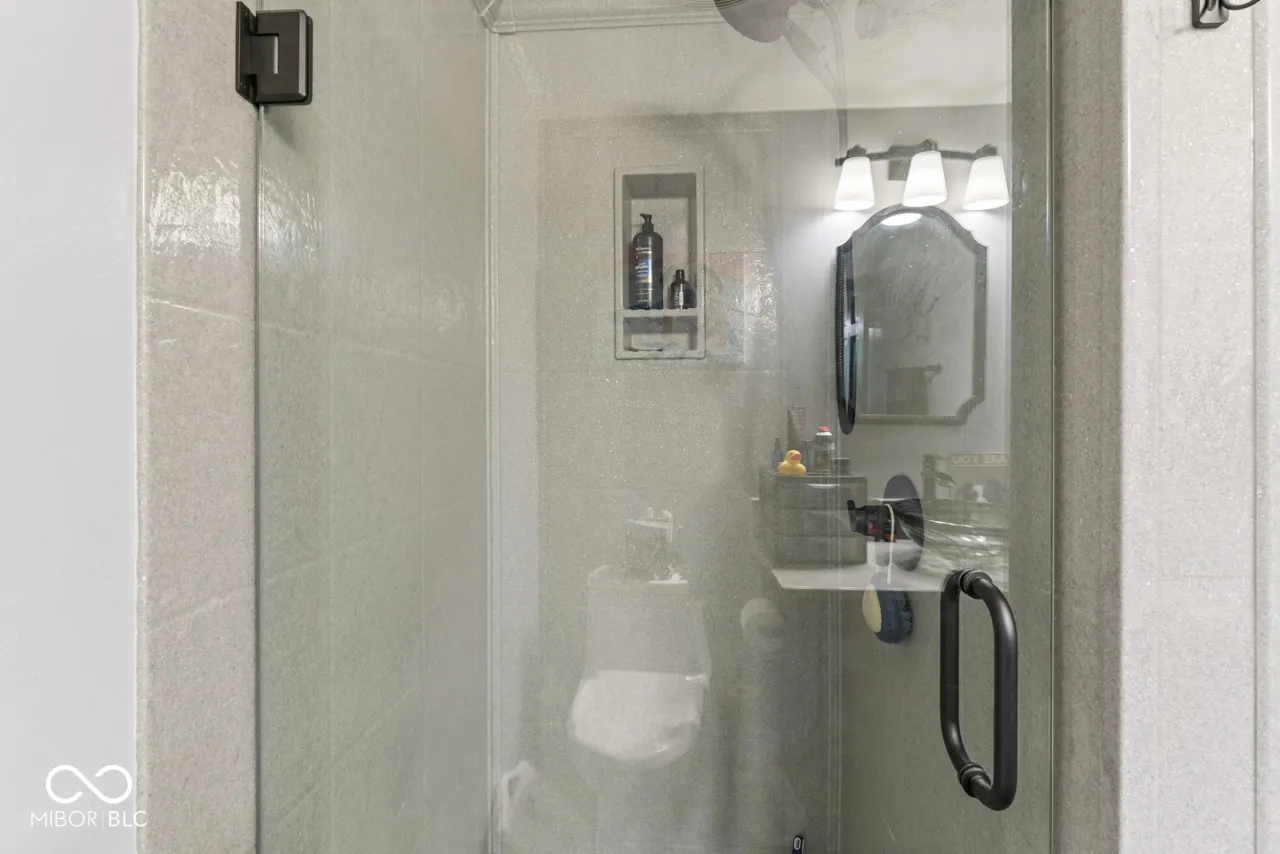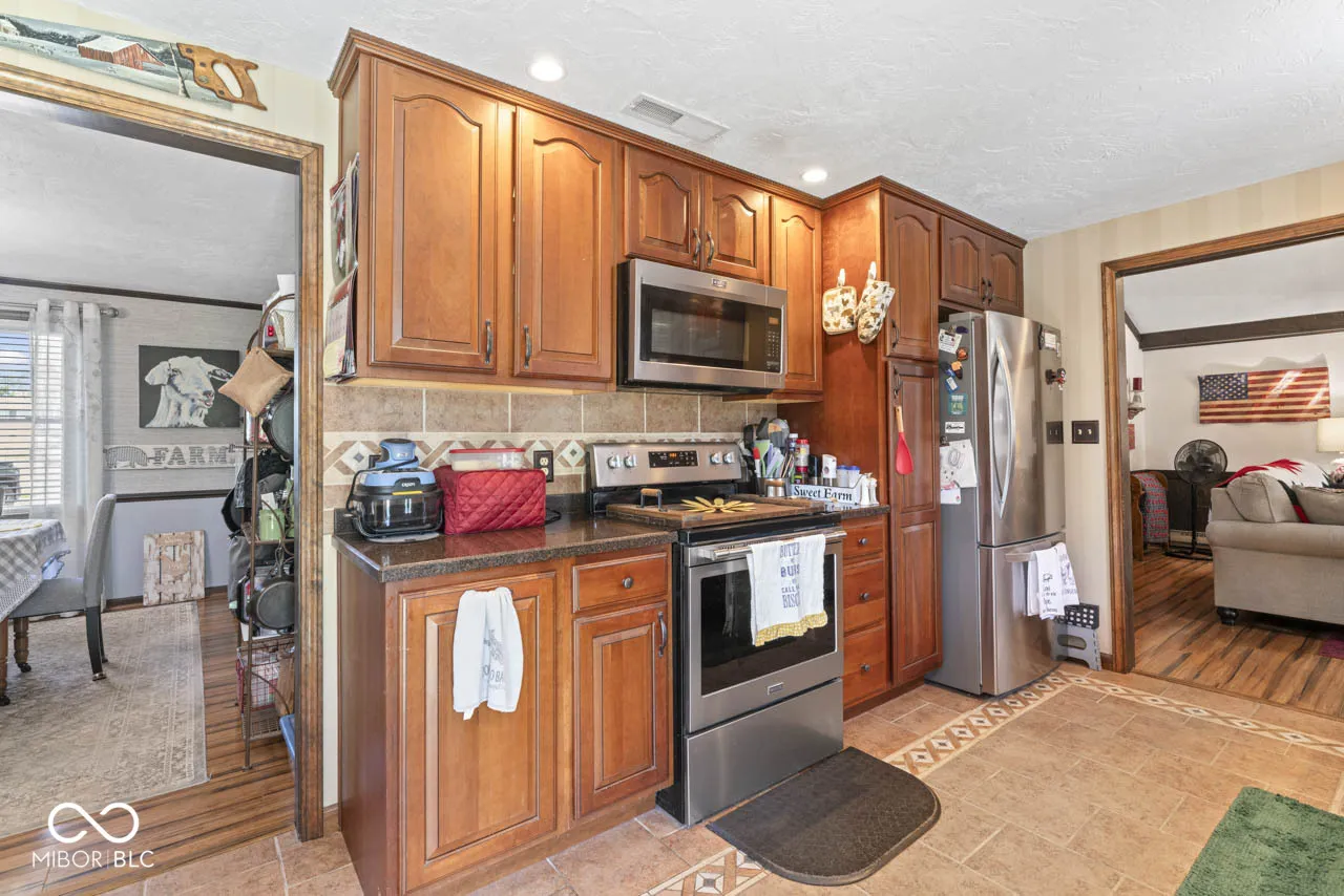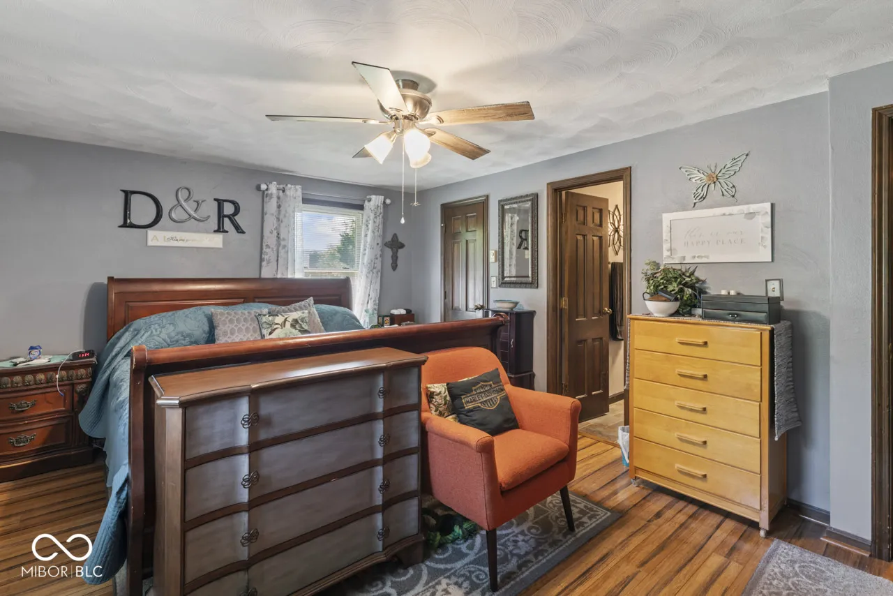 Beautiful all brick ranch on a quiet cul-de-sac in popular Park Estates! This 3 bedroom, 2 bath ranch features a large lot with a full fenced back yard that backs up to a creek. Plenty of room between you and your neighbors! The backyard also features a 16×24 shed with a garage door opening with ramp, a side service door, and two storage lofts. The generous driveway allows for plenty of parking and a gravel pad next to the garage is perfect for your trailer or camper. Inside, the home features a welcoming foyer that leads to a large living room, dining room, and a vaulted family room with a woodburning brick fireplace. The kitchen has beautiful wood cabinets with pull out shelves and trash drawer. Easy access to the back patio and the laundry closet. Primary bedroom has a walk-in closet and en-suite bathroom. The hallway bathroom is handicap accessible with a walk in shower that includes a bench, hand shower head and grab bars. All bedrooms have ceiling fans with overhead lights. Garage has ramp into the house. A full house generator is in the cabinet on the back patio. This home is located with quick access to Anderson, Alexandria and Muncie, close to highways and I-69.