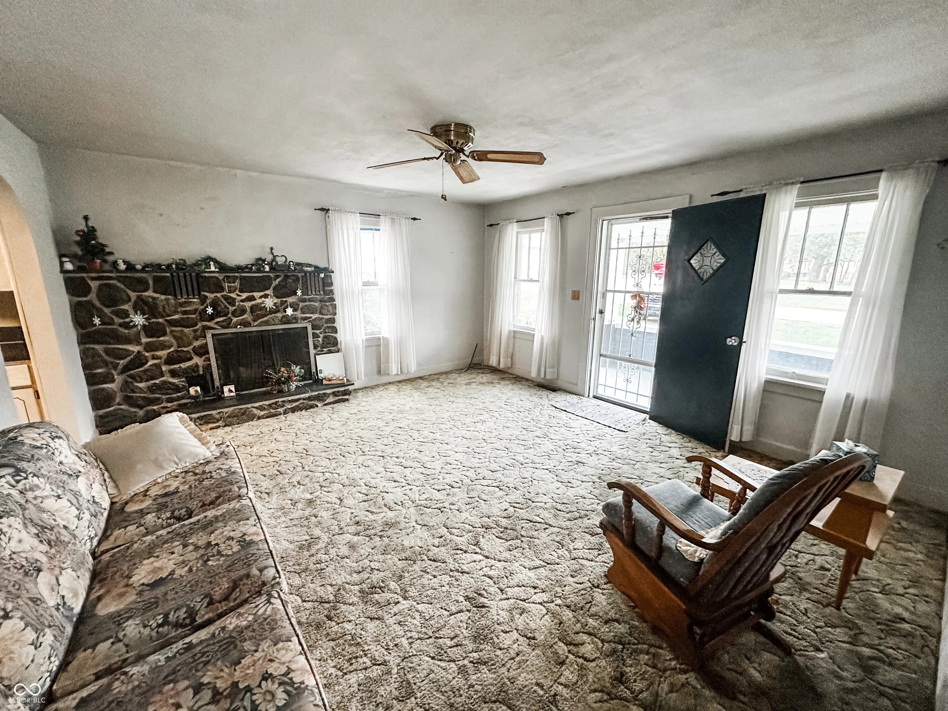 Quaint 2 bedroom home on a large double lot on Anderson’s east side. Hardwood floors under the carpets throughout. Gas log fireplace in the living room with stone surround.
