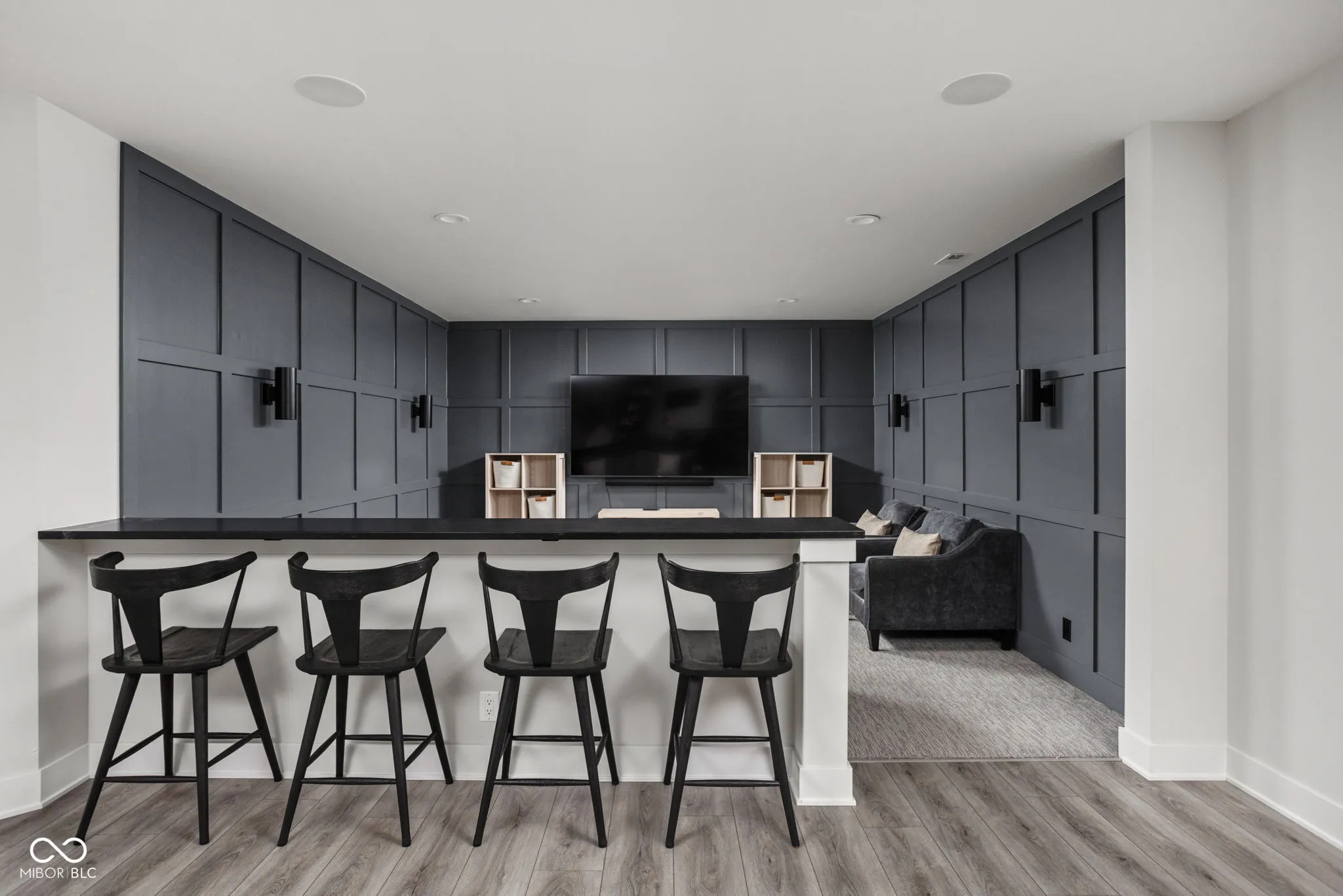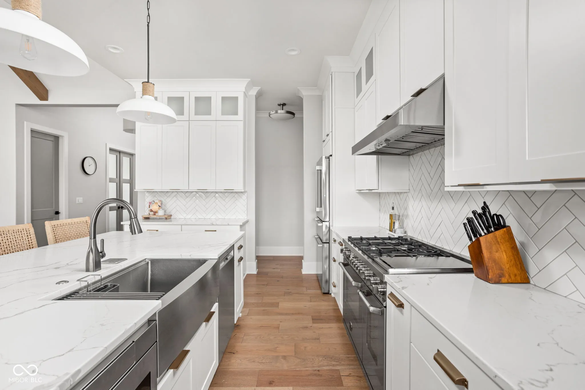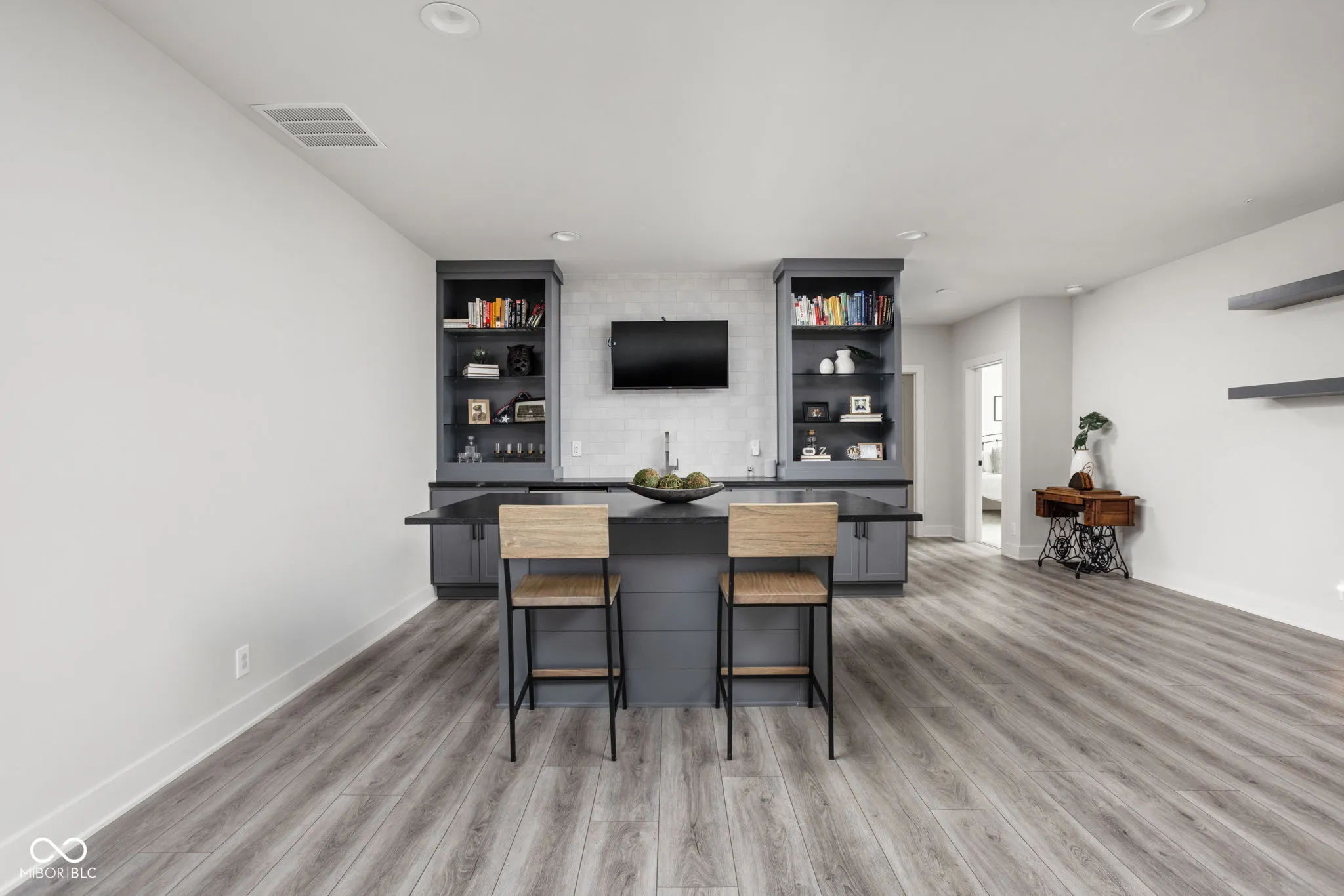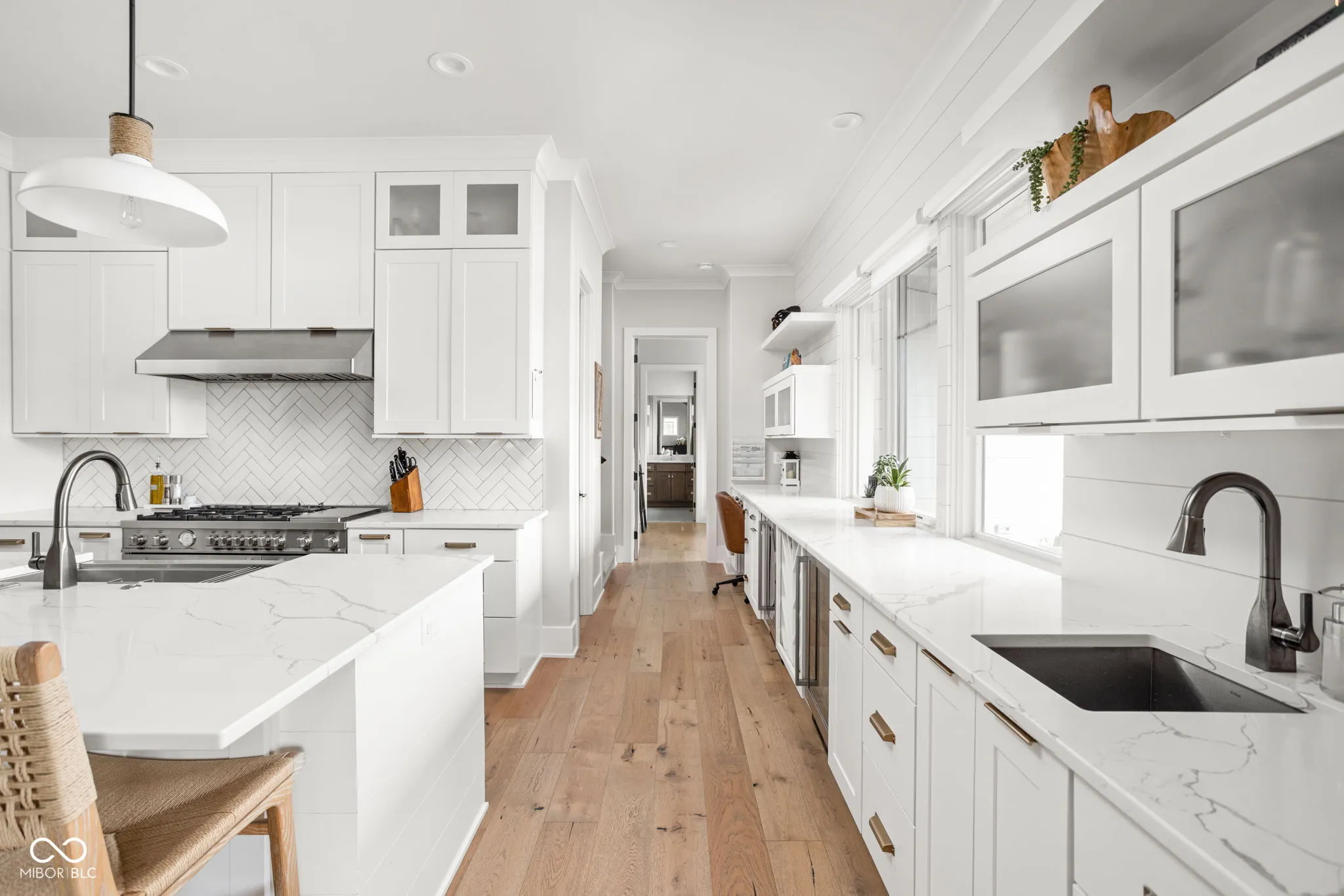 Experience elevated living in this exquisite, almost-new residence where thoughtful design meets luxurious comfort. From the moment you enter, the home welcomes you with soaring 10-foot ceilings and a striking beamed great room that serves as the heart of the home. The open-concept layout seamlessly connects to a chef-inspired kitchen, complete with an expansive island, quartz surfaces, custom cabinetry, commercial-grade range, dual beverage refrigerators, stainless steel appliances, a dedicated planning center, and an impressive walk-in pantry. Designed for both entertaining and everyday living, the sun-drenched dining area flows effortlessly into the great room and extends outdoors to a covered patio and inviting firepit-perfect for relaxing evenings or hosting guests. The main-level owner’s suite offers a serene escape, featuring picturesque views, a spa-like bath with a walk-in shower, freestanding soaking tub, and a dream-worthy custom closet. Additional main-floor highlights include a guest suite with full bath, a flexible den or sixth bedroom, an updated and well-appointed laundry room, and a functional mudroom with built-in storage. Upstairs, privacy and comfort continue with two spacious bedrooms, each offering en-suite baths and walk-in closets. The finished basement expands your living space with a stylish bar, fitness room, media and game area, a fifth bedroom, full bath, and integrated audio/visual features. With two separate 2-car garages and meticulous attention to detail throughout, this home delivers the perfect blend of luxury, functionality, and modern elegance.