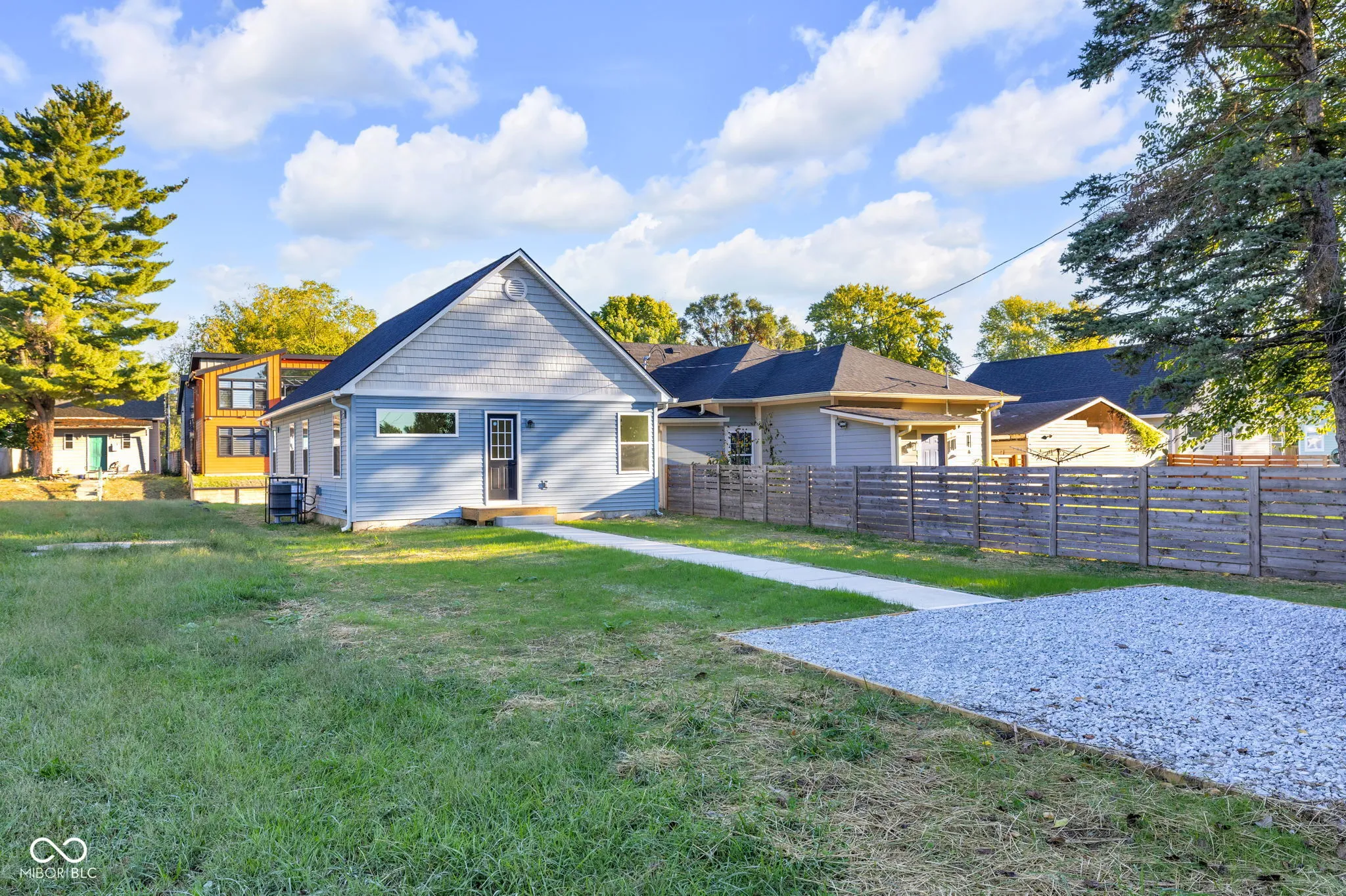 You will not want to miss this newly constructed home at an affordable price in vibrant Riverside neighborhood, steps from Global Prep Academy and minutes from the Indy hospitals and IU Indianapolis. Quality and design exude in this 3 bedroom, 2 full bathroom home boasting an array of modern amenities. You are welcomed with an airy and open concept layout with vaulted ceilings and a seamless blend of kitchen, living, and dining. Features white shaker cabinets, tiled backsplash, stainless steel appliances, granite counters, and a spacious pantry. Primary bedroom has its own ensuite bath with full shower. Two additional bedrooms with another full bath. Spacious backyard with concrete walk to private parking pad. Join in on the fun at the AMP, 16 Tech, and Guggman Haus Brewery. Riverside Park is a short walk away. Enjoy summer concerts at the Amphitheater, take a bike ride on the path or hop in a canoe and enjoy the White River.