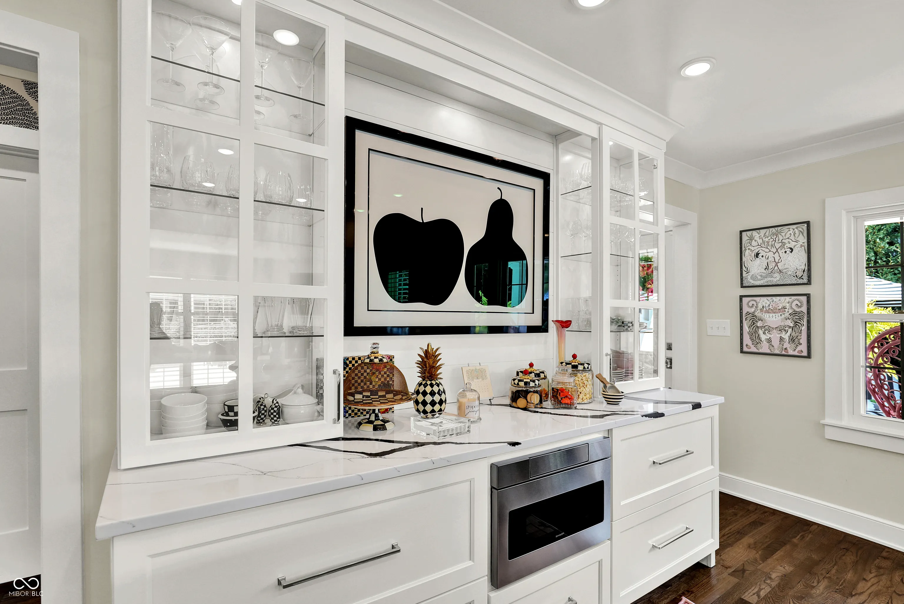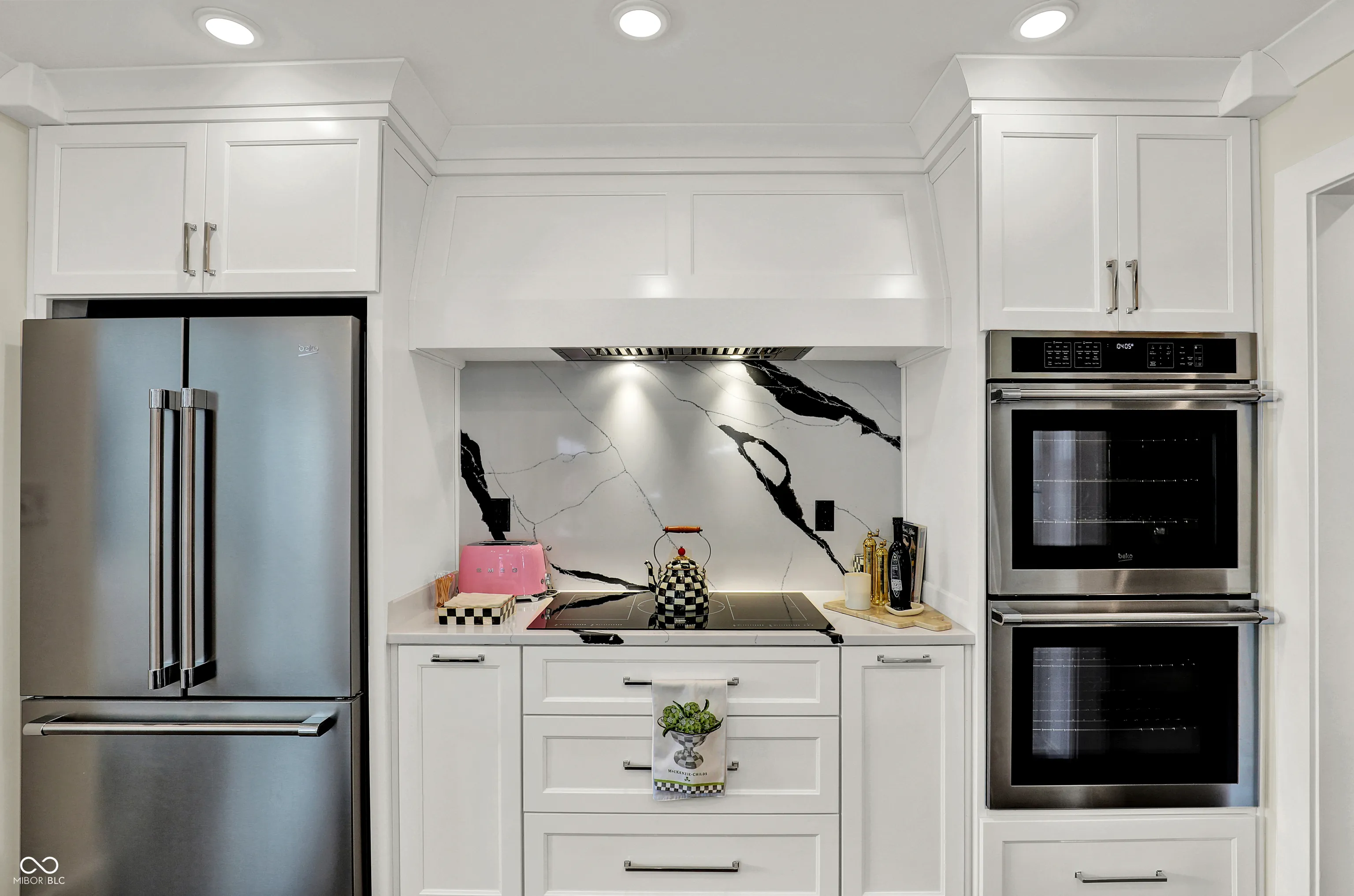 Sweet Zionsville Village home on brick Main Street! This house just benefitted from total to-the-2×4’s renovation combining the creativity of the owner who is a much sought after interior designer, and a talented local builder who is second to none- WOW! Literally new everything including wiring and plumbing and windows and HVAC- every inch re-invented or restored- without losing the charm! Private primary suite on Main, as well second bedroom and second full bath on Main- 3rd Bedroom up-4th bedroom and 3rd full bath in basement. The kitchen may be the most outstanding one in the Village! Fabulous custom cabinets, stunning black/white granite counters, true double ovens, sleek induction cooktop, Beko fridge. Huge island is heart of the home dining space. Adjacent room was former kitchen, so large space re-invented as cozy breakfast room and laundry- there’d a second laundry in the basement. Lower level includes nice sized family room, and guest room useful as true bedroom since builder added new basement egress window in adjacent storage room. Here you see brand new furnace and tankless hot water heater and water softener. Absolutely move in ready! If Main Street in Zionsville’s Village is your dream- it doesn’t get any better than this!