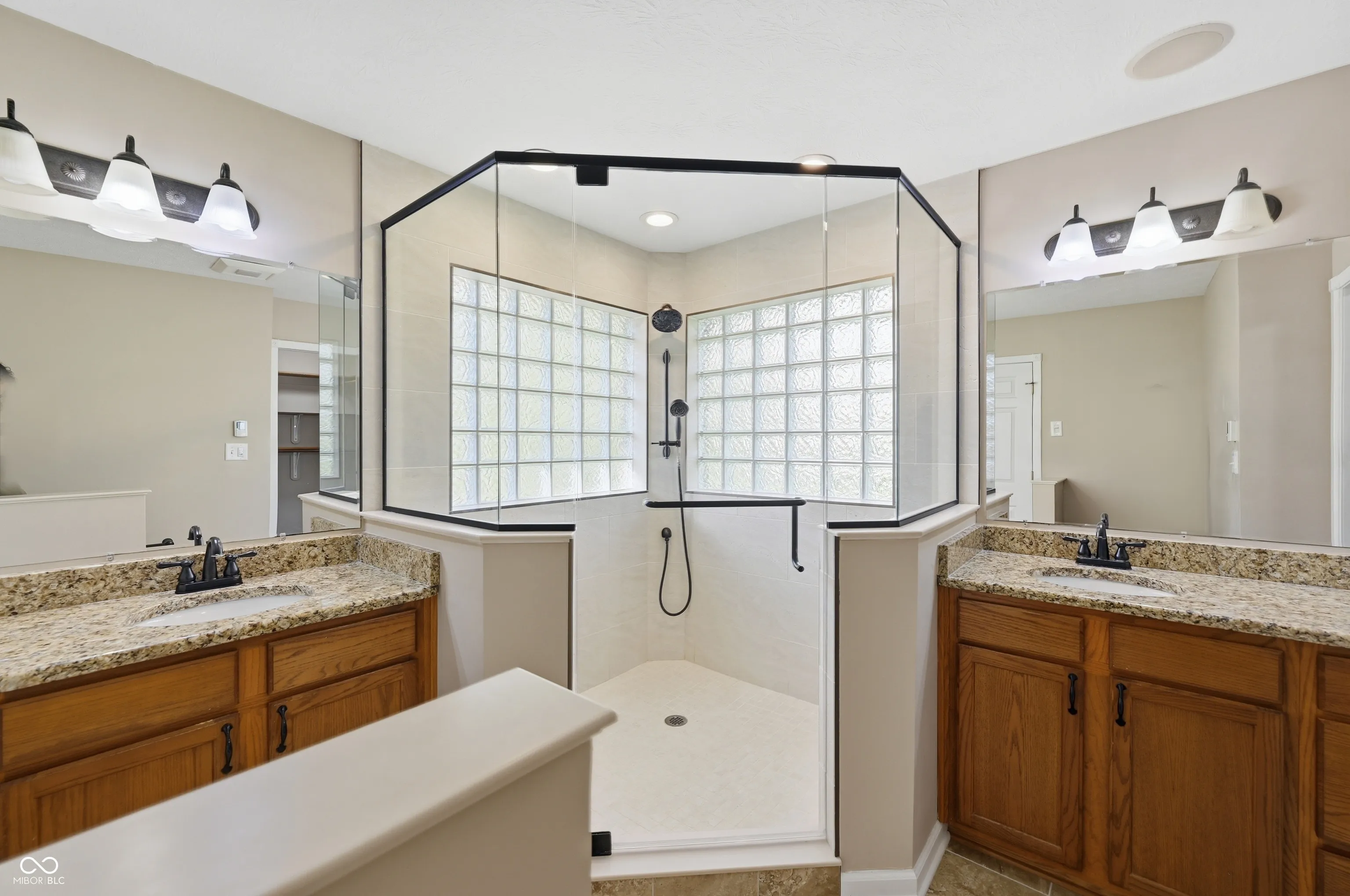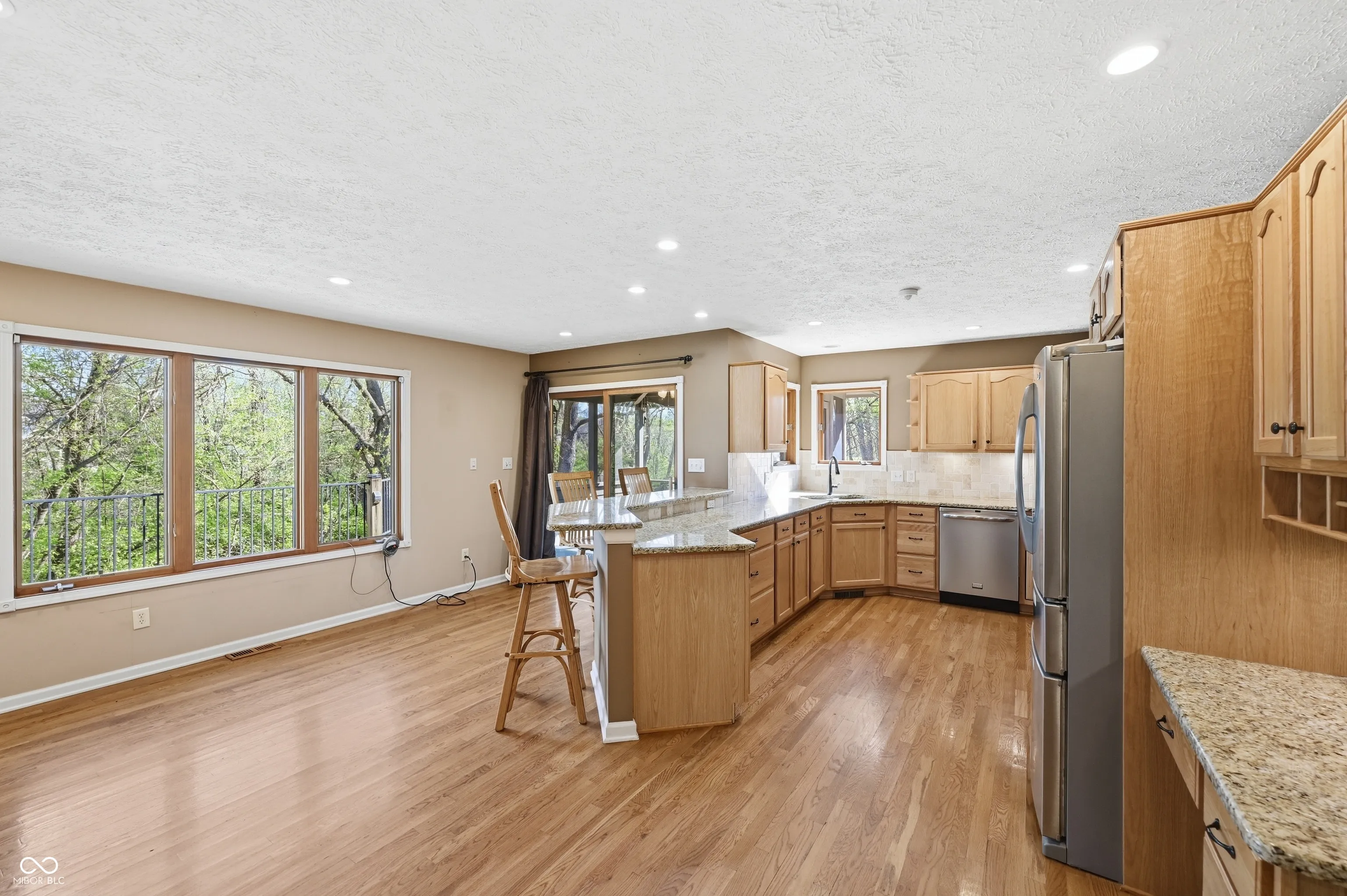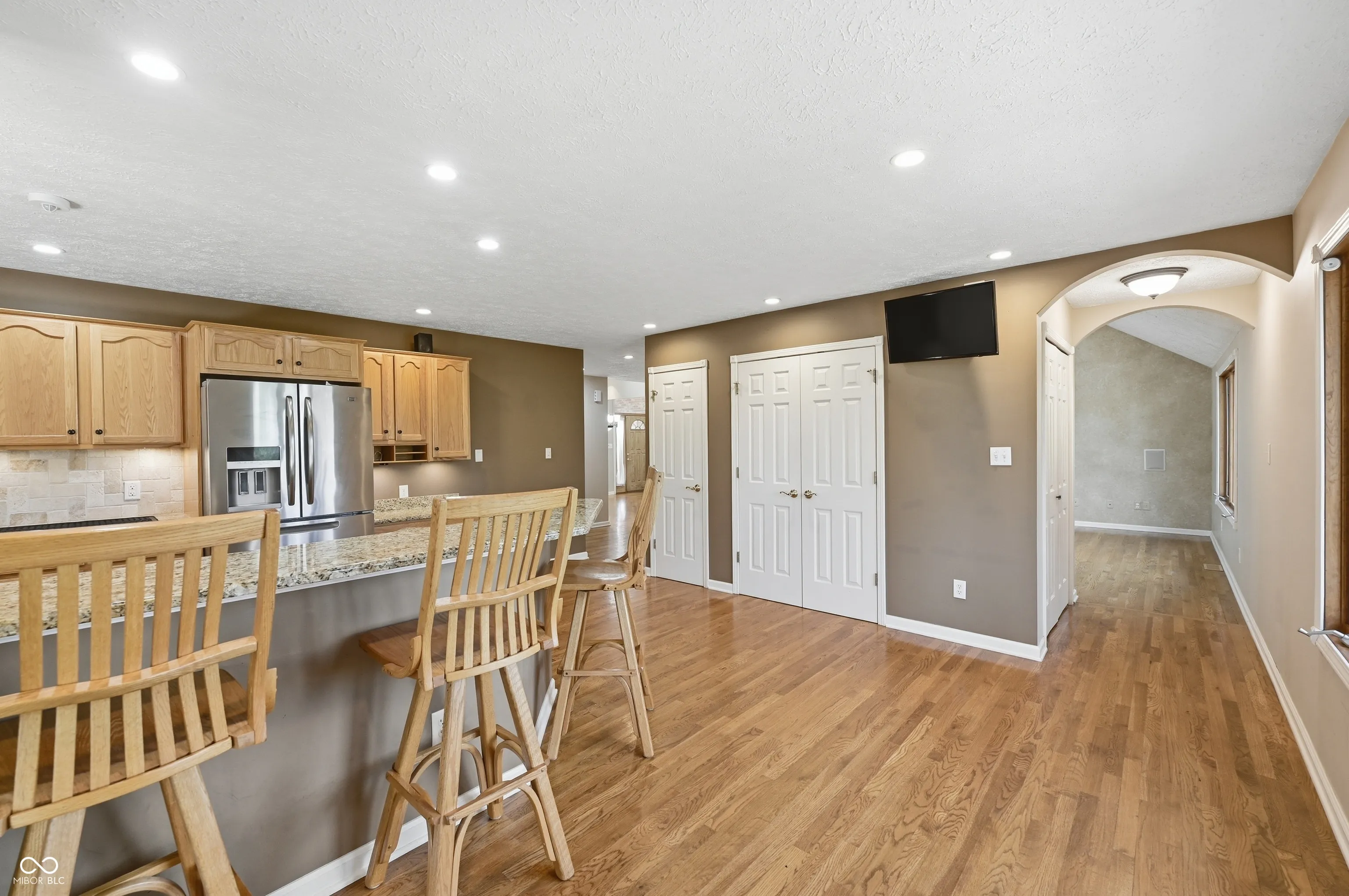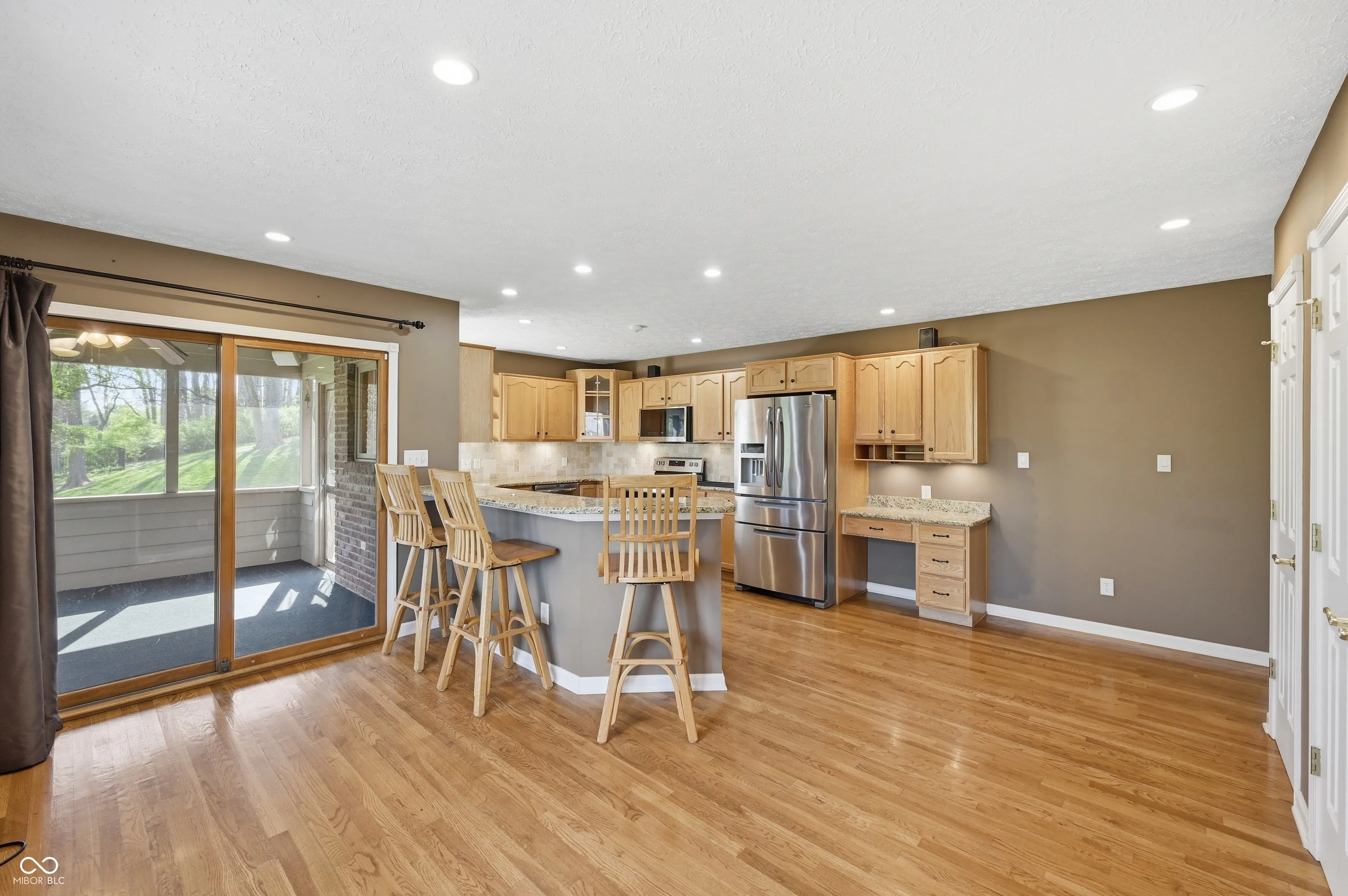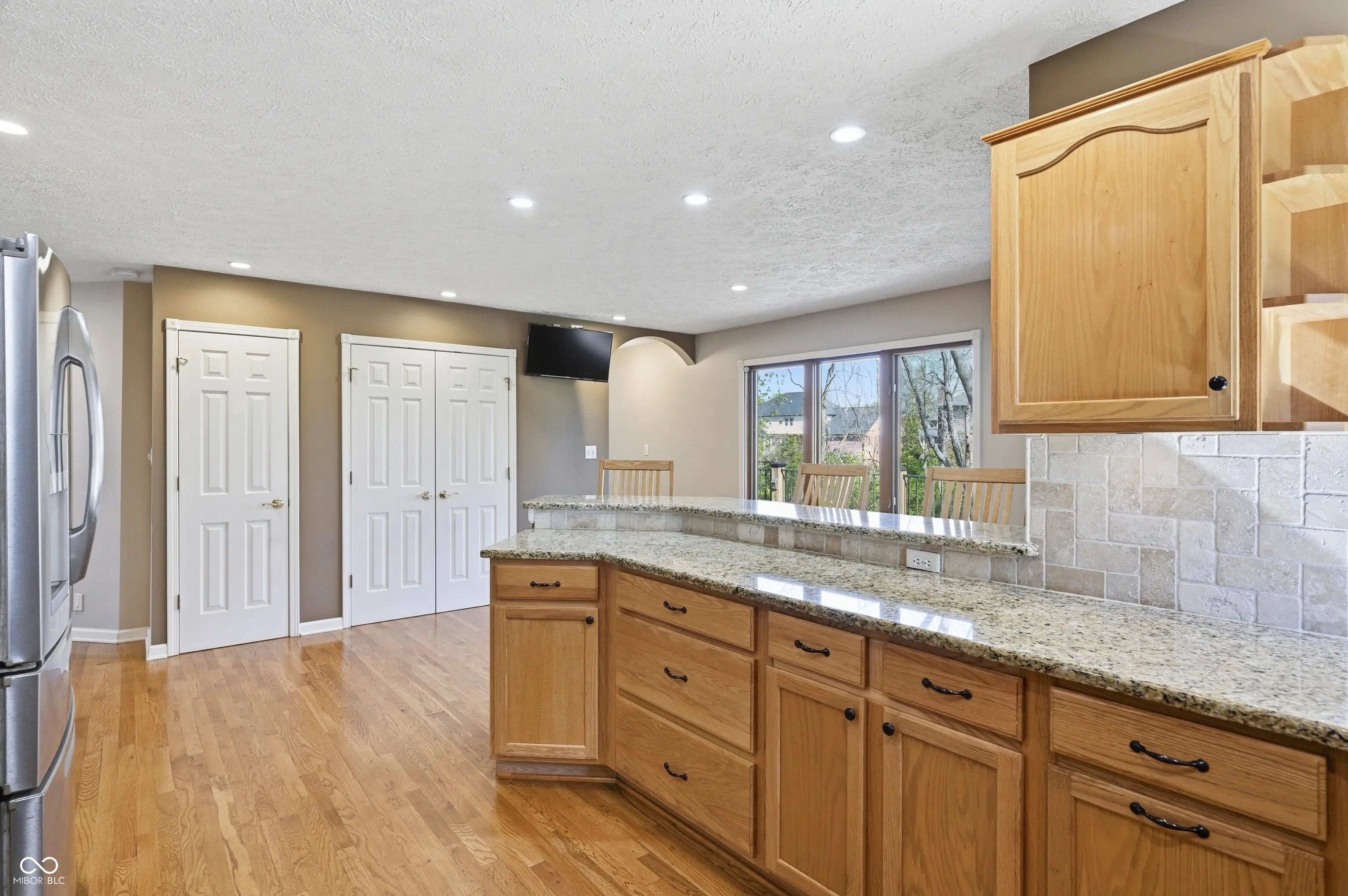 Tucked away on a quiet cul-de-sac in the desirable Fair Oak neighborhood this spacious brick ranch with a walk-out basement offers over 3,500 square feet of living space. With 5 bedrooms, 3 full baths, 1 half bath, and a finished 3 car attached garage, this home offers room to grow. The main level welcomes you with a formal dining room featuring hardwood floors, leading into the great room with vaulted ceilings, skylights, gas fireplace, and built in bookcase. The kitchen is thoughtfully designed with plenty of cabinet storage, granite countertops, tile backsplash, hardwood floors, stainless steel appliances, homework station, pantry, and a bright breakfast nook. The primary suite offers vaulted ceilings and beautifully updated bathroom complete with a custom step-in tile shower, dual raised vanities, and a walk-in closet. The walkout basement expands your living space with a large family room featuring LVP flooring and a second gas fireplace, along with two additional bedrooms, a storage room, and access to the lower deck. Outdoor living is just as impressive with an 11×11 screened-in patio off the breakfast nook, an upper deck with hot tub, and a lower deck with built-in storage room. The fenced backyard backs to a peaceful creek, offering both privacy and a scenic setting.