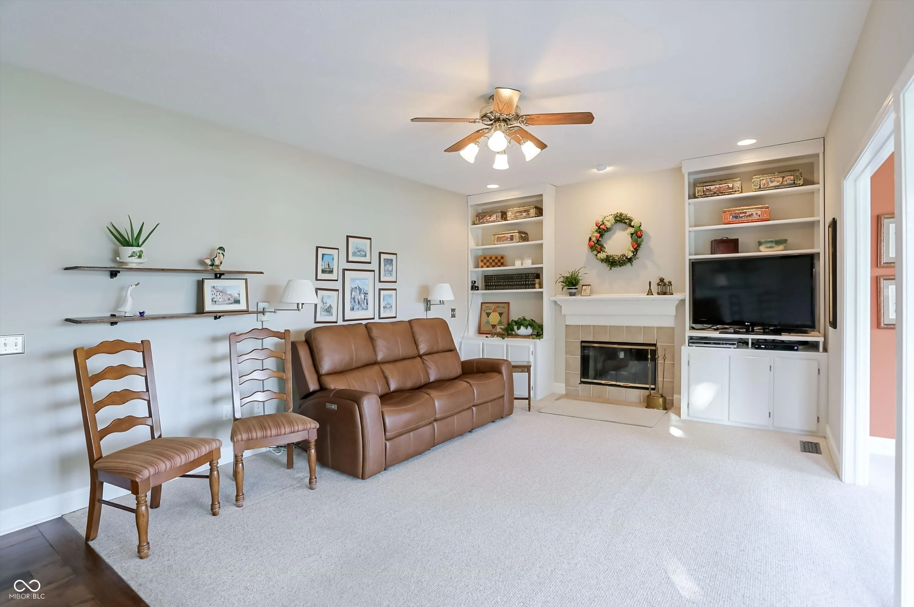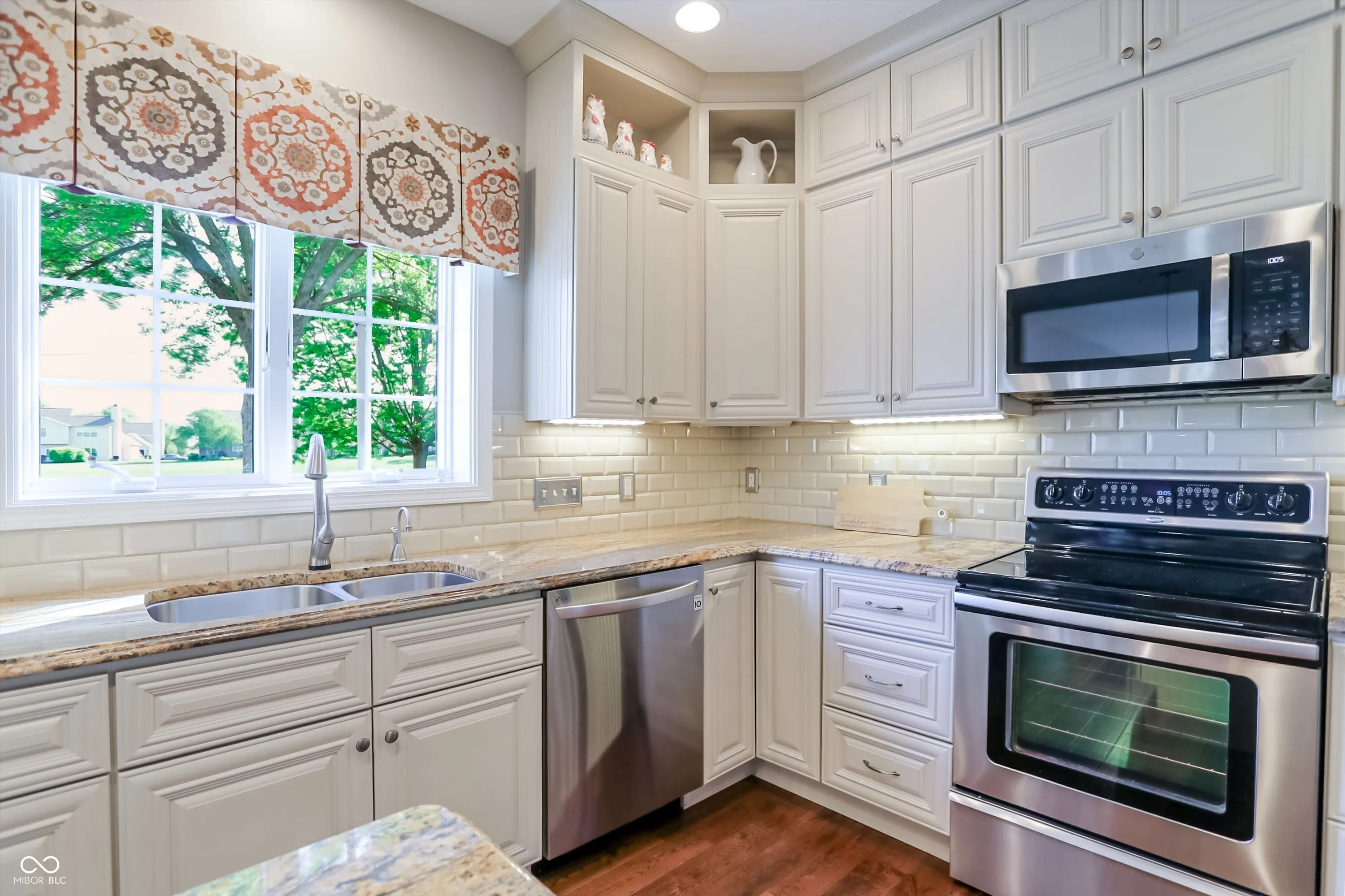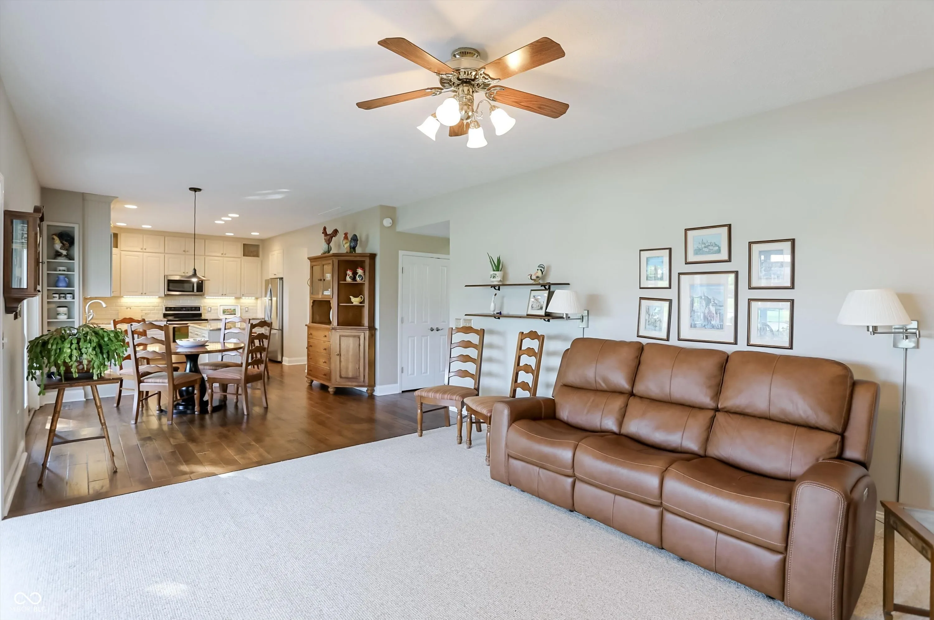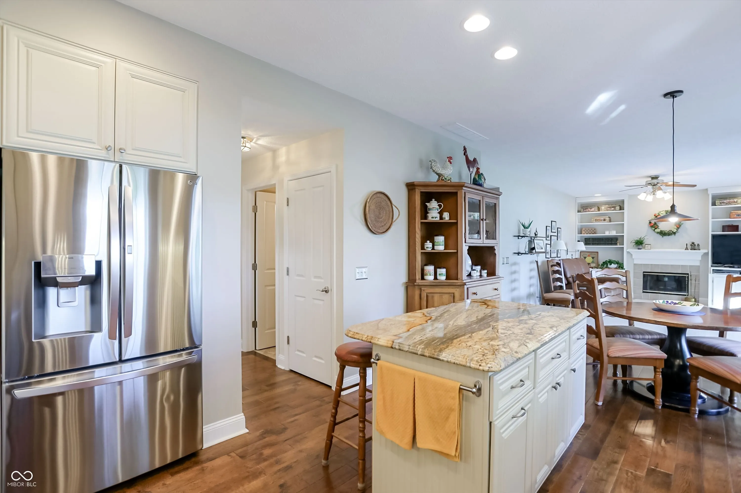 Experience the perfect blend of sophisticated updates and serene outdoor living in this meticulously maintained four-bedroom residence situated on a premier corner lot in Fishers. The main level welcomes you with solid oak Bella Cera hardwood floors that flow seamlessly through the formal living and dining rooms into a stunningly remodeled chef’s kitchen. This heart of the home features custom cabinetry, distinctive granite countertops, a central island with seating, a beverage refrigerator, and high-end stainless steel appliances. Adjacent to the kitchen, the inviting family room centers around a cozy fireplace, leading into a spectacular fourteen-by-sixteen-foot four-season sunroom. This bright retreat, along with the expansive twenty-five-foot rear deck, offers breathtaking views of the large pond and provides a shaded northeast exposure perfect for relaxing without the heat of the afternoon sun. Practicality meets luxury with a main-floor laundry room and updated powder room, both featuring recent high-end renovations. Upstairs, the spacious primary suite serves as a true sanctuary with high ceilings, a large walk-in closet, and a spa-like ensuite bath remodeled to include a soaking tub and a custom walk-in shower. Three additional generously sized bedrooms share a secondary full bath that was completely updated in 2020. For those seeking even more space, the clean, dry twelve-hundred-square-foot unfinished basement offers a massive footprint for play or future customization. The exterior is just as impressive, boasting durable Hardie Board siding, Andersen 400 windows, and a lush yard maintained by a full irrigation system and beautiful flower beds. The attached two-car garage is fully insulated and heated, providing extra comfort and attic storage. Located directly across from Riverside Intermediate and Junior High Schools with easy access to I-69 and I-465, this home combines an incredible location with over two decades of thoughtful, high-quality improveme