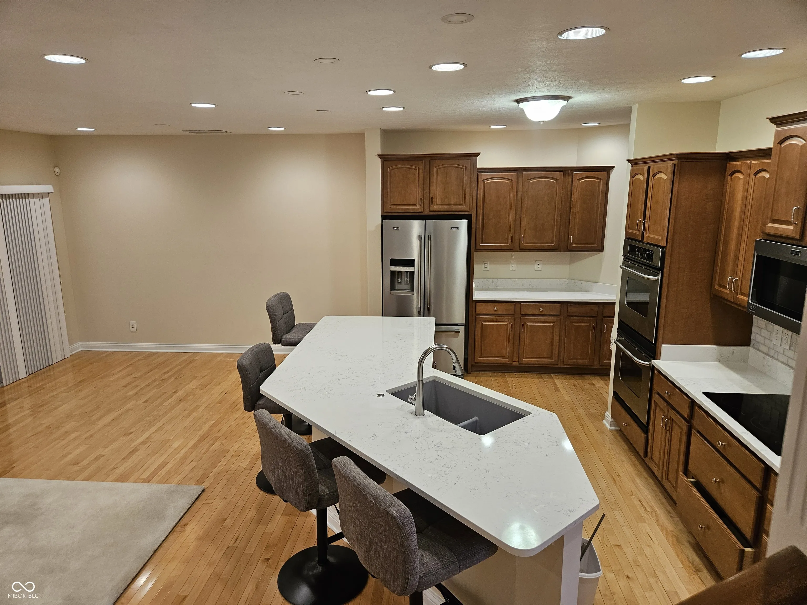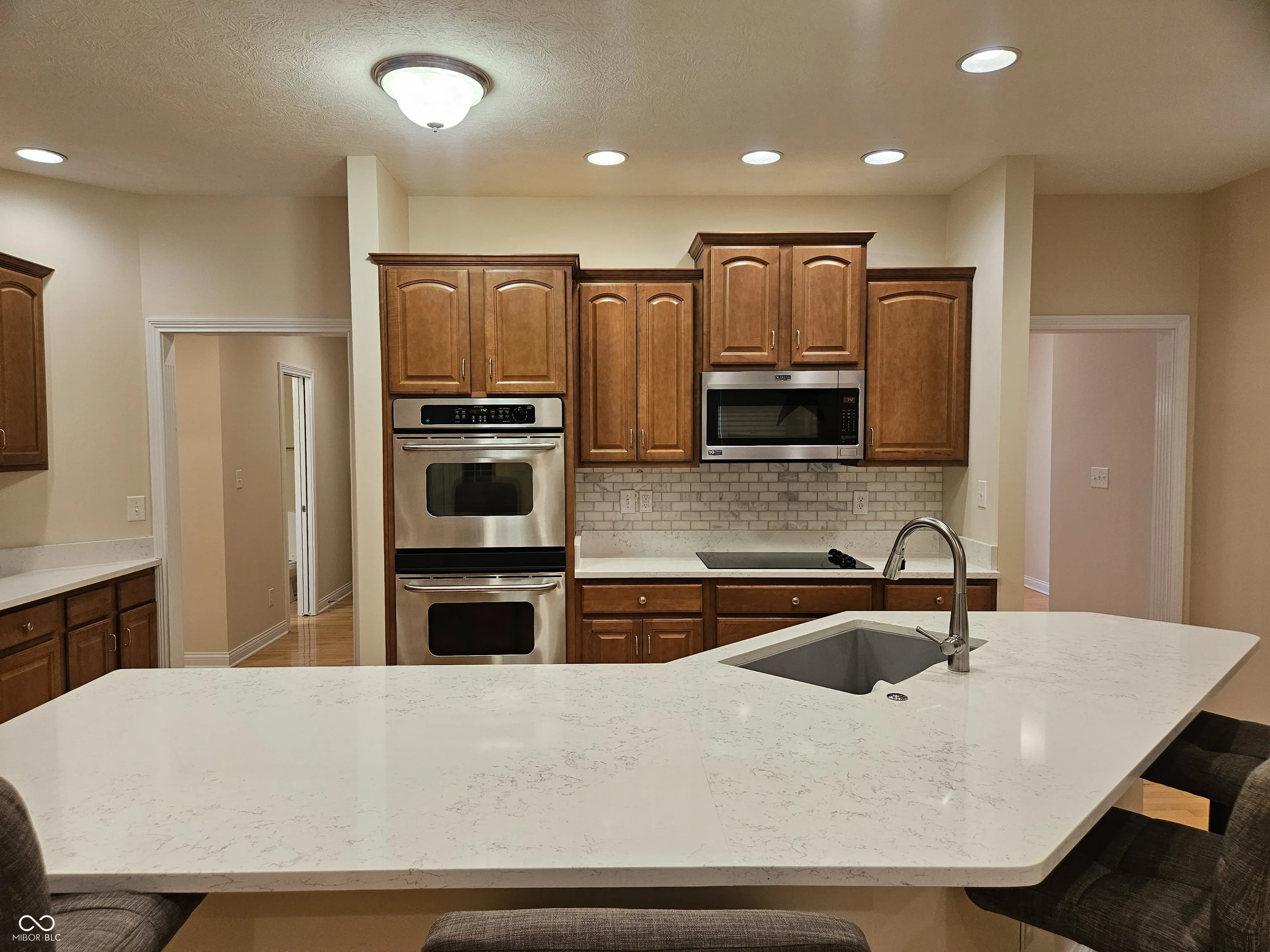Impeccably maintained with pristine quality throughout, this 4-bedroom home offers a main-level primary suite and 3.5 baths designed for comfortable living. In the popular Kensington Grove neighborhood this home has much to offer. The kitchen features rich maple cabinetry, quartz counter tops, a double oven, and opens to hardwood floors that flow through the main living spaces. Natural light fills the home, while a gas fireplace and inviting three-season sunroom create warm, relaxing spaces to enjoy. Recent updates include a brand new roof, new hot water heater (2023), and lower-level furnace (2022), along with separate HVAC systems for upstairs and downstairs for added efficiency. Complete with a 3-car garage and irrigation system, this move-in-ready home blends comfort, function, and timeless appeal.