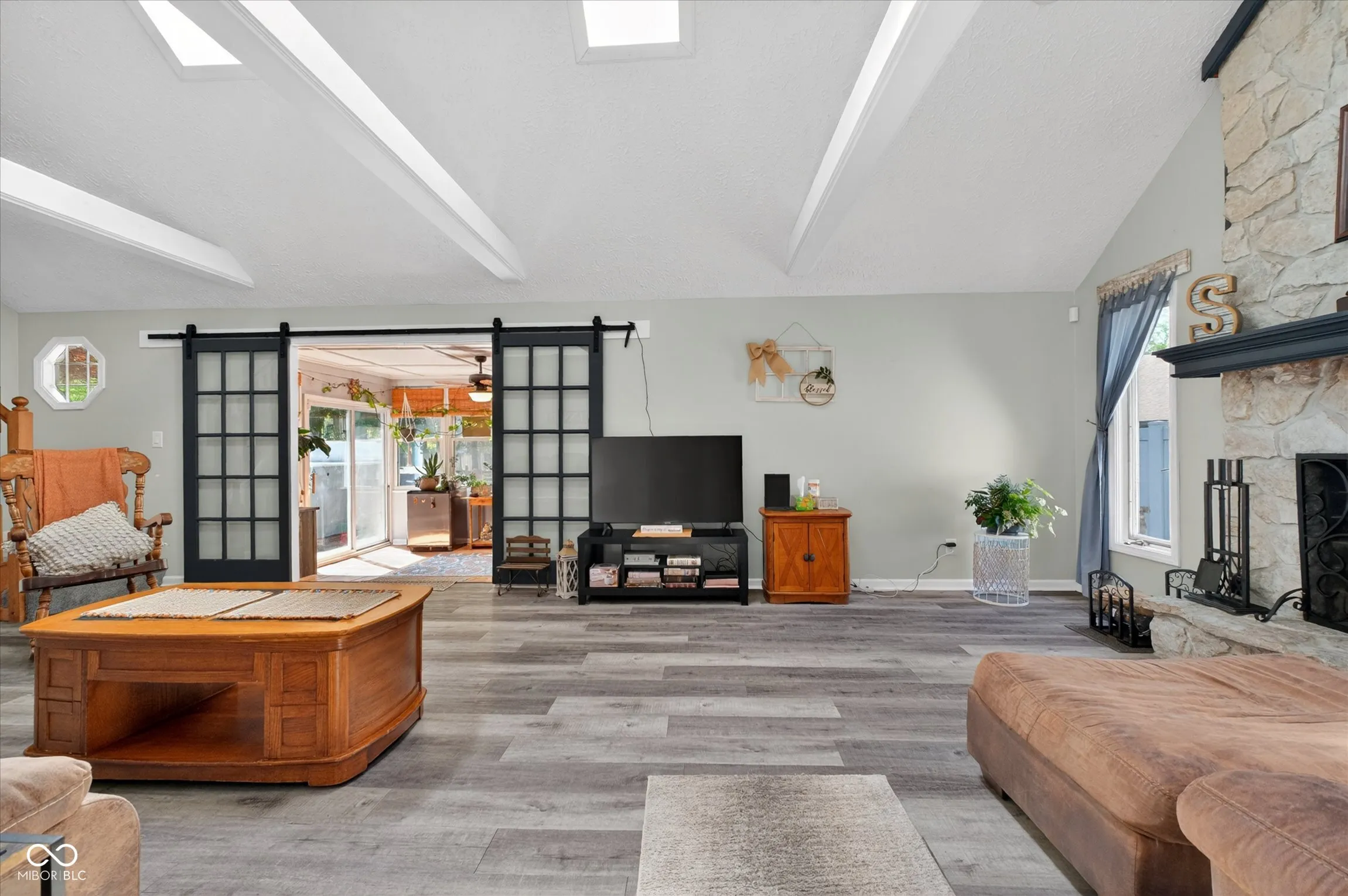 Nestled in a serene setting, this stunning ranch home offers effortless single-story living complemented by a versatile loft space and fourth bedroom. With three bedrooms and two full baths on the main level, the layout provides ample room for relaxation, entertainment and gourmet cooking in the custom kitchen. The primary suite serves as a private retreat featuring remodeled bath and walk-in-closet. The open loft area offers flexible space for a home office, gym, or creative studio. The year round sunroom brings the bucolic outdoors into your living space with windows in every direction. Outdoor enthusiasts will love the amazing backyard, designed for both leisure and hosting. Sink into the swim spa after a long day, crank the tunes on your speakers and appreciate being surrounded by lush landscaping in your backyard oasis. This property perfectly blends indoor comfort with resort-style outdoor amenities, making it an ideal retreat for year-round enjoyment.