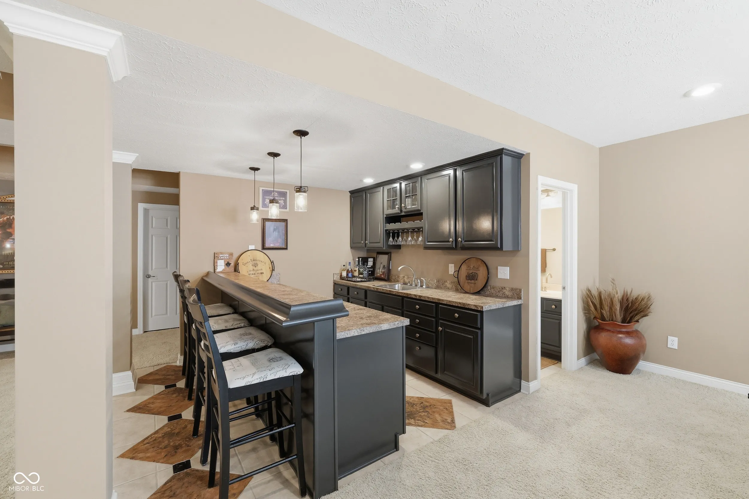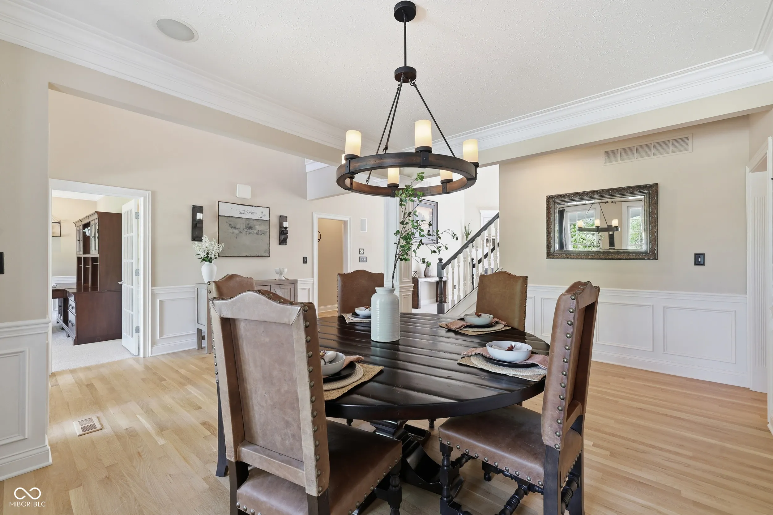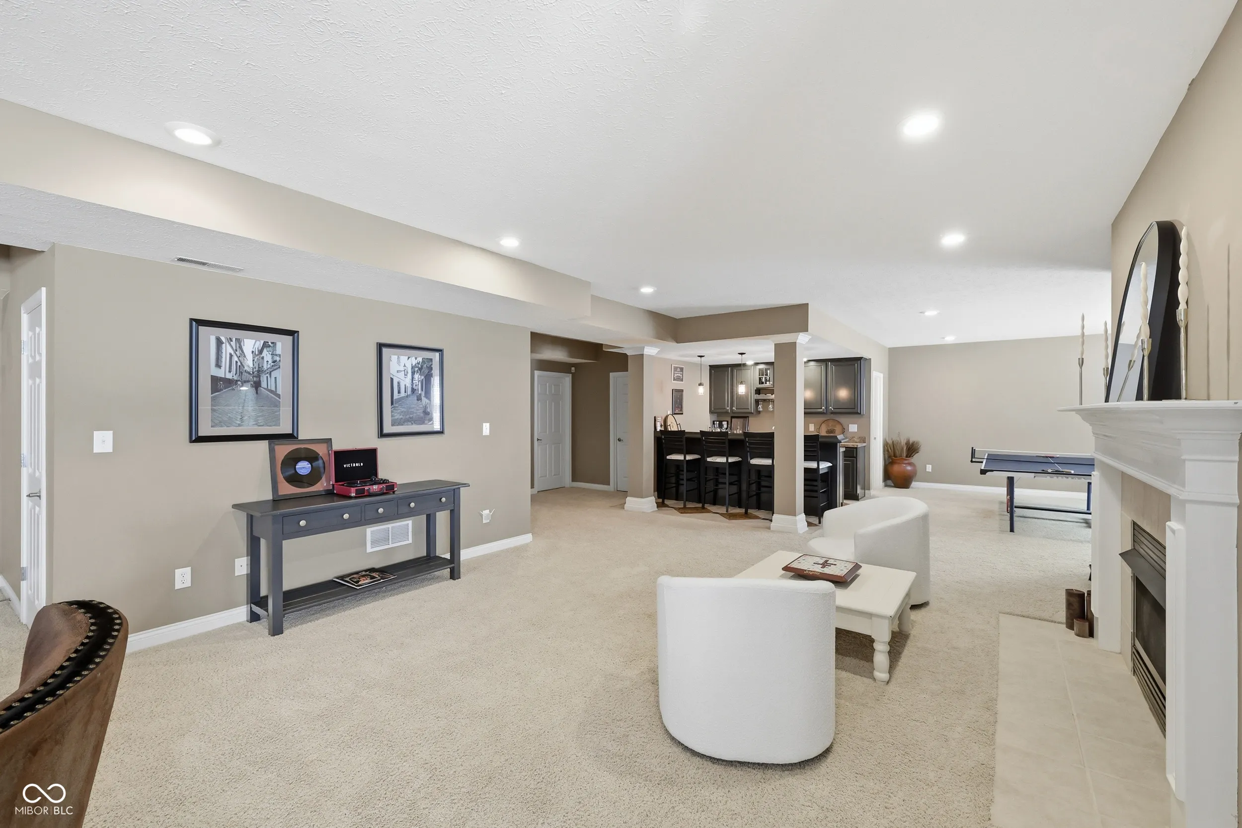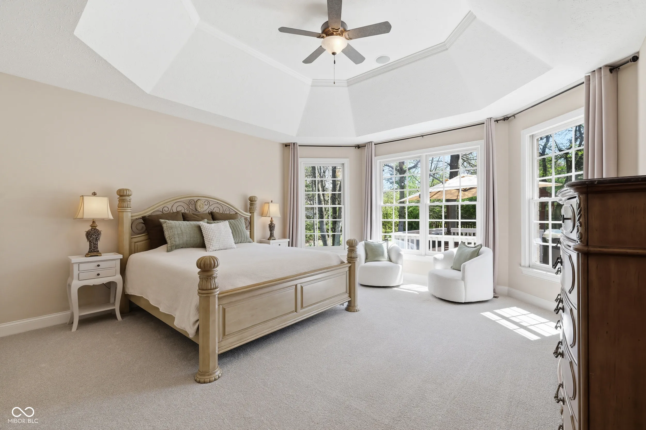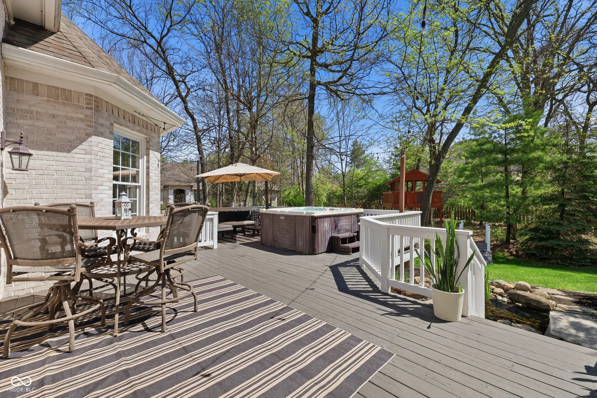 Tucked away on a quiet cul de sac, this stunning 5-bedroom, 4.5 bath is located in Windermere Pointe, one of the most sought-after GOLF COURSE communities in FISHERS. Nestled on a PRIVATE half-acre lot a 7 minute walk away from GEIST reservoir, you will be enchanted from the moment you enter onto the beautiful hardwood floors. The MAIN floor PRIMARY suite overlooks the peaceful, wooded backyard. The spa-like primary bathroom has been updated with a new shower, new garden tub and new tile flooring. The large linen and walk-in closets offer solutions to your storage needs. Work from home? The spacious dedicated office will be perfect! The heart of the home, the gourmet kitchen, has stainless steel JennAir appliances, granite countertops and an updated tile backsplash. Entertaining is made easy with a kitchen bar, a large eating area, and being open to the sun-drenched great room. The wall of windows in the great room provides lots of natural light, which can be enjoyed in front of the gas fireplace. Upstairs, the second bedroom has its own en suite bath. The 3rd and 4th bedrooms share a Jack and Jill bath. The BONUS room is a true 5th bedroom. Accessible storage in the walk-in attic. The basement is a true gem! You will fall in love with the basement’s speak-easy vibe with a dedicated BAR, game area, FIREPLACE, music and tv viewing areas. Amazing storage in the unfinished basement area. The outdoor space is incredible! Relax in the hot tub on the expansive deck surrounded by mature trees. 3-car garage. Highly-rated HSE schools. Enjoy the neighborhood park, playground, pickleball/tennis, basketball courts and pool. Conveniently located minutes to the Fishers Community Center, I69 and downtown Fishers entertainment and dining.