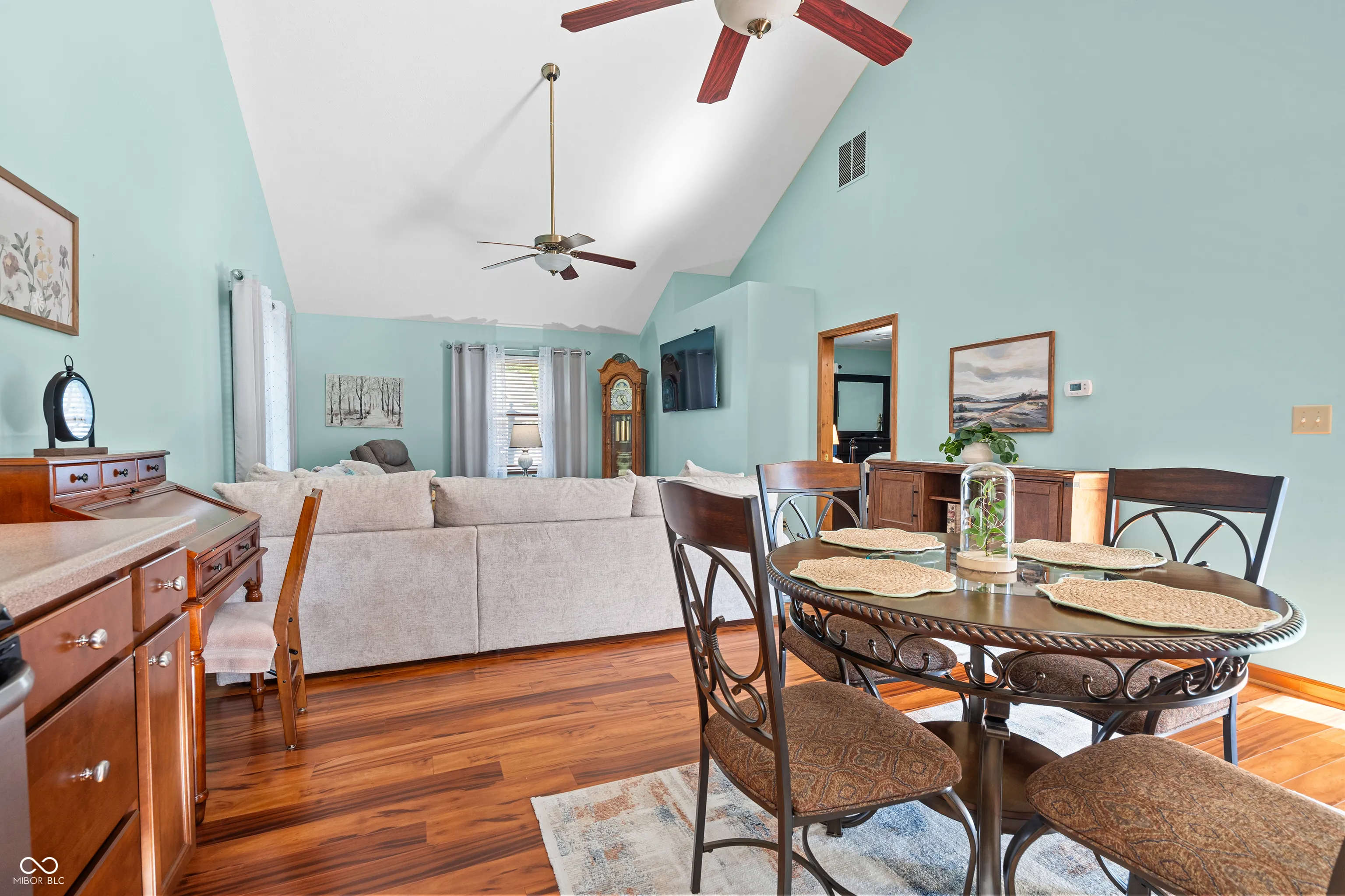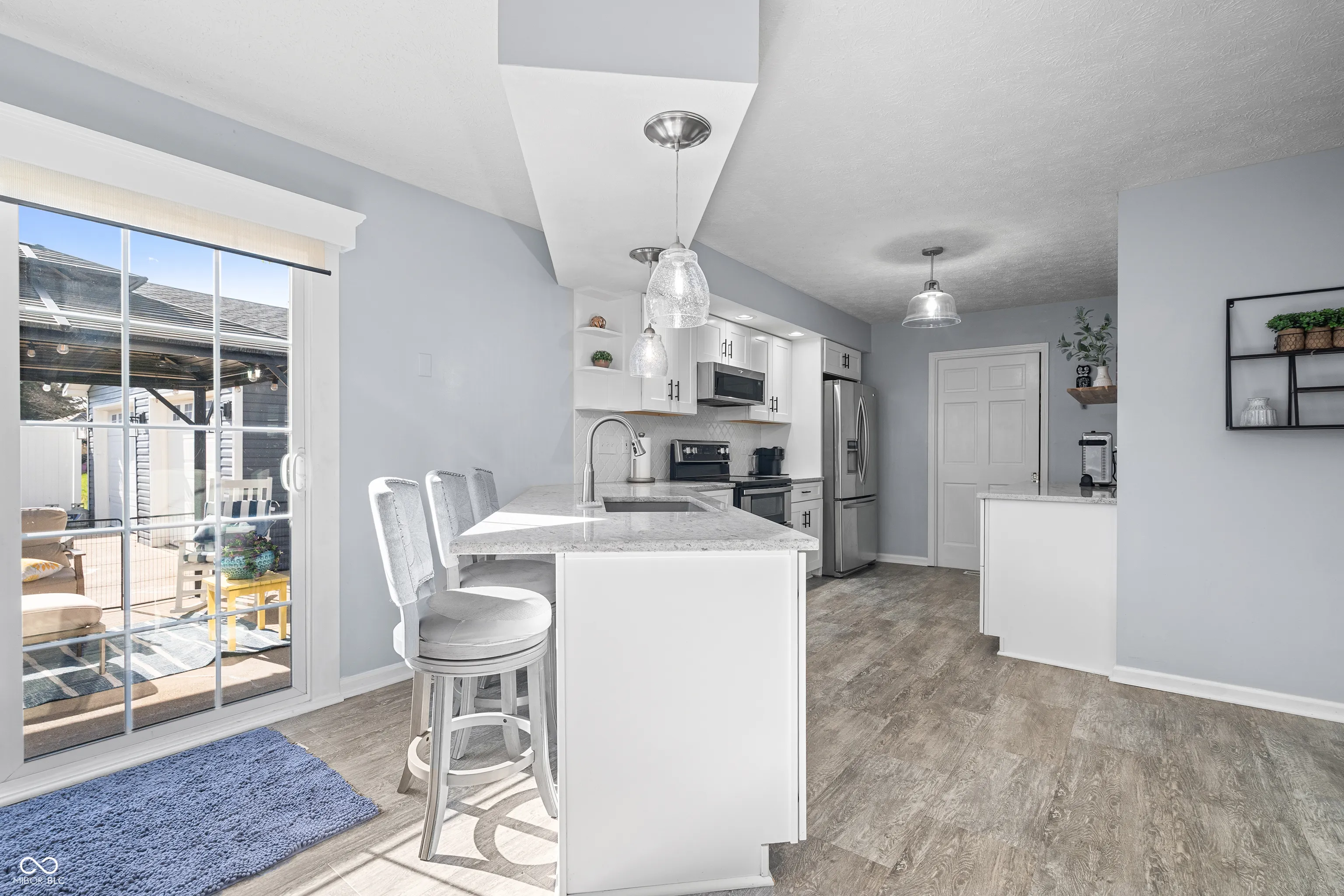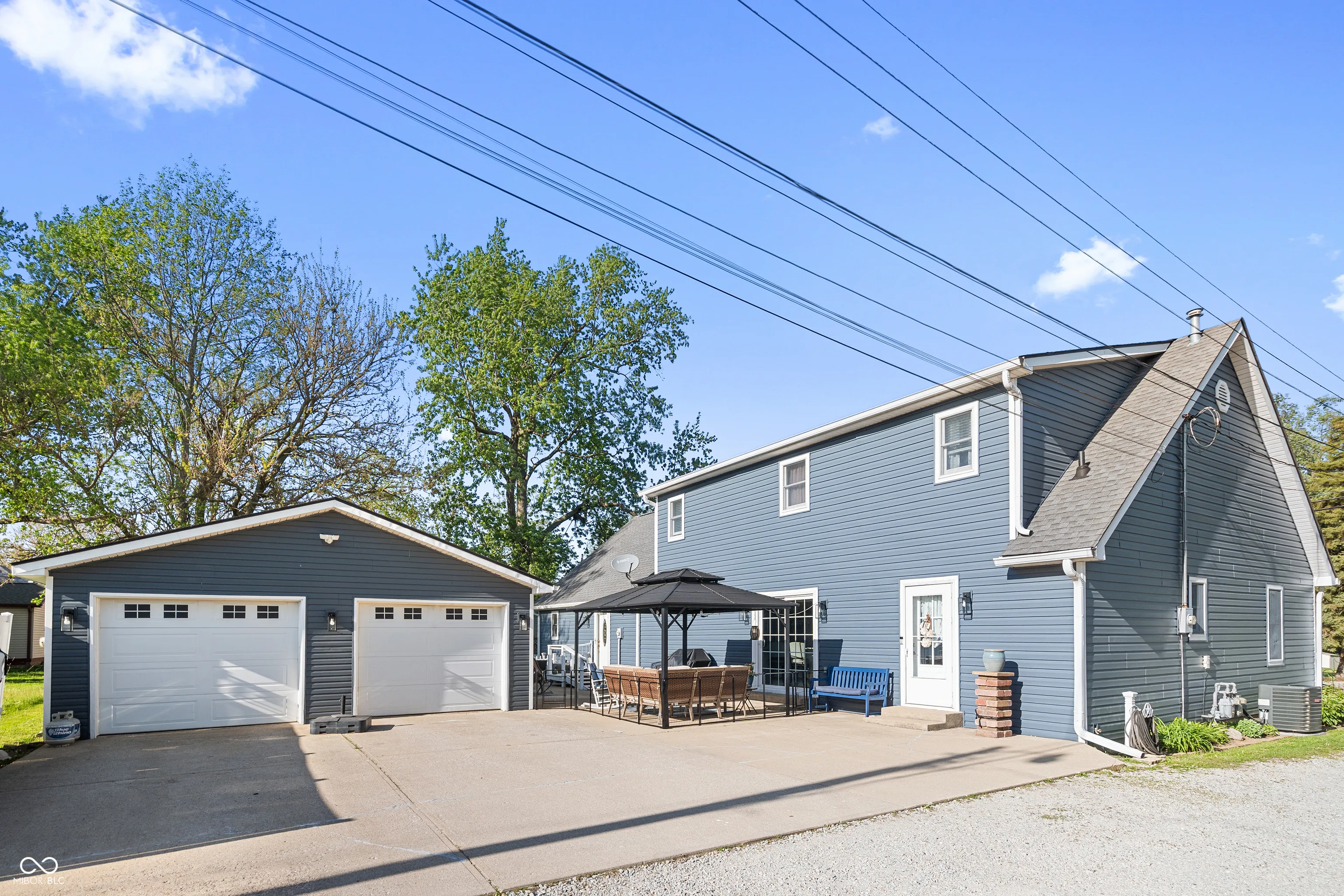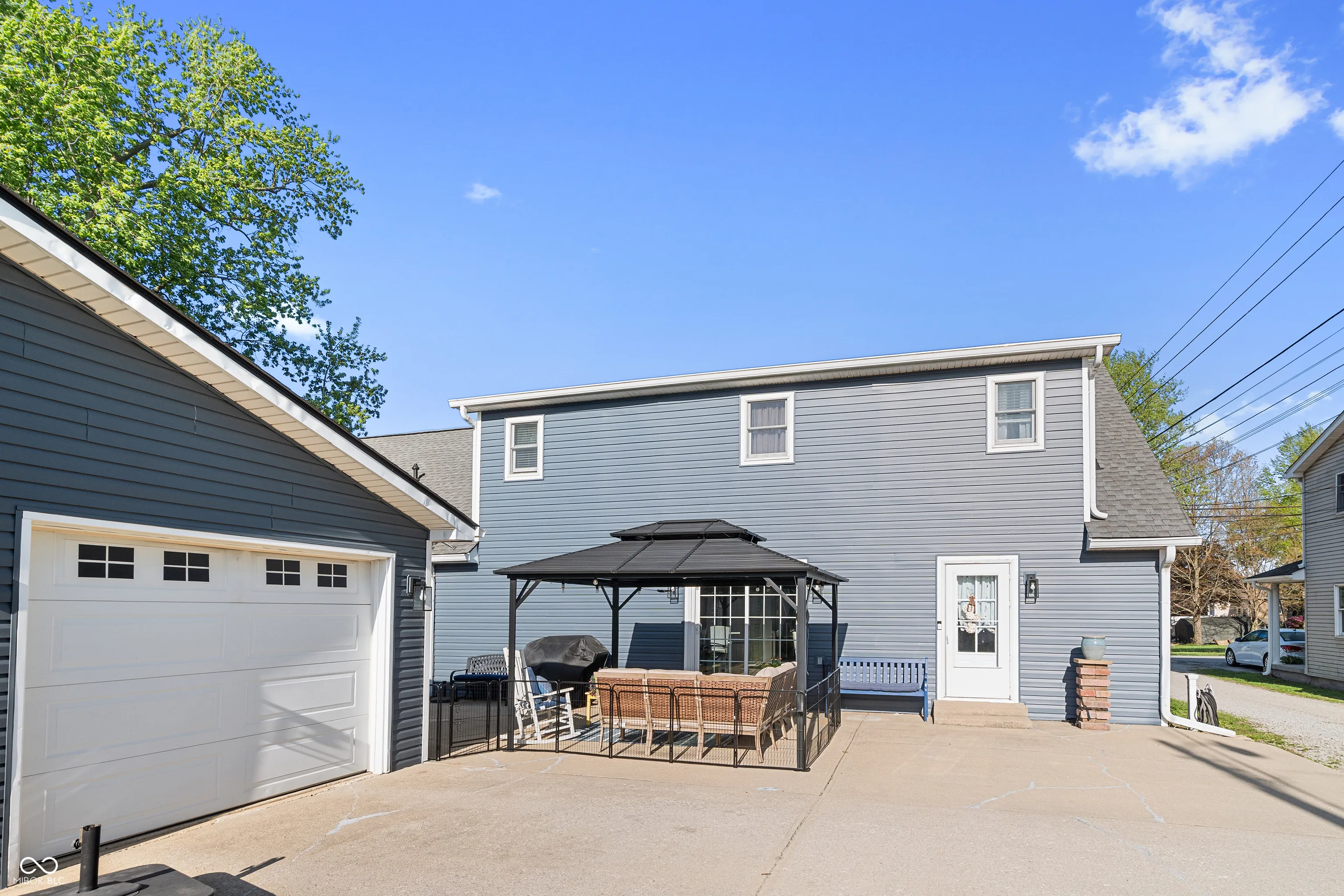 You must see this incredibly remodeled 4 bed, 3.5 bath in the heart of Thorntown! A charming covered front porch invites you into an expansive living room featuring soaring vaulted ceilings and a stunning modern shiplap fireplace, wood mantel and custom floating shelves. The seamless flow leads you into a completely remodeled open concept kitchen and dining area, boasting granite countertops, a breakfast bar, custom backsplash, gorgeous cabinets and premium stainless steel appliances. You’ll love the character in the dining room with a custom board and batten grid accent wall and matching wall accents in the remodeled main level full bathroom. Upstairs you will find your primary oasis, which offers a beautifully remodeled ensuite bath with new vanity, fixtures and a massive walk-in closet, alongside an additional bedroom and loft space. A rare highlight of this property is the attached in-law suite, featuring its own vaulted living area, a second full kitchen with stainless steel appliances, and a private bedroom retreat including an ensuite with a double vanity, walk in glass shower and additional tub. The backyard is an entertainer’s dream, featuring a fenced in space, a stone pathway and a sprawling back patio covered by a stylish pergola. Complete with a 4 car tandem garage and a location that is steps away from the Big 4 Rail Trail, park, library and everything that downtown Thorntown has to offer. Recent updates include complete kitchen remodel ’20, new H20 heater ’21, new HVAC ’24, new siding/roof ’23, paint throughout ’25, great room fireplace ’22, and bathroom remodel ’25. Schedule a tour today!