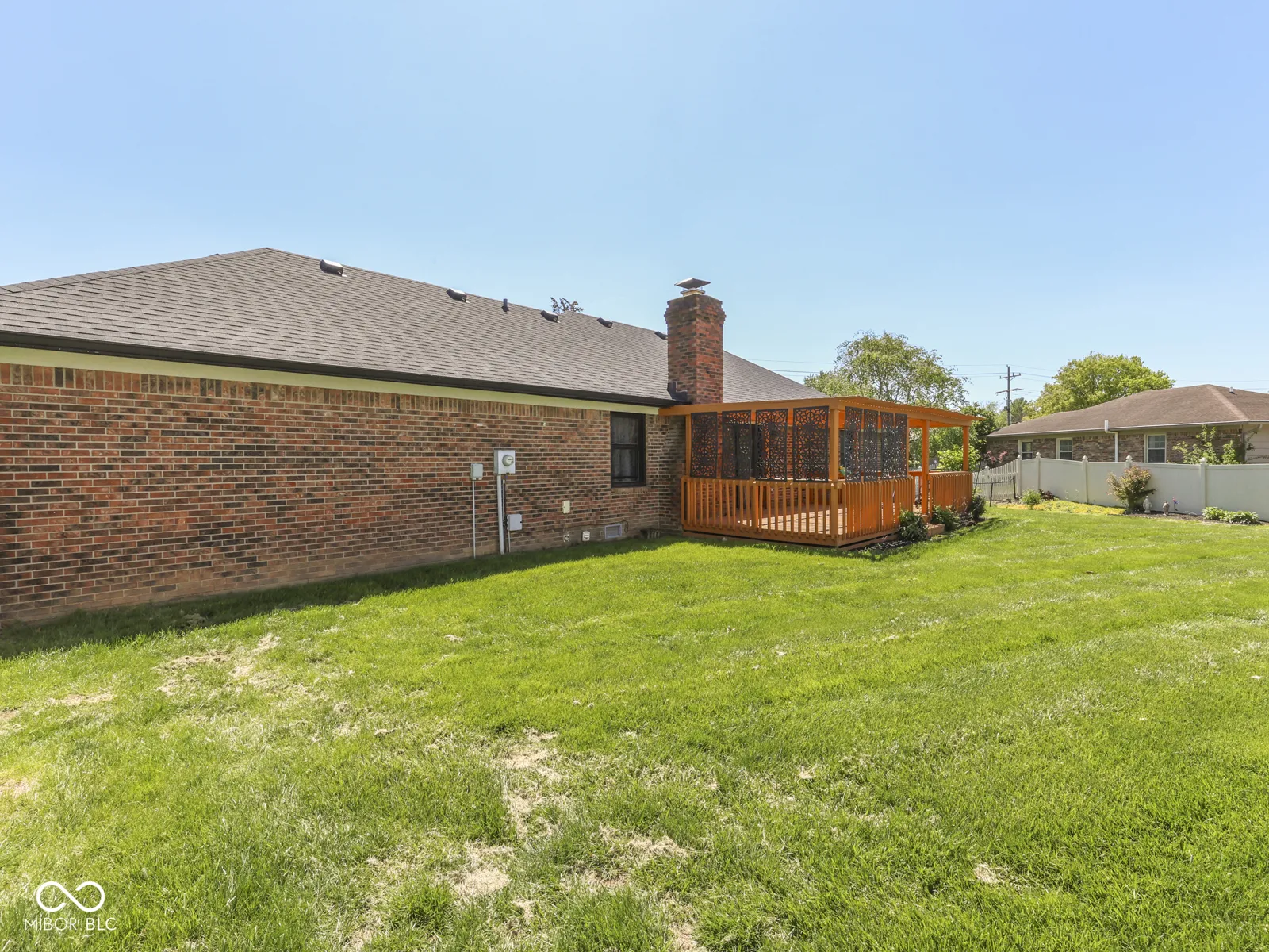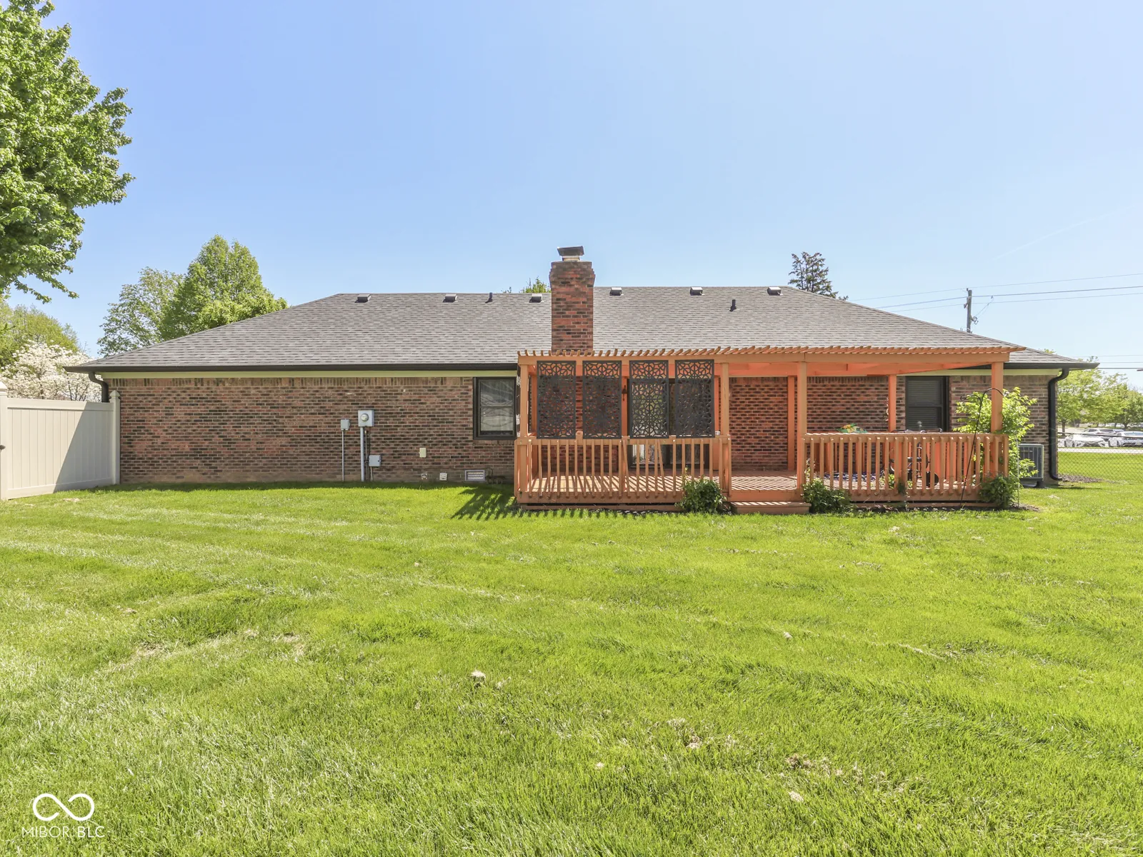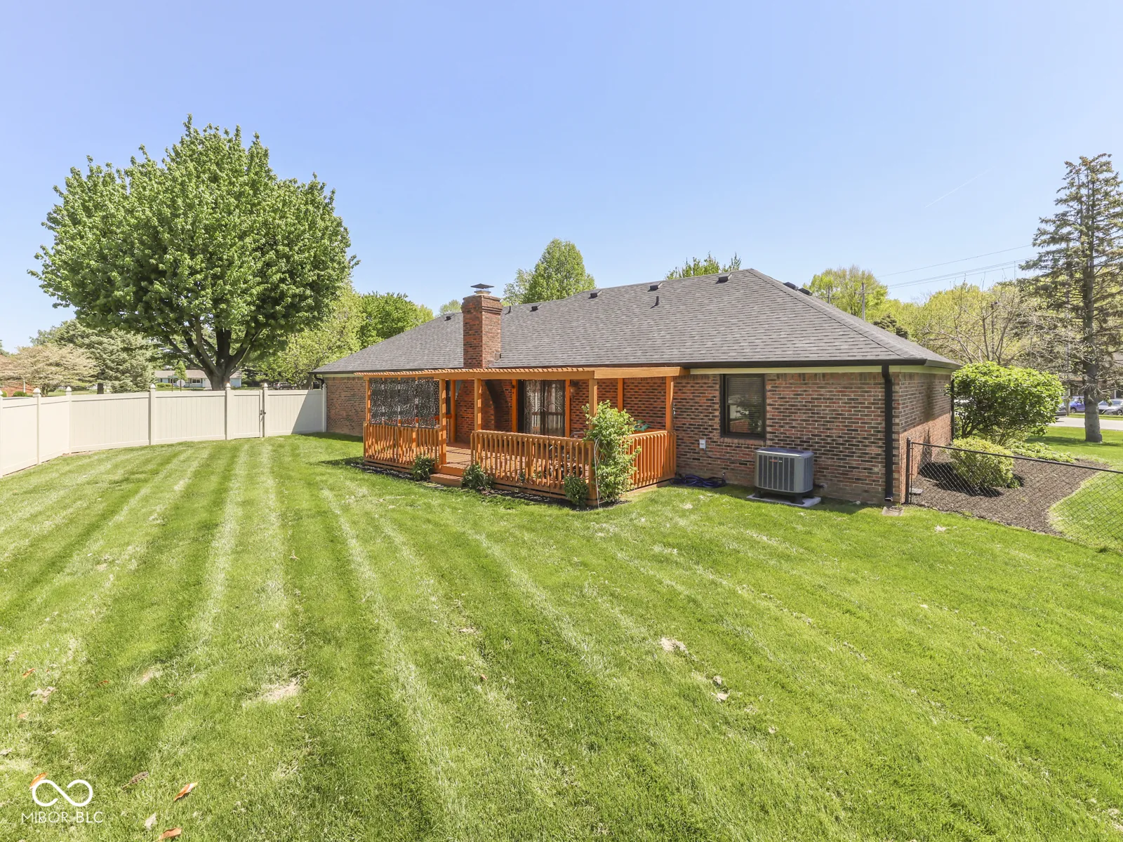 PLEASANT CREEK ACRES – Center Grove BRICK RANCH 1400sqft 3 BED 2 BATH on Larger Fenced, Corner Lot – steps from North Grove & the wonderful village of stores, shops, grocery, restaurants, car wash, LA Fitness, Nail Salons, Golf, & More. Custom Home with large wooden deck & pergola, 2 Car Finished Garage with tons of storage & attic access; KITCHEN: Eat-in, tons of upgrade counters & cabinet space, tile backsplash, Stainless Steel Appliances included (new Refrigerator), HW Laminate floor + lots of room; tile floor ENTRYWAY; GREAT ROOM: HW Lam Flooring, Wood burning Fireplace; LAUNDRY: Washer & Dryer; MASTER: His & Her Closet, Walk-in Shower, Large Vanity; BED 2 & 3: Great closet space, carpet; OUTSIDE: Big backyard & large corner lot, Fenced in rear with privacy fence, Big Updated Deck & Pergola, Mini Barn; 2+CAR GARAGE: Service Door, Storage, Keyless Entry, Attic – new insulation; VINYL REPLACEMENT WINDOWS throughout; Longtime owner of 20 years has cared for and maintained the home and grounds like an excellent steward. UPDATED: Roof & Gutters 2024, Heat Pump 2021 & Electric Water Heater 2024. 20 minutes from Indy Airport, 20 mins to Lucas Oil Stadium.