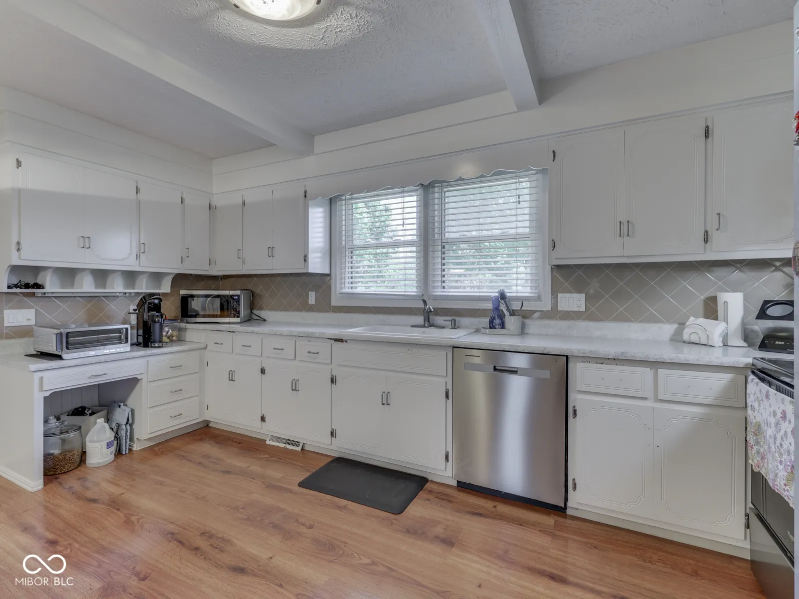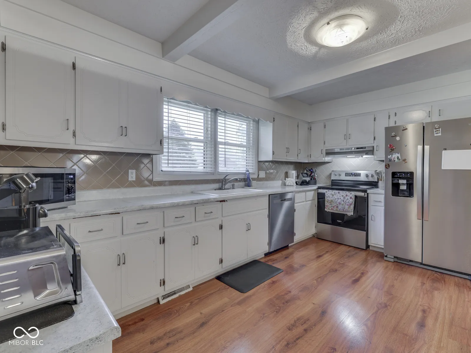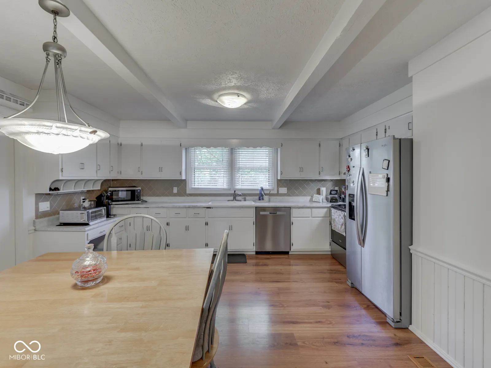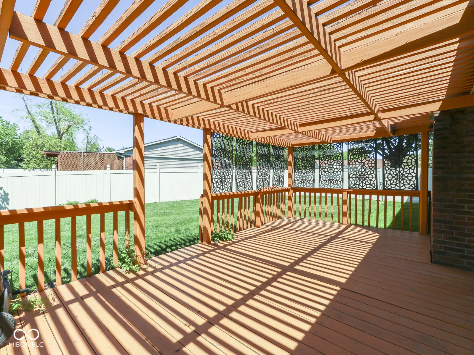 PLEASANT CREEK ACRES – Center Grove BRICK RANCH 1400sqft 3 BED 2 BATH on Larger Fenced, Corner Lot – steps from North Grove & the wonderful village of stores, shops, grocery, restaurants, car wash, LA Fitness, Nail Salons, Golf, & More. Custom Home with large wooden deck & pergola, 2 Car Finished Garage with tons of storage & attic access; KITCHEN: Eat-in, tons of upgrade counters & cabinet space, tile backsplash, Stainless Steel Appliances included (new Refrigerator), HW Laminate floor + lots of room; tile floor ENTRYWAY; GREAT ROOM: HW Lam Flooring, Wood burning Fireplace; LAUNDRY: Washer & Dryer; MASTER: His & Her Closet, Walk-in Shower, Large Vanity; BED 2 & 3: Great closet space, carpet; OUTSIDE: Big backyard & large corner lot, Fenced in rear with privacy fence, Big Updated Deck & Pergola, Mini Barn; 2+CAR GARAGE: Service Door, Storage, Keyless Entry, Attic – new insulation; VINYL REPLACEMENT WINDOWS throughout; Longtime owner of 20 years has cared for and maintained the home and grounds like an excellent steward. UPDATED: Roof & Gutters 2024, Heat Pump 2021 & Electric Water Heater 2024. 20 minutes from Indy Airport, 20 mins to Lucas Oil Stadium.
