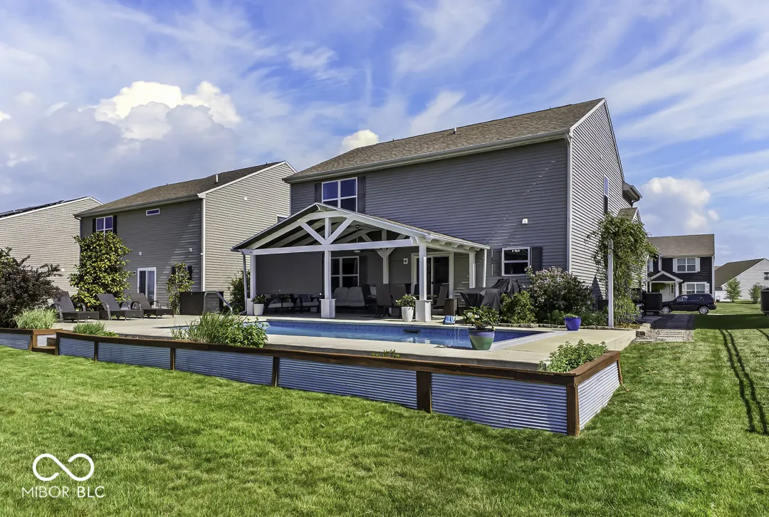Backyard paradise awaits-stunning heated & cooled pool with sun deck, plus a beautifully upgraded home built for comfort and entertaining! Built in 2016 and thoughtfully upgraded throughout, this stunning home truly shines where it matters most-outdoors. Step into your private backyard retreat featuring a beautiful heated and cooled pool (installed in 2021) with an expansive sun deck, perfect for relaxing or entertaining all summer long. An 8-ton heat pump maintains the pool temperature within approximately 4 degrees of your setting, and the safety cover adds peace of mind. The outdoor living continues with a spacious 12×24 covered porch-ideal for gatherings, game days, or quiet evenings. All the beautiful flower beds thrive thanks to an efficient irrigation system. Inside, you’ll find a fresh, modern feel with numerous recent updates, including luxury waterproof LVP flooring, quartz countertops, updated paint, and a stylish coffee nook with added cabinetry-all completed in 2024. Additional highlights include an upgraded pantry, extra foyer closet storage, and a beautifully redesigned primary closet completed this year. This home blends comfort, style, and exceptional outdoor living-making it a must-see!