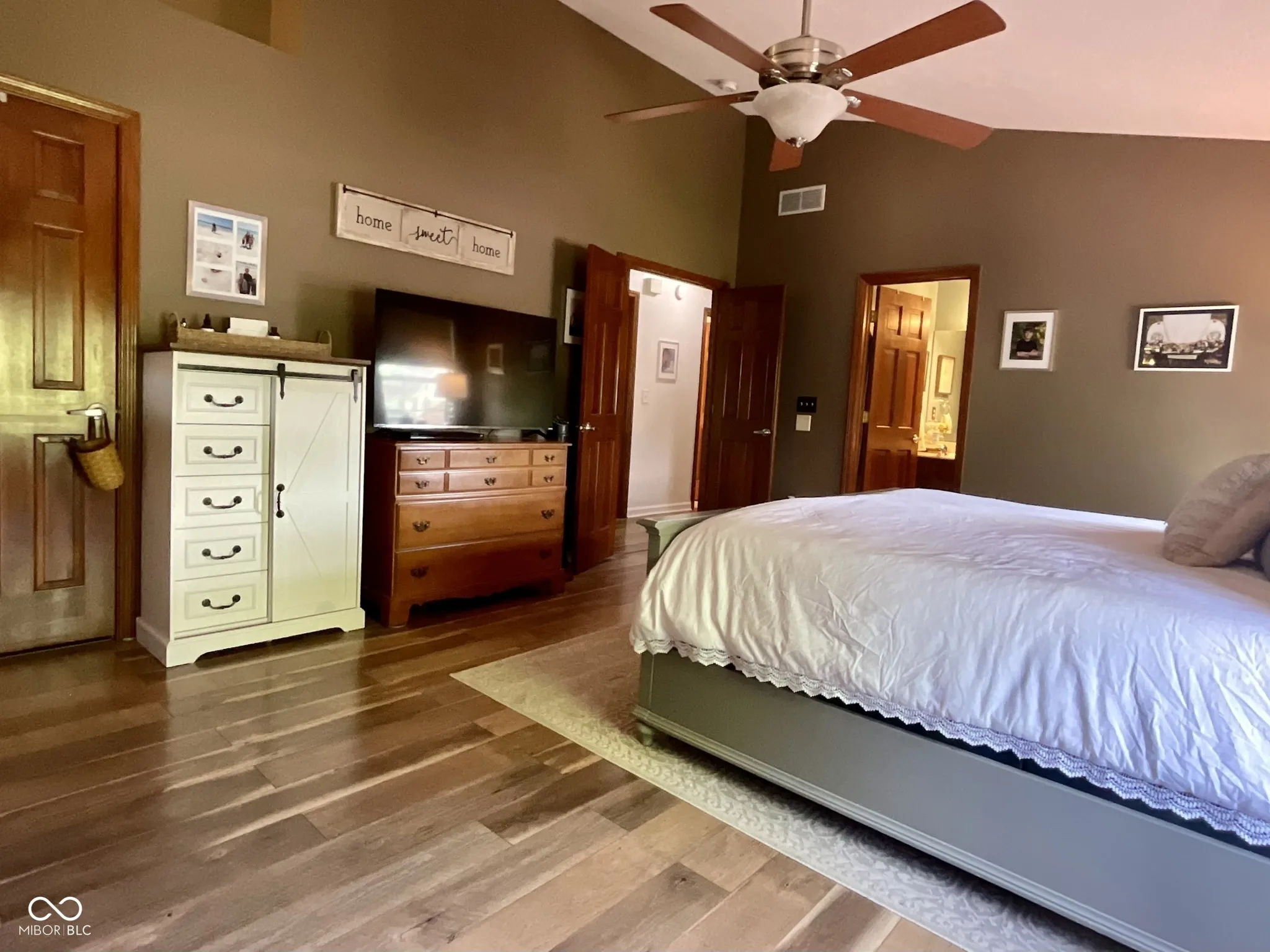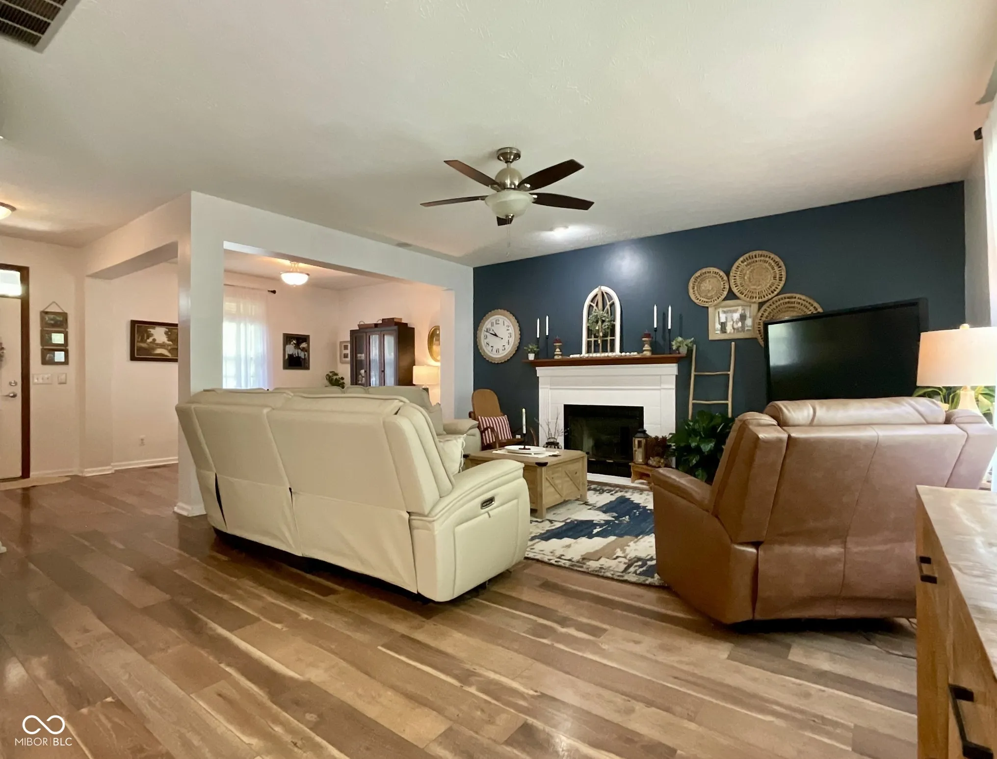 Stunning 5BR home in Olive Branch Manor on a quiet cul-de-sac! New wood laminate flooring throughout main & upper. New flooring in the finished basement! Open floorplan. Spacious living room w/ a gas fireplace for you to cozy up to during the winter. Large kitchen w/ island, dual pantries, granite countertops, tile backsplash & a new fridge. Perfect for hosting family & friends. Four generous BRs upstairs. Master BR w/ a huge walk-in closet, ensuite BA & vaulted ceilings. Have family movie nights in the finished basement which has a 5th BR, coffee area & additional storage. Unwind in the fully-fenced backyard & enjoy the privacy of the trees behind you. Irrigation system. Updates include side storage shed, gutter guards, sump pump w/ battery backup, 5-year old roof & more! Center Grove Schools.
