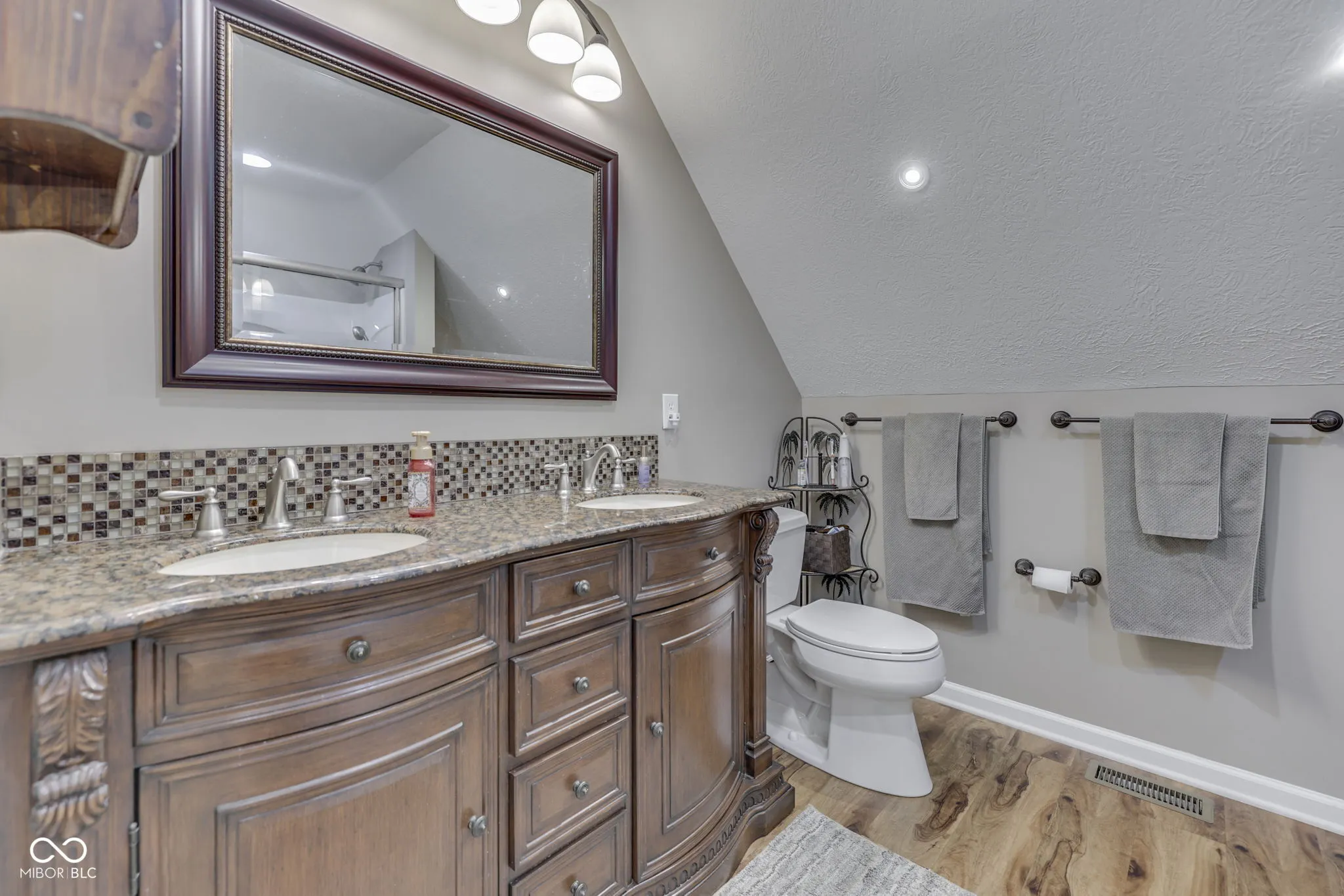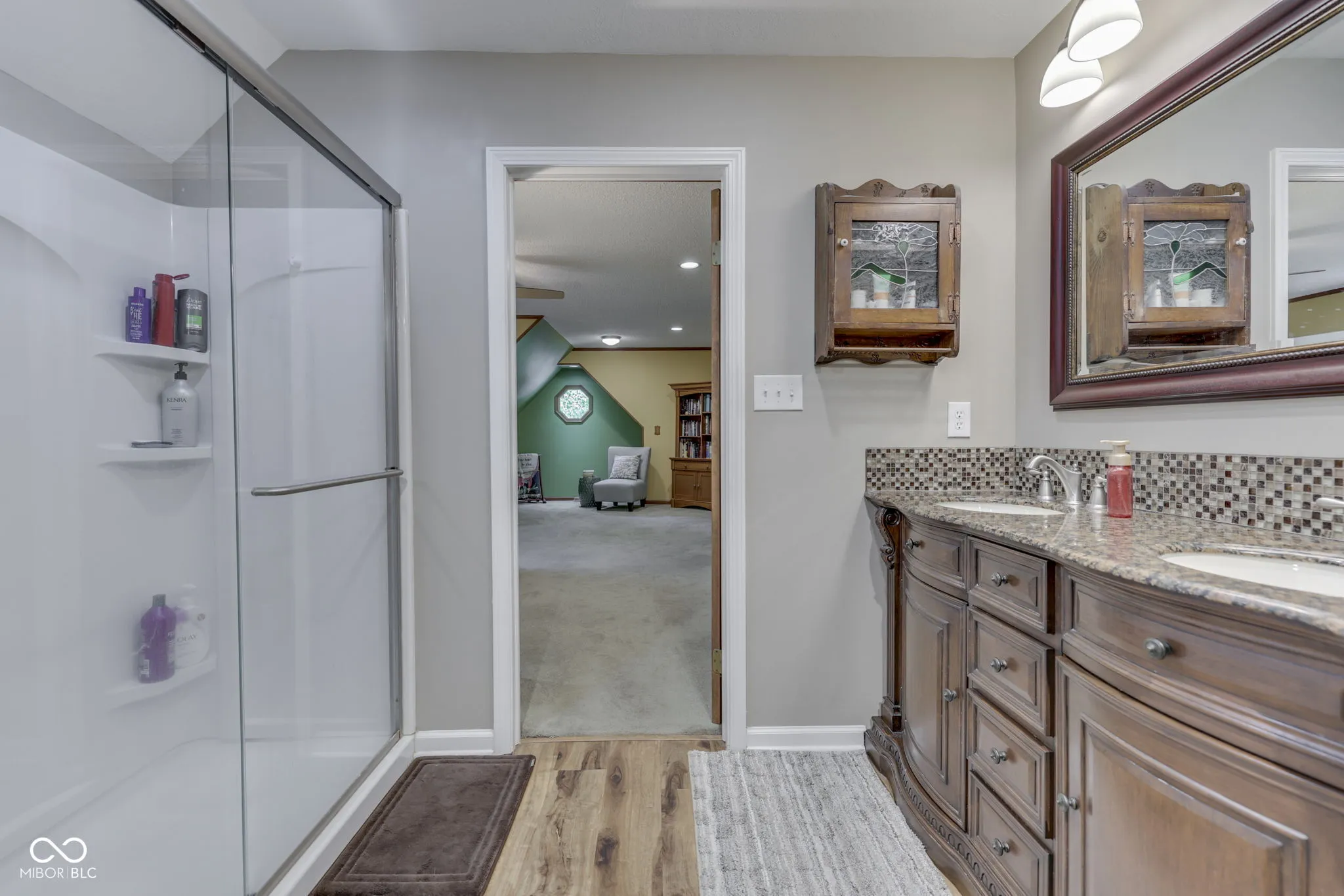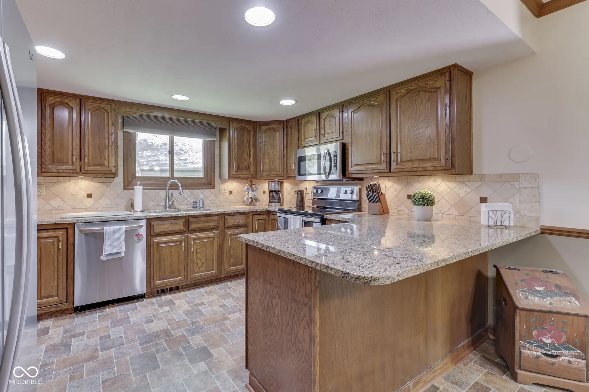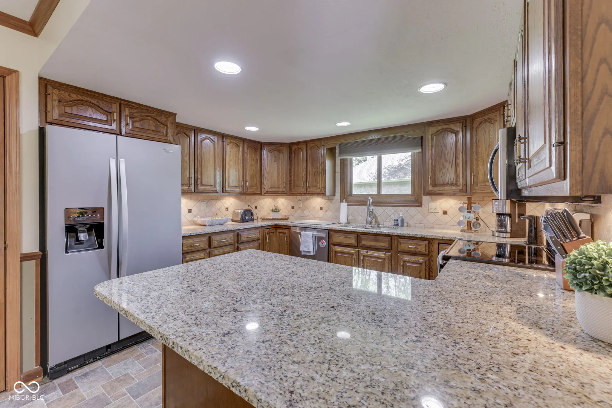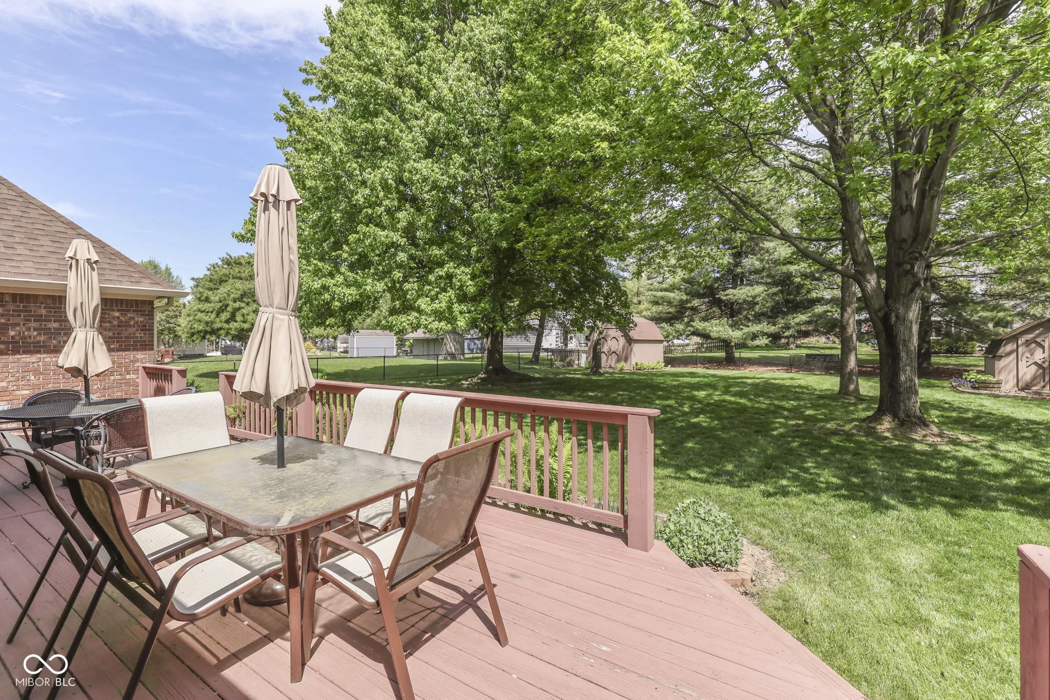 Stunning! Move in Ready, Brick Windsong home, w/ 5 BR/3.5 BA and tons of tasteful updates will make you wish to place roots here. 2 Story cathedral beamed ceilinged Living room w/ scalloped HW floors, built in bookshelves and masonry wood burning fireplace provides an inviting setting for hosting friends. Enjoy meals in the formal dining room or breakfast room. The Kitchen boasts granite counter tops, breakfast bar, tiled backsplash, and Stainless steel appliances. Primary BR on the main level leads to the walkout deck & private BA w/ dbl bowl granite top vanity & walk in closet. Large guest bedroom 2 w/ walk in closet and engineered HW floors. Huge Upper level Primary BR(seond primary) suite w/ sitting room, walk in closet, walk in shower, dbl bowl granite top vanity w/ tiled backsplash, & LVP floors. Spacious bedroom 5 could be a playarea/family room, has new carpet flooring. The well landscaped yard invites you outdoors to relax on the deck in the fenced in backyard. Plenty of extra storage space w/ 2 mini barns. Don’t miss-Regularly serviced hvac/electrical/plumbing, Renewal by Anderson windows, 6 panel doors, Fresh paint in much of the home, Water softener included, Laundry room w/ storage cabinets, & the Guest Full BA & half BA w/ Granite tops. Finished garage w/ service door and storage shelving. No HOA. Updates include: Interior paint/Upper BR carpet/gutter guards ’26, Exterior paint 25′, Microwave ’23, Windows/blinds/garage springs ’20, Den/BR flooring ’19, Primary BR BA ’17, Deck ’16. Come and make new memories in this lovely home.