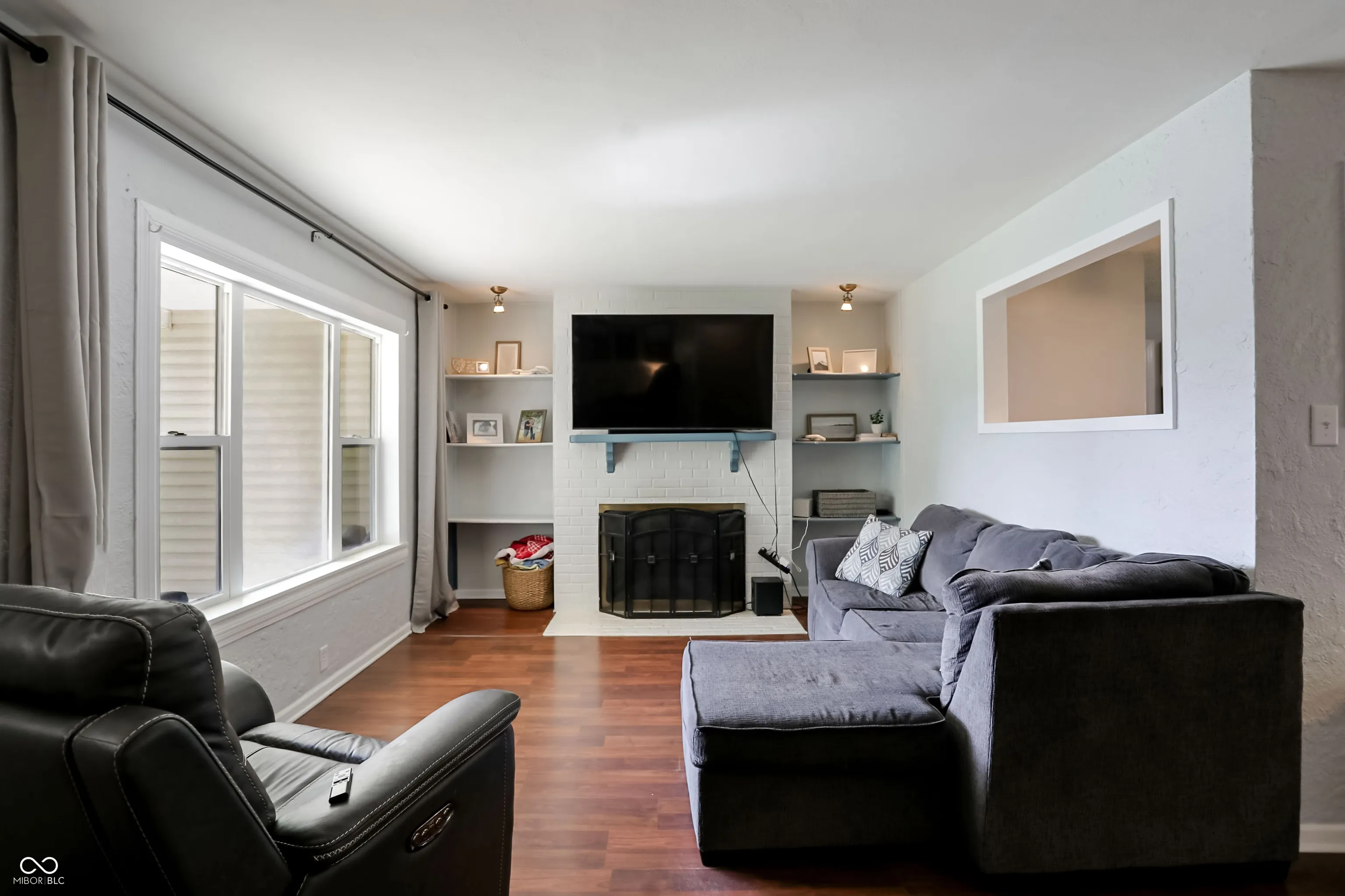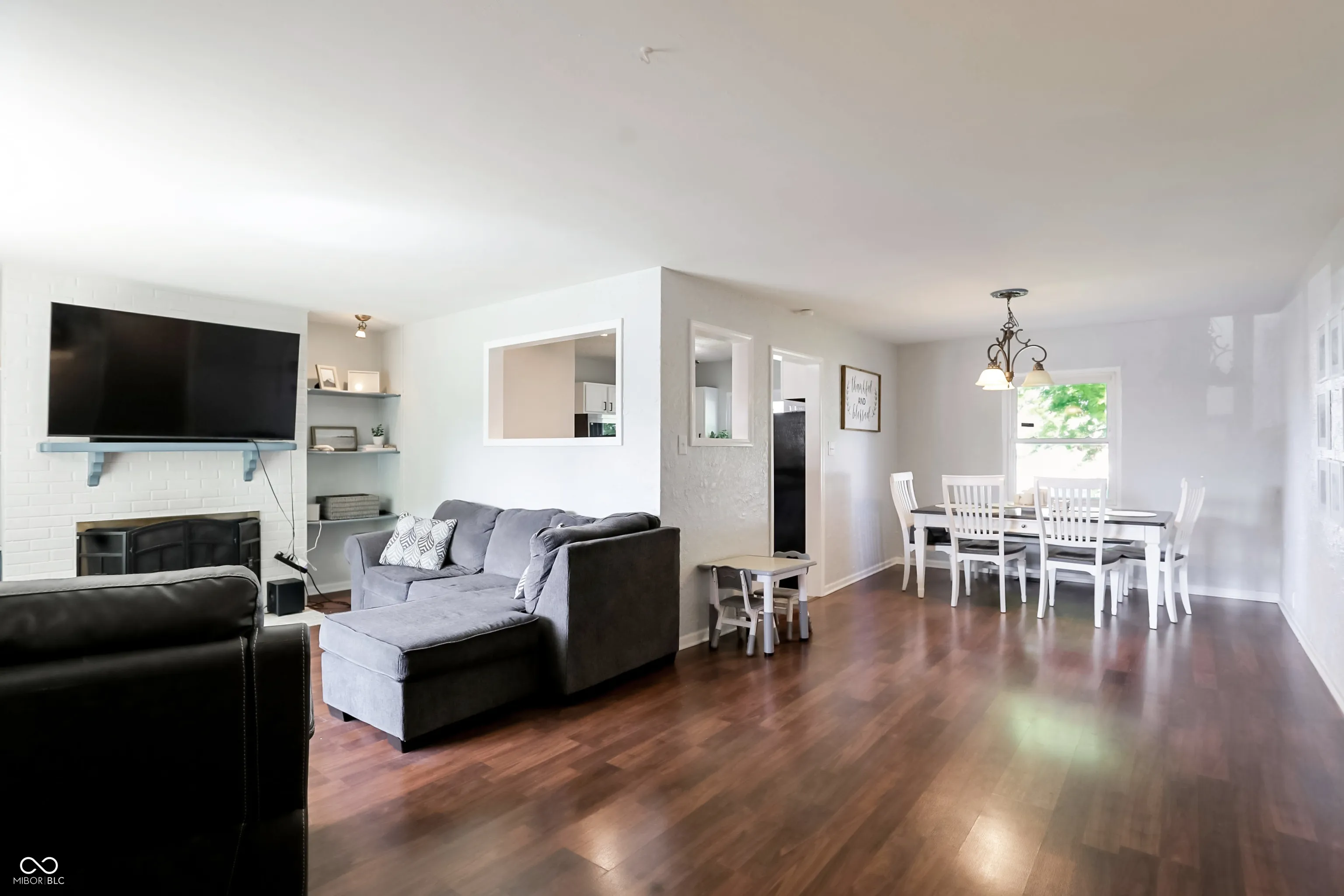 Adorable 3 bedroom/2 bath Beech Grove Beauty is ready for new owners! An Inviting porch welcomes you in to a spacious living room with a wood burning fireplace and built in shelves! Sunlight is never an issue with windows galore in this home! New LVP in the kitchen, with newer appliances, and plenty of cabinets! A split floorplan has the primary bedroom and full bath off the conveniently located laundry room. Two more bedrooms and a full bath are located off the living room. Head outside to the large, fully fenced backyard, with a shed for storage, and a deck perfect for entertaining! An unfinished basement space is also available and ready for more storage. Walking distance to all Main Street, Beech Grove has to offer; restaurants, shopping, and more!