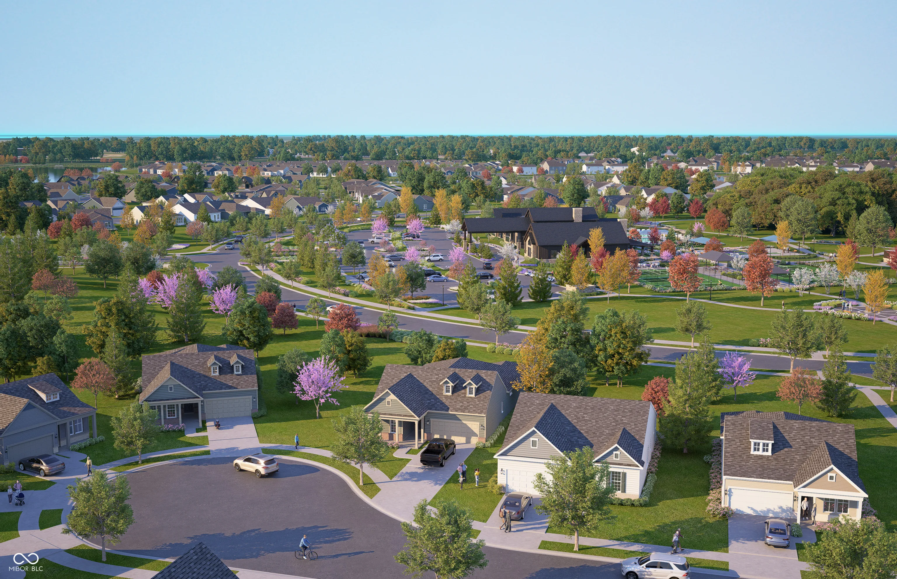 Step into the thoughtfully designed Prestige floor plan at Finch Creek by Del Webb, where style meets functionality and convenience. The heart of the home is the gourmet kitchen, boasting 42″ white cabinets, Cashmere Taj 3 cm quartz countertops, a tile backsplash, and stainless steel built-in oven and microwave and gas cooktop. Perfectly positioned, the kitchen flows seamlessly into the gathering room and dining cafe area which opens onto a patio-ideal for entertaining or relaxing. A flex room with doors provides versatile space for an office, hobby room, or quiet retreat. The owner’s suite is a true haven, featuring an en-suite bath with quartz countertops and tiled walk-in shower, complete with luxurious tile finishes. Guests will appreciate the privacy of the second bedroom, which includes its own en-suite bath. The extended finished garage offers ample storage, perfect for stowing seasonal items or creating a workshop space. The Finch Creek by Del Webb community is where lifestyle takes center stage. Residents enjoy TV streaming and internet included, plus convenient seasonal opening and closing of irrigation systems. The resort-style amenities include indoor and outdoor pools, a state-of-the-art fitness center, pickleball and bocce ball courts, and a clubhouse featuring social programming led by a full-time Lifestyle Director. A high-tech simulation room offers virtual golf and other sports, while 8.5 miles of walking trails, pocket parks, and a dog park encourage an active, outdoor lifestyle. Ideally located just minutes from I-69, Hamilton Town Center, top-rated hospitals, golf courses, and downtown Noblesville, Finch Creek by Del Webb offers the perfect blend of tranquility, activity, and convenience. Photos of similar model.