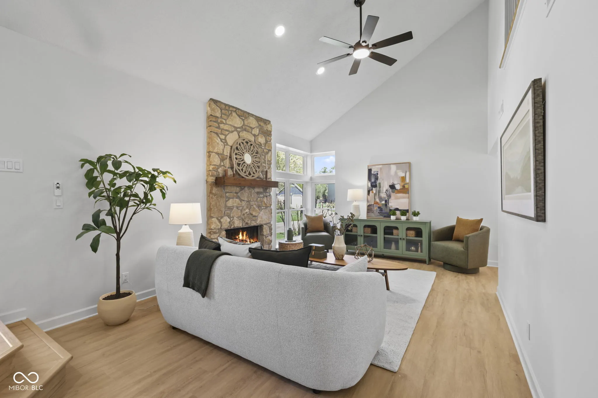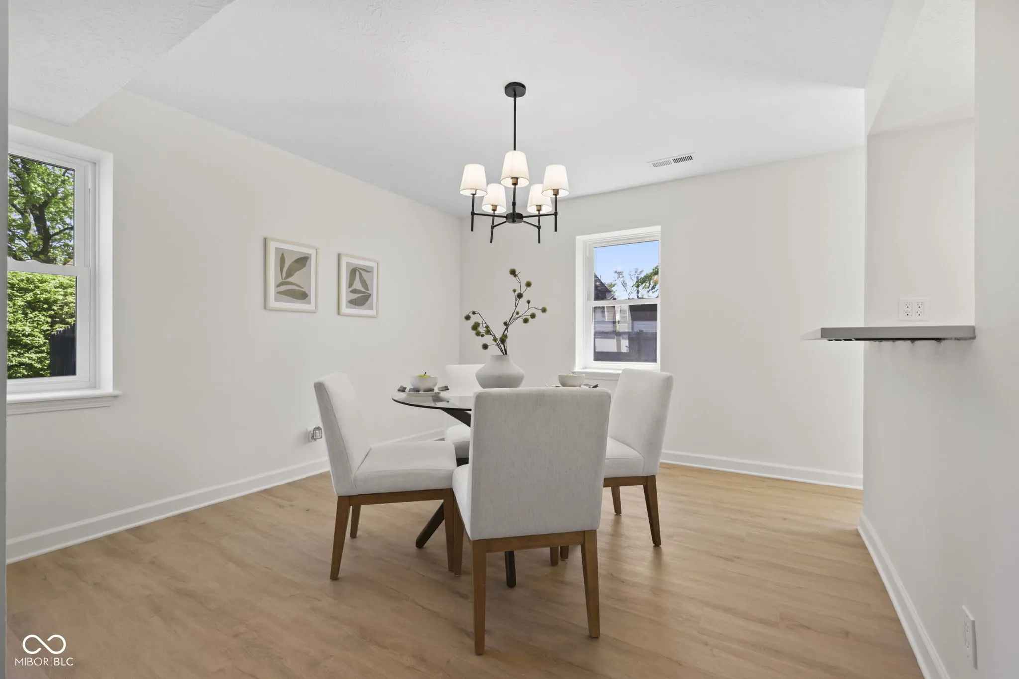 Welcome to 9138 Hardwood Court, a fully renovated 3-bedroom, 2.5-bath home on a cul-de-sac in the highly sought-after Hearthstone neighborhood, ideally situated right across the street from the Sahm Golf Course. This modern, move-in-ready residence blends thoughtful design with stylish updates throughout, like fresh neutral paint, new LVP flooring, new carpet, new bathrooms, a new kitchen and ALL new windows. Step inside the entrance foyer to admire a spacious living room featuring soaring vaulted ceilings, stunning windows that flood the room with natural light, and a freshly mortared stone fireplace that creates a warm and inviting focal point. The kitchen is a true standout, showcasing a designer mix of cabinet colors, new stainless steel appliances, beautiful new quartz countertops with bar seating and a new wall of cabinets for your pantry storage. The kitchen overlooks a generously sized backyard, which feels like an island of its own with a well-maintained wooden privacy fence and an elegantly curved brick patio, perfect for gatherings or enjoying quiet summer evenings. Upstairs, new plush carpeting enhances the comfort of each bedroom, creating light, airy spaces ideal for relaxation. The spacious primary suite with a walk-in closet offers a smart, functional layout with the attached bathroom designed to make busy mornings effortless by separating the vanity from the shower/tub/toilet room. Key mechanicals have plenty of life left in them with a new programmable thermostat for the oversized heat pump and air handler (2017) and water heater (2019). Conveniently located near all the shopping, dining, and entertainment that Castleton area has to offer, this home combines style, comfort, and an unbeatable location!