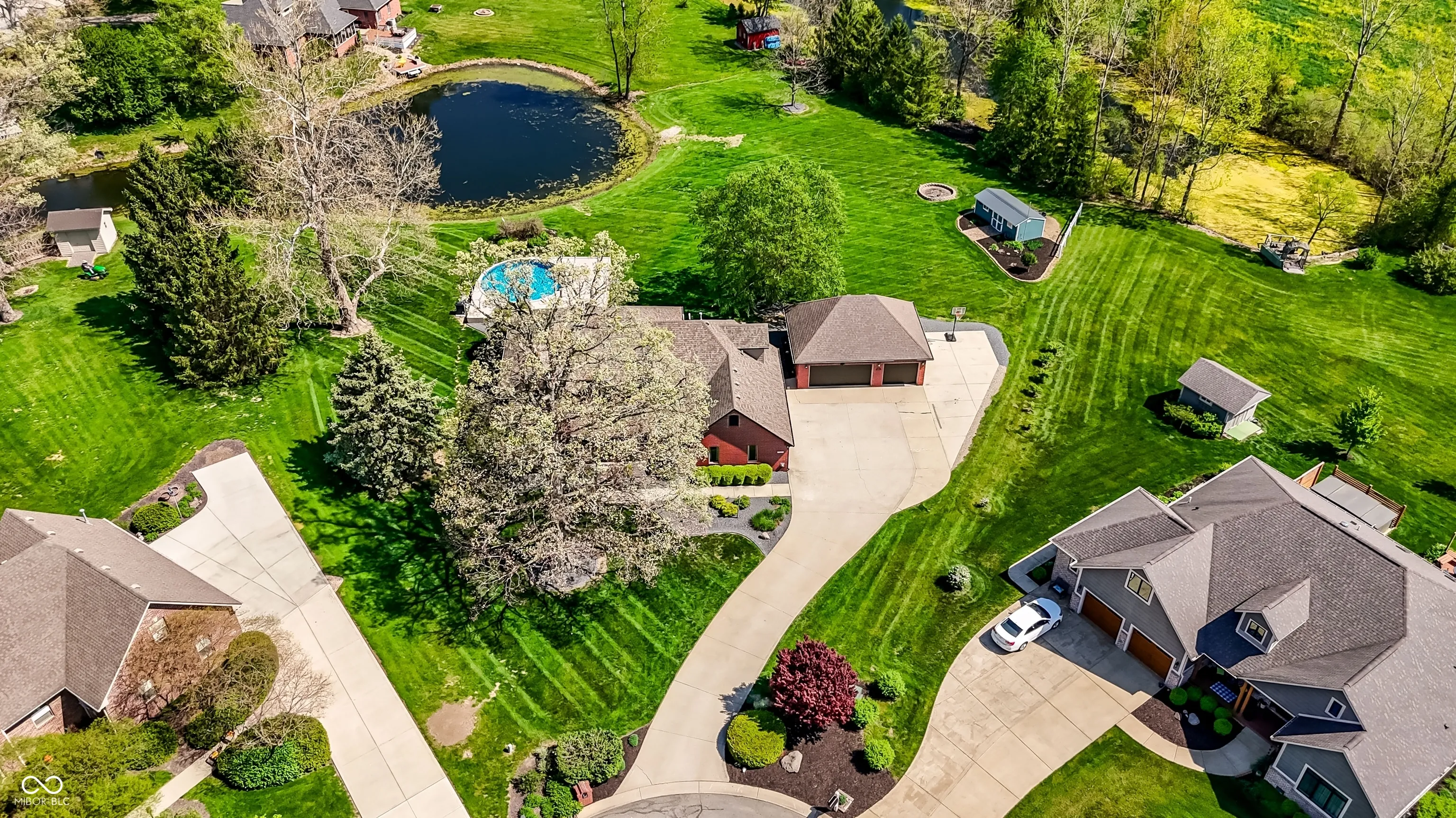 This impressive Cranberry Lake Estates property offers nearly 3,500 sq ft of updated living space and sits on a quiet cul-de-sac with 1.28 acres of scenic property. The expansive backyard provides plenty of room to enjoy the outdoors and features two stocked ponds known for large fish, creating a peaceful setting rarely found in residential neighborhoods. The home welcomes you with excellent curb appeal and updated landscaping, including new continuous concrete edging. Inside, the flexible floor plan offers multiple living spaces, including a formal living room, a comfortable family room with fireplace, and a large private recreation room ideal for relaxing or entertaining. The spacious eat-in kitchen provides plenty of room for daily living, while the formal dining room is perfect for gatherings. A generously sized laundry room with built-in cabinetry adds functionality and workspace. The primary suite offers plenty of room to unwind and features dual vanities, a soaking tub, separate shower, and walk-in closet. The remaining three bedrooms are larger than typical, providing comfortable space for family or guests. Additional highlights include a 3-car garage and numerous updates such as flooring, interior and exterior paint, roof, gutters, an encapsulated crawl space plus a large list of other improvements. Located in Cranberry Lake Estates with no HOA, this property offers peaceful surroundings with an easy commute to Greenfield and quick access to I-70.
