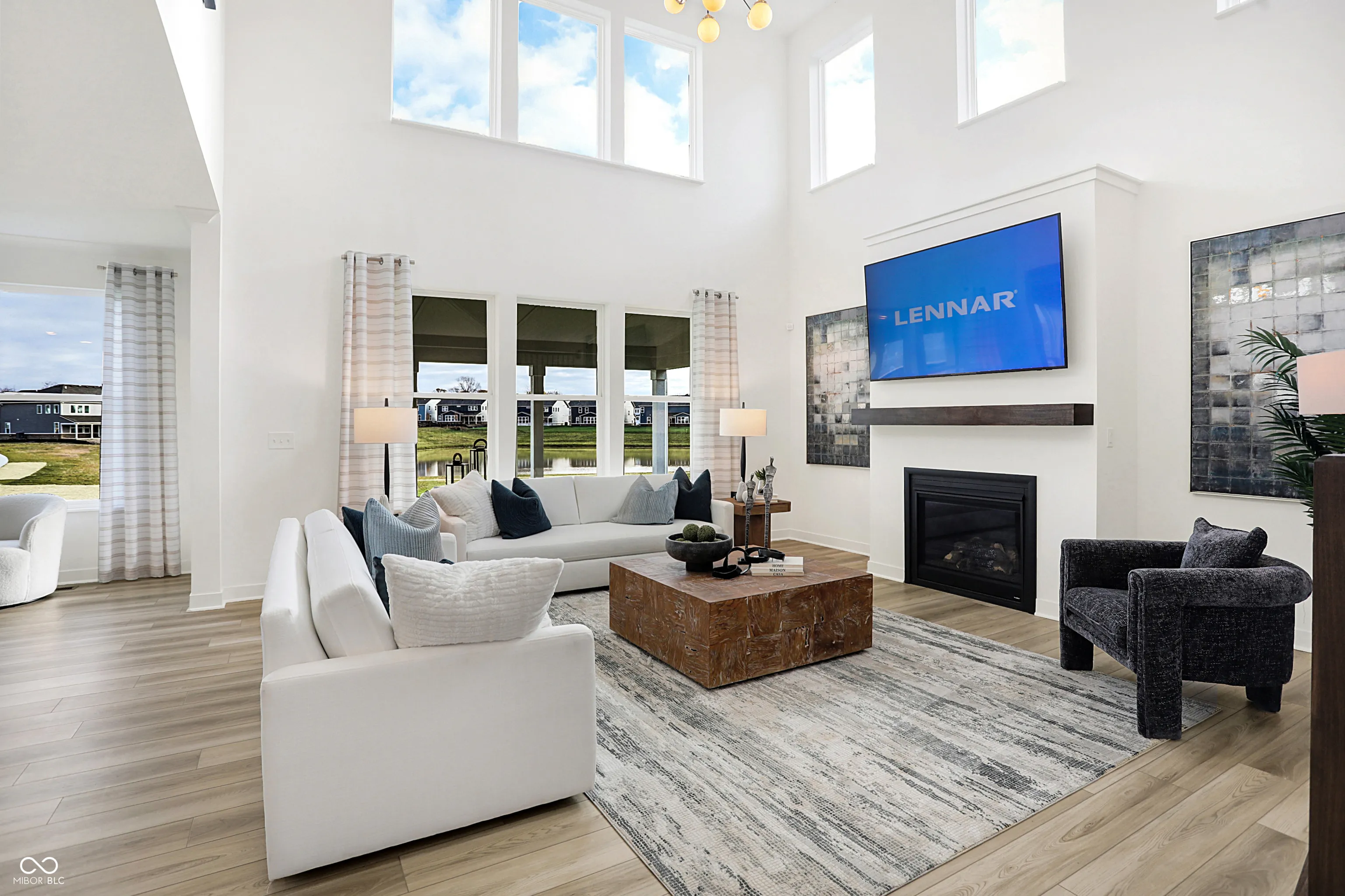 The Architectural SL Collection of new single-family homes is coming soon to The Timbers master-planned community in Noblesville, IN. Amenities will include a swimming pool, pool house and playground. The community is situated near great shops and restaurants in historic Downtown Noblesville. Recreation sites include Morse Reservoir and 150-acre Forest Park. The Ruoff Music Center amphitheater offers prime entertainment. This new two-story home exudes elegance from the moment of entry. The first floor features a double-height Great Room with a center fireplace that melds with the modern kitchen and sunny dining room in an open design. Nearby is a covered porch to offer outdoor space, while a private study and a bedroom suite frame the layout. Four upper-level bedrooms surround a multipurpose loft, including the spacious owner’s suite with an attached bathroom and walk-in closet. A three-car garage completes the home. Don’t miss the full basement with 9′ walls. *Photos/Tour of model may show features not selected in home.