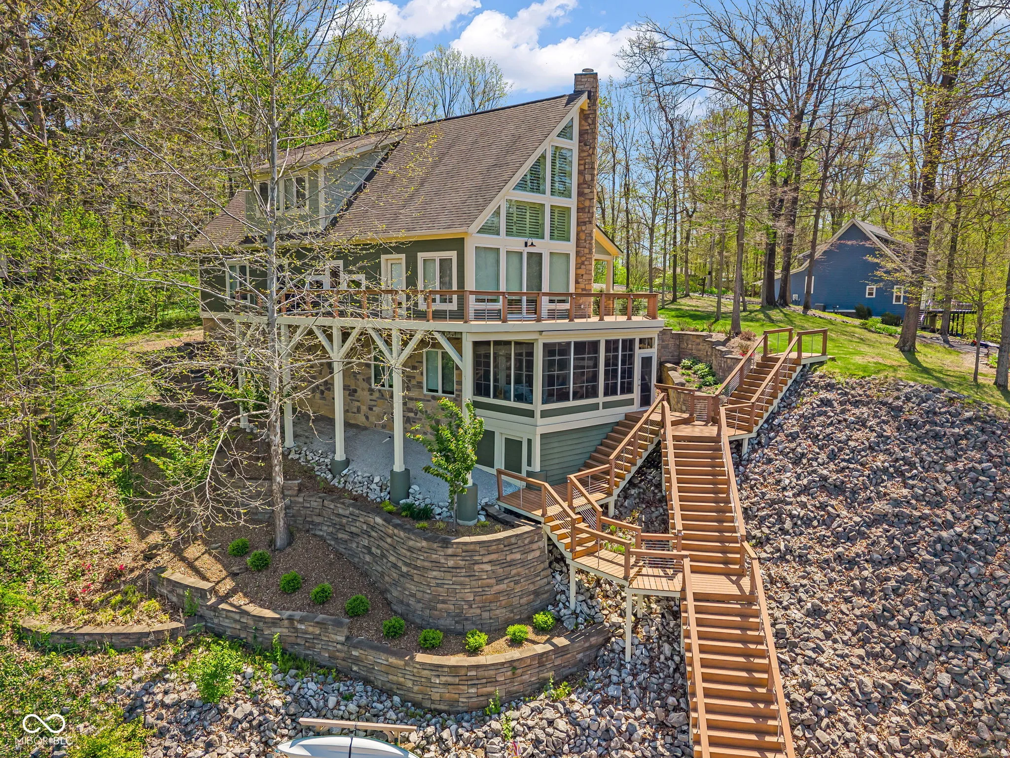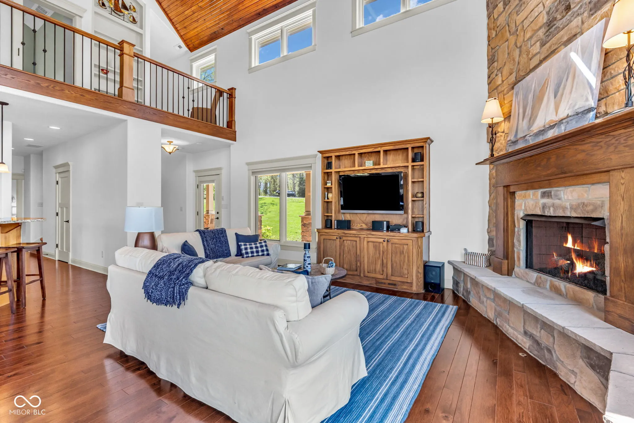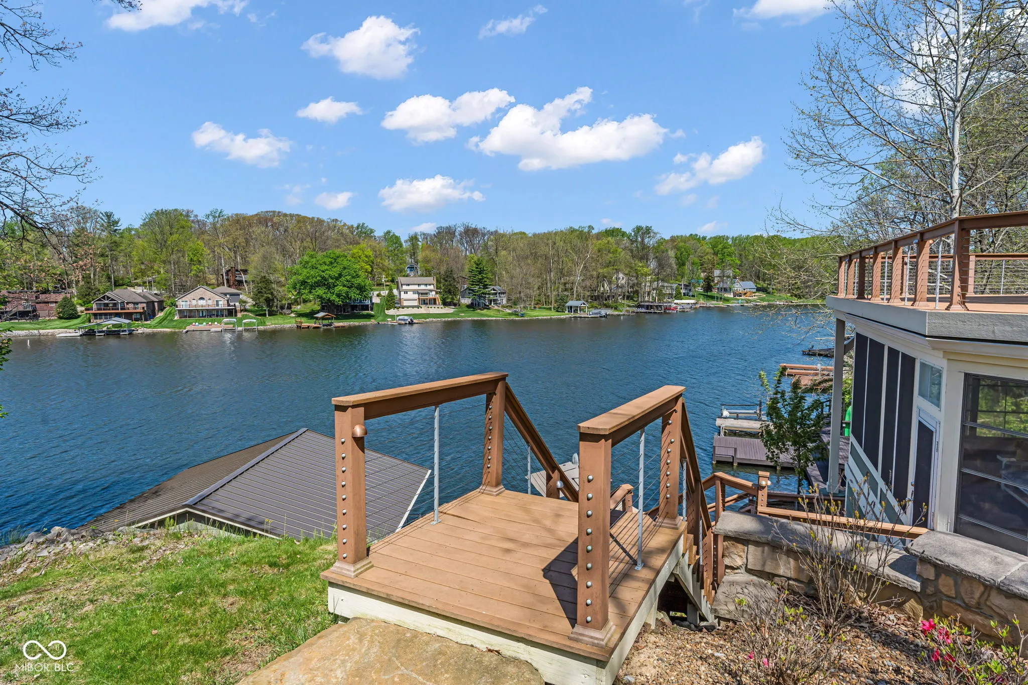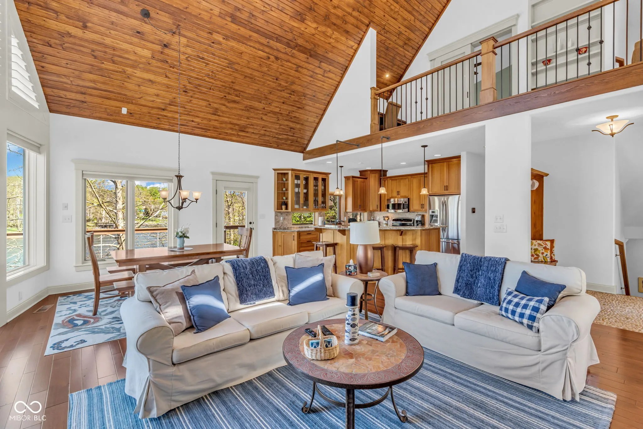 Welcome to 310 Victory Hill, an extraordinary custom-built lakefront home positioned on the main body of Heritage Lake. Offered for the first time, this one-owner residence features three levels of thoughtfully designed living with breathtaking water views throughout. A welcoming covered front porch sets the tone for relaxed lake living. Inside, you’re greeted by a custom boot bench and a stunning great room with vaulted wood slat ceilings, wood floors and expansive windows overlooking the lake. The kitchen is beautifully appointed with custom cabinetry, granite countertops, stainless steel appliances, and remote-controlled shutters for added convenience. The main level offers two generously sized bedrooms and a full bath with heated tile floors, double sinks, and a walk-in shower. Upstairs, the private primary suite includes an office nook, a spacious bedroom with incredible lake views, and a spa-like bath with a garden tub, separate cultured marble shower, double vanity, and heated tile floors. The fully finished walk-out lower level is ideal for entertaining or multi-generational living, featuring a large family room with custom lockers, a second full kitchen, additional bedroom, full bath with heated tile floors, and a screened-in patio with fireplace overlooking the water. A large laundry room and mechanical space complete the lower level. Outdoor living is unmatched with wraparound Trex deck for low-maintenance enjoyment and a newer dock with boathouse and lifts. This home is being offered fully furnished, including linens, housewares, and a pontoon,truly turnkey. Even the custom 16 ft. Christmas tree stays. A rare opportunity to own a premier lakefront property. Schedule your private showing today and experience lake living at its finest.