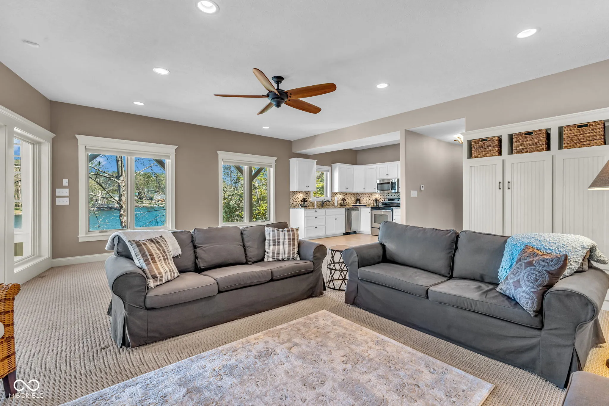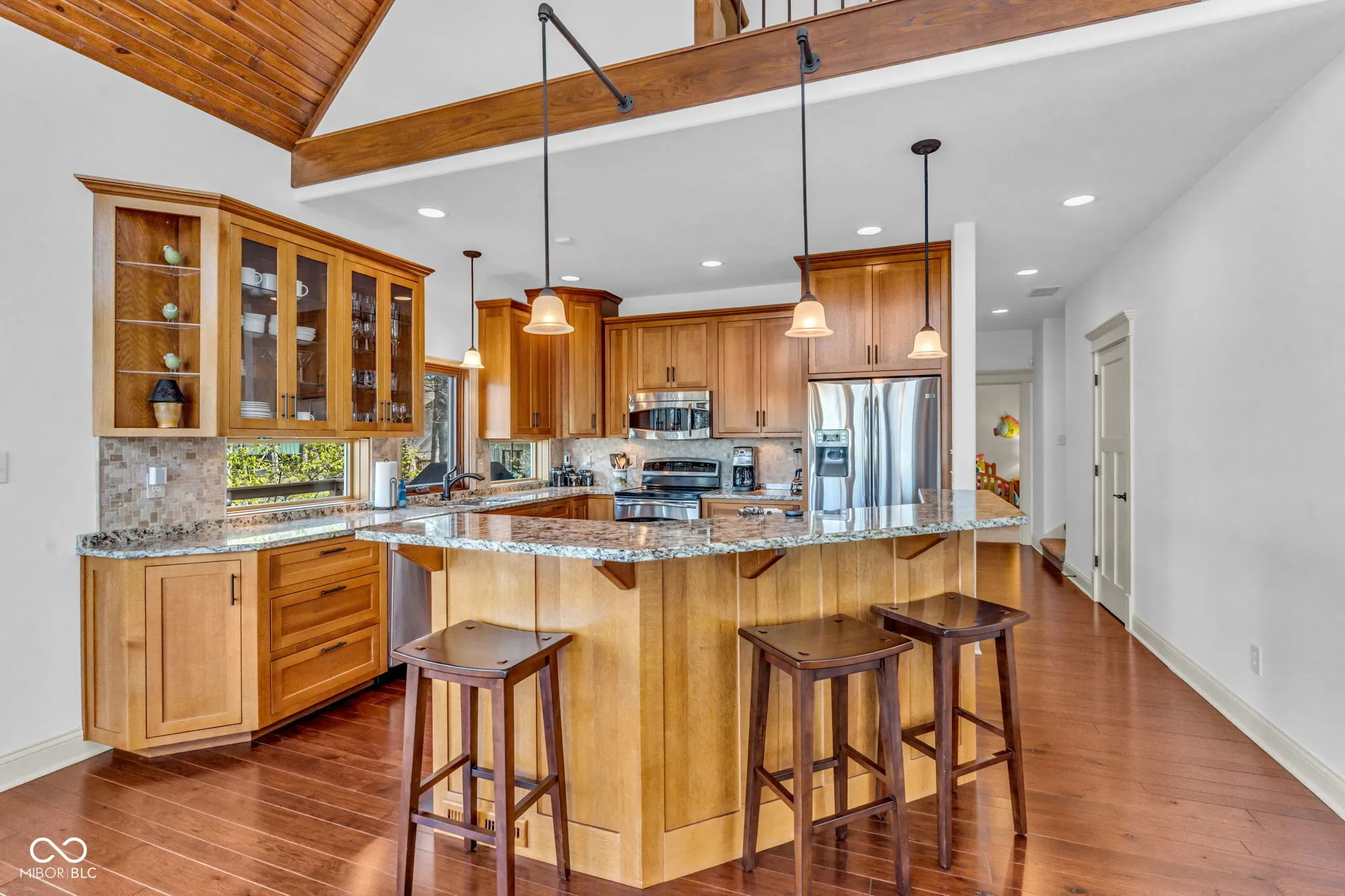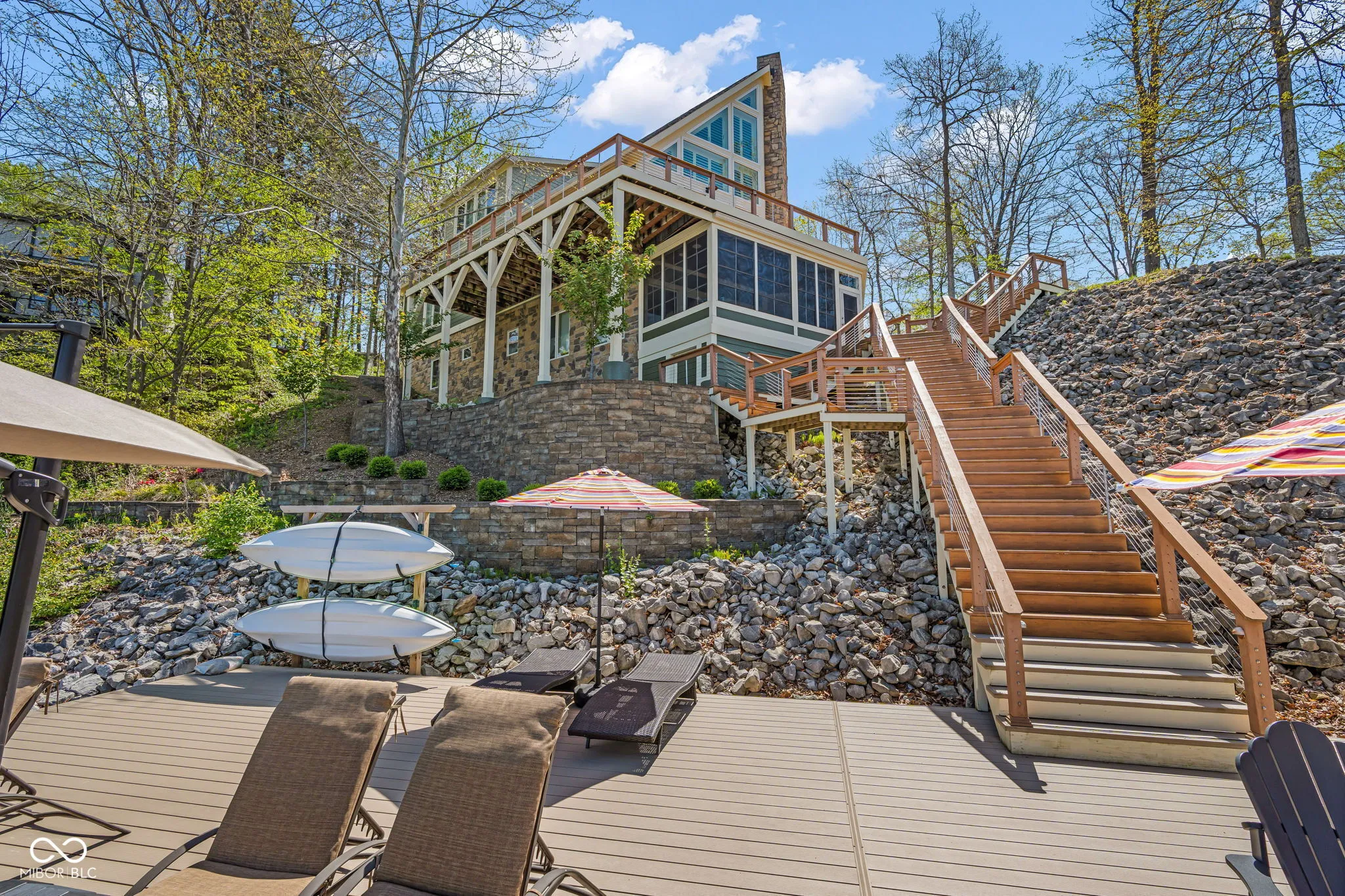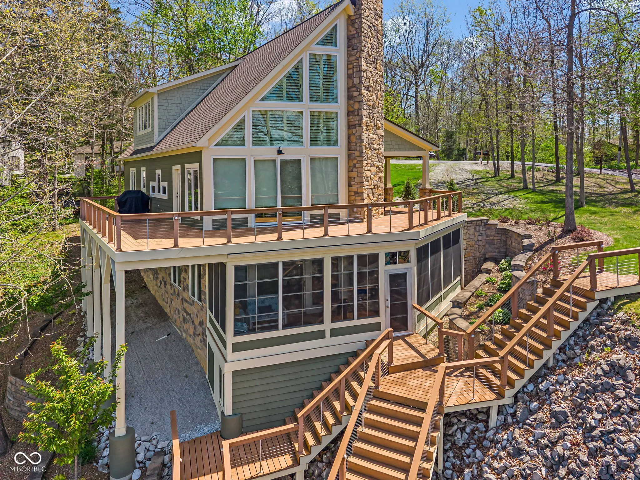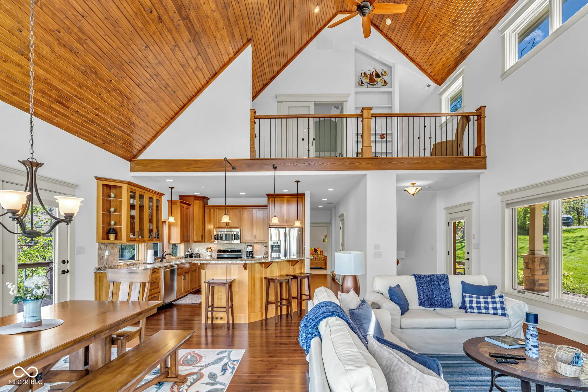 Welcome to 310 Victory Hill, an extraordinary custom-built lakefront home positioned on the main body of Heritage Lake. Offered for the first time, this one-owner residence features three levels of thoughtfully designed living with breathtaking water views throughout. A welcoming covered front porch sets the tone for relaxed lake living. Inside, you’re greeted by a custom boot bench and a stunning great room with vaulted wood slat ceilings, wood floors and expansive windows overlooking the lake. The kitchen is beautifully appointed with custom cabinetry, granite countertops, stainless steel appliances, and remote-controlled shutters for added convenience. The main level offers two generously sized bedrooms and a full bath with heated tile floors, double sinks, and a walk-in shower. Upstairs, the private primary suite includes an office nook, a spacious bedroom with incredible lake views, and a spa-like bath with a garden tub, separate cultured marble shower, double vanity, and heated tile floors. The fully finished walk-out lower level is ideal for entertaining or multi-generational living, featuring a large family room with custom lockers, a second full kitchen, additional bedroom, full bath with heated tile floors, and a screened-in patio with fireplace overlooking the water. A large laundry room and mechanical space complete the lower level. Outdoor living is unmatched with wraparound Trex deck for low-maintenance enjoyment and a newer dock with boathouse and lifts. This home is being offered fully furnished, including linens, housewares, and a pontoon,truly turnkey. Even the custom 16 ft. Christmas tree stays. A rare opportunity to own a premier lakefront property. Schedule your private showing today and experience lake living at its finest.