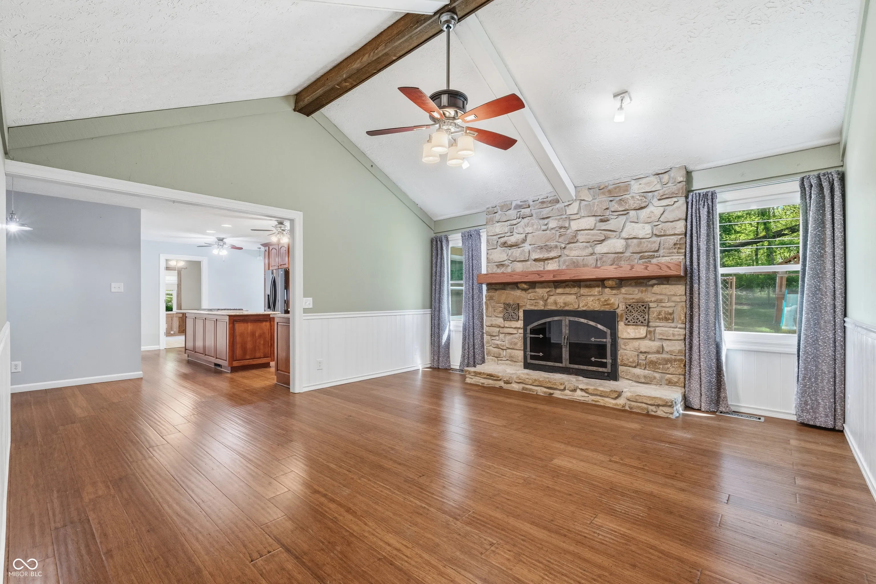 Welcome to 300 Byram Blvd in Martinsville.. where character, space, and thoughtful updates come together on a beautiful, tree-lined lot. Located in the desirable Shireman Estates lake community, residents enjoy access to a peaceful setting with a neighborhood lake perfect for relaxing, fishing, and taking in the natural surroundings. This established community offers a quiet, tucked-away feel while still being conveniently located to town amenities. This well-maintained ranch offers a versatile layout with multiple living spaces, ideal for both everyday living and entertaining. Inside, you’ll find a spacious kitchen featuring abundant cabinetry, granite countertops, and a large center island with cooktop, flowing seamlessly into the main living areas. The adjoining living room showcases a stunning stone fireplace and vaulted ceilings, creating a warm and inviting focal point. Additional living space provides flexibility for a formal sitting area, office, or playroom. The home offers generously sized bedrooms, including a primary suite with an updated en-suite bath and stylish sliding barn doors. A bright and airy sunroom spans the back of the home, surrounded by windows and perfect for year-round enjoyment. Step outside to a private backyard retreat complete with a patio and hot tub area, mature trees, and plenty of space to relax or entertain. The attached two-car garage and extended driveway provide ample parking and convenience. Located in an established area with a peaceful setting, this home offers the perfect balance of comfort, charm, and functionality with room to make it your own.