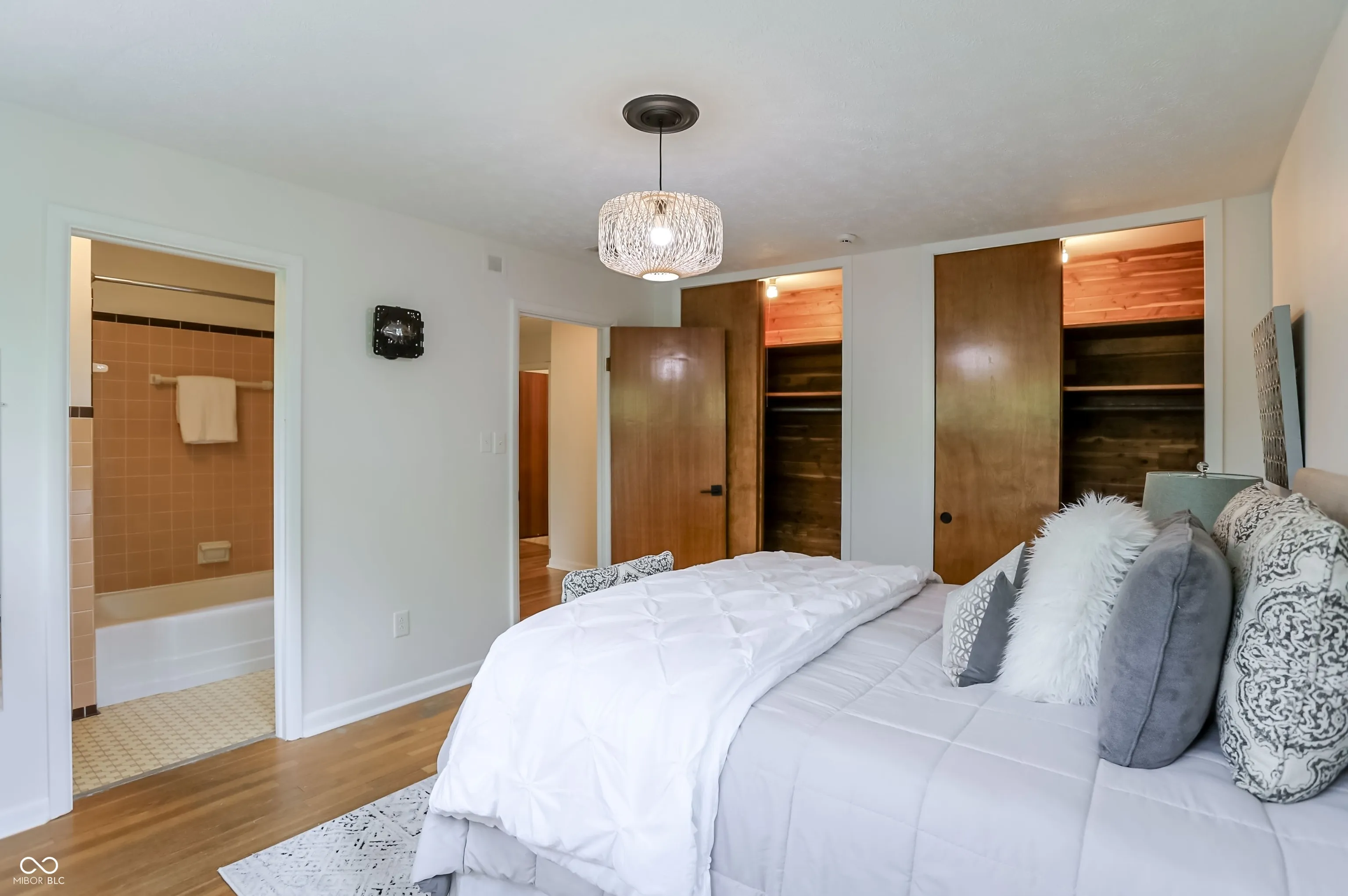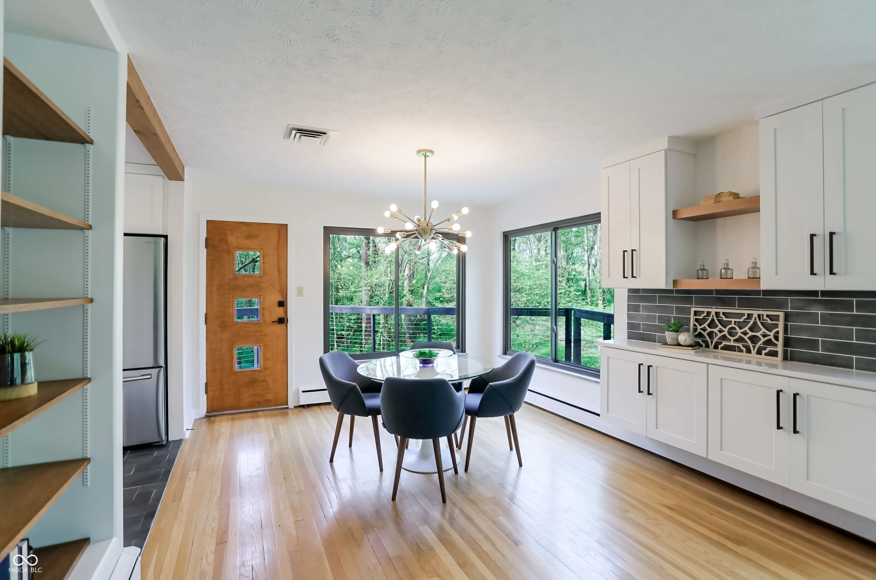Discover this stunning Mid-Century Modern home set on nearly 1.5 acres in Carmel, featuring direct, private, gated access to the Monon Trail right from your backyard. Nestled atop a hill in a secluded neighborhood with no HOA, this gorgeous, partially wooded property offers both privacy and natural beauty. The home showcases two full levels of thoughtfully designed living space, including 4 bedrooms and 3 full baths. Updated in 2024, it features expansive windows that fill the home with natural light and offer picturesque, multi-directional views. Enjoy cozy evenings by one of the two fireplaces, located on each level, and appreciate the elegance of the beautifully refinished hardwood floors throughout the main level. Conveniently located with easy access to downtown Carmel and Clay Terrace, this home perfectly blends tranquility with accessibility. Your next chapter starts here.