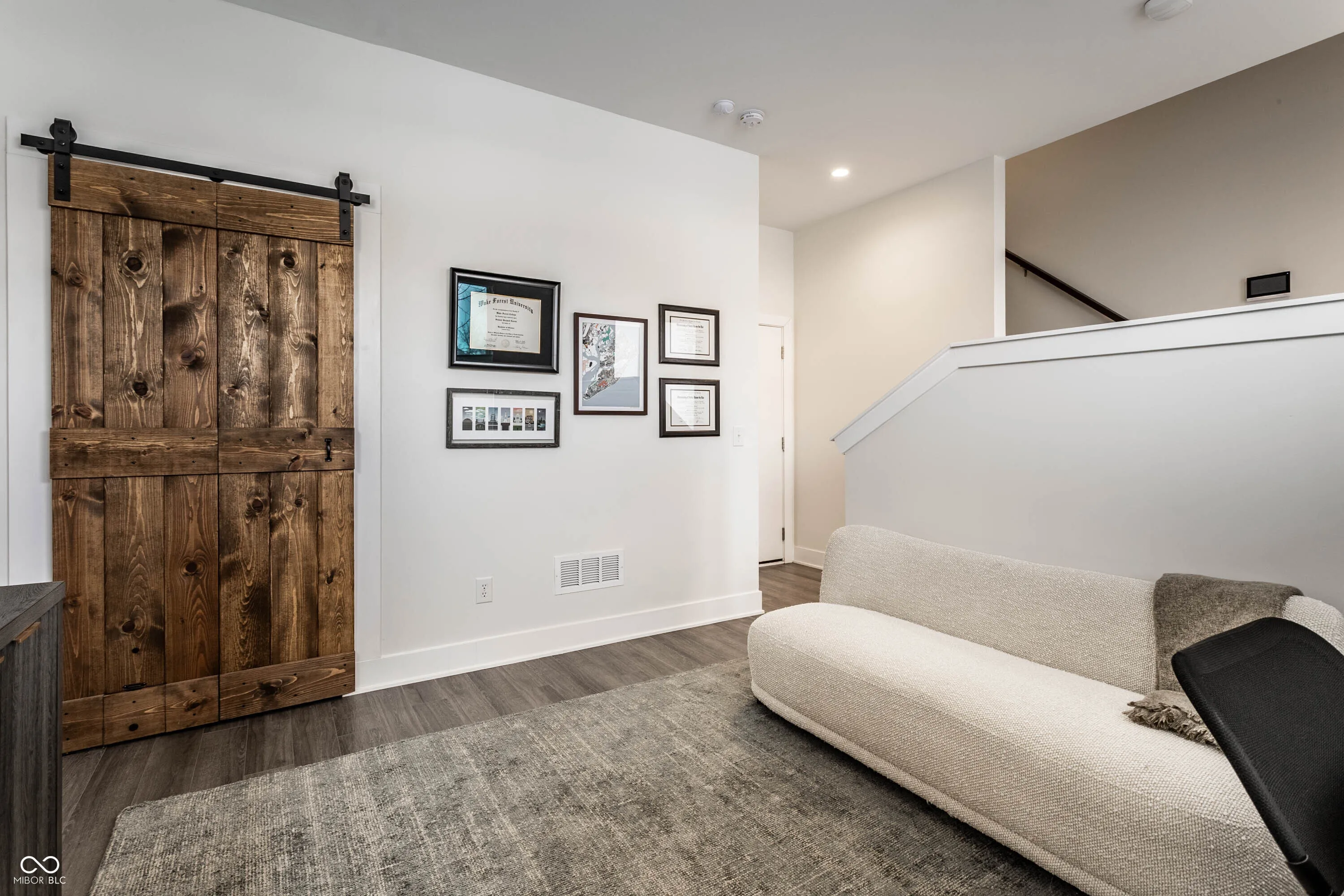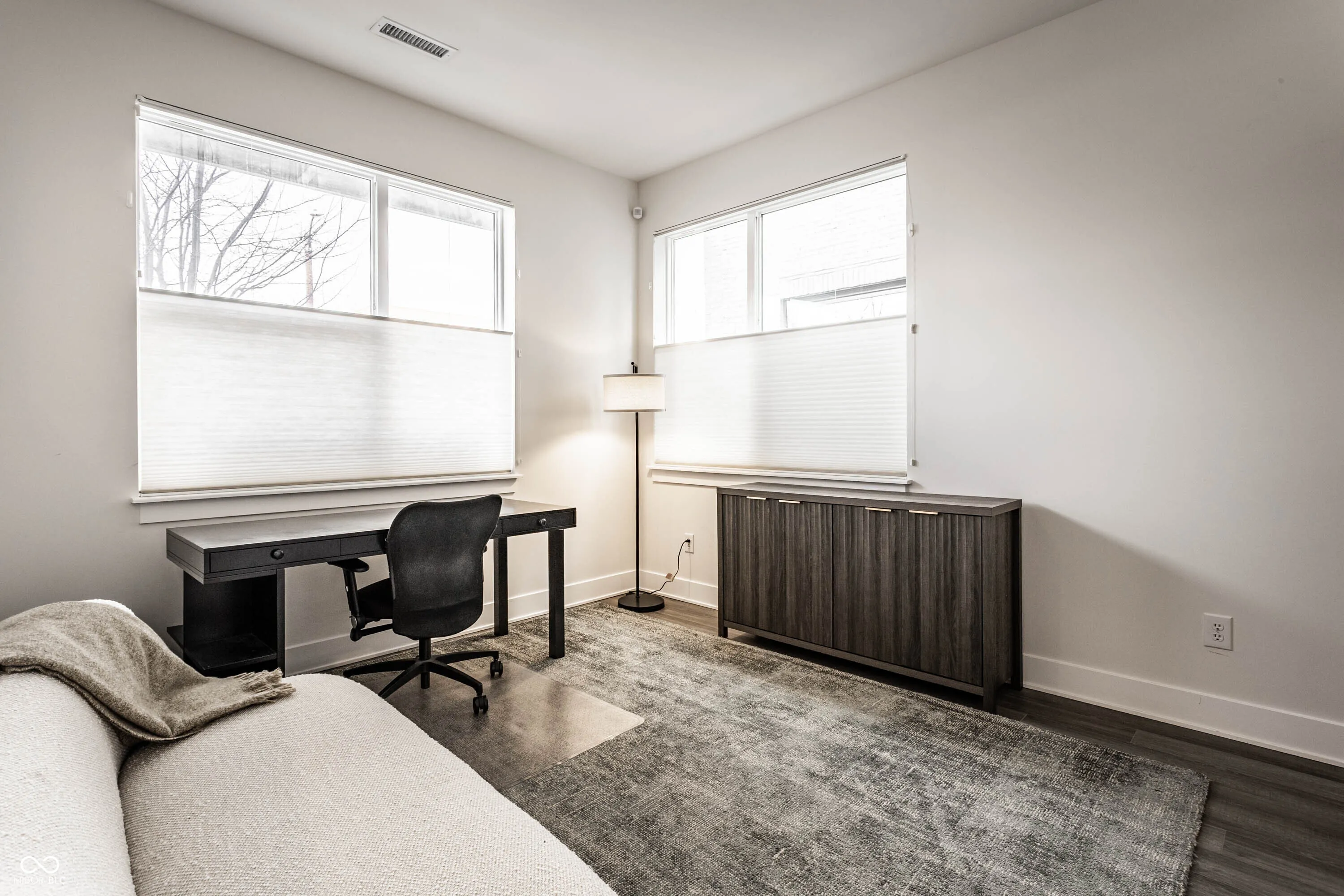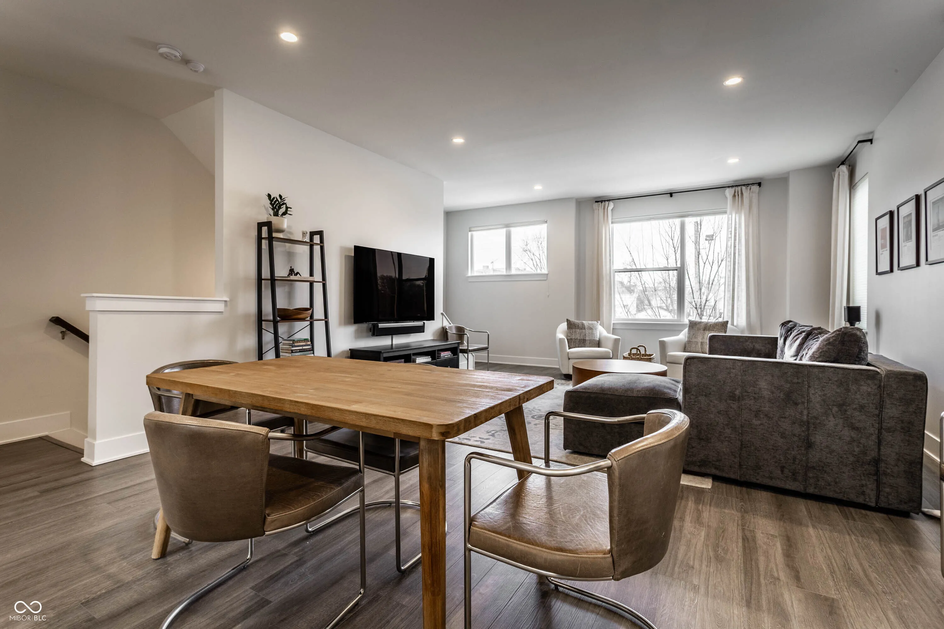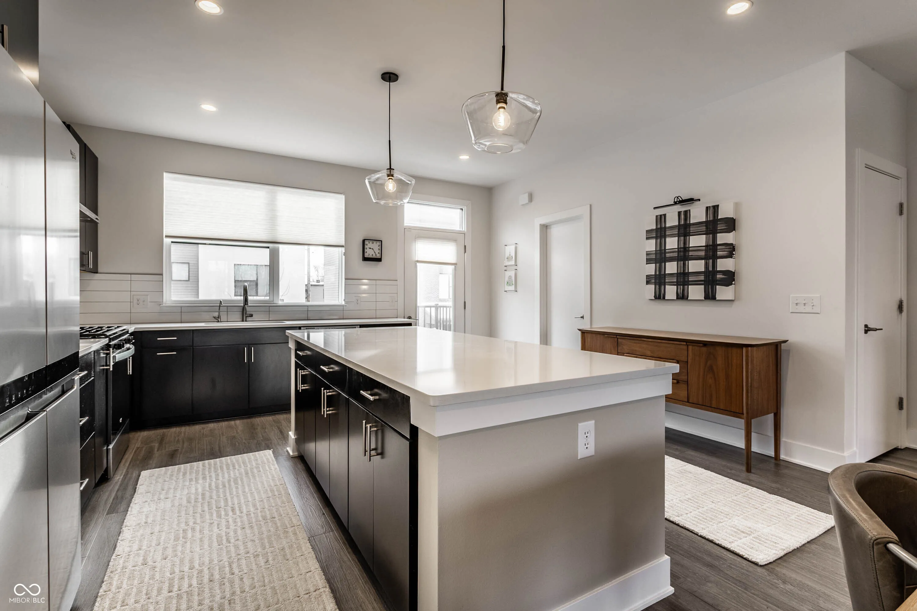 Welcome to easy downtown living in this stunning end-unit townhome, built in 2021 and filled with natural light throughout. Thoughtfully designed with both everyday living and entertaining in mind, this move-in ready home offers an open-concept layout, spacious dining area, and a gorgeous chef’s kitchen featuring a large breakfast bar and an abundance of storage. Enjoy seamless indoor-outdoor living with a covered front patio and an upper-level deck-perfect for morning coffee or hosting guests. The main level also features a versatile office space that can easily be converted into a third bedroom. Upstairs, you’ll find well-appointed bedrooms along with the convenience of a laundry room on the same level. Additional upgrades include custom blinds throughout, a water softener, reverse osmosis system, custom closet installation, and added storage solutions. A rare two-car attached garage, plus access to beautifully maintained common outdoor entertaining spaces, make this home as functional as it is stylish. Located just steps from Bottleworks District, Mass Ave, Tinker Street, Foundry Provisions, and all that downtown has to offer-this is truly downtown living at its best.