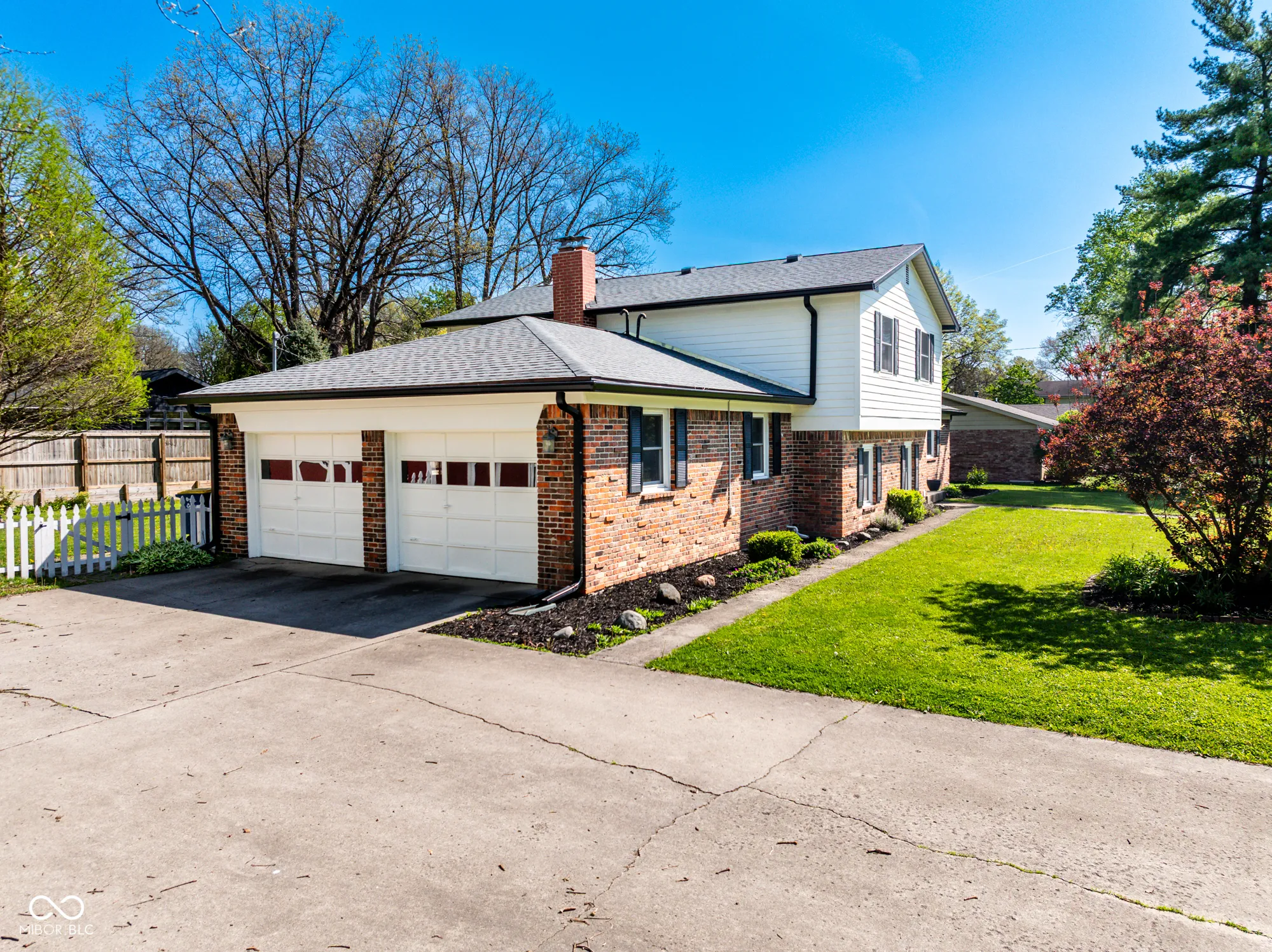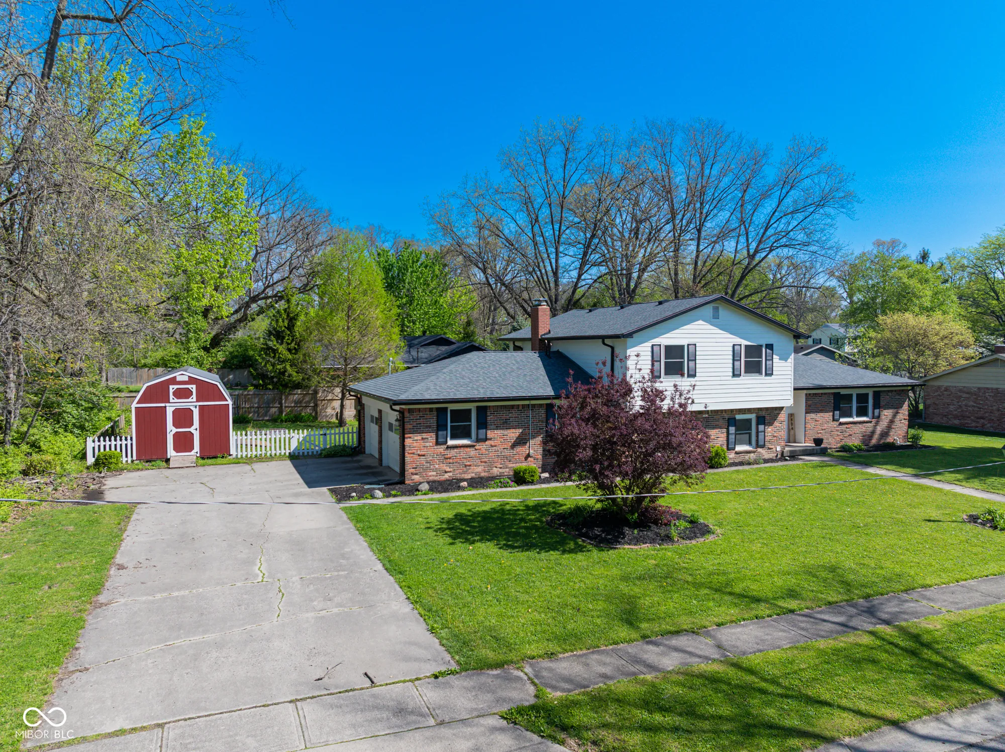 Welcome to this beautiful tri-level home, located at the end of a quiet street in a private, park-like setting. The main level features a foyer with built-in bookcases leading into an L-shaped living and dining area, which includes sliding patio doors that open to a fenced-in backyard. The updated kitchen (2022) boasts new cabinets, solid surface countertops, floating shelves, and a breakfast bar with additional storage. The lower level offers a family room with a wood-burning stove, a primary bedroom with a walk-in shower, and a utility room. Upstairs, you will find a second primary bedroom with its own walk-in shower, along with two additional large bedrooms and a spacious hall bathroom. All upstairs bedrooms feature hardwood flooring. Key updates and features include: – Roof and gas water heater (2020) – Central air and kitchen updates (2022) – New gutters and freshly painted exterior (2025) – Vinyl windows on the lower level – Large backyard with a white picket fence and a newer storage shed featuring double doors for mower access This home provides ample space, several closets, and a wonderful yard for outdoor activities.