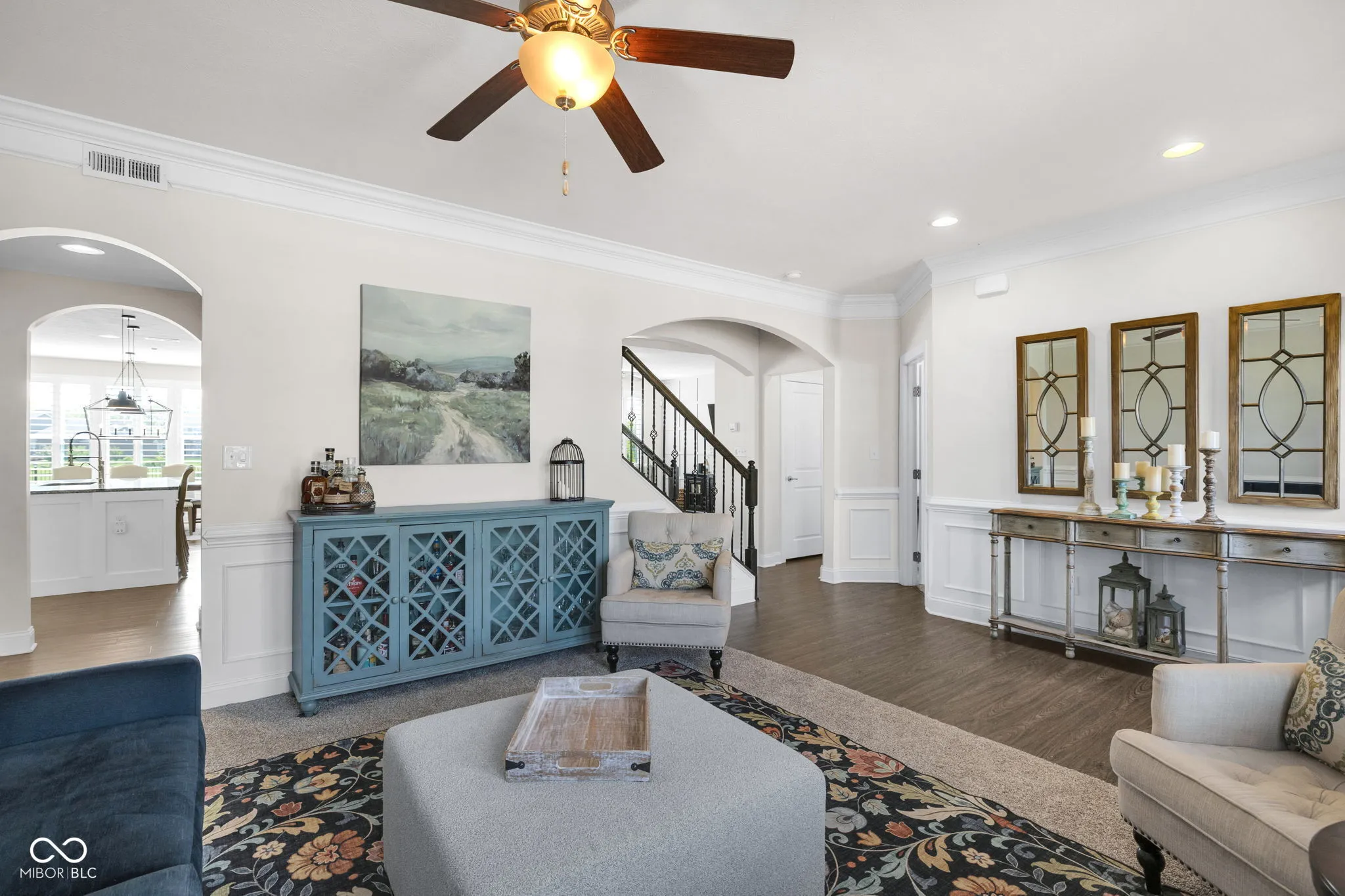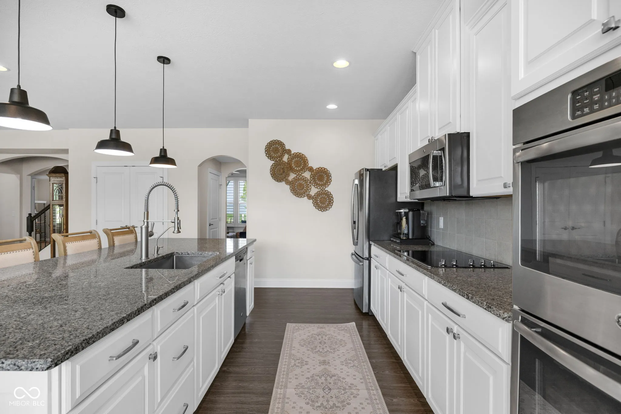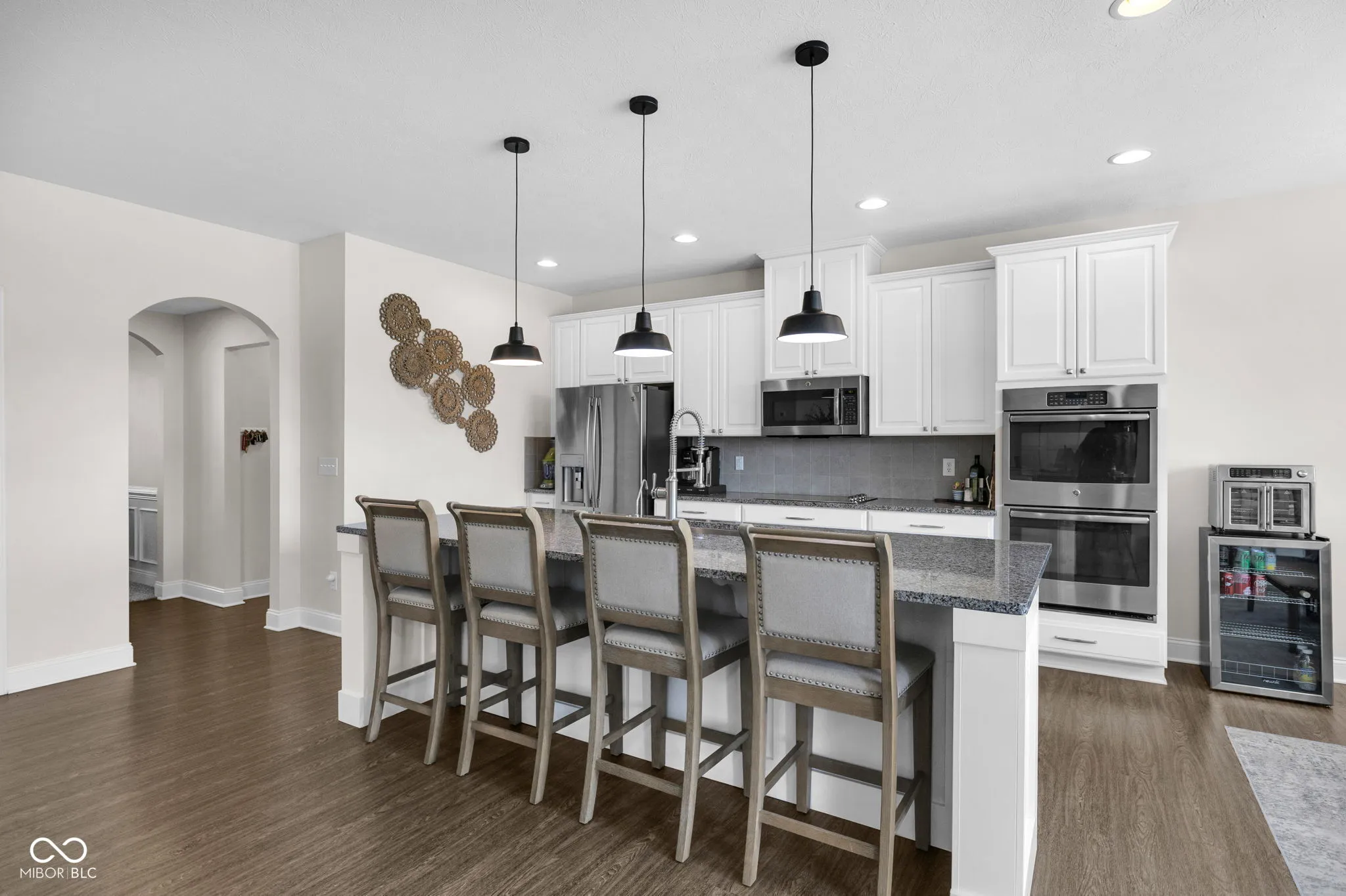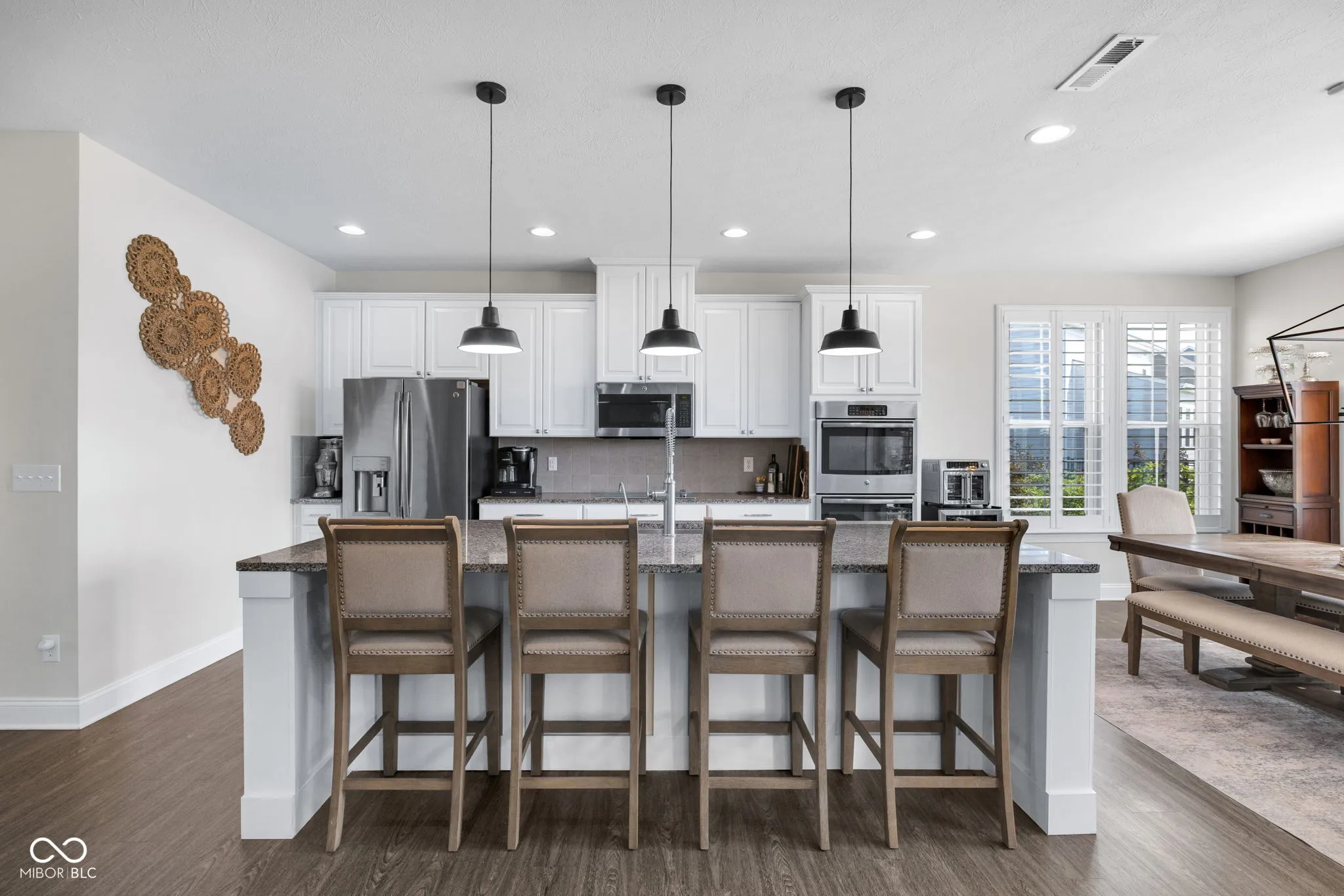 Welcome to your dream home in the sought-after Silverton neighborhood, where comfort, style, and serene pond views come together beautifully. This stunning four-bedroom, two-and-a-half-bath residence greets you with sun-drenched spaces enhanced by custom wood shutters, elegant wainscoting, crown molding, and charming arched entryways providing architectural character throughout. Designed for both everyday living and entertainment, the main level offers two spacious living areas – one featuring a striking custom woodwork accent wall that adds warmth and designer appeal, a private home office, a half bath, and a functional mudroom just off the garage. The heart of the home is the show-stopping kitchen featuring stainless steel appliances, granite countertops, a double oven, a pantry, and an expansive island with a built-in sink and dishwasher, perfect for gathering and effortless meal prep. Upstairs, retreat to all four generously sized bedrooms, along with a full bath boasting dual vanities and a conveniently located laundry room. The luxurious primary suite is a true escape, complete with a tray ceiling, a spacious walk-in closet with a hidden bonus storage area, and a spa-inspired ensuite with separate vanities. Start your mornings on the welcoming covered front porch and unwind in the evenings in your fully fenced backyard oasis with elegant wrought-iron fencing, a charming gazebo, and peaceful pond views. Additionally, the tandem garage offers abundant storage for all your needs. As a resident of Silverton, you’ll also enjoy access to fantastic community amenities, including a pool, basketball court, playground, and scenic walking trails perfect for an active and connected lifestyle.