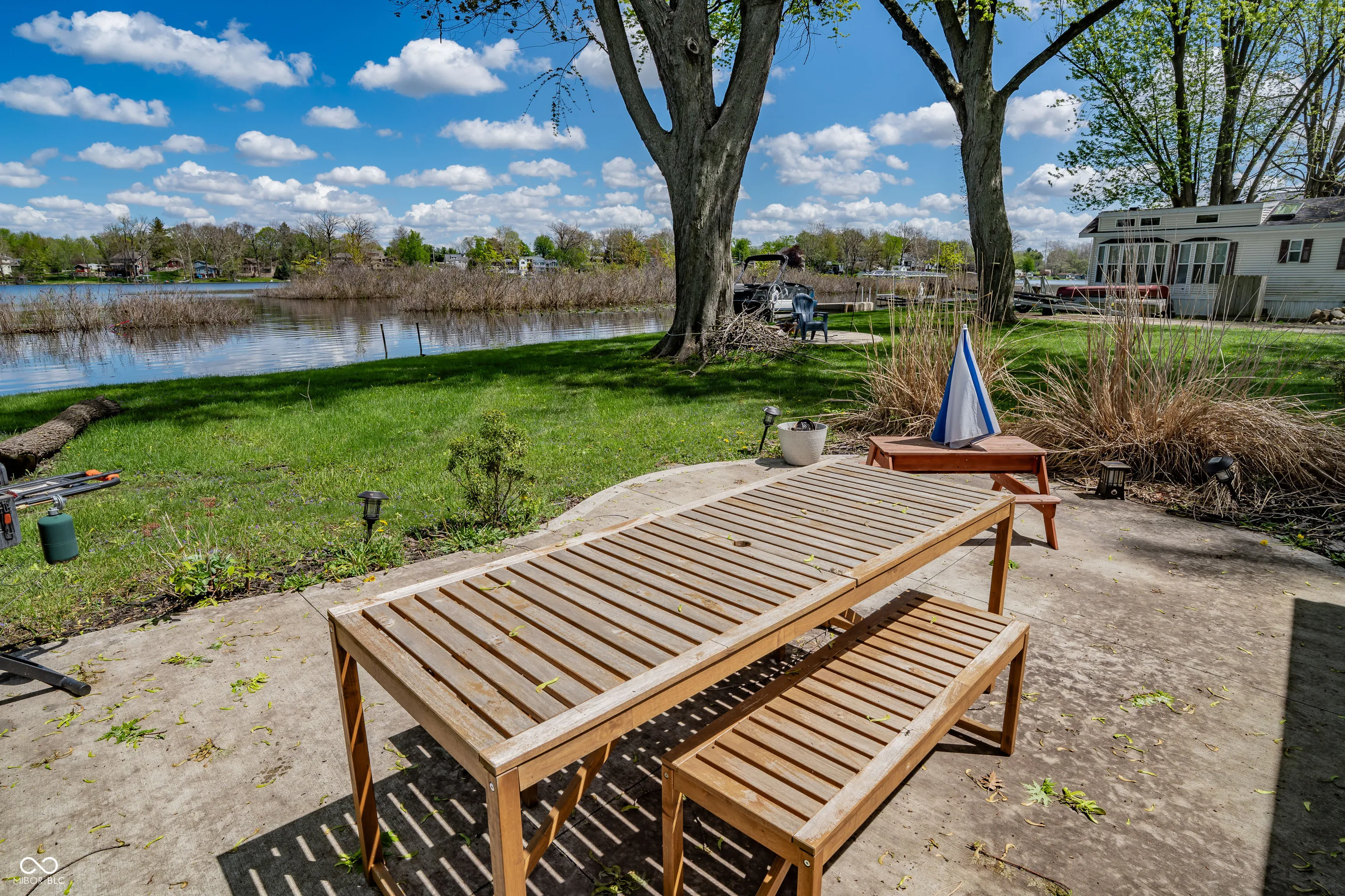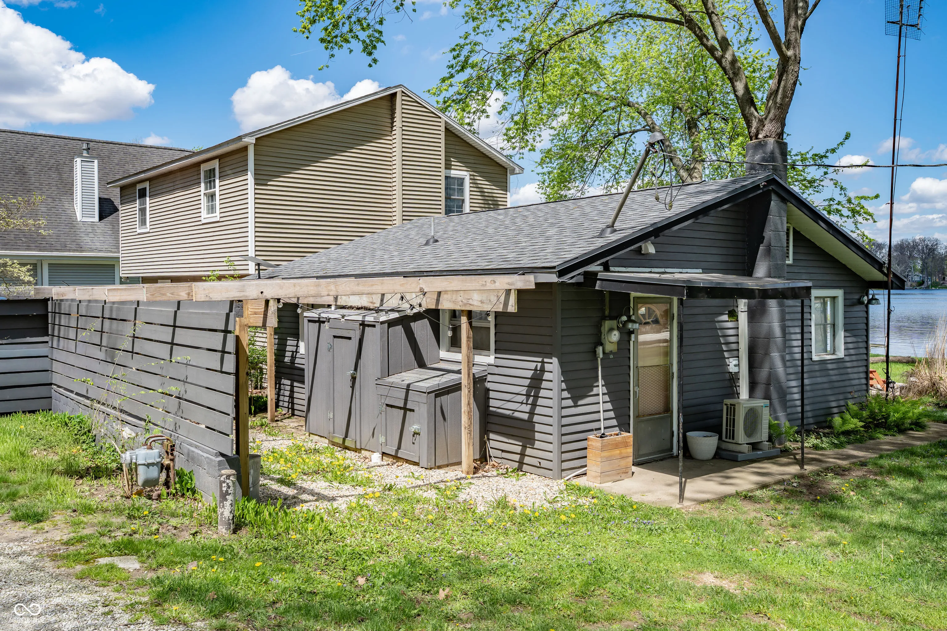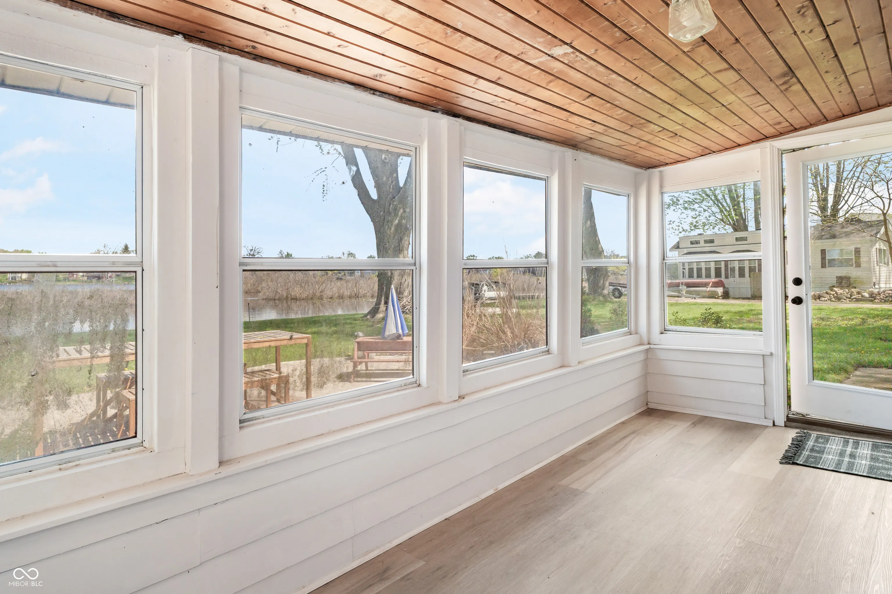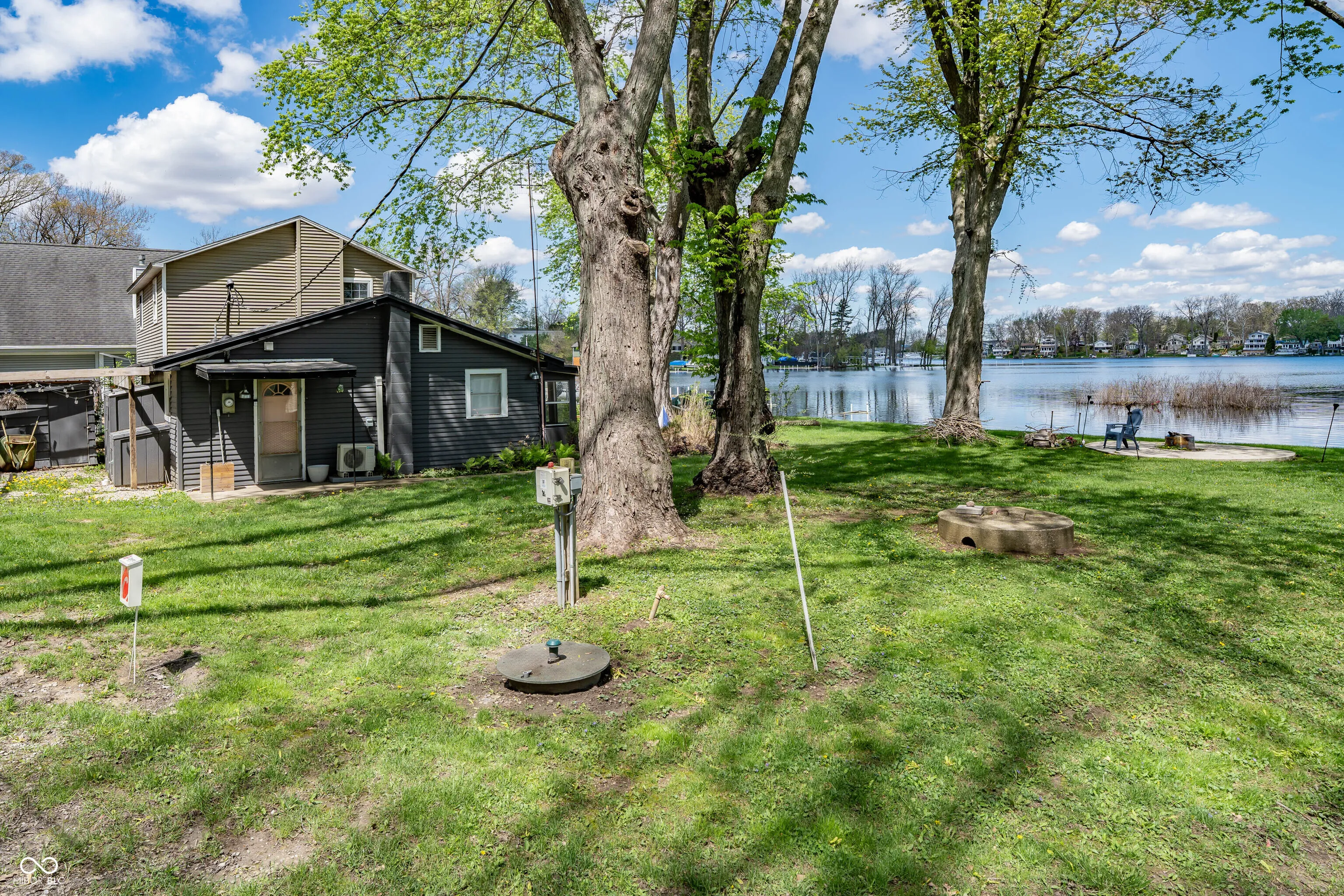 Check out this lakefront beauty! The setting is amazing with a 1/3-acre double lot ON THE WATER with 130′ of water seawall frontage! Flat land too which makes lake life more fun and easier. And a second house could be added. For now, there’s a full-size RV parking pad already in place. UPDATES — The cozy house has been modernized by the sellers with shiplap walls, all new ceilings, recessed lights, a beverage cooler, landscaping and a new door to the sunroom. Also has new well & jet pumps! FEATURES include the roof being only 4 years old, updated electrical, a gorgeous bathroom, efficient heating & cooling and loads of natural light from all of the windows. Outside is where the magic really happens with the large concrete patio off the sunroom and the huge firepit by the water’s edge — both are treasures. There are 7 inter-connected natural lakes with just the right lake vibes all around! No HOA. Great opportunity at the perfect time of year to pounce and enjoy for all of Summer 2026!