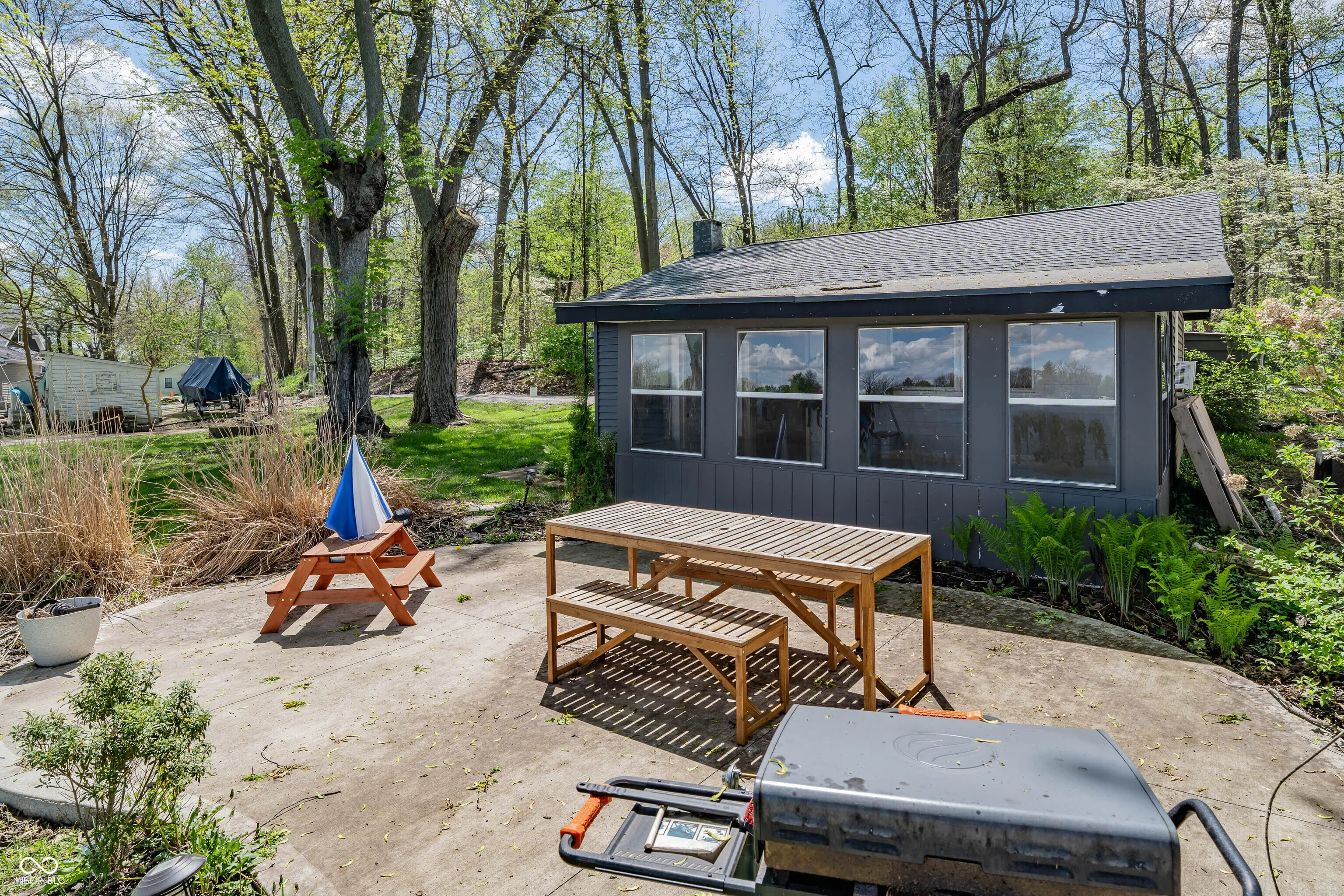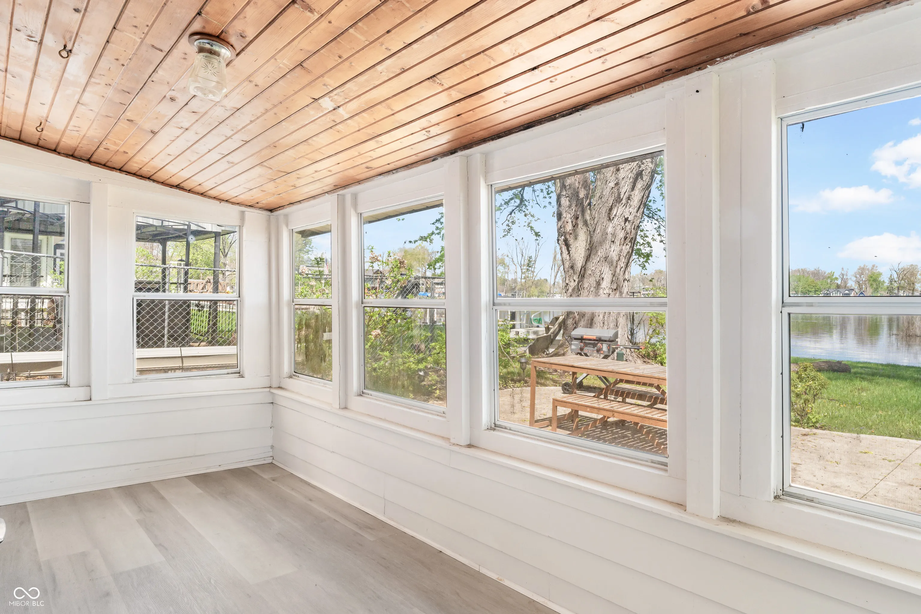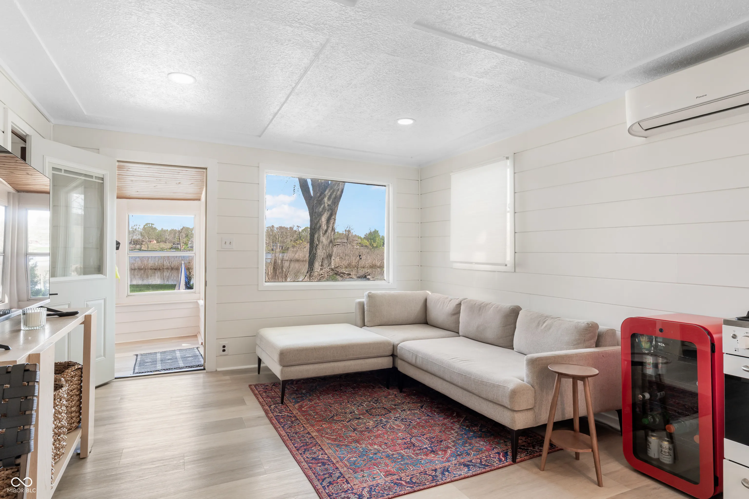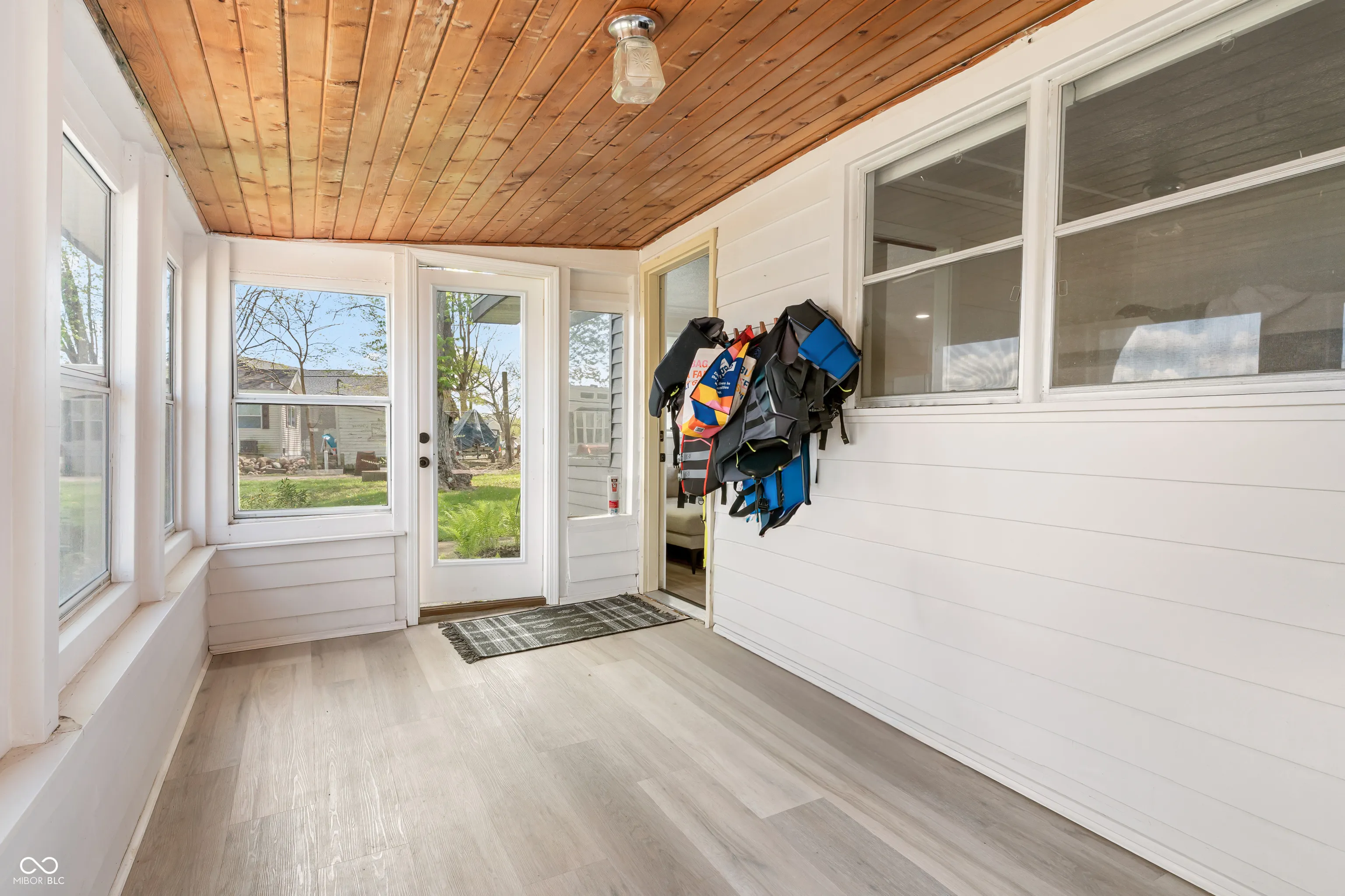 Check out this lakefront beauty! The setting is amazing with a 1/3-acre double lot ON THE WATER with 130′ of water seawall frontage! Flat land too which makes lake life more fun and easier. And a second house could be added. For now, there’s a full-size RV parking pad already in place. UPDATES — The cozy house has been modernized by the sellers with shiplap walls, all new ceilings, recessed lights, a beverage cooler, landscaping and a new door to the sunroom. Also has new well & jet pumps! FEATURES include the roof being only 4 years old, updated electrical, a gorgeous bathroom, efficient heating & cooling and loads of natural light from all of the windows. Outside is where the magic really happens with the large concrete patio off the sunroom and the huge firepit by the water’s edge — both are treasures. There are 7 inter-connected natural lakes with just the right lake vibes all around! No HOA. Great opportunity at the perfect time of year to pounce and enjoy for all of Summer 2026!