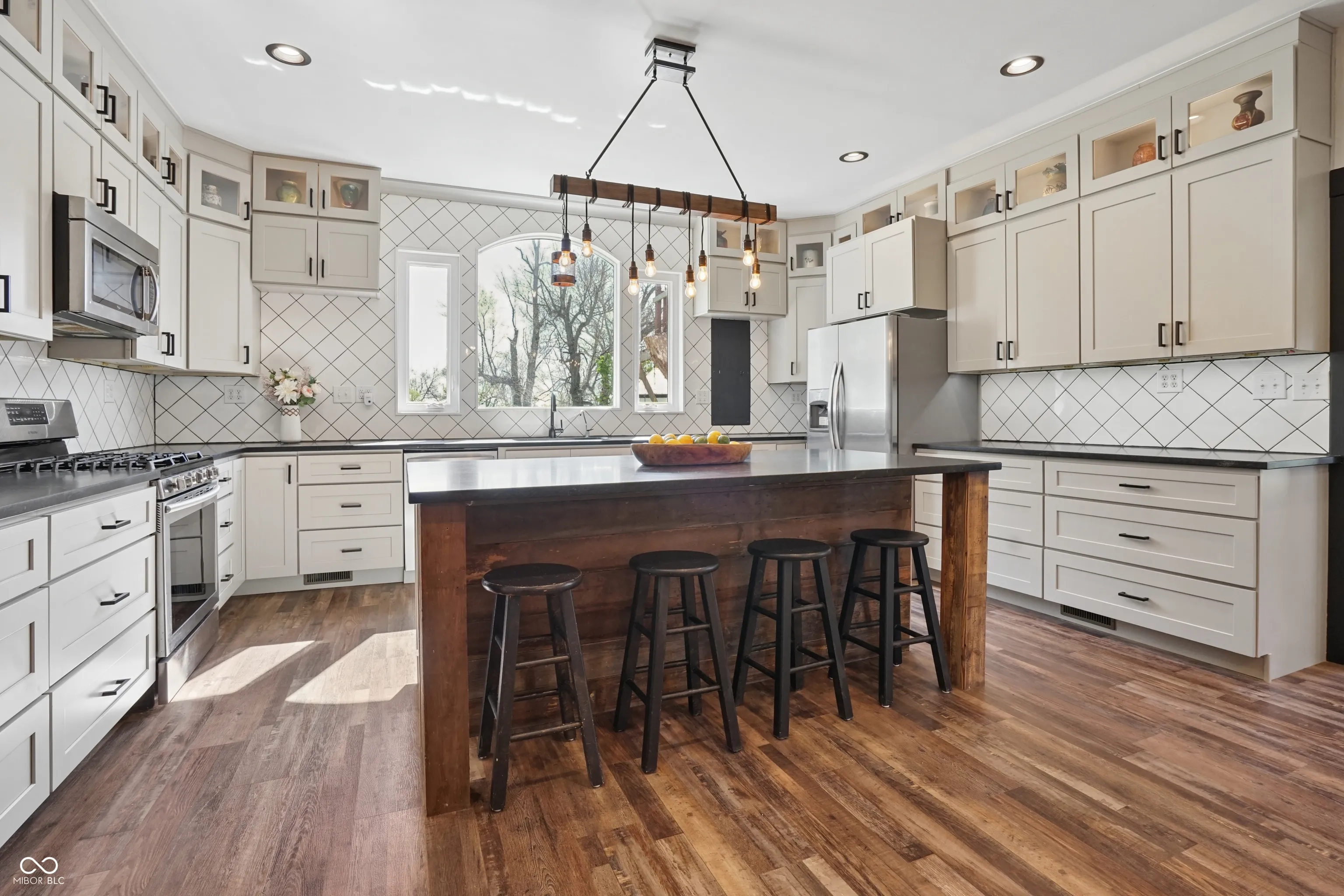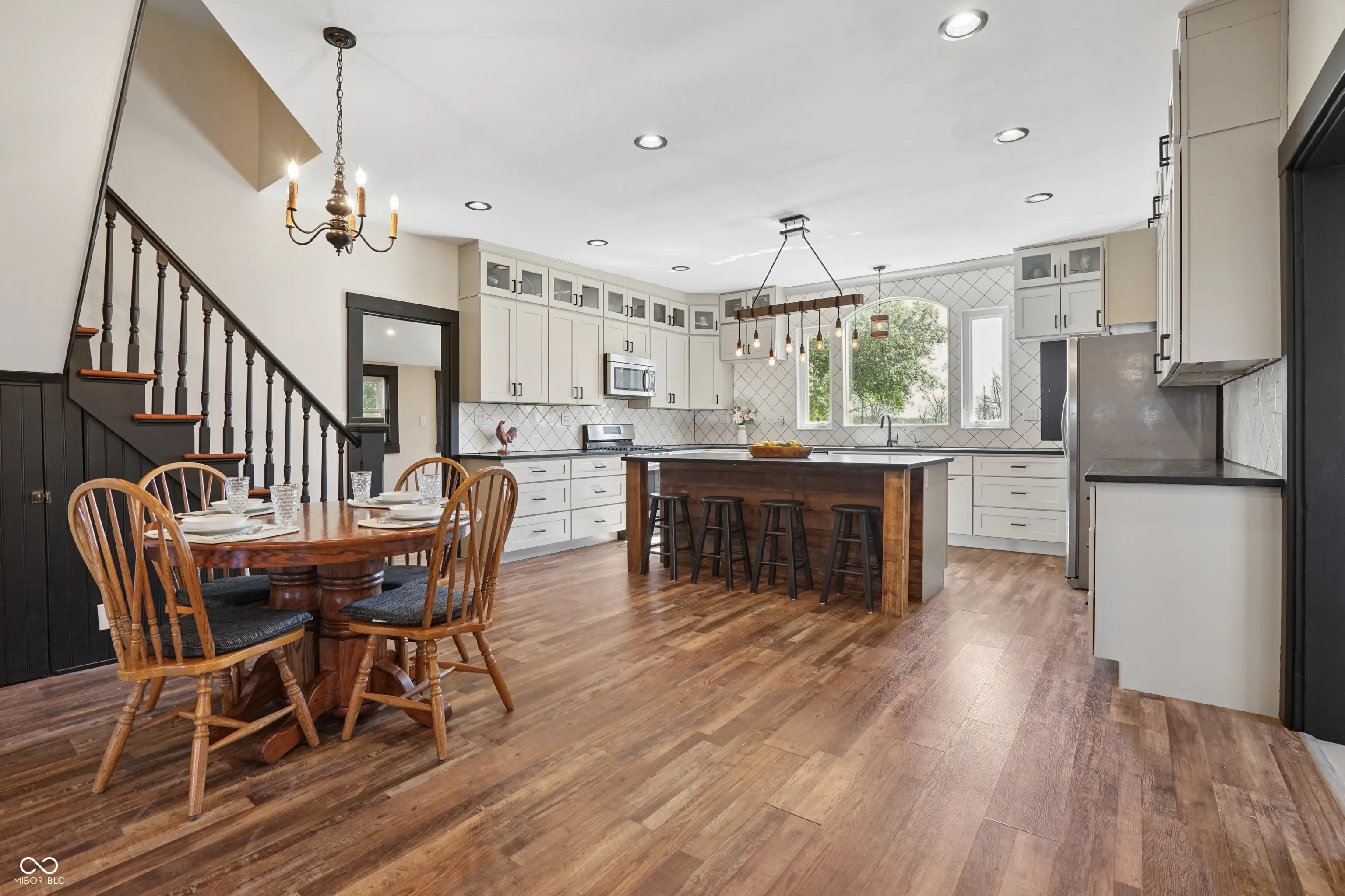 Welcome to 8174 N 325 W in Fountaintown, Indiana-a picture-perfect farmhouse set on 3.54 scenic acres, offering the ideal blend of modern updates, timeless character, and peaceful country living. This beautifully maintained 4-bedroom, 3 full bath home has been thoughtfully updated throughout and is truly move-in ready. Step inside and you’re immediately greeted by LVP and timeless hardwood floors that flow seamlessly throughout the home, paired with natural light and stunning views from every angle. The show-stopping chef’s kitchen is the true heart of the home-completely updated with newer appliances, stylish finishes, and an ideal layout for both everyday living and entertaining. Whether you’re hosting guests or enjoying a quiet night in, this space delivers both beauty and functionality. The entire home has been meticulously cared for, offering a clean, cohesive, and “picture-perfect” feel in every room. Major mechanical updates completed since 2019 provide peace of mind, including a newer metal roof, furnace, air conditioning system, water heater, and well-ensuring efficiency and reliability for years to come. Outside, the property truly shines. With 3.5 acres of usable land, this setting is perfect for those seeking space, privacy, or hobby farm potential. Previously home to horses, the property includes a horse barn, mini barn, and a 2-car detached garage with additional storage and workshop space. A charming creek runs through the property, adding to the serene, nature-filled backdrop and creating a truly special outdoor experience. Located in the desirable Triton School District, this property also benefits from low taxes and low utility costs-making it as practical as it is beautiful. If you’ve been searching for a turnkey farmhouse with land, updates, and unmatched charm, this is the one. Experience the perfect balance of modern living and peaceful countryside at 8174 N 325 W.