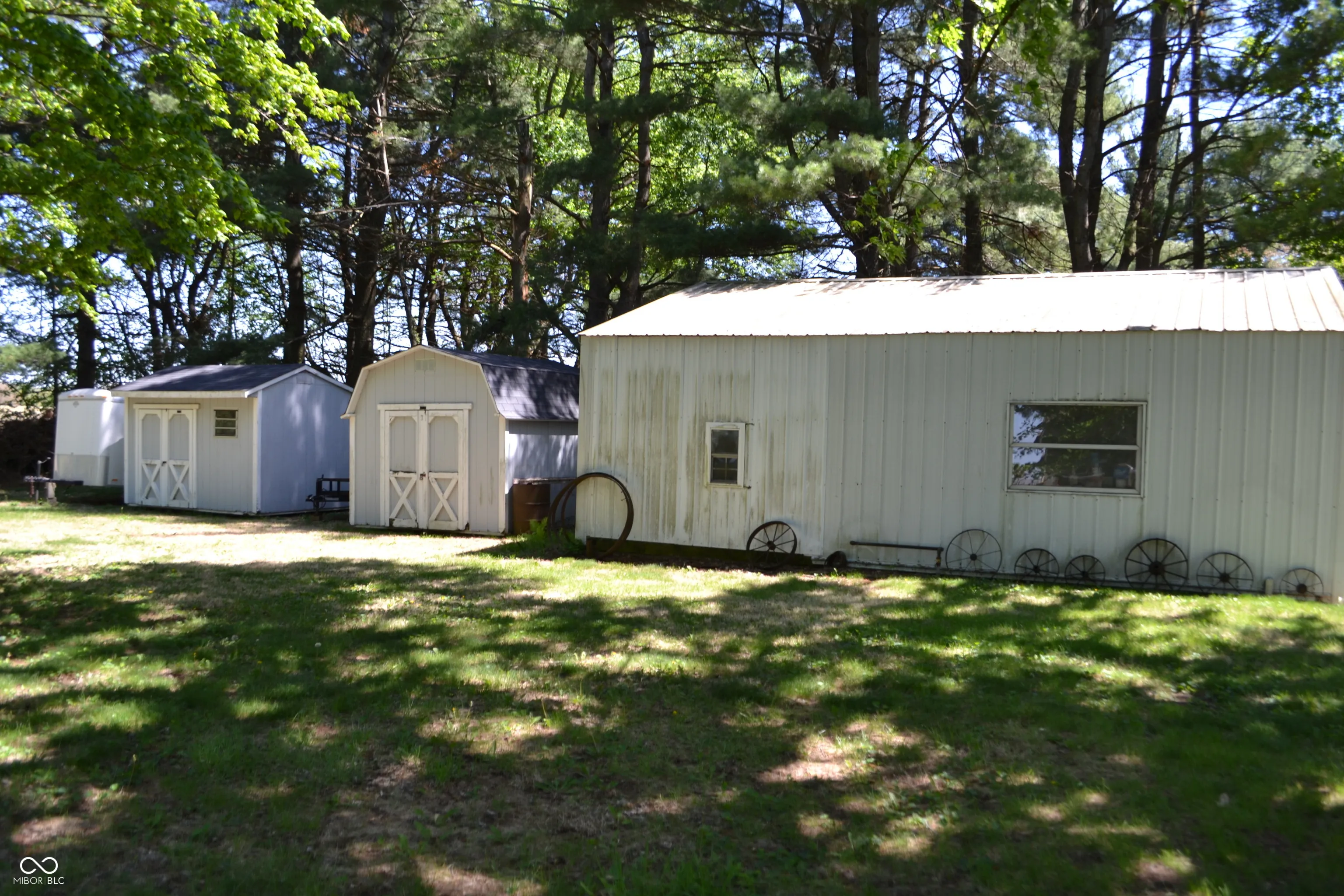Estate. House being sold in AS-IS condition. 3 bedroom, 1 1/2 baths on a 1.5 acre lot. 24×28 outbuilding, 2 utility sheds, 2 car garage. Living room, kitchen, large great room. Front porch and a deck.