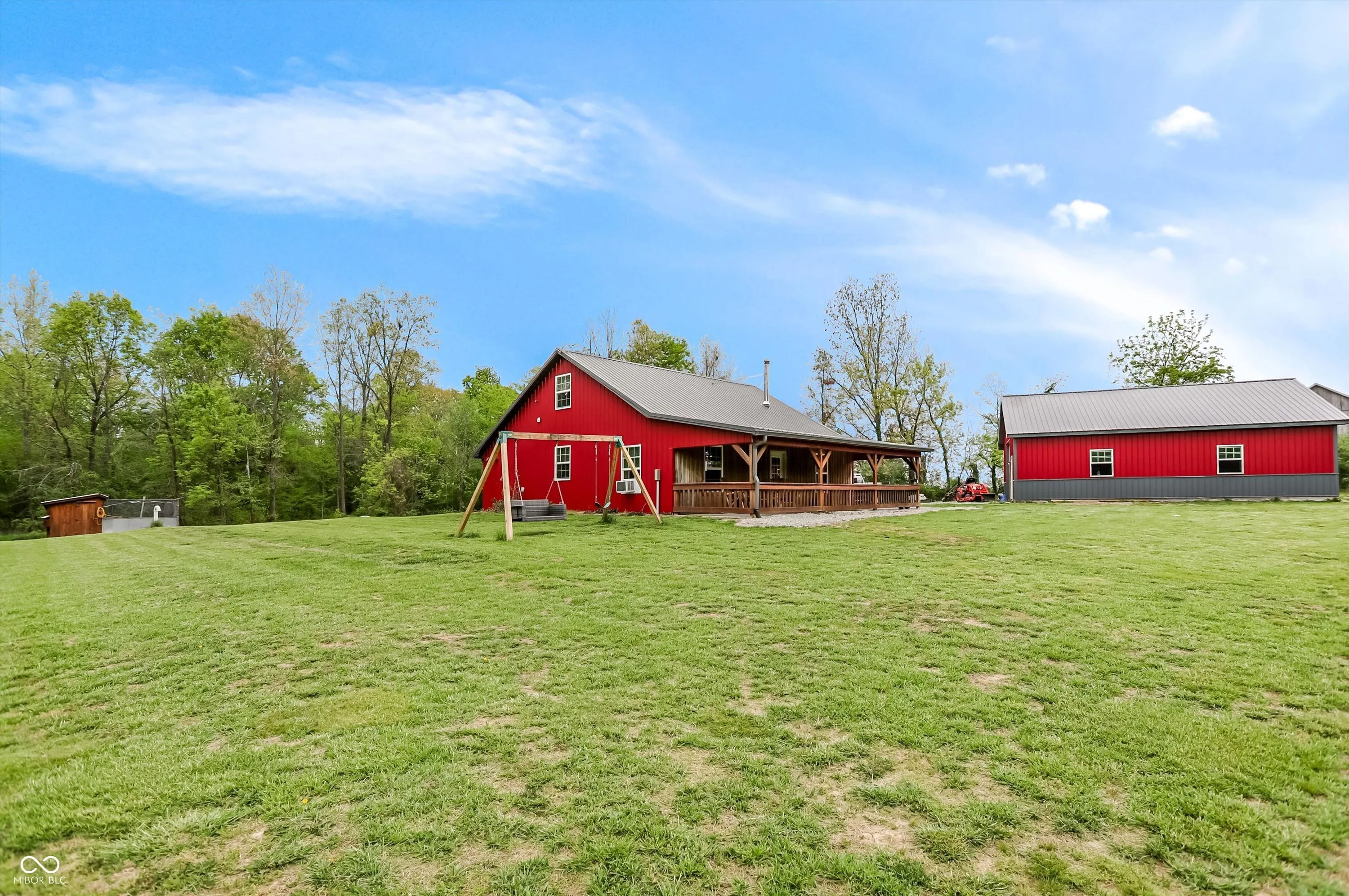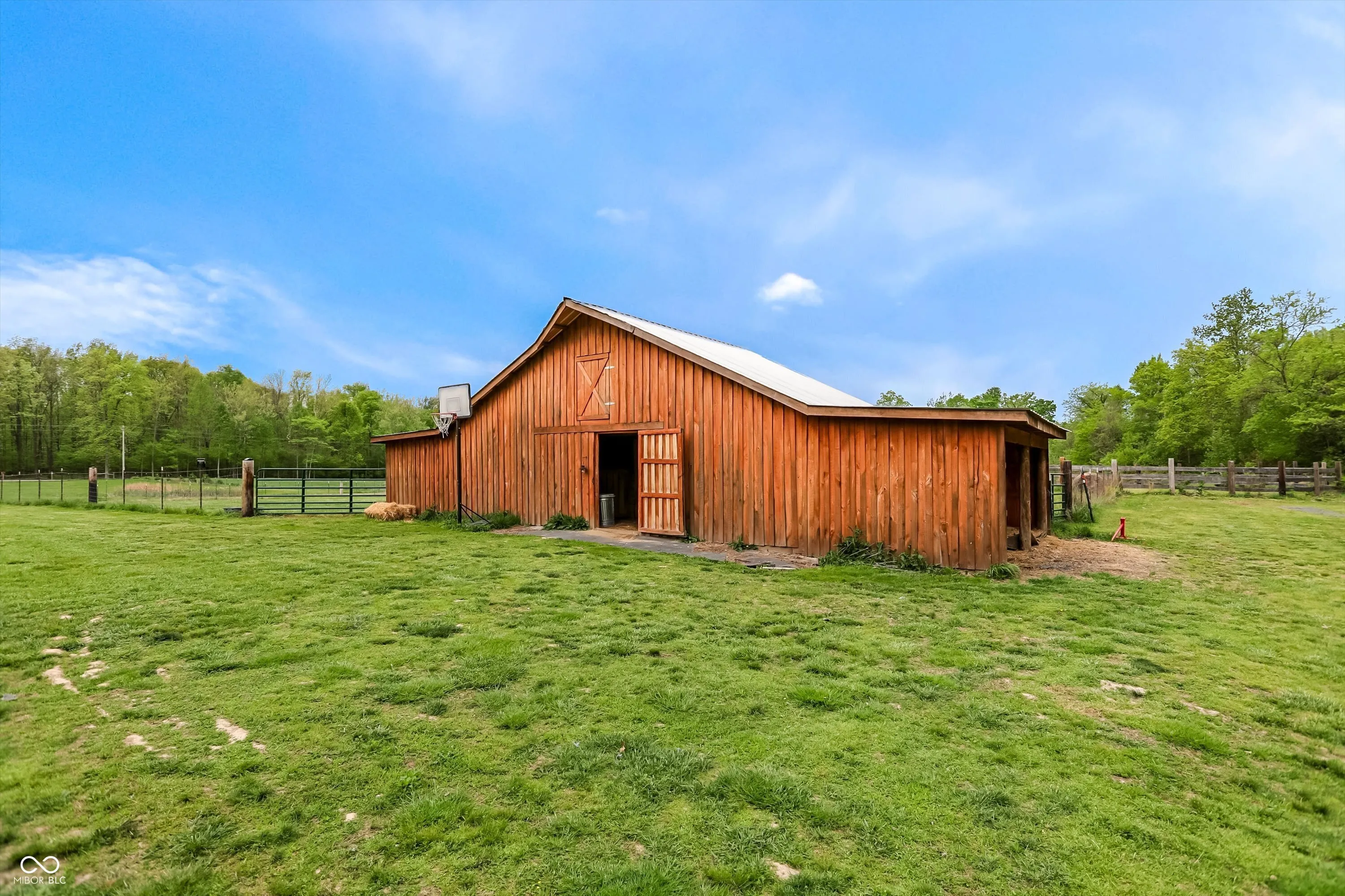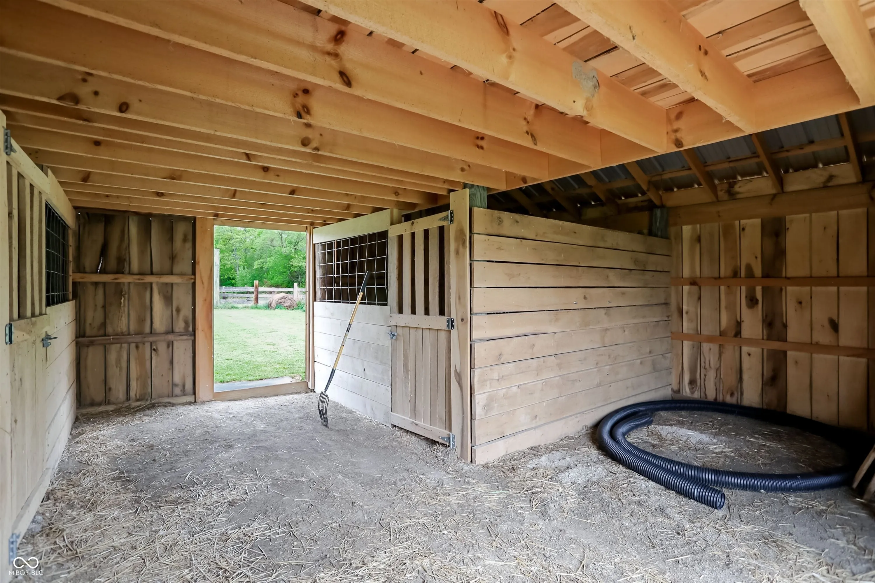 Escape to peaceful country living with this unique pole barn-style home set on 10 scenic acres featuring wooded areas, a small pond, and a creek with a tractor-access bridge. Built with quality craftsmanship, this energy-efficient home offers exceptionally low utility costs thanks to spray foam-insulated walls and 4″ foam in the rafters. Stay cozy year-round with a wood stove. Inside, you’ll find an inviting open floor plan with a spacious main-level bedroom and a private primary suite upstairs complete with an en-suite bath. Relax and take in the surroundings from the large front porch. This property is ideal for those seeking a farm or homestead lifestyle. Equestrian and agricultural features include a 30×40 pole barn for storage, a 3-stall horse barn with hay loft and tack area, multiple fenced pastures (including approximately 1/2-acre, 1/4-acre, and 2-acre sections), a round pen for training, a run-in shelter, and a turnout area attached to the barn. A charming chicken coop makes raising fresh eggs easy, while the livestock barn-constructed with beautifully milled Amish wood-adds both function and character. Approximately one acre is tillable, and four acres include a creek, providing diverse land use opportunities. The property also features established fruit plantings, including a Golden Cling peach tree, Honeycrisp apple tree, and two blueberry bushes. Whether you’re looking to start a hobby farm, enjoy equestrian pursuits, or simply unwind in a private rural setting, this versatile property offers endless possibilities.