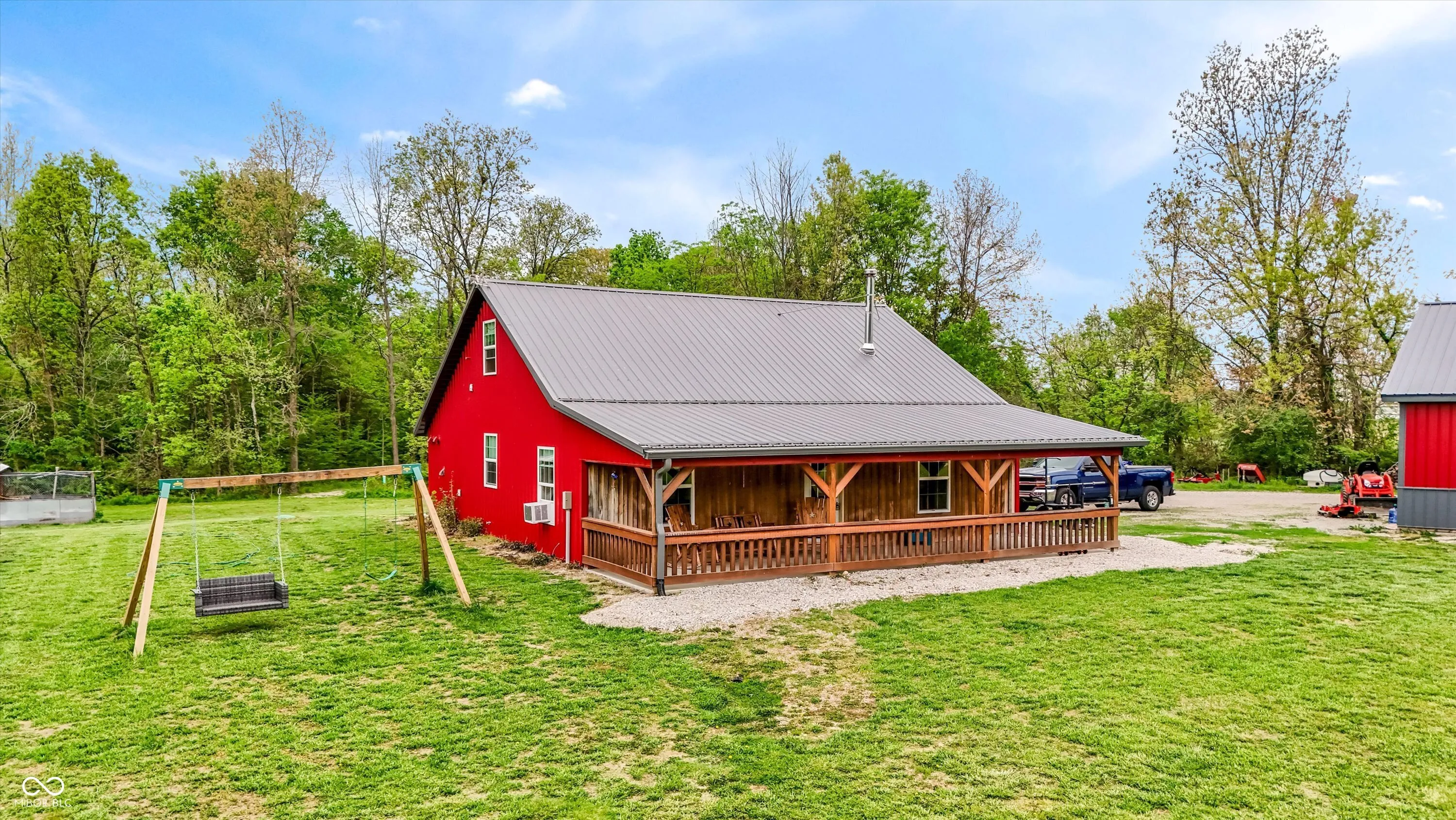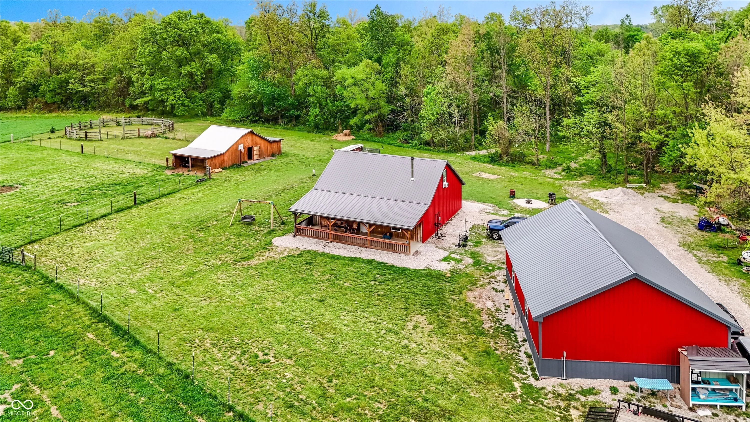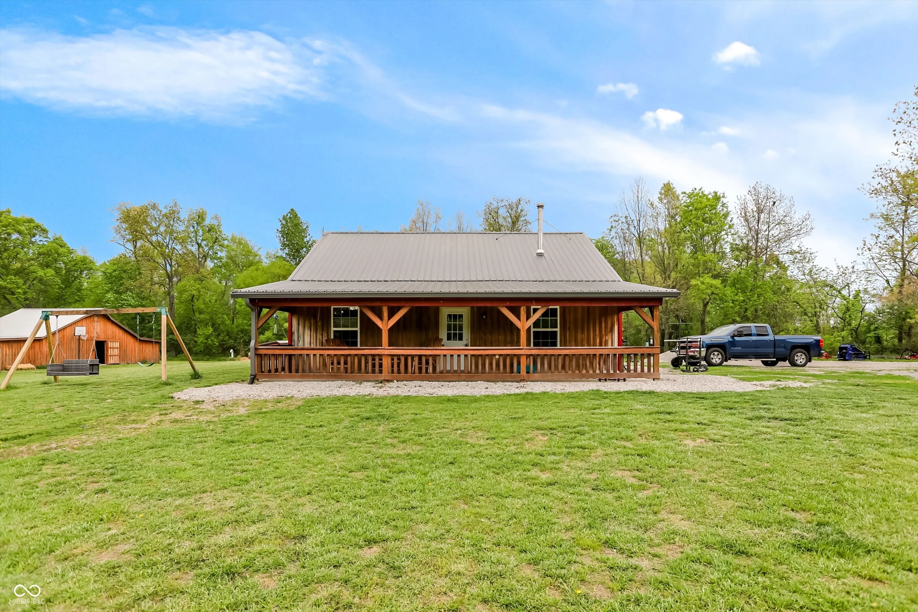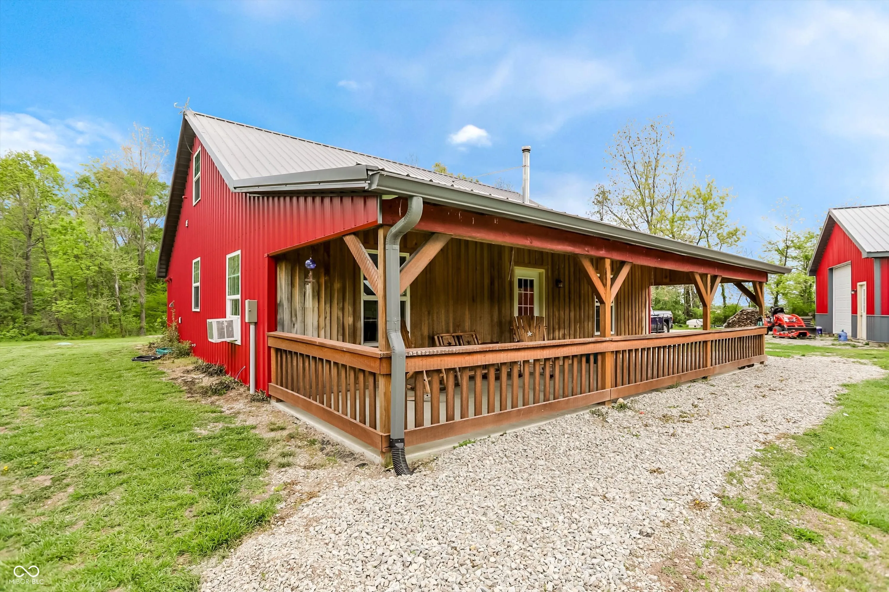 Escape to peaceful country living with this unique pole barn-style home set on 10 scenic acres featuring wooded areas, a small pond, and a creek with a tractor-access bridge. Built with quality craftsmanship, this energy-efficient home offers exceptionally low utility costs thanks to spray foam-insulated walls and 4″ foam in the rafters. Stay cozy year-round with a wood stove. Inside, you’ll find an inviting open floor plan with a spacious main-level bedroom and a private primary suite upstairs complete with an en-suite bath. Relax and take in the surroundings from the large front porch. This property is ideal for those seeking a farm or homestead lifestyle. Equestrian and agricultural features include a 30×40 pole barn for storage, a 3-stall horse barn with hay loft and tack area, multiple fenced pastures (including approximately 1/2-acre, 1/4-acre, and 2-acre sections), a round pen for training, a run-in shelter, and a turnout area attached to the barn. A charming chicken coop makes raising fresh eggs easy, while the livestock barn-constructed with beautifully milled Amish wood-adds both function and character. Approximately one acre is tillable, and four acres include a creek, providing diverse land use opportunities. The property also features established fruit plantings, including a Golden Cling peach tree, Honeycrisp apple tree, and two blueberry bushes. Whether you’re looking to start a hobby farm, enjoy equestrian pursuits, or simply unwind in a private rural setting, this versatile property offers endless possibilities.