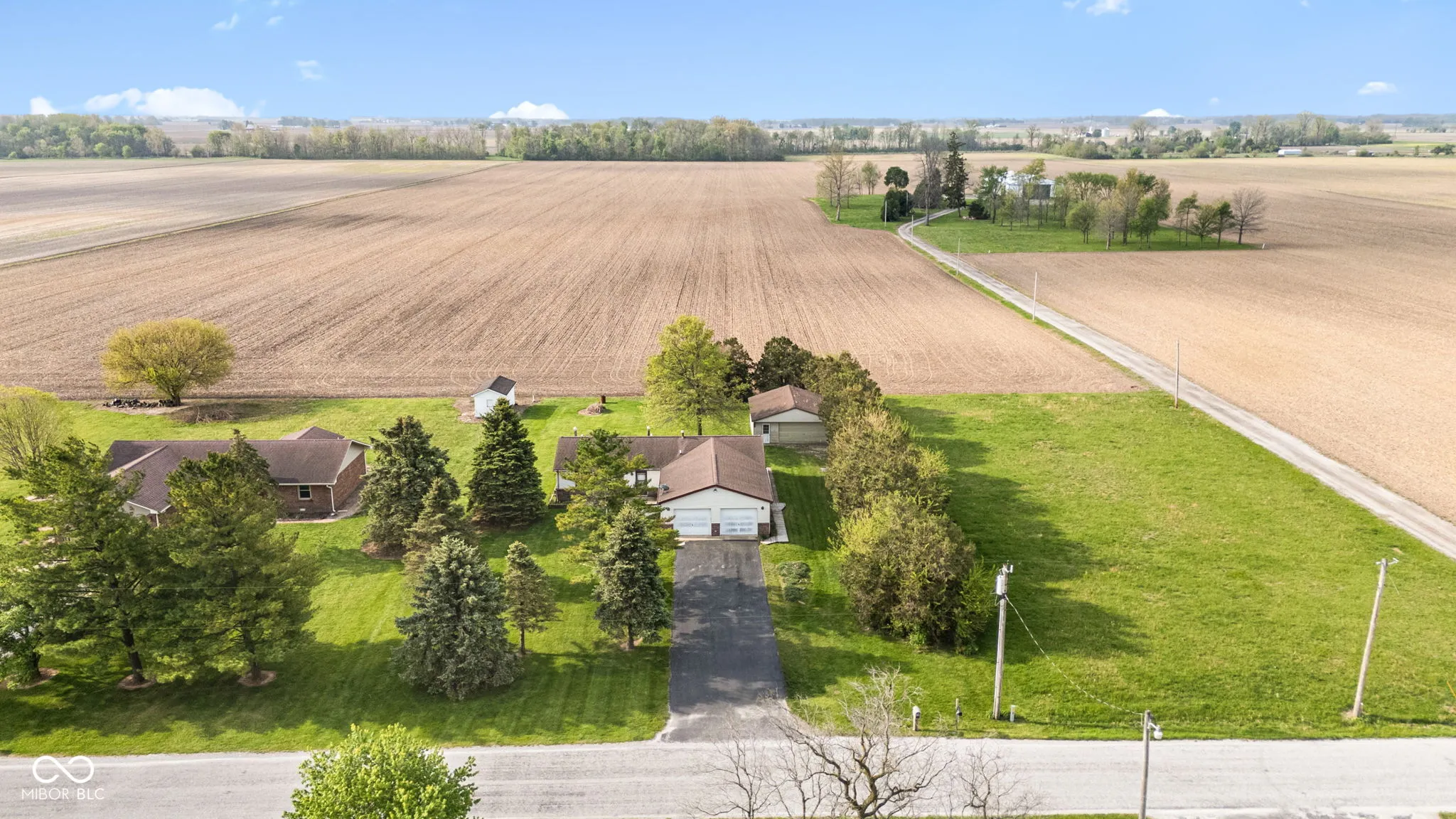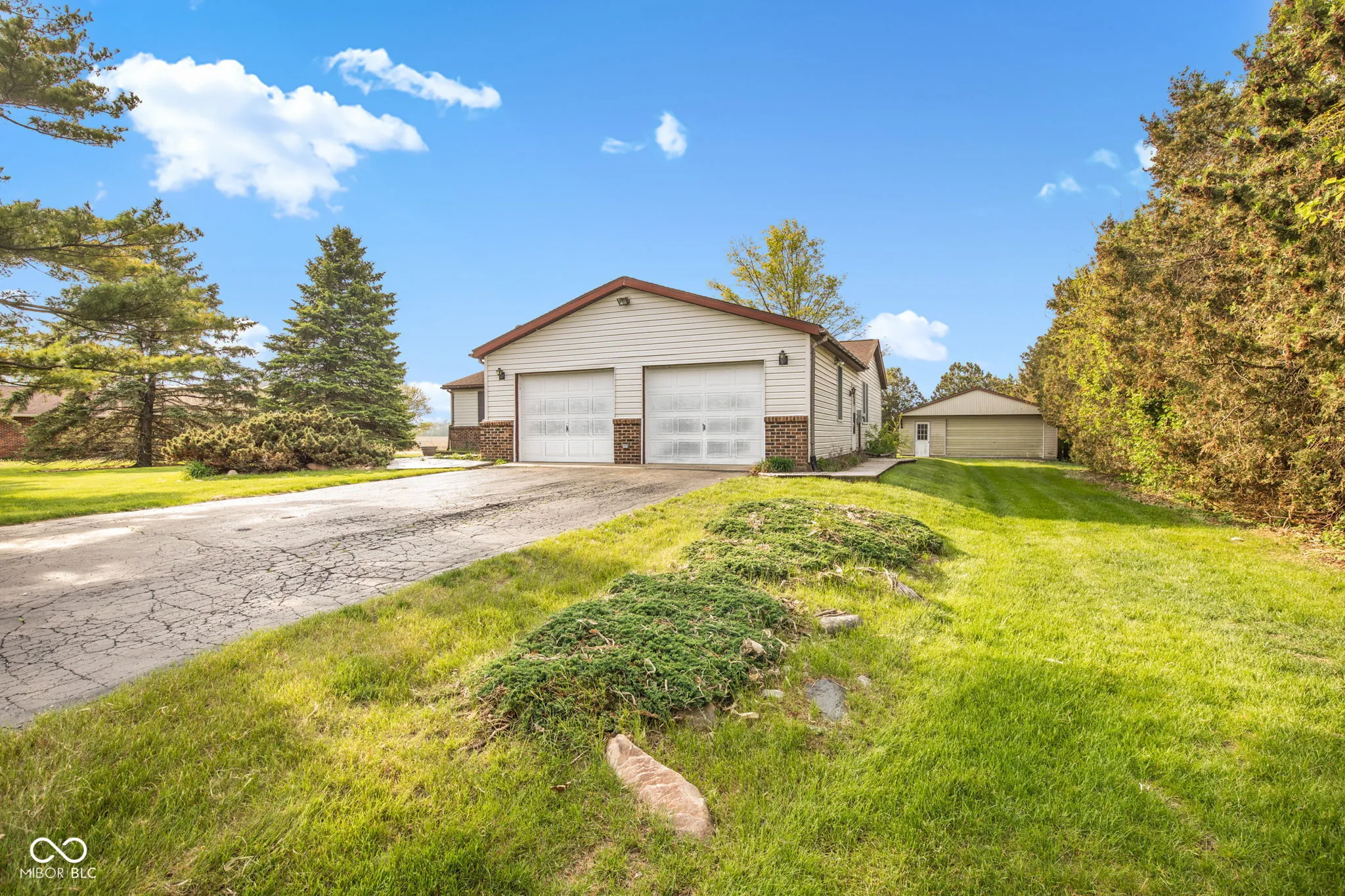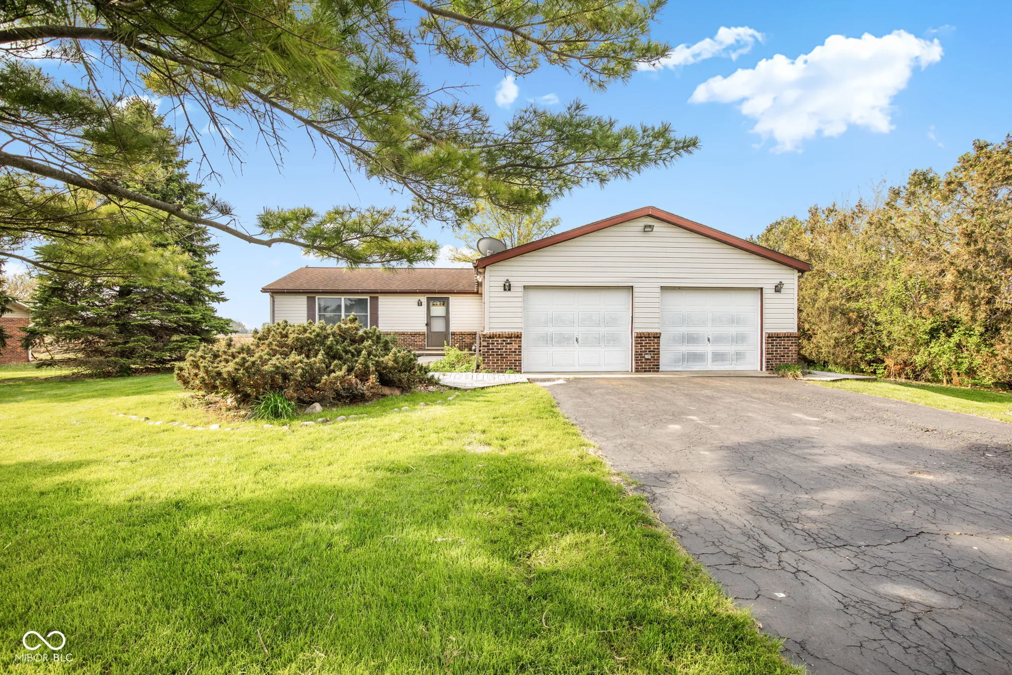 Brick ranch on a full unfinished basement, over .5 acre with open fields to the S & W. Original owner 3 bed 2 bath with 2 car attached garage with openers and 2 car detached garage, mature tree line on the West and country freedom. Poured concrete full basement offering the opportunity to double the finished living space. 2 mile directly to SR19 & 3 miles toUS31 & 1 mile off SR28 . Newer roof on house, Furnace 2020