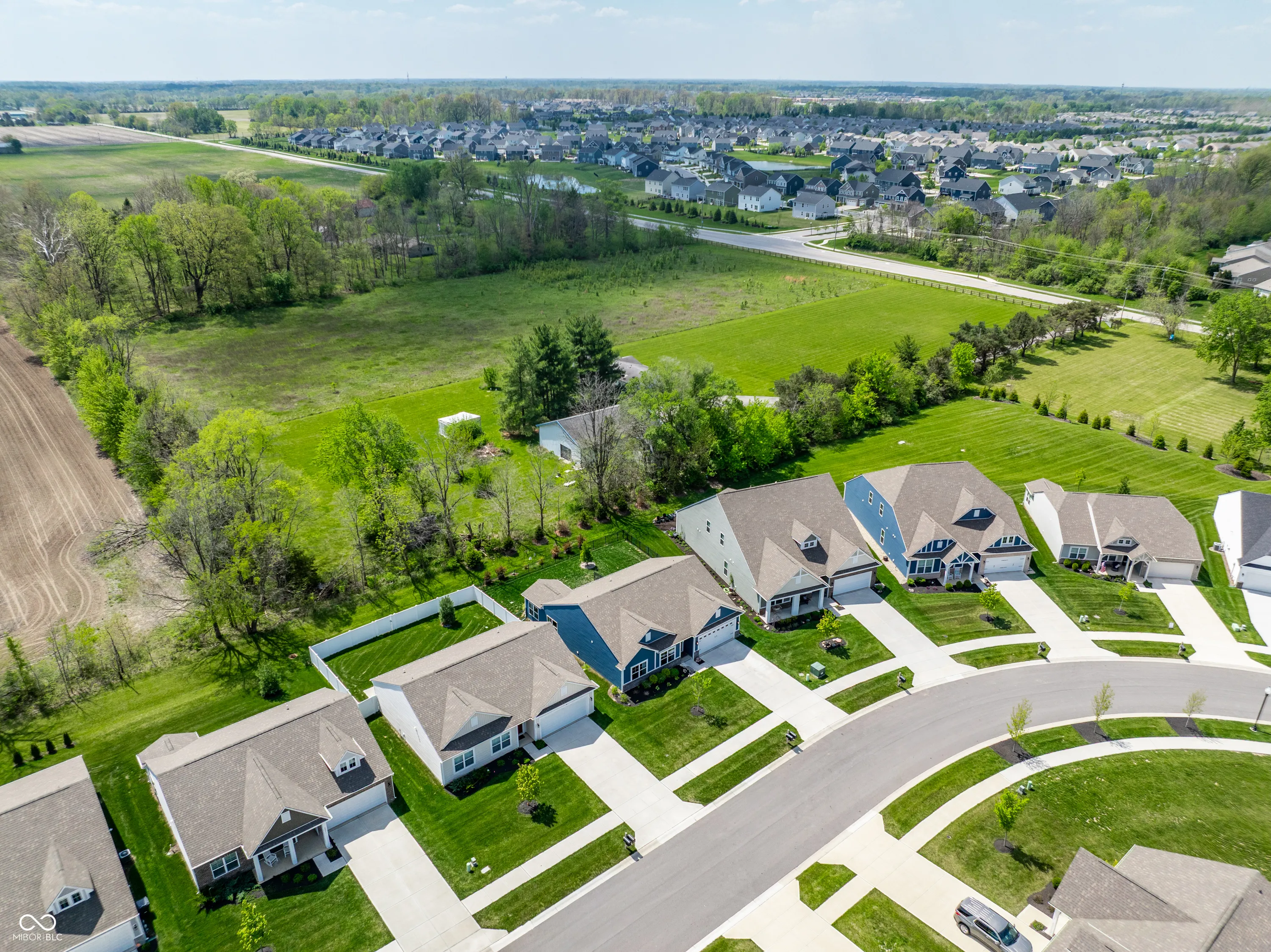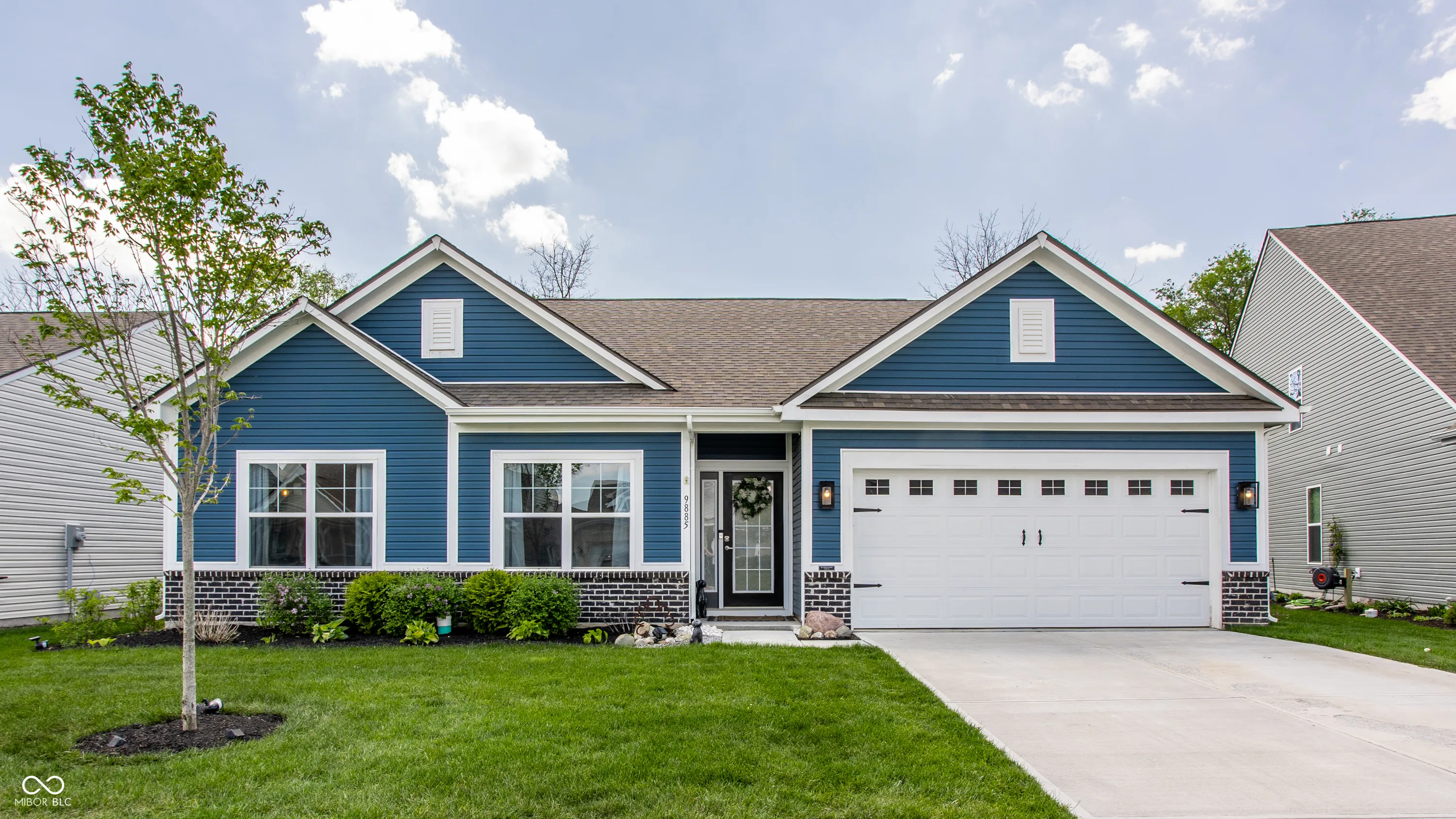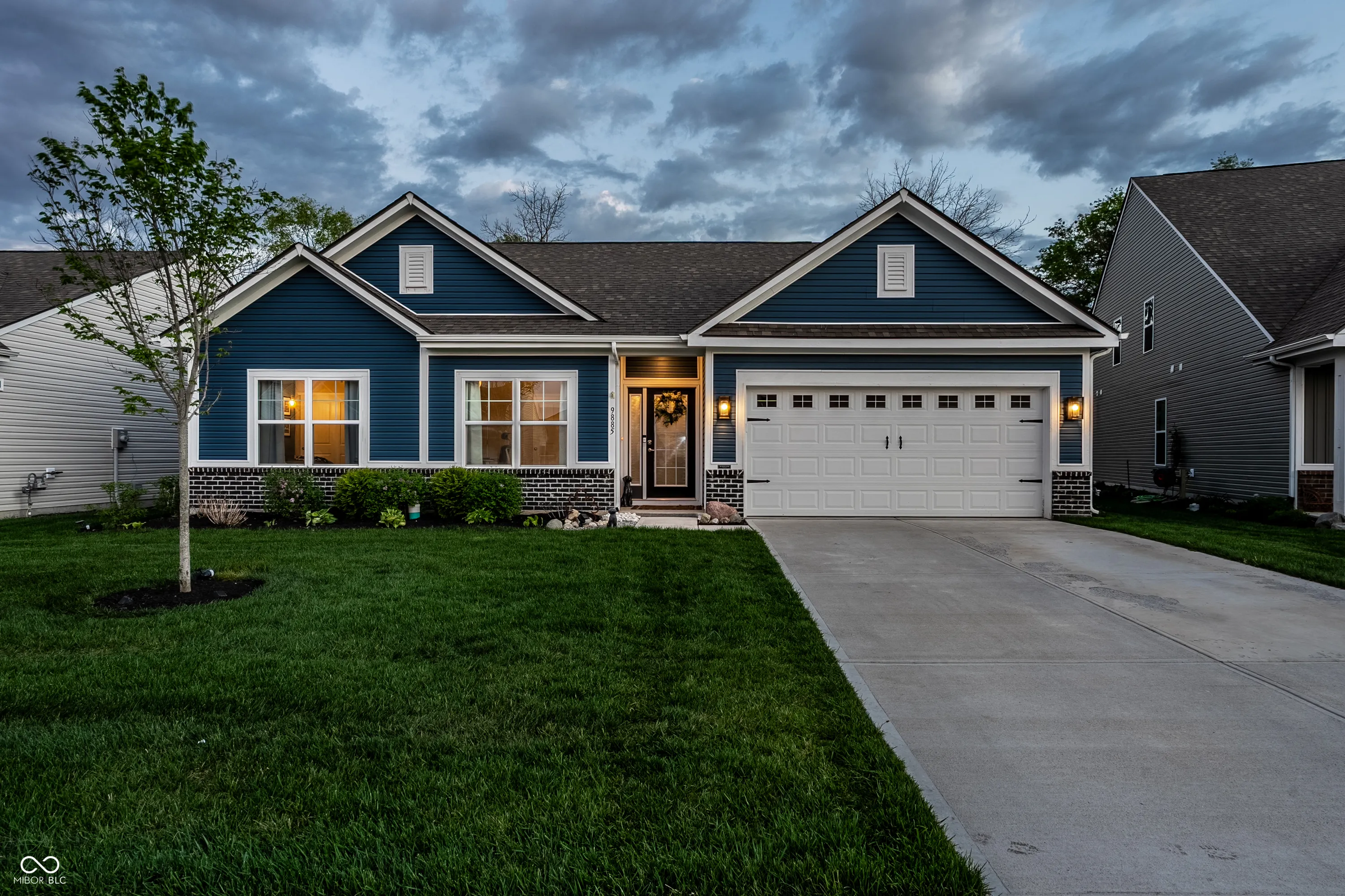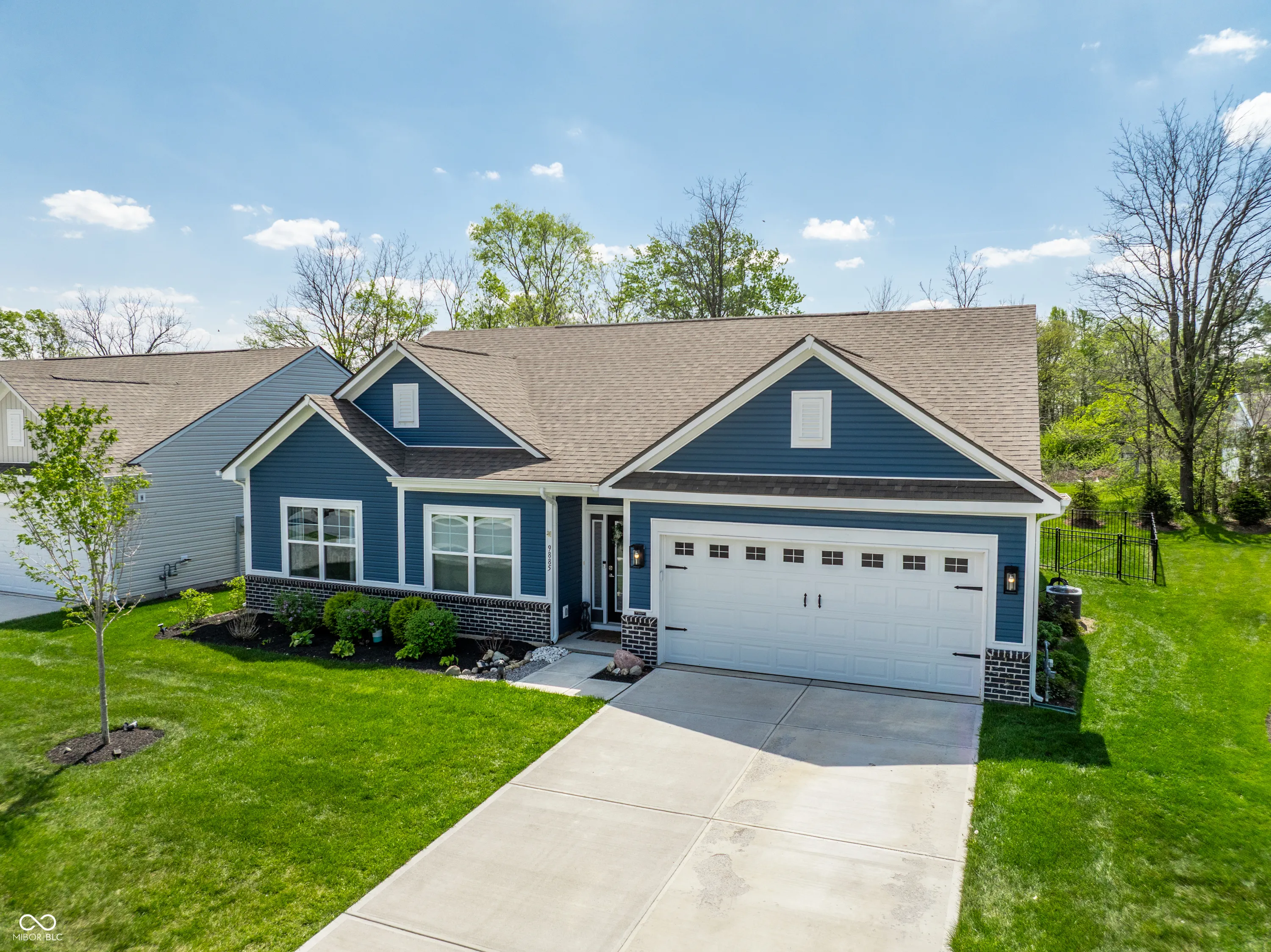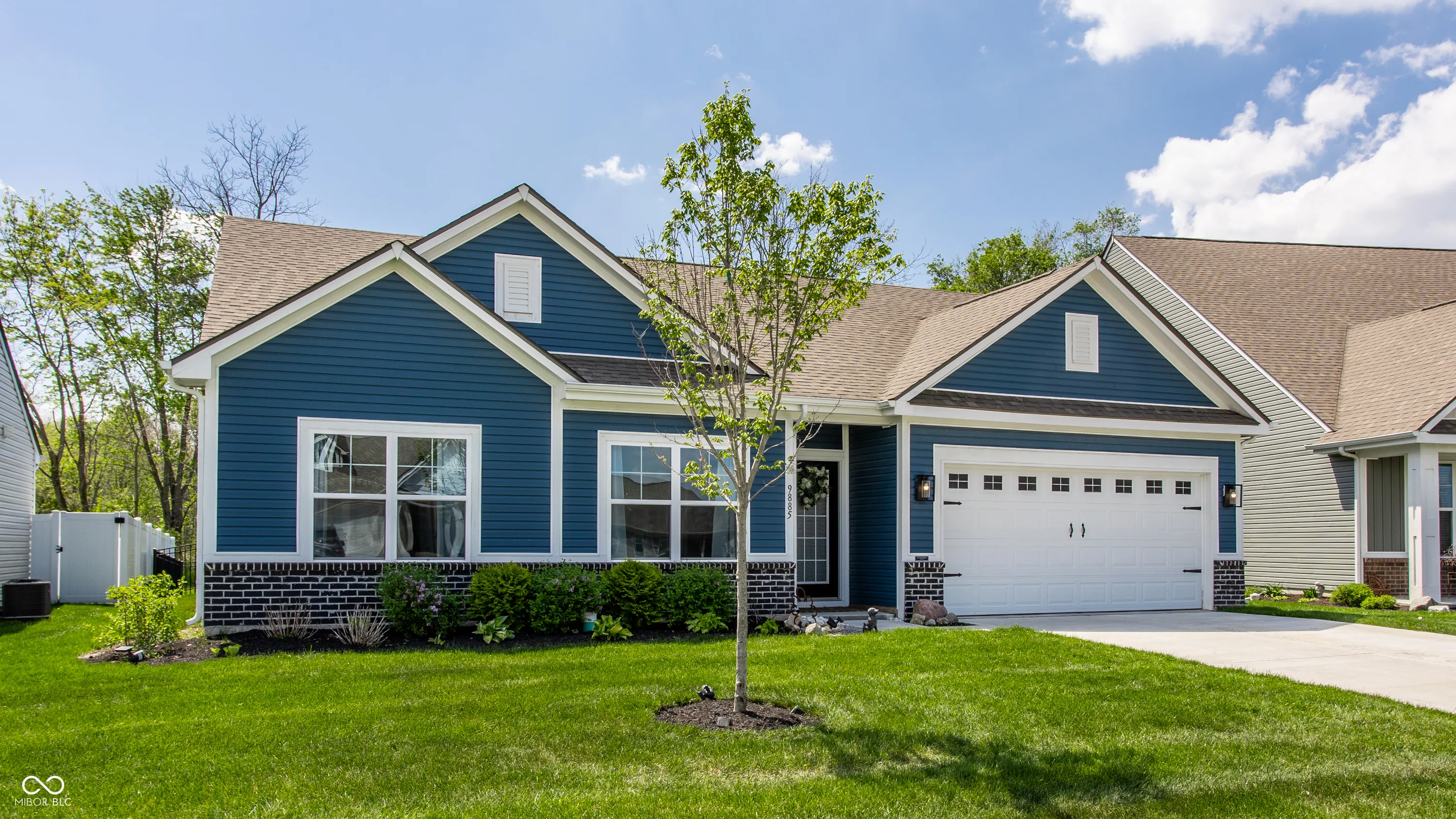 Welcome home to this beautifully designed and updated 2023-built home located just 9 minutes from Hamilton Town Center. Offering the feel of new construction without the wait, this one-level home in Estes Park features 3 bedrooms, 2 full bathrooms, approximately 1,856 sq. ft., an open-concept layout, and a cozy sunroom filled with natural light. The spacious kitchen includes quartz countertops, a large center island with seating, stainless steel appliances, subway tile backsplash, abundant cabinetry, and stylish designer lighting. The open dining and living areas feature abundant natural light, updated fixtures, shiplap-style accent details, barn-style doors, and a functional layout designed for both everyday living and entertaining. The primary suite offers tray ceilings, large windows, walk-in closet, and a private bath with dual vanities and walk-in shower. A bright sunroom overlooks the fenced backyard and pastoral views, creating a rare combination of neighborhood living with an expansive natural backdrop. Enjoy low-maintenance living with HOA-covered lawn care and snow removal. Additional highlights include an irrigation system, open patio, fenced backyard, and thoughtfully designed indoor and outdoor living areas that make this home easy to enjoy year-round. Located in the South Madison School District and near Hamilton Southeastern Schools. Buyers may explore HSE non-resident transfer policies and availability. Approx. 2 miles to Southeastern Elementary and 2.1 miles to Hamilton Southeastern Intermediate & Junior High.